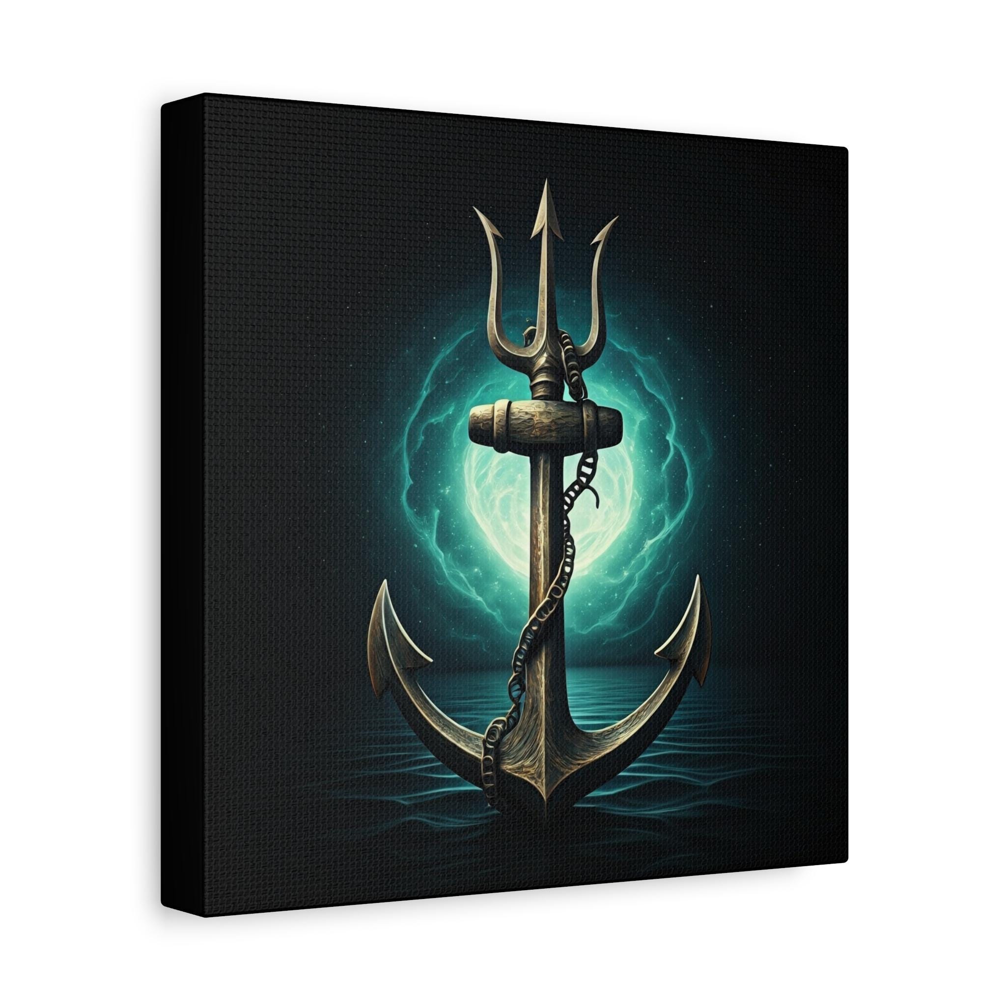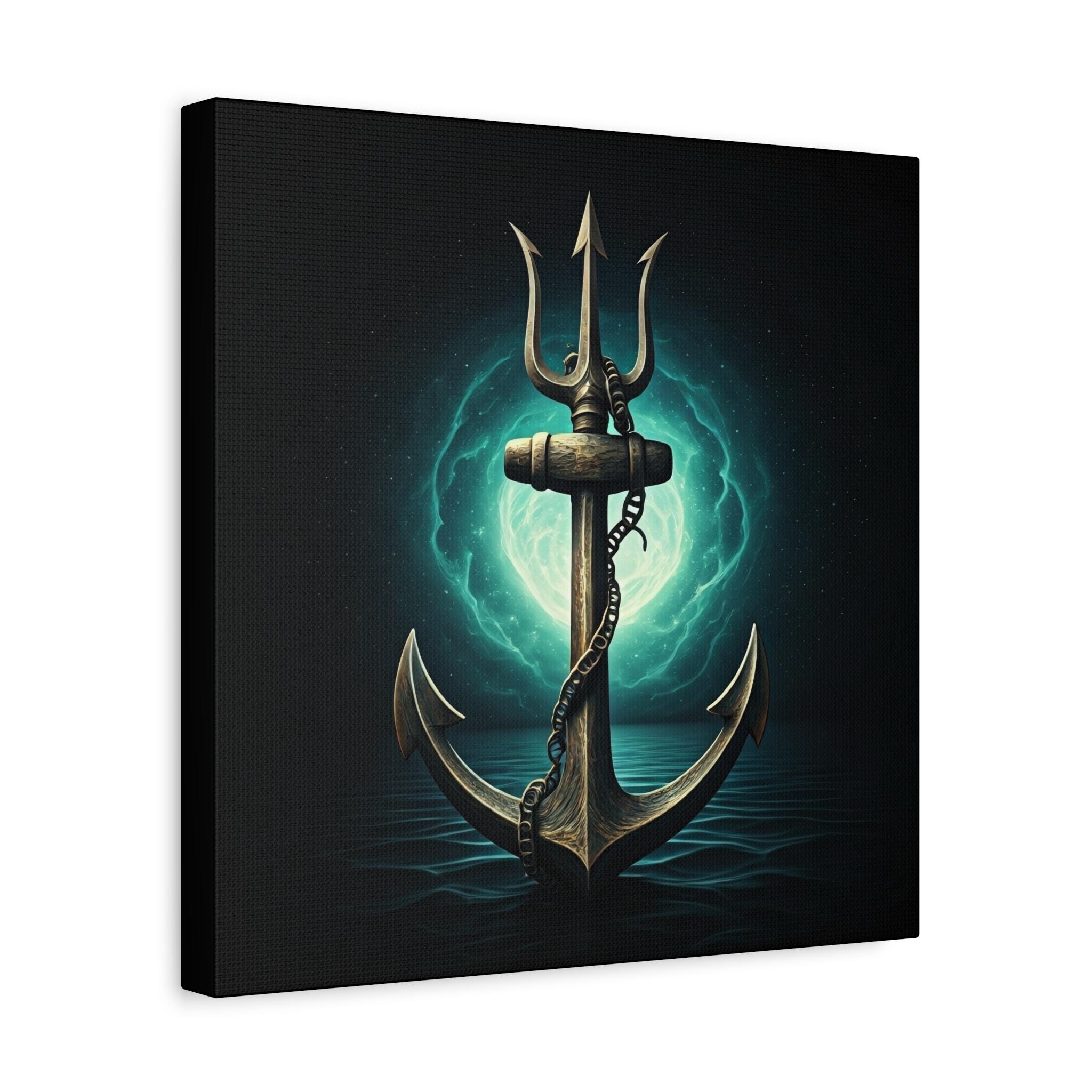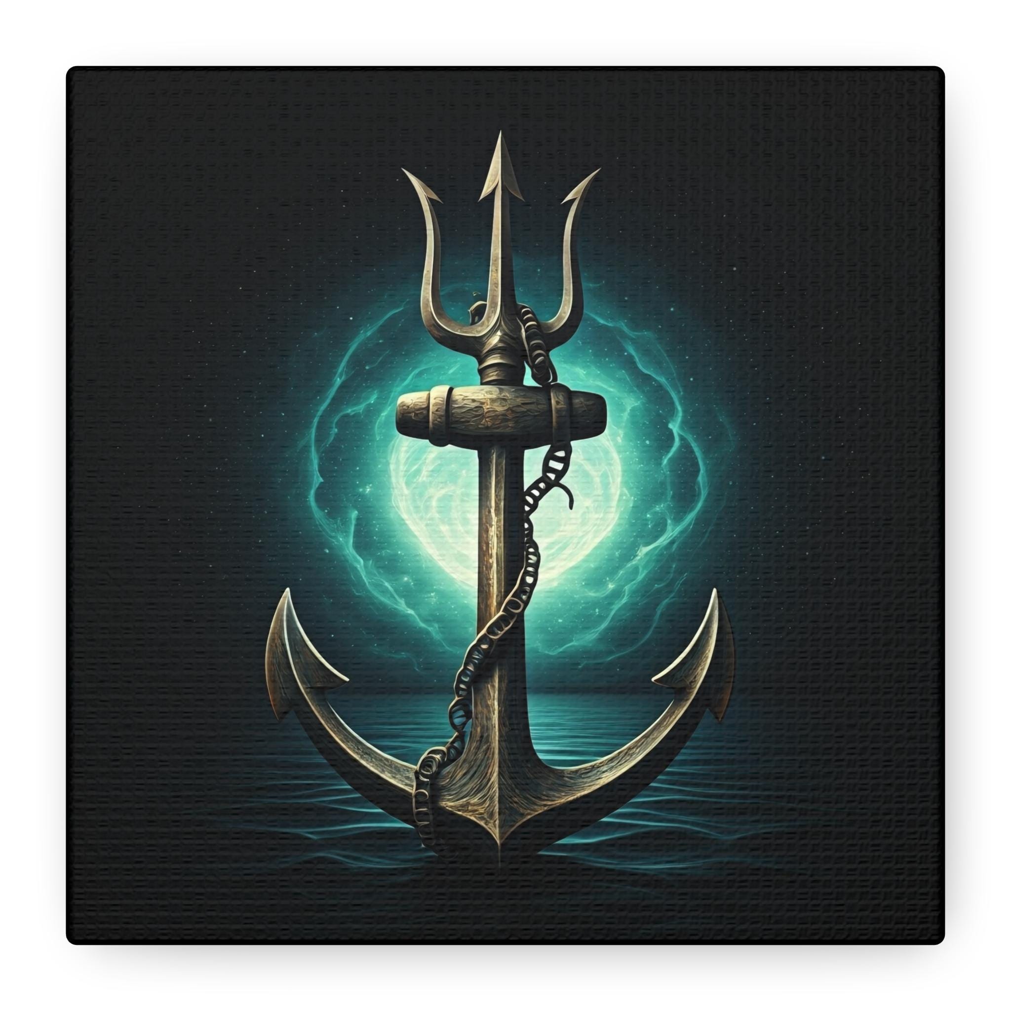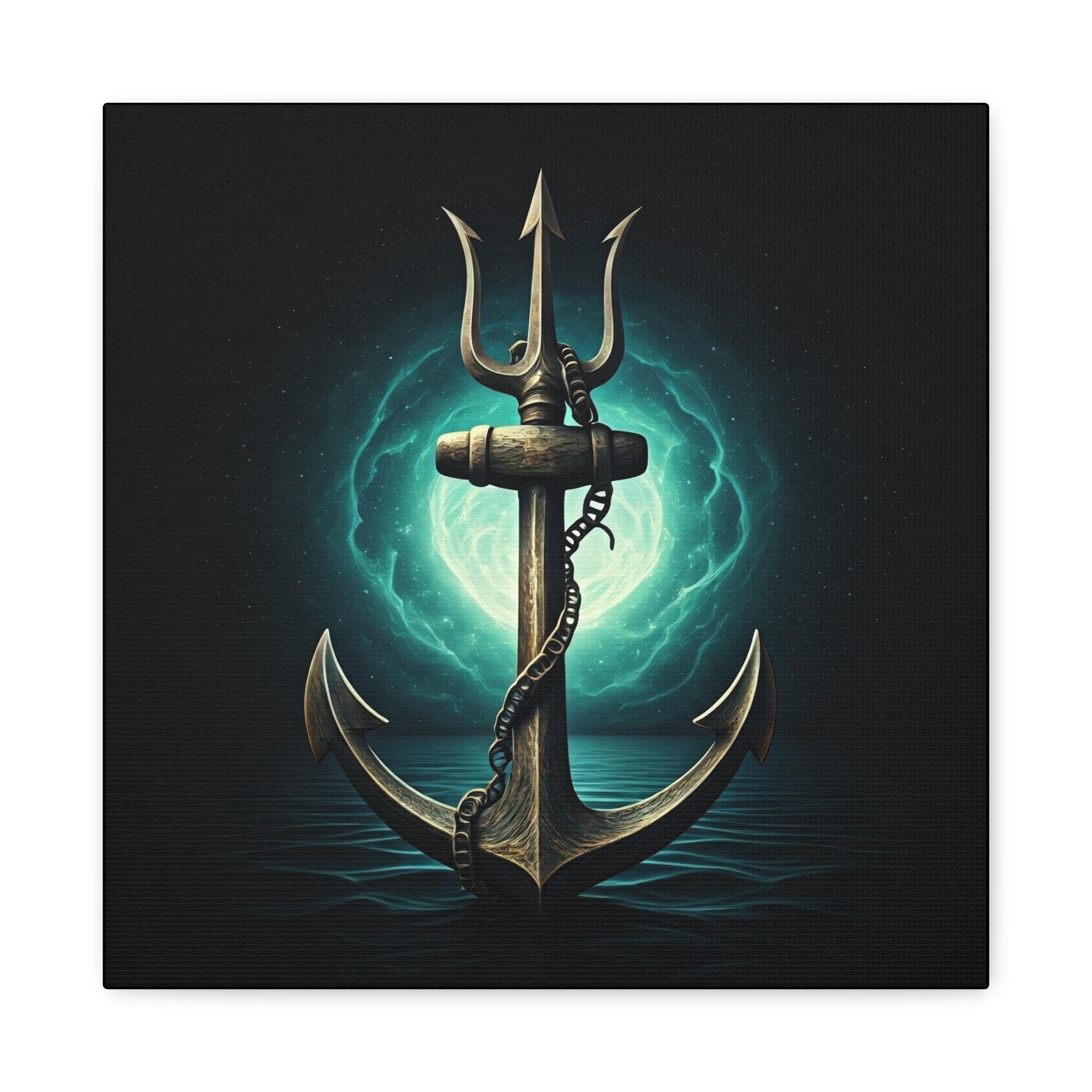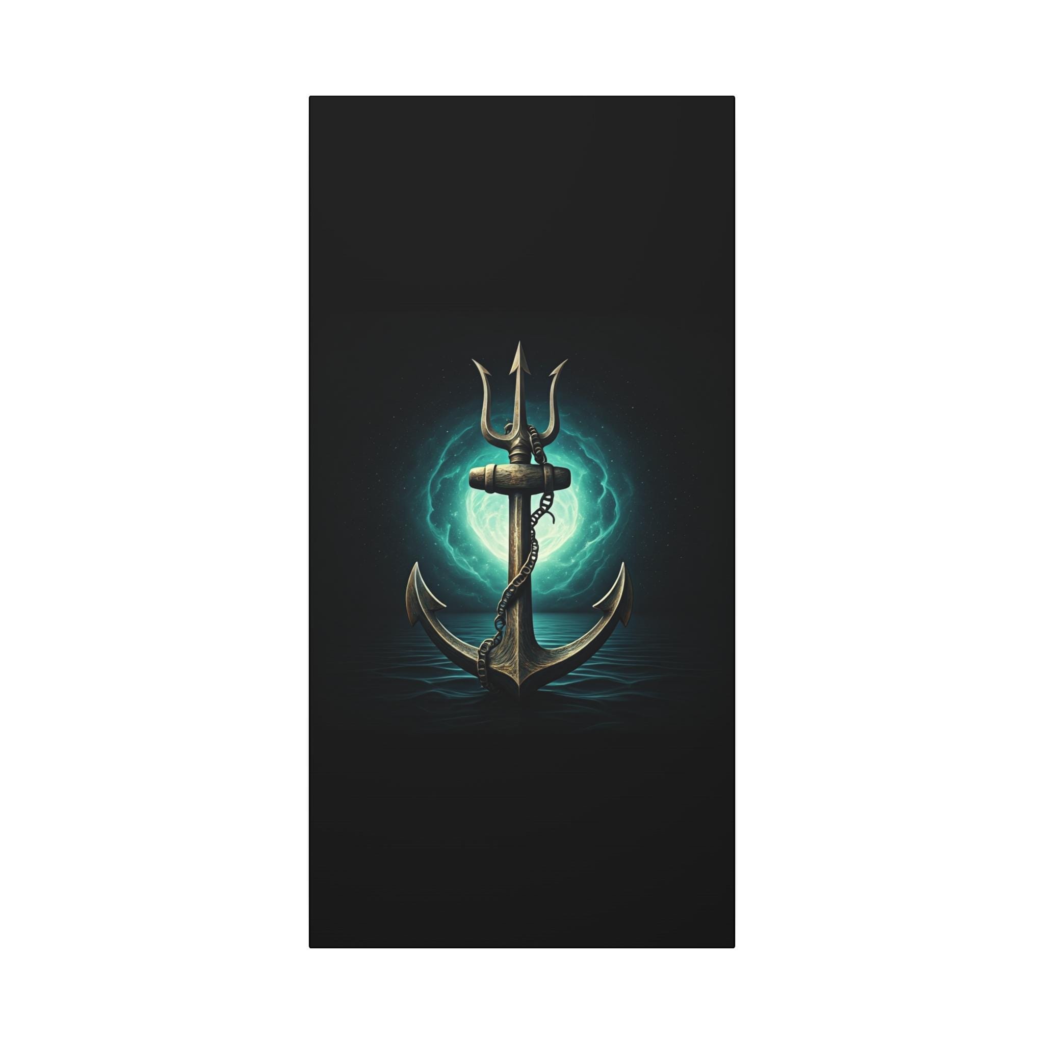A gallery-quality stretched matte canvas that brings deep-sea myth and quiet power into your space. The image—a weathered anchor entwined with a chain, backlit by an eerie teal moon—feels like a still from an old mariner’s legend. Heavy blacks and luminous turquoise highlights give the piece a cinematic depth that sits beautifully over a mantel, in a study, or in a nautical-themed room. Lightweight but sturdy, the wrapped edges create a clean, floating look on the wall without needing a frame. Every print is produced with low-odor, Greenguard Gold–certified inks on a cotton/poly canvas for rich color and long-lasting detail.