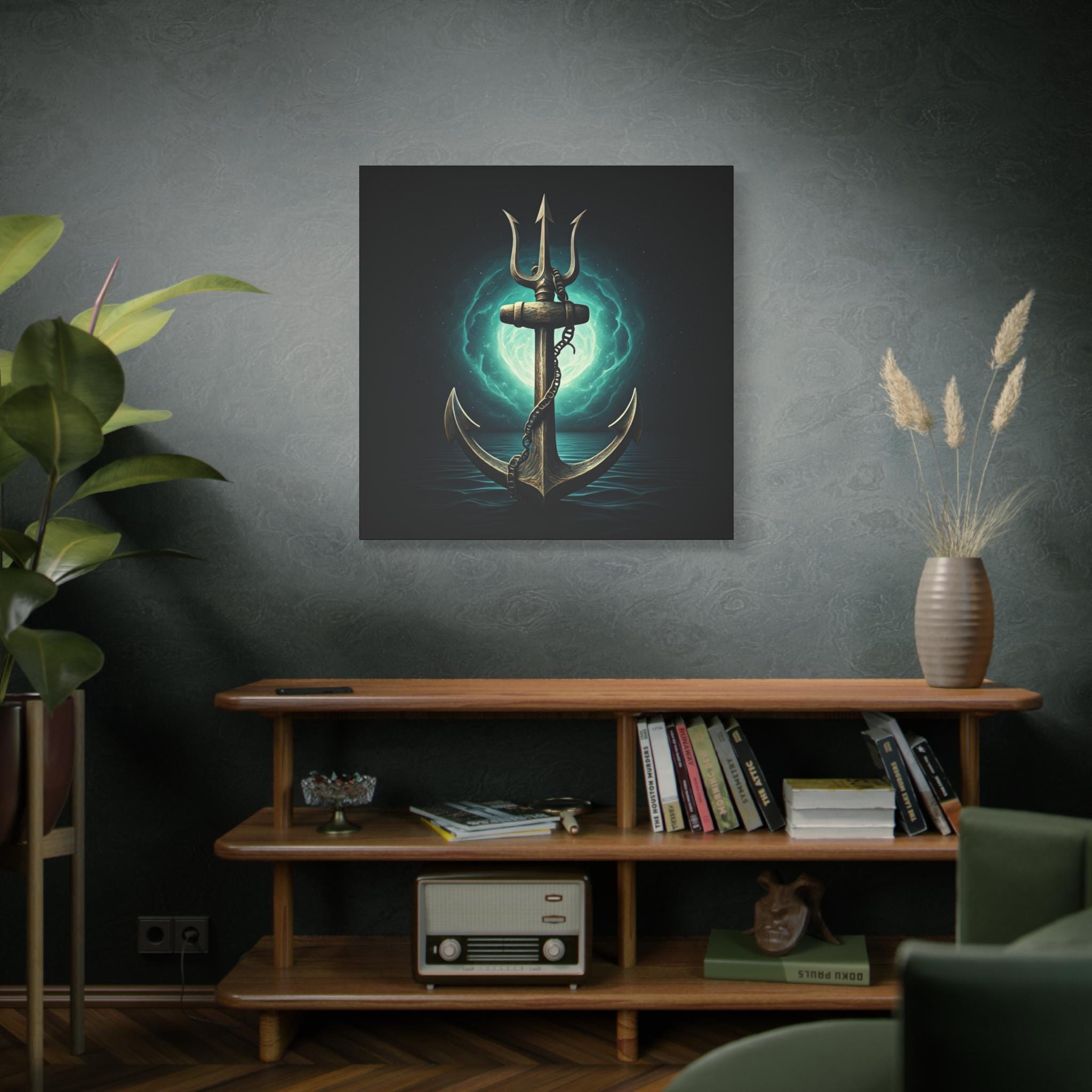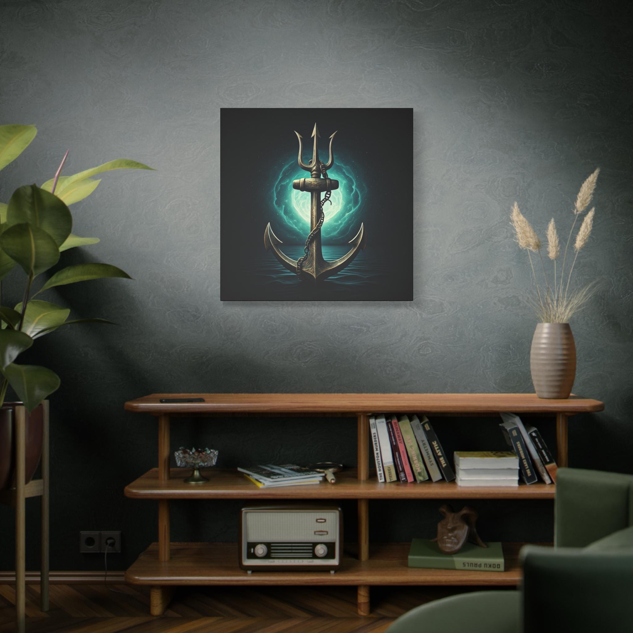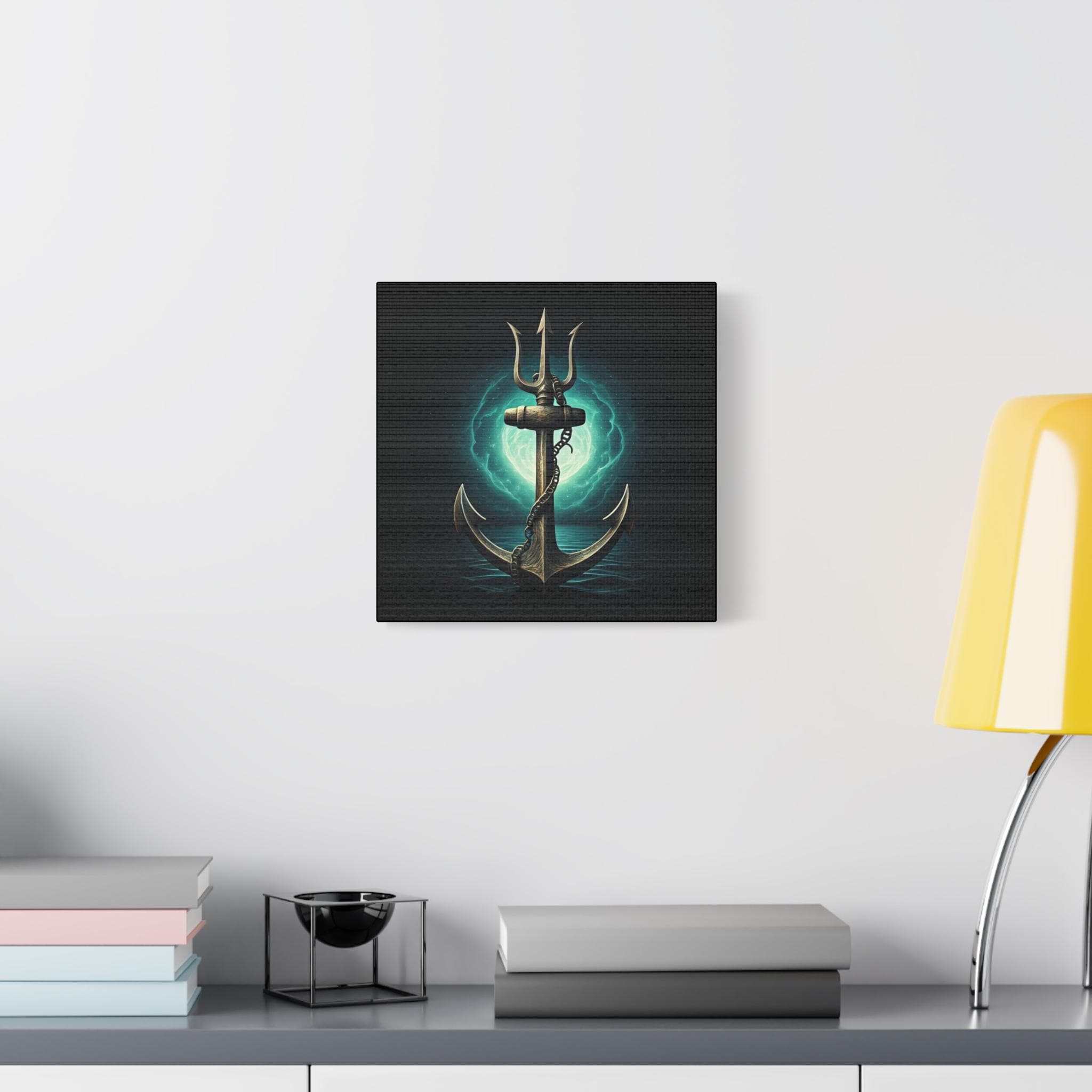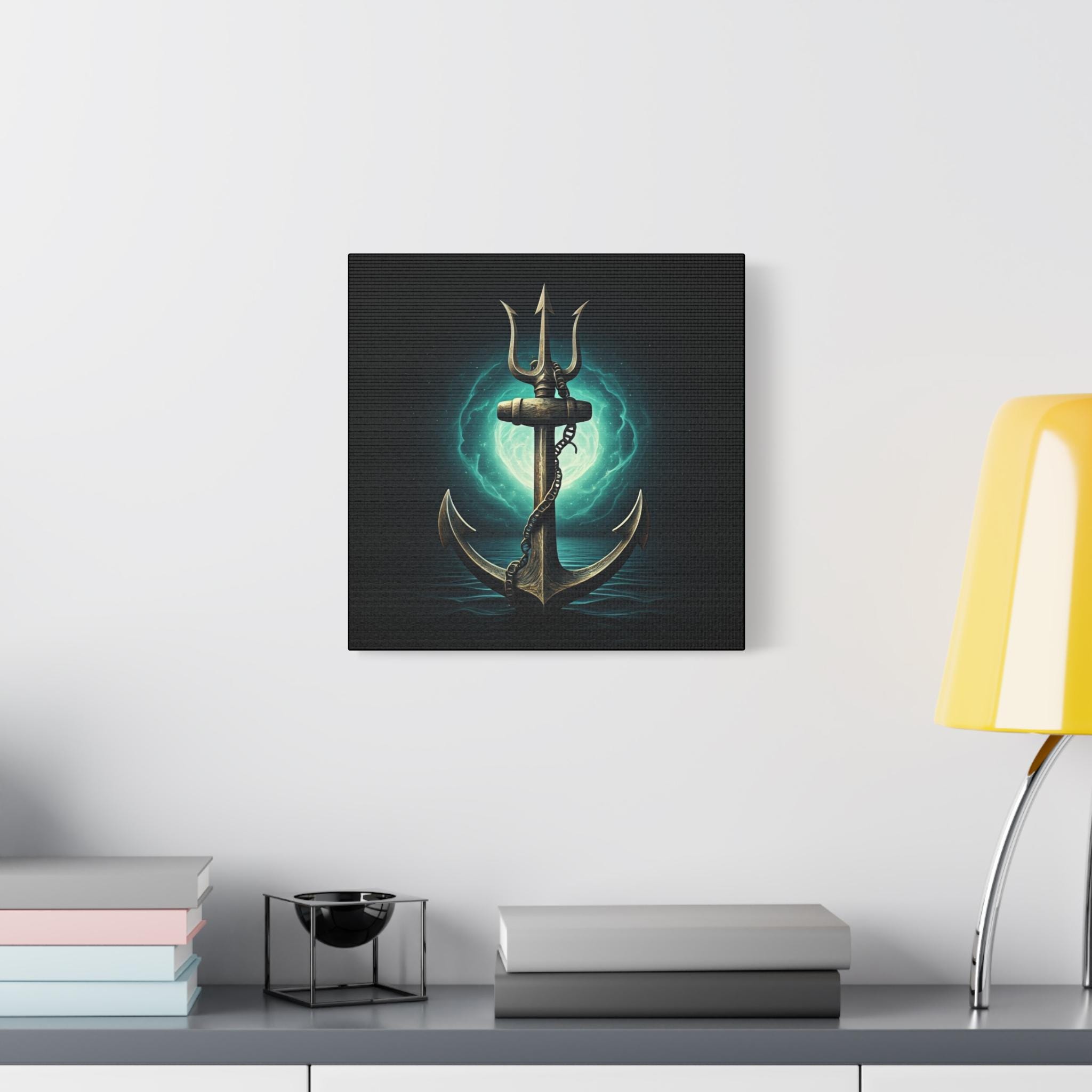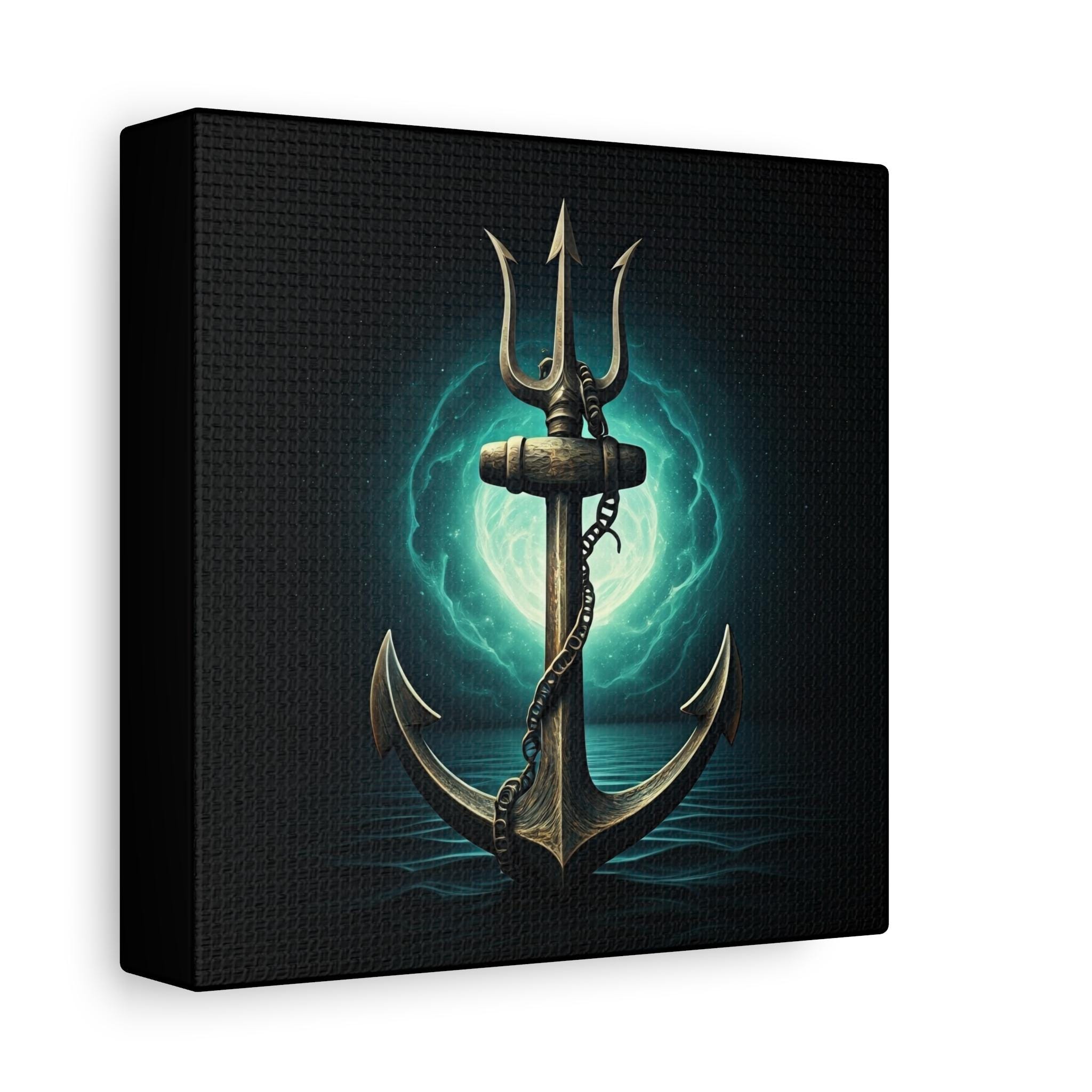 A gallery-quality stretched matte canvas that brings deep-sea myth and quiet power into your space. The image—a weathered anchor entwined with a chain, backlit by an eerie teal moon—feels like a still from an old mariner’s legend. Heavy blacks and luminous turquoise highlights give the piece a cinematic depth that sits beautifully over a mantel, in a study, or in a nautical-themed room. Lightweight but sturdy, the wrapped edges create a clean, floating look on the wall without needing a frame. Every print is produced with low-odor, Greenguard Gold–certified inks on a cotton/poly canvas for rich color and long-lasting detail.