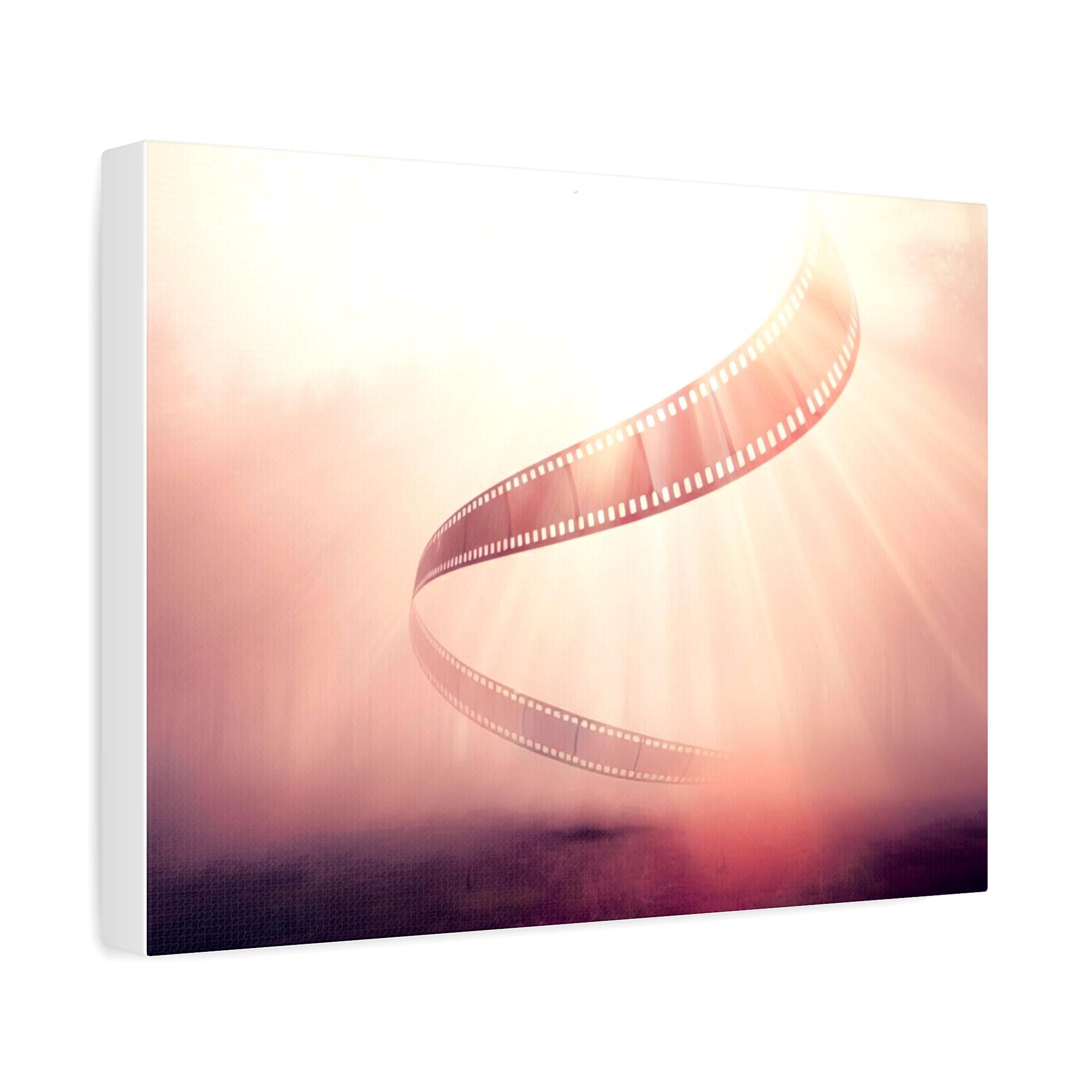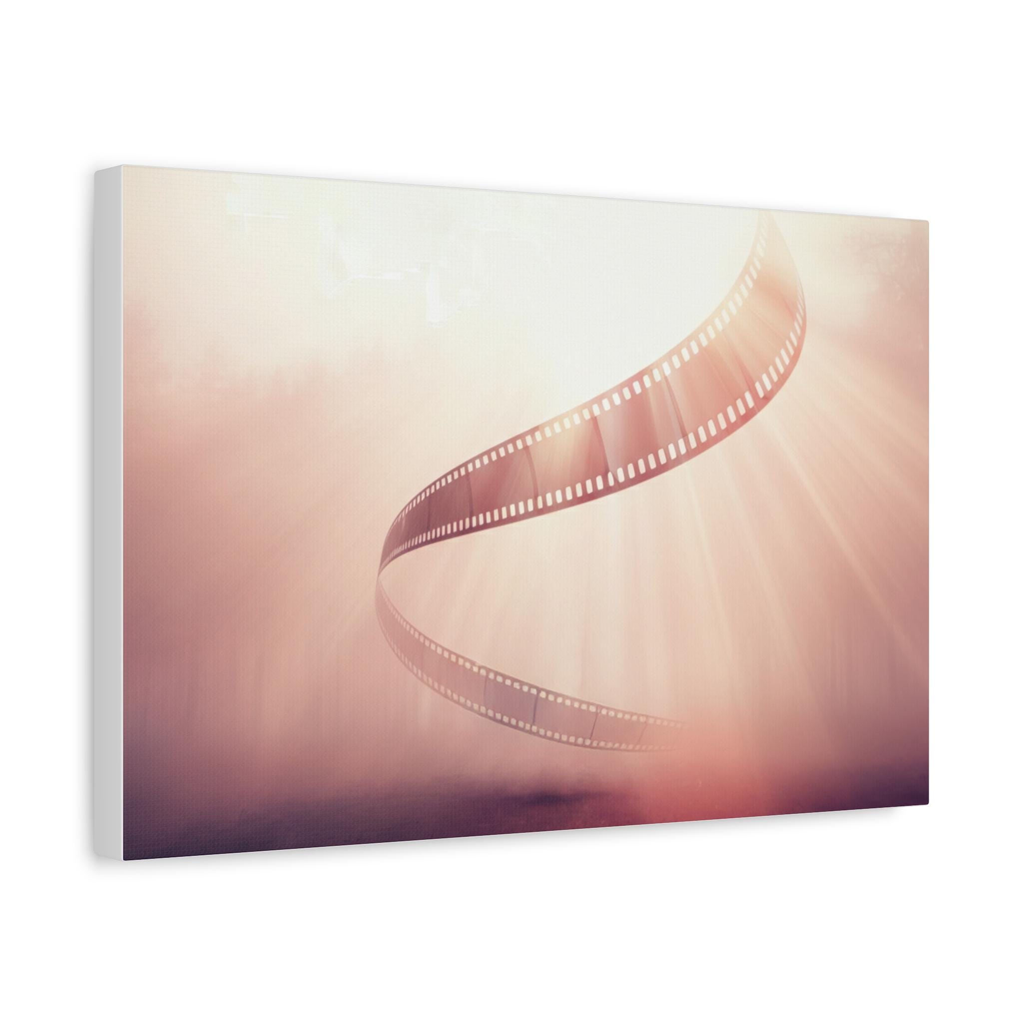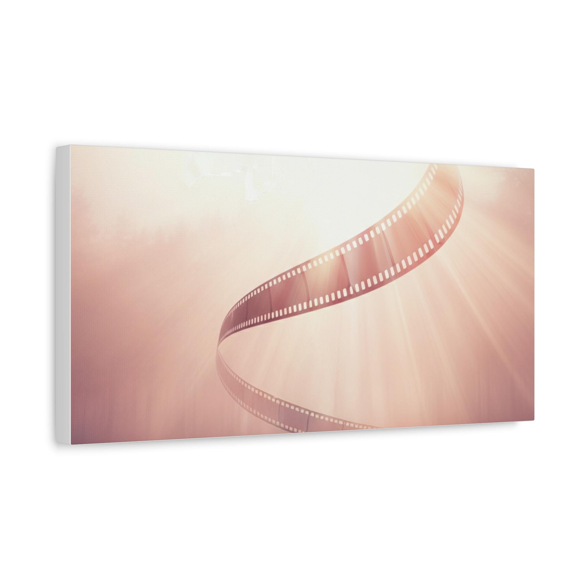 A soft, museum-quality matte canvas that brings cinematic nostalgia into any room. This stretched canvas features a warm, dreamy film-strip design with gentle light rays and a rose-gold wash that evokes afternoons spent sorting reels and the quiet thrill of storytelling. Ready to hang with a discreet back mount and soft rubber corners, it sits flush on the wall and keeps the image steady. The textured canvas surface reduces glare and gives the print a handcrafted, tactile feel—an understated centerpiece that complements creative studios, living rooms, and cozy reading nooks.