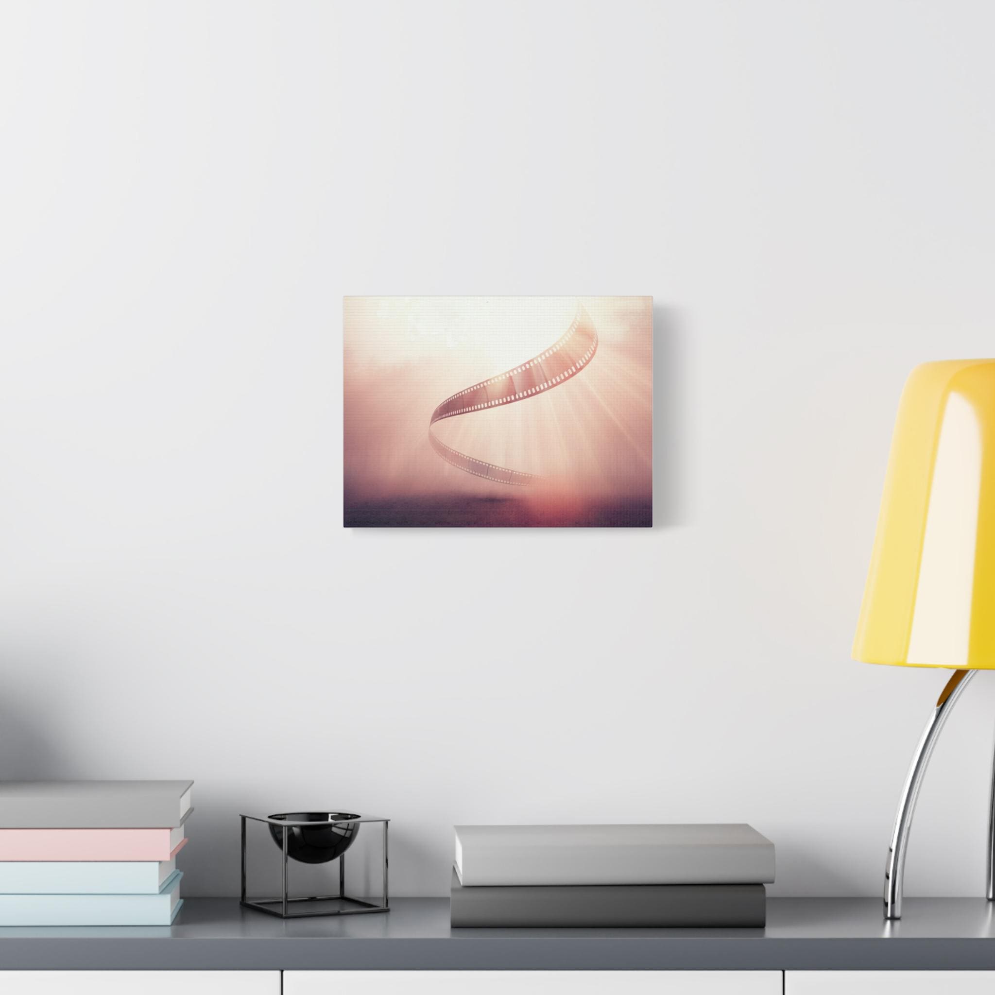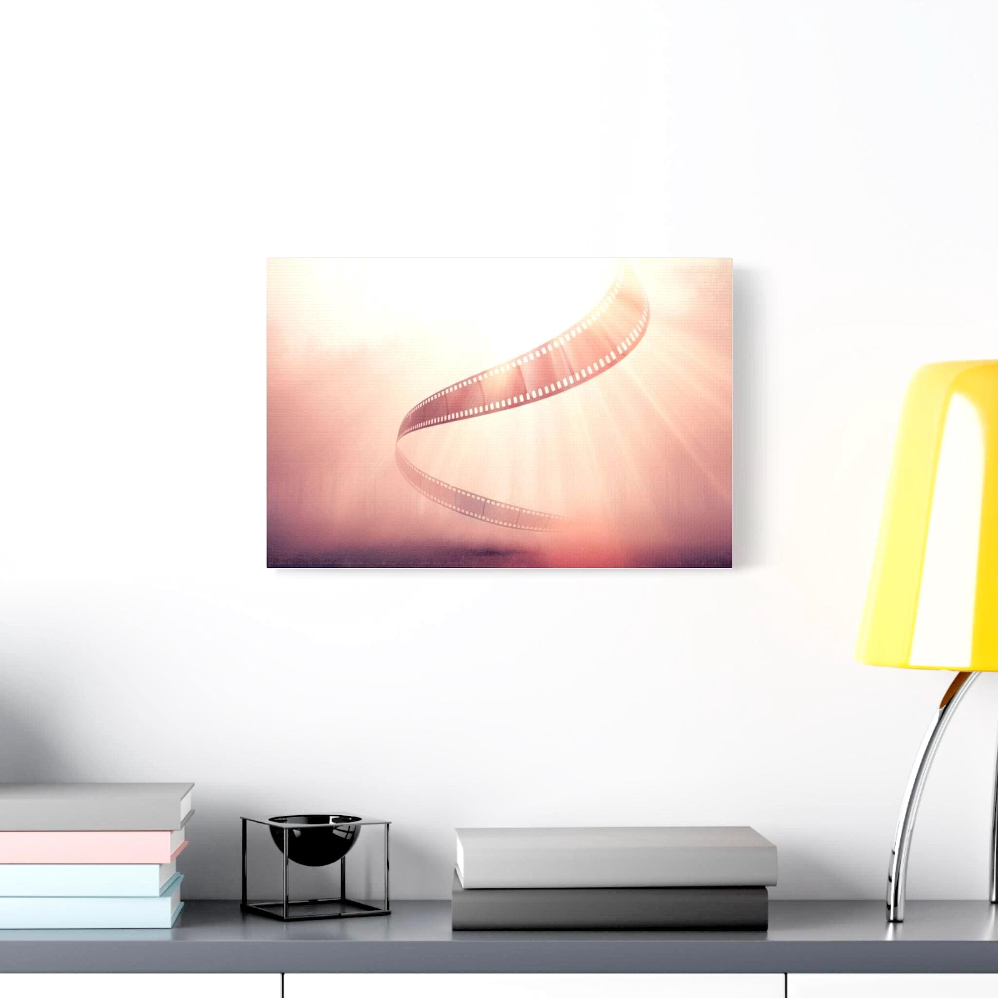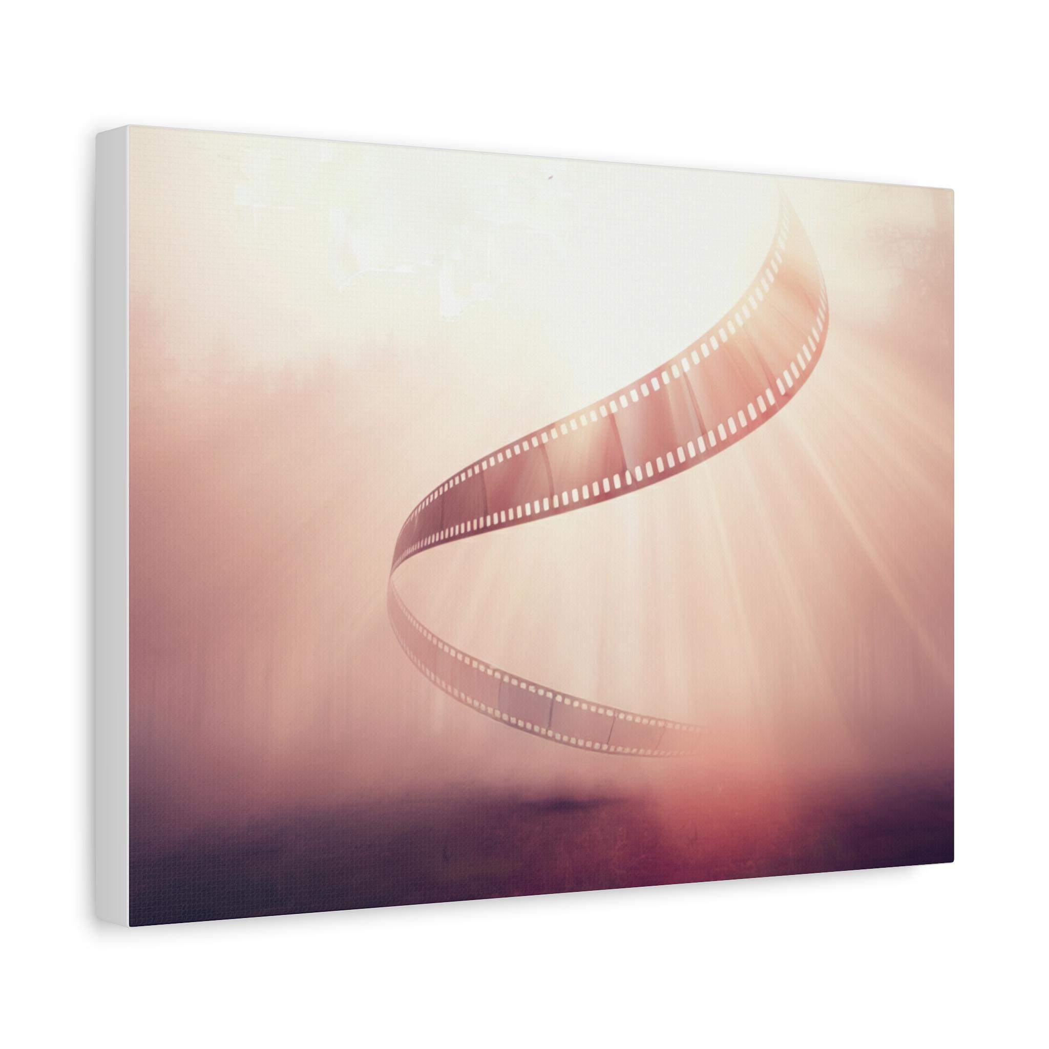 A soft, museum-quality matte canvas that brings cinematic nostalgia into any room. This stretched canvas features a warm, dreamy film-strip design with gentle light rays and a rose-gold wash that evokes afternoons spent sorting reels and the quiet thrill of storytelling. Ready to hang with a discreet back mount and soft rubber corners, it sits flush on the wall and keeps the image steady. The textured canvas surface reduces glare and gives the print a handcrafted, tactile feel—an understated centerpiece that complements creative studios, living rooms, and cozy reading nooks.