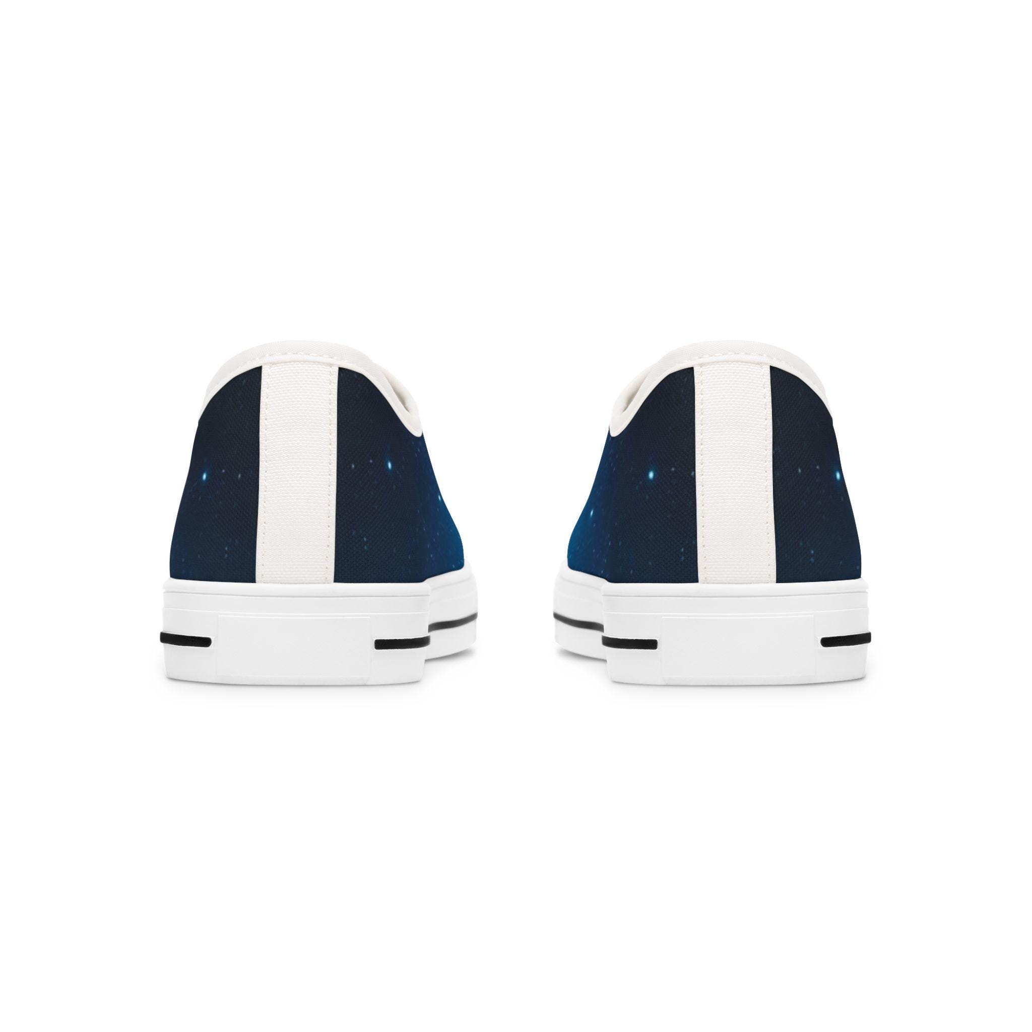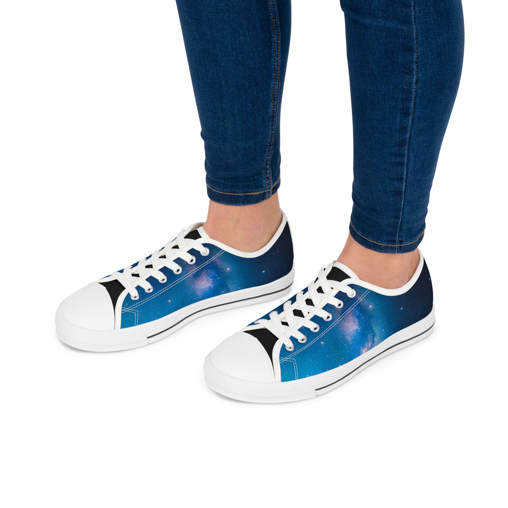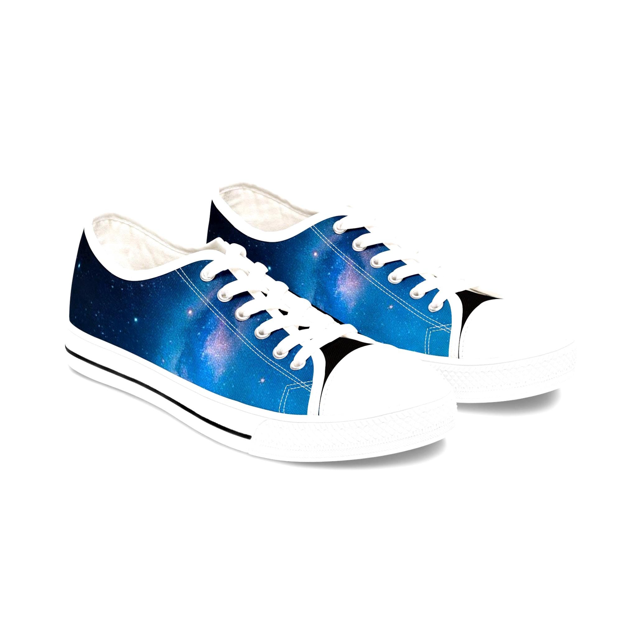 These low top sneakers carry a quiet, starry-night energy—soft canvas wrapped in a deep blue galaxy print that feels like a personal sky with every step. Lightweight EVA soles and shock-absorbing insoles keep walks effortless, while memory foam molds to your foot for daylong comfort. Subtle pleather at the round toe and metal eyelets add durability and a polished edge. The full wraparound print makes the design pop from every angle, and the breathable polyester canvas keeps feet cool whether you're wandering city streets or chasing sunset views. They slip easily into casual, creative wardrobes and bring a calm, celestial note to weekend outings and evening hangs.