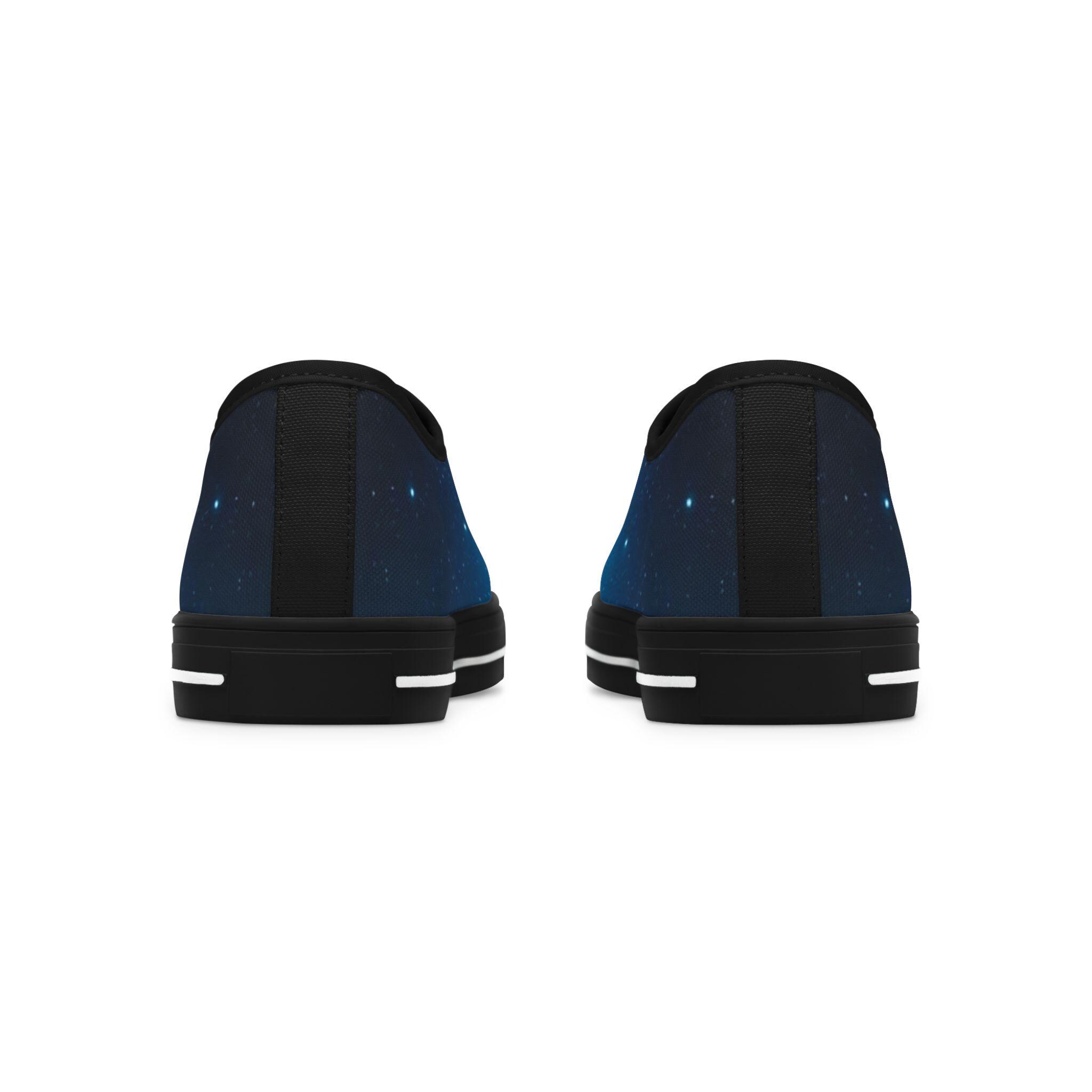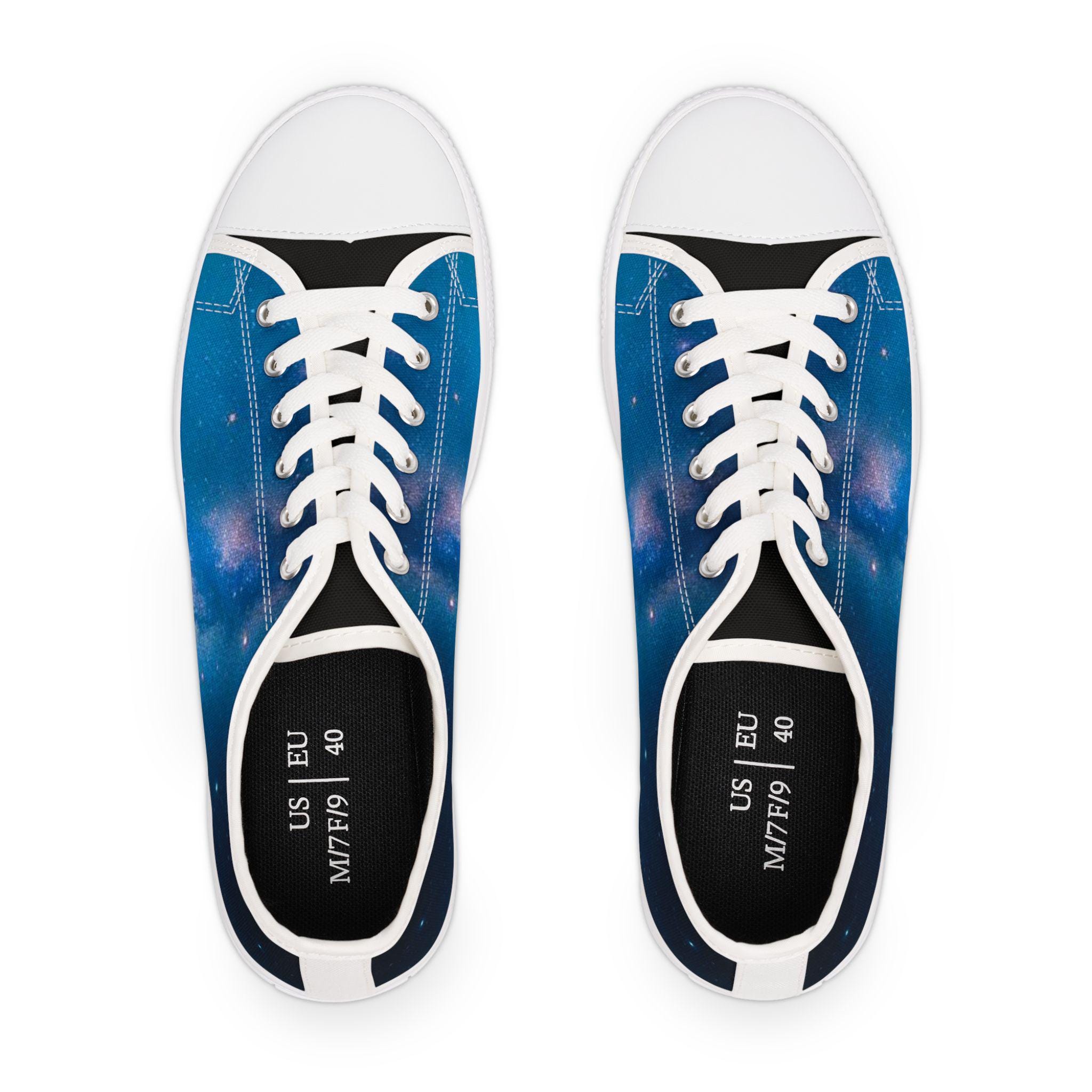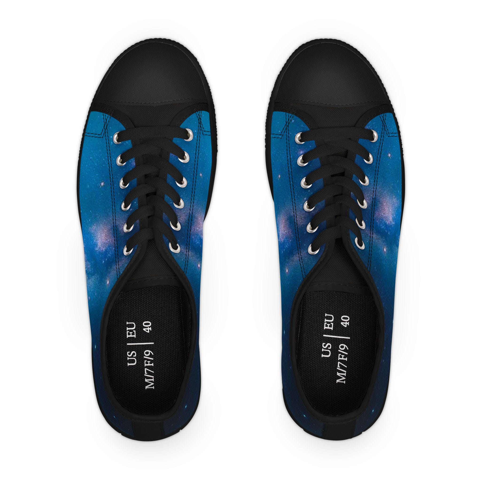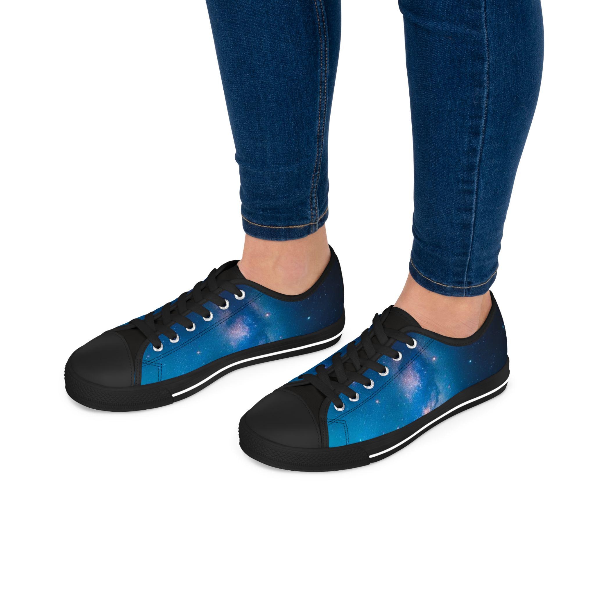 These low top sneakers carry a quiet, starry-night energy—soft canvas wrapped in a deep blue galaxy print that feels like a personal sky with every step. Lightweight EVA soles and shock-absorbing insoles keep walks effortless, while memory foam molds to your foot for daylong comfort. Subtle pleather at the round toe and metal eyelets add durability and a polished edge. The full wraparound print makes the design pop from every angle, and the breathable polyester canvas keeps feet cool whether you're wandering city streets or chasing sunset views. They slip easily into casual, creative wardrobes and bring a calm, celestial note to weekend outings and evening hangs.