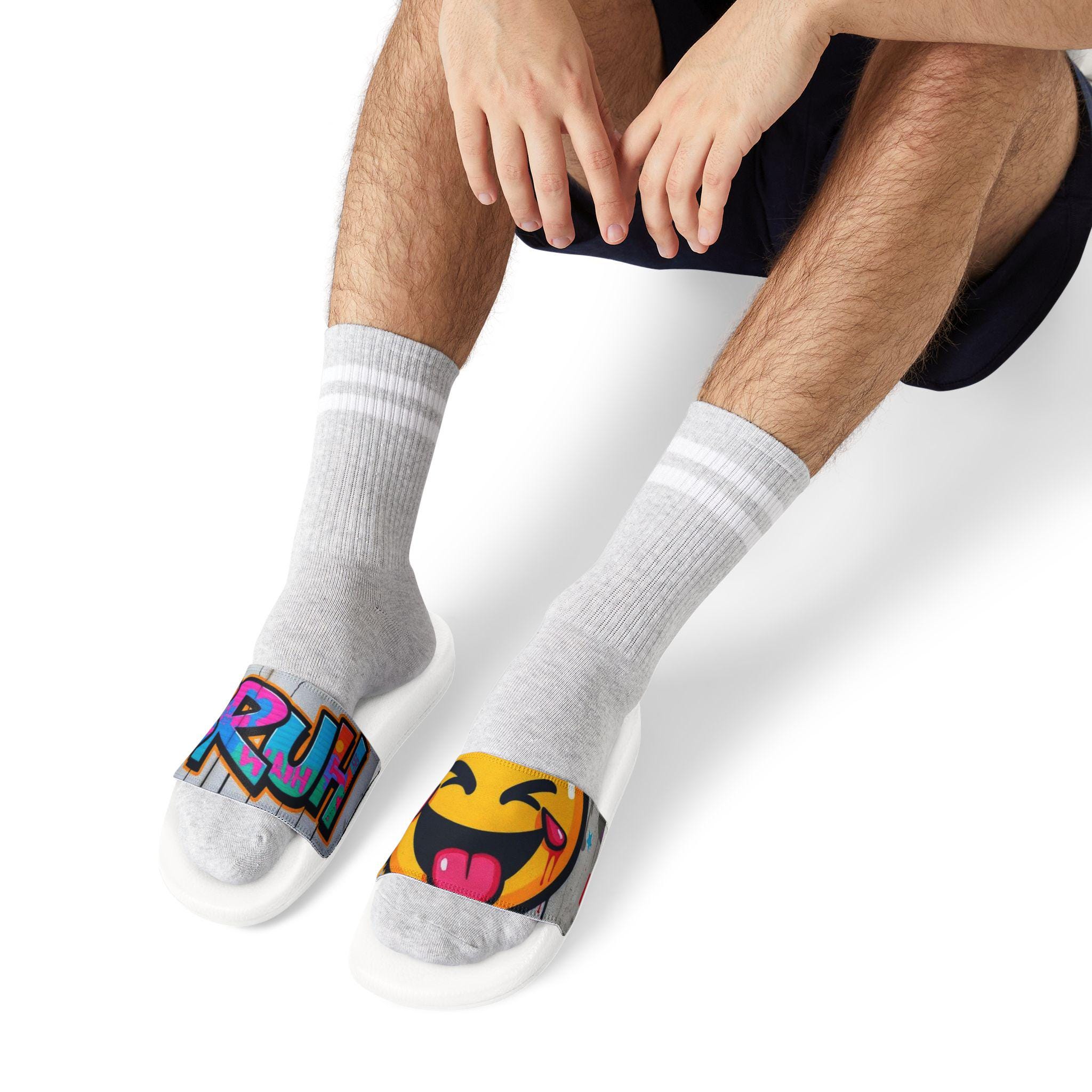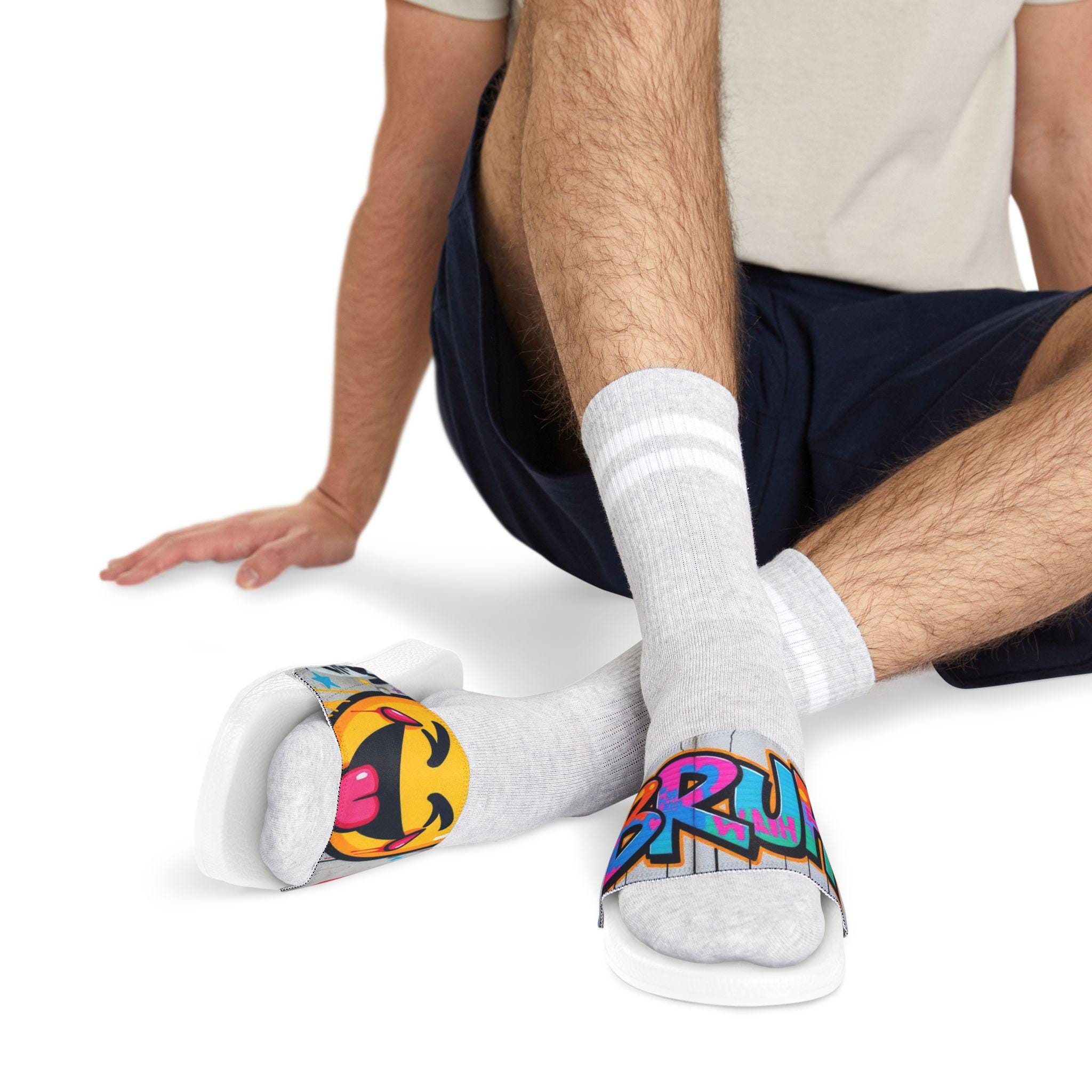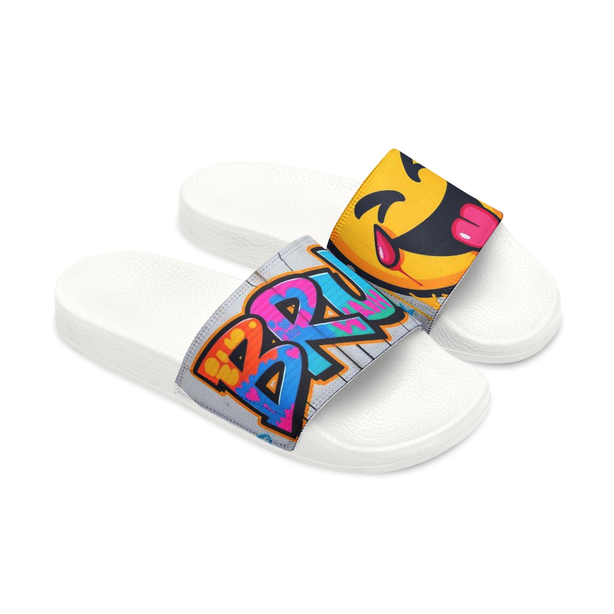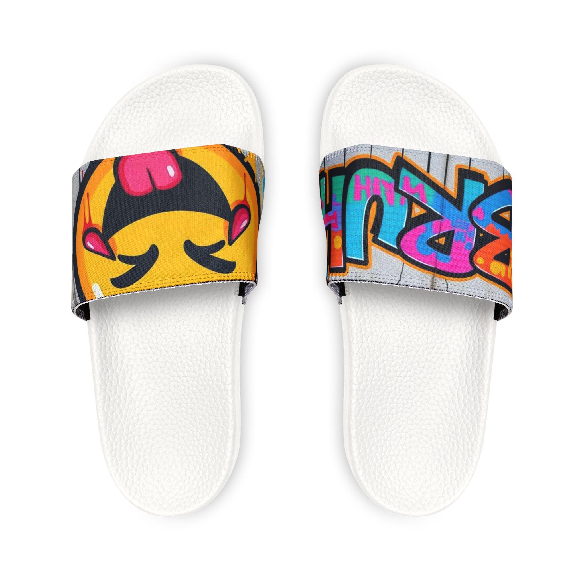 These removable-strap sandals bring playful street art energy to everyday comfort. The cushioned PU foaming outsole follows the foot’s natural curve, while an embossed insole gives a confident, anti-slip hold. Snap-on straps let you switch printed designs in seconds so you can match your mood — from bold graffiti lettering to cheeky emoji panels. Lightweight and quick-drying, they slip on easily for lounging at home, wandering city blocks, or poolside hangs. Clean lines, visible brand detailing on the sole, and two outsole color options keep the look fresh and wearable.