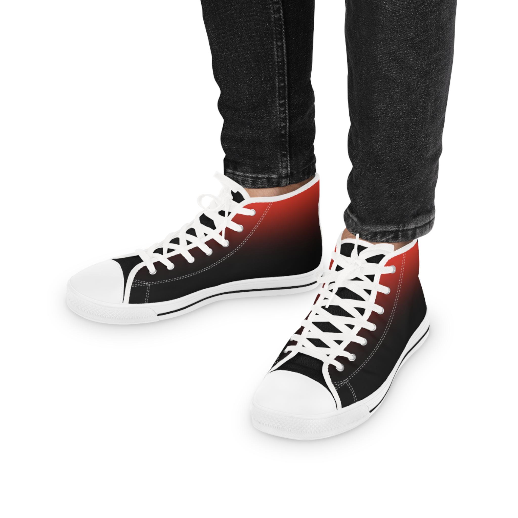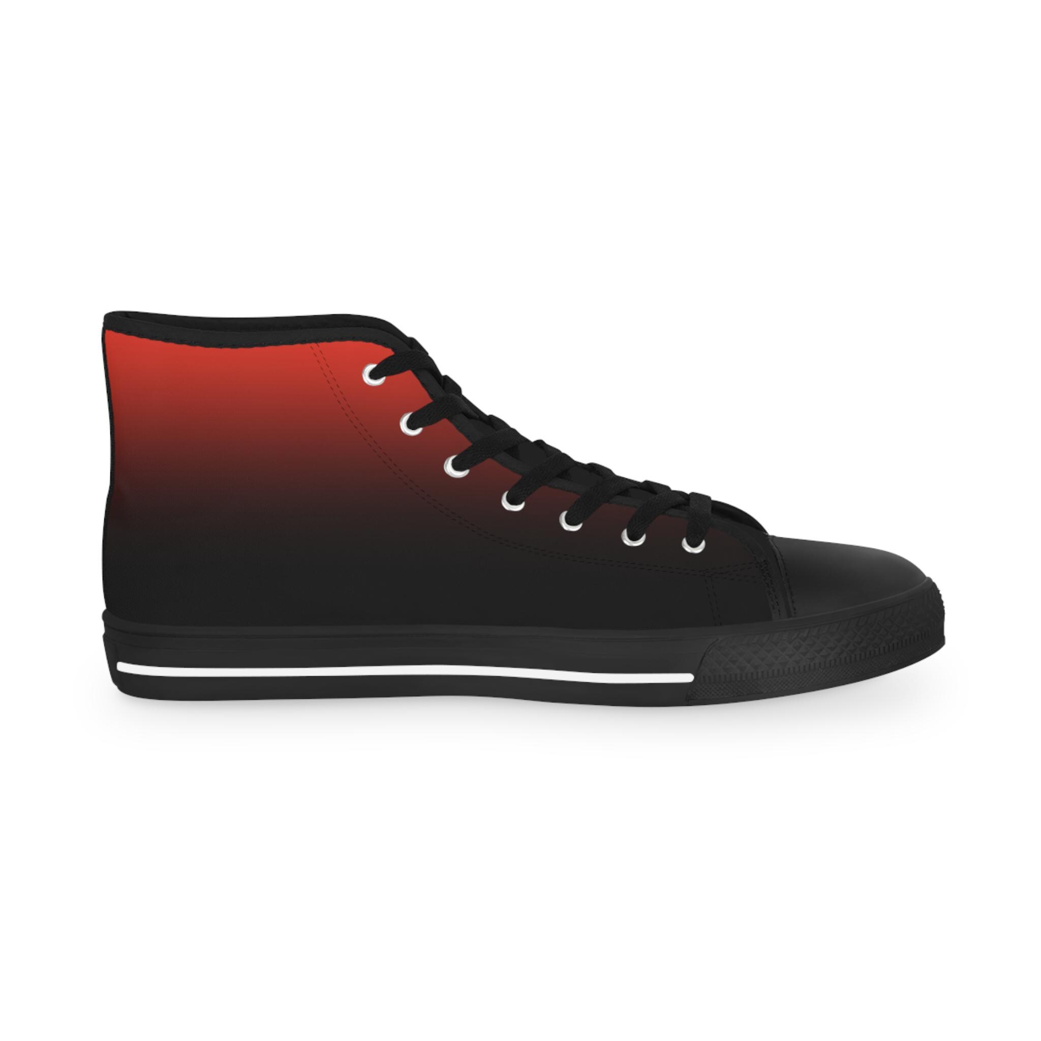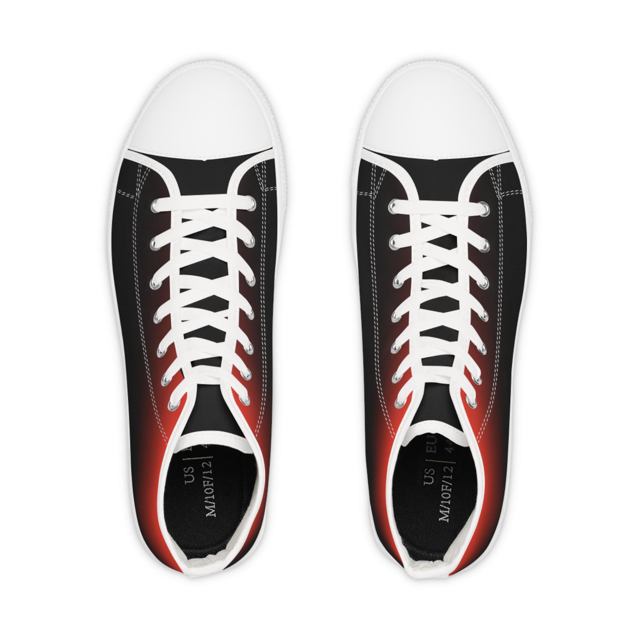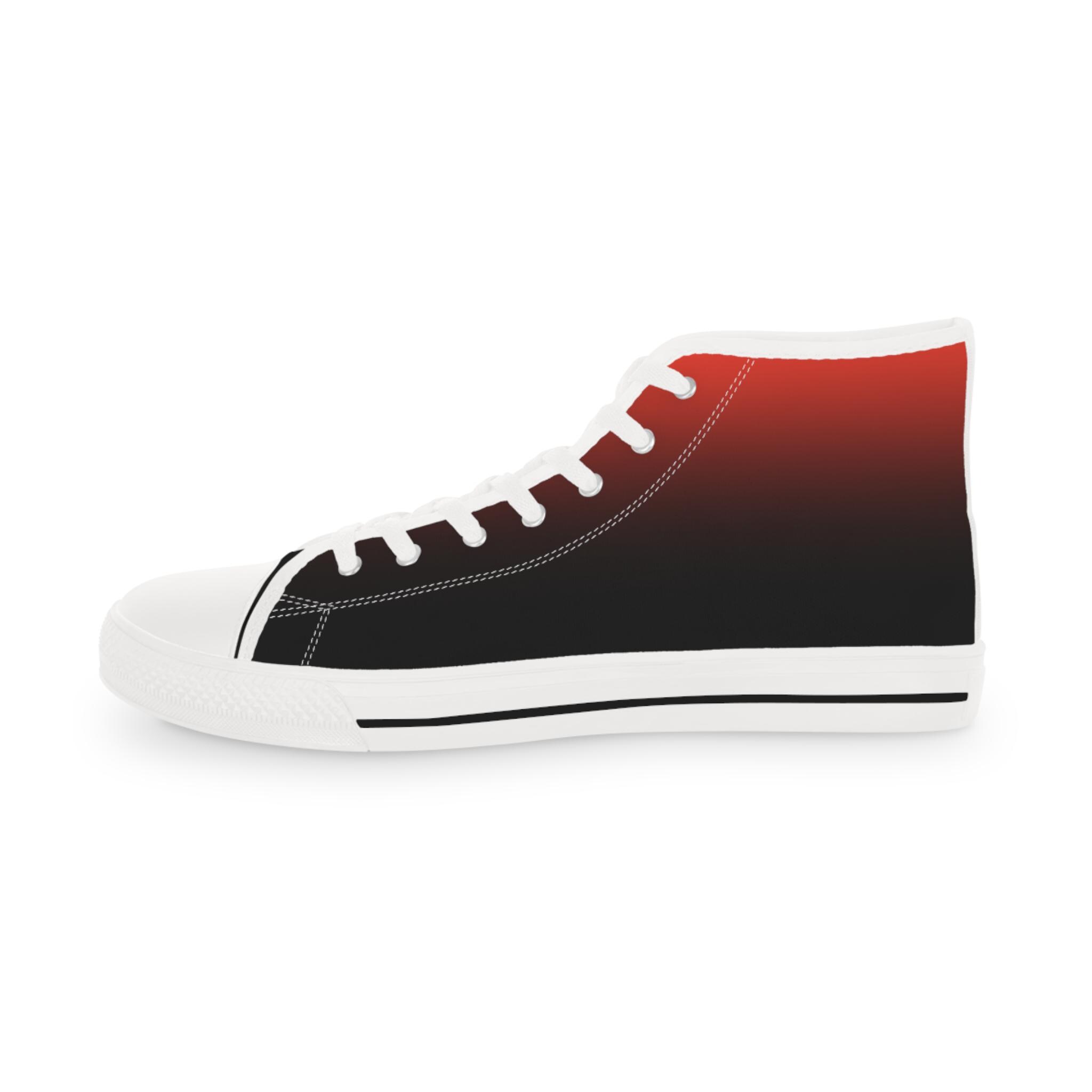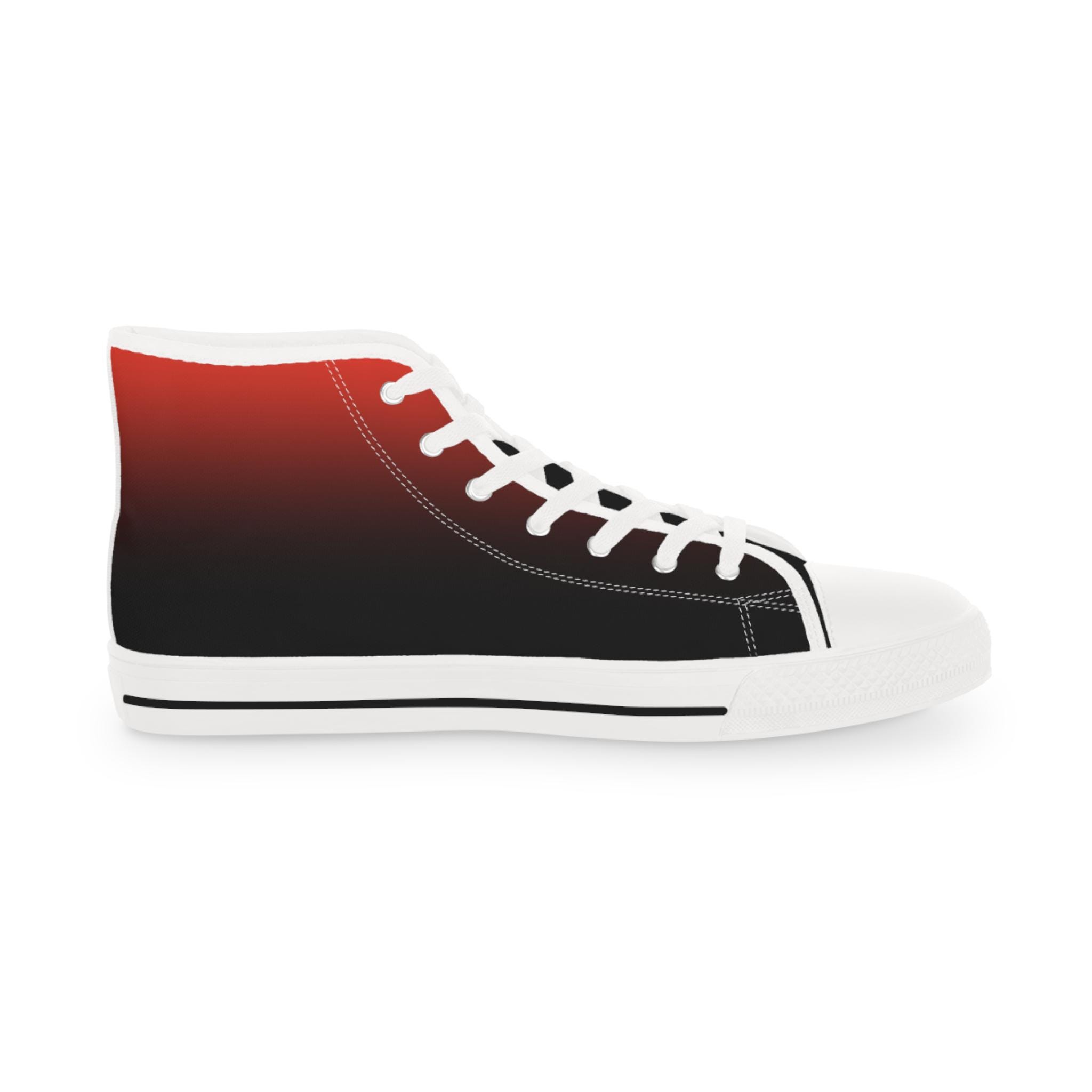 These high-top canvas sneakers bring a quiet, streetwise energy to every step. The subtle red-to-black gradient wraps the full shoe — sides and tongue — fading into crisp white toe caps and laces. Lightweight polyester canvas and a foamed lining keep them soft against your feet, while EVA memory-foam insoles cushion each stride and absorb impact. Reinforced pleather toes and a durable rubber outsole stand up to daily wear, and silver metal eyelets add a sharp, utilitarian detail. Wear them with rolled jeans or a laid-back outfit to add a hint of edge and color without shouting — they settle into your routine and make the everyday feel intentional.