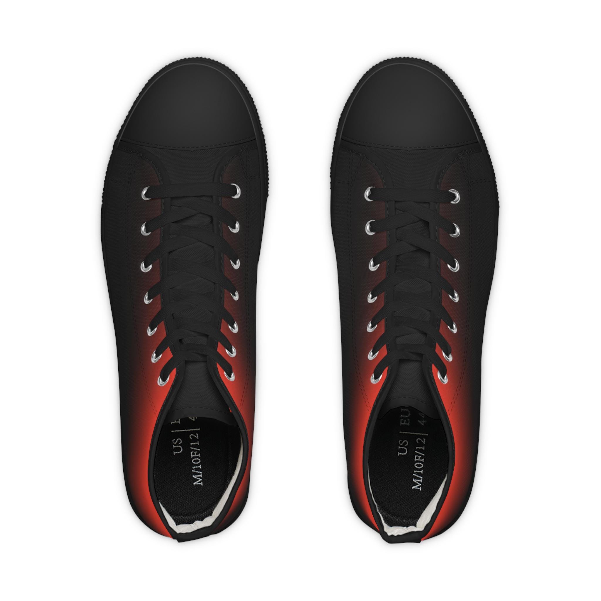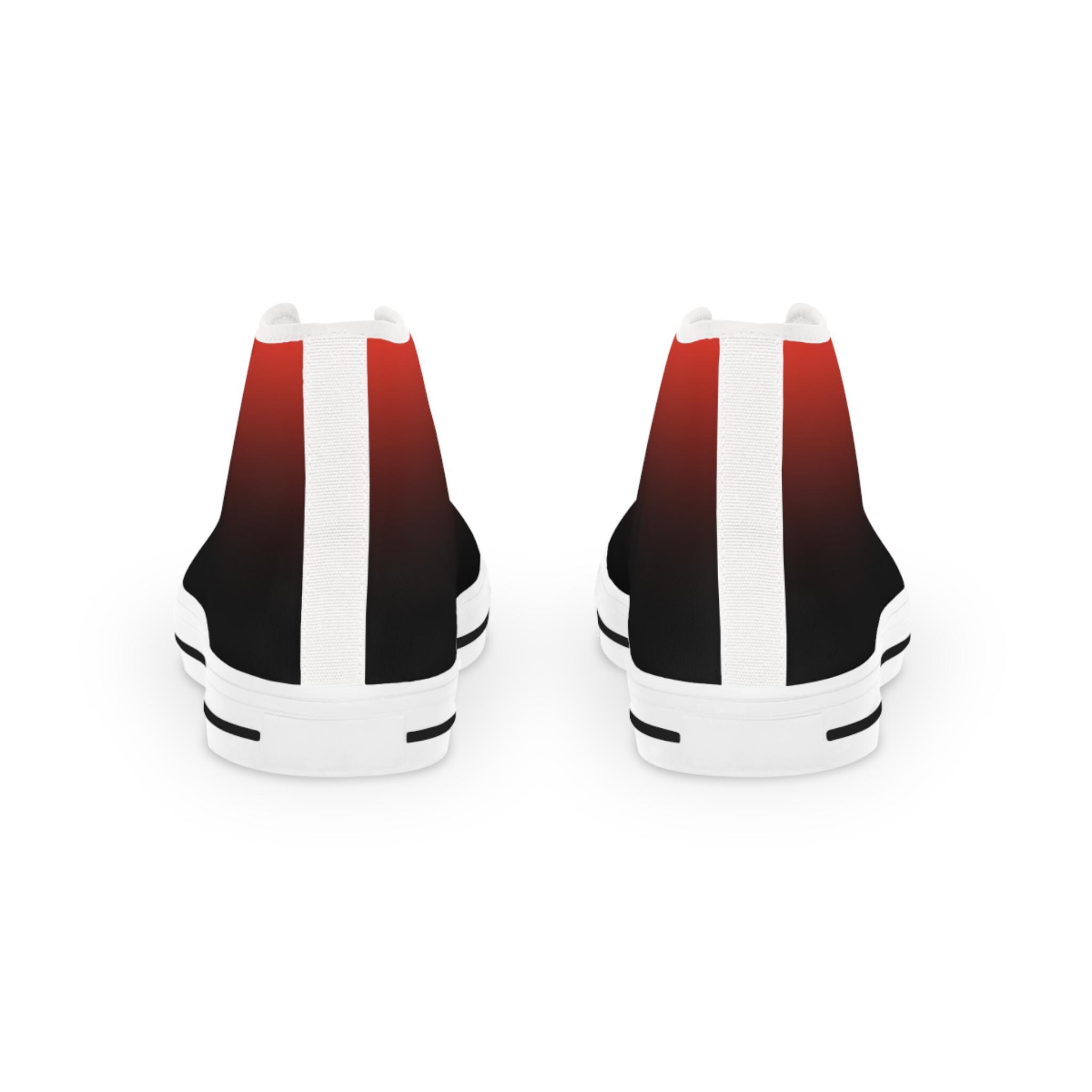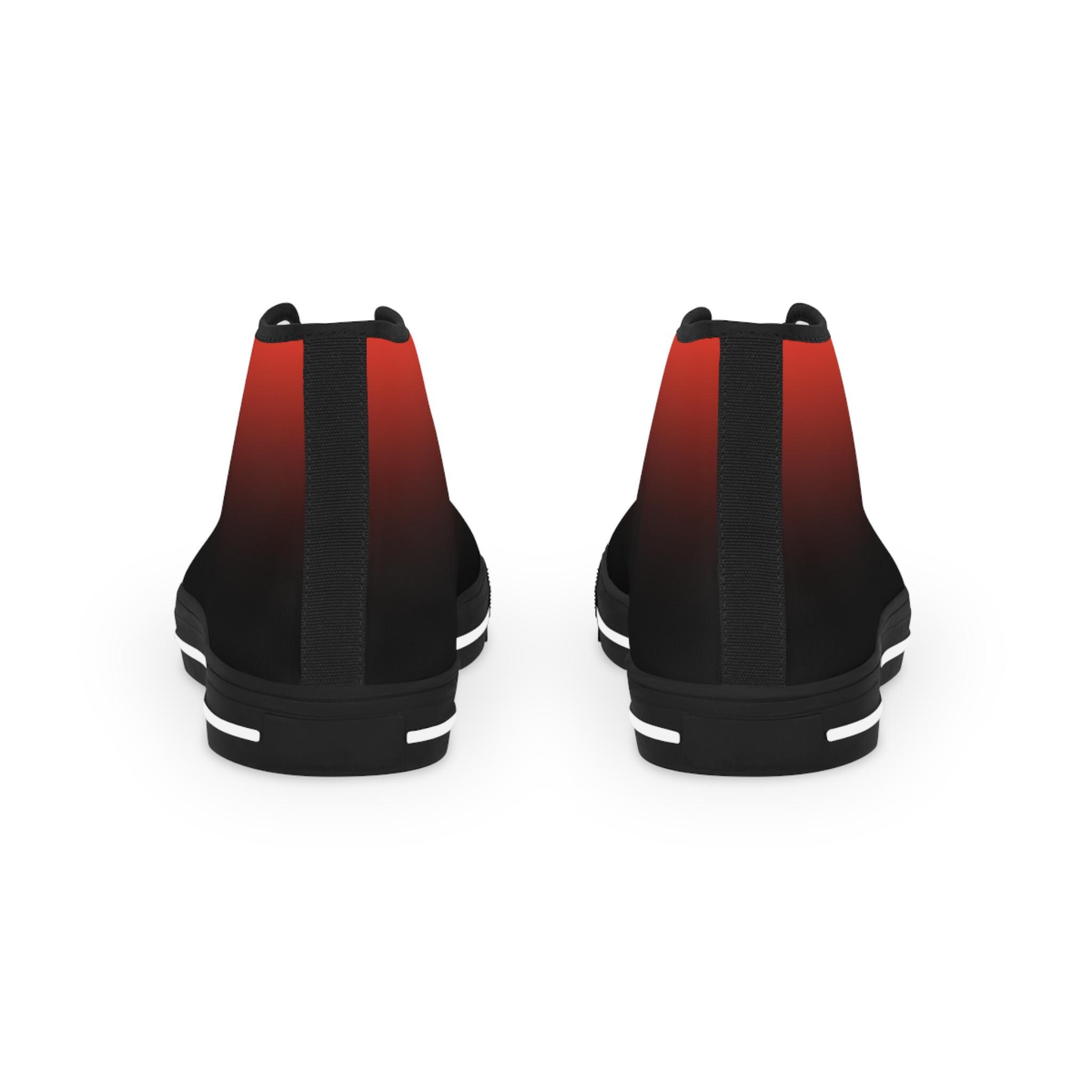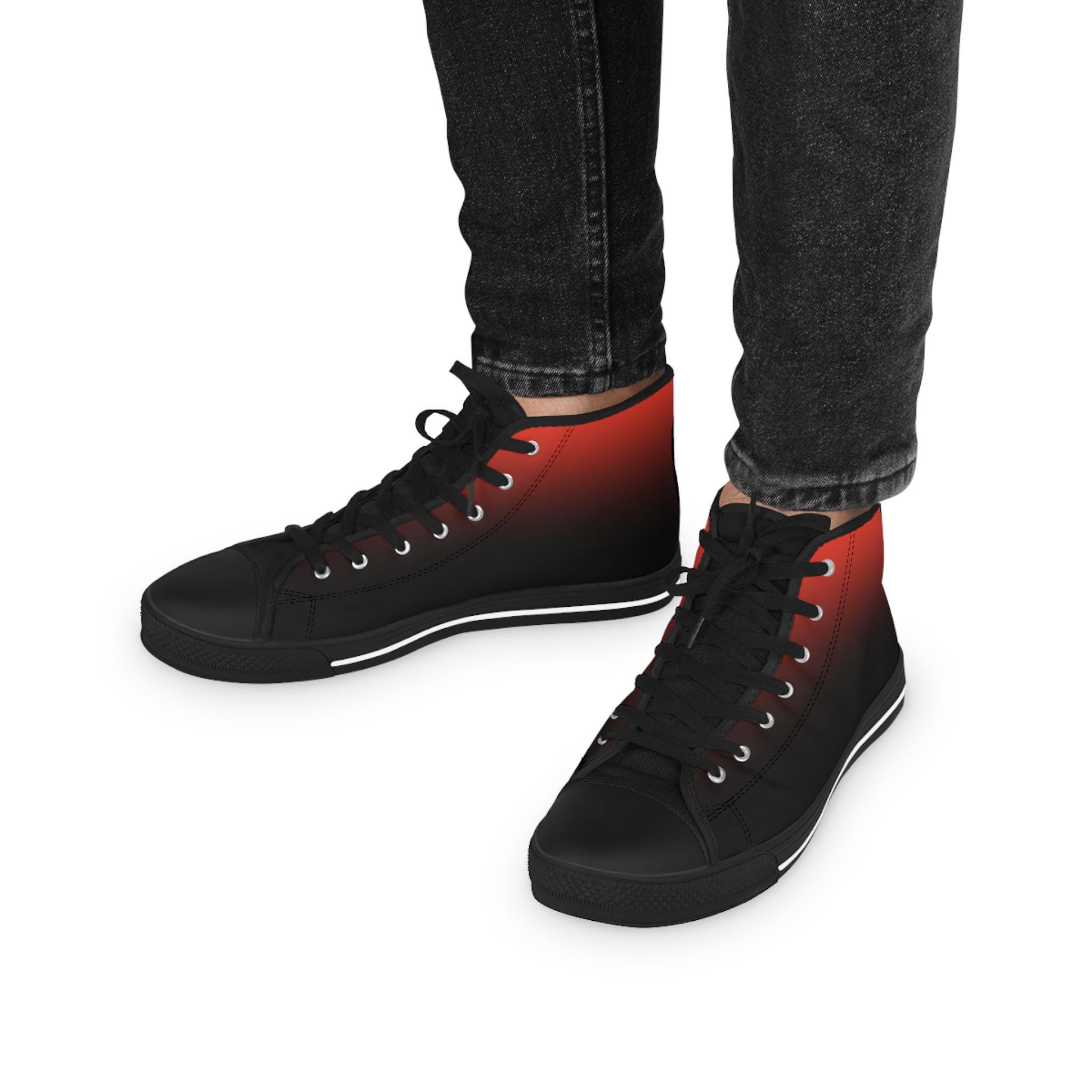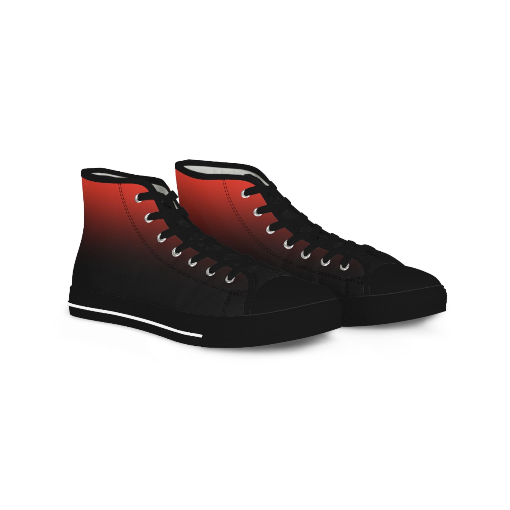 These high-top canvas sneakers bring a quiet, streetwise energy to every step. The subtle red-to-black gradient wraps the full shoe — sides and tongue — fading into crisp white toe caps and laces. Lightweight polyester canvas and a foamed lining keep them soft against your feet, while EVA memory-foam insoles cushion each stride and absorb impact. Reinforced pleather toes and a durable rubber outsole stand up to daily wear, and silver metal eyelets add a sharp, utilitarian detail. Wear them with rolled jeans or a laid-back outfit to add a hint of edge and color without shouting — they settle into your routine and make the everyday feel intentional.