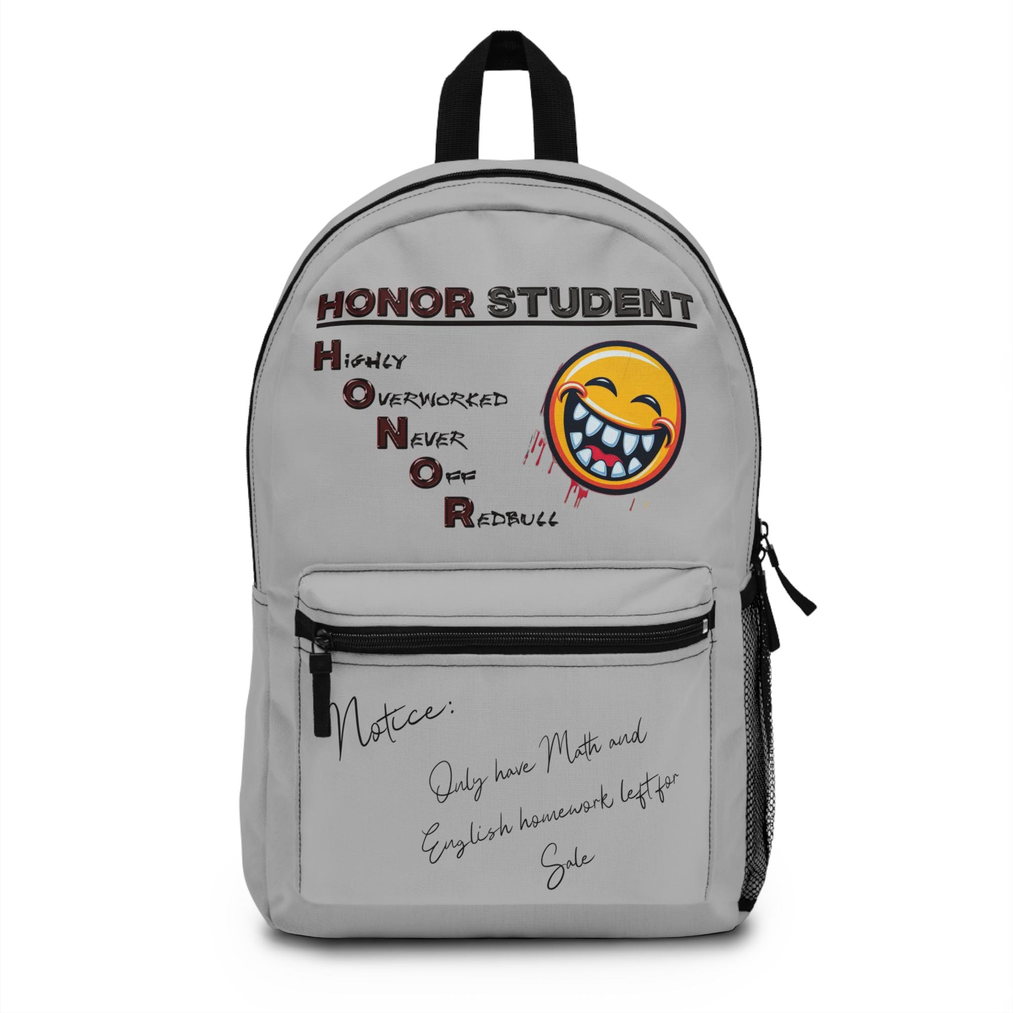 These lightweight backpacks carry more than books — they carry moments. With playful artwork across the front pocket and a clean white canvas body, this bag brings a casual, school-day energy to every commute. Padded mesh on the back and straps keeps shoulders comfortable during long walks between classes or campus, while multiple zip pockets and a dedicated laptop/tablet compartment keep notes, chargers, and loose papers organized. The roomy 13-liter main pocket plus front and side pockets make it easy to sort daily essentials. Thoughtfully assembled in the USA from durable polyester, this backpack stands up to everyday scuffs and quick rain, and its sewn-in blank name tag makes it simple to personalize for class use or travel.