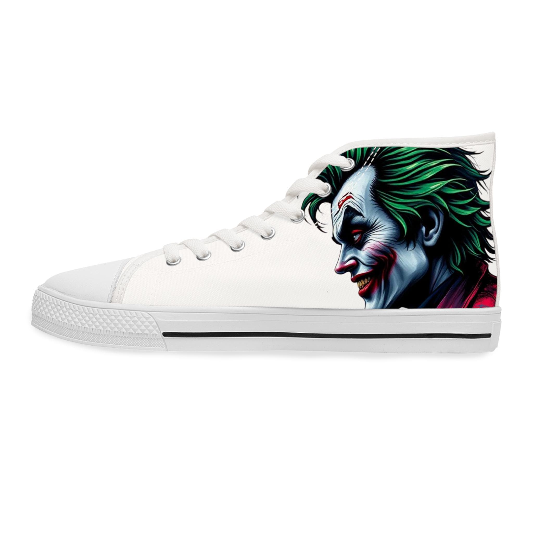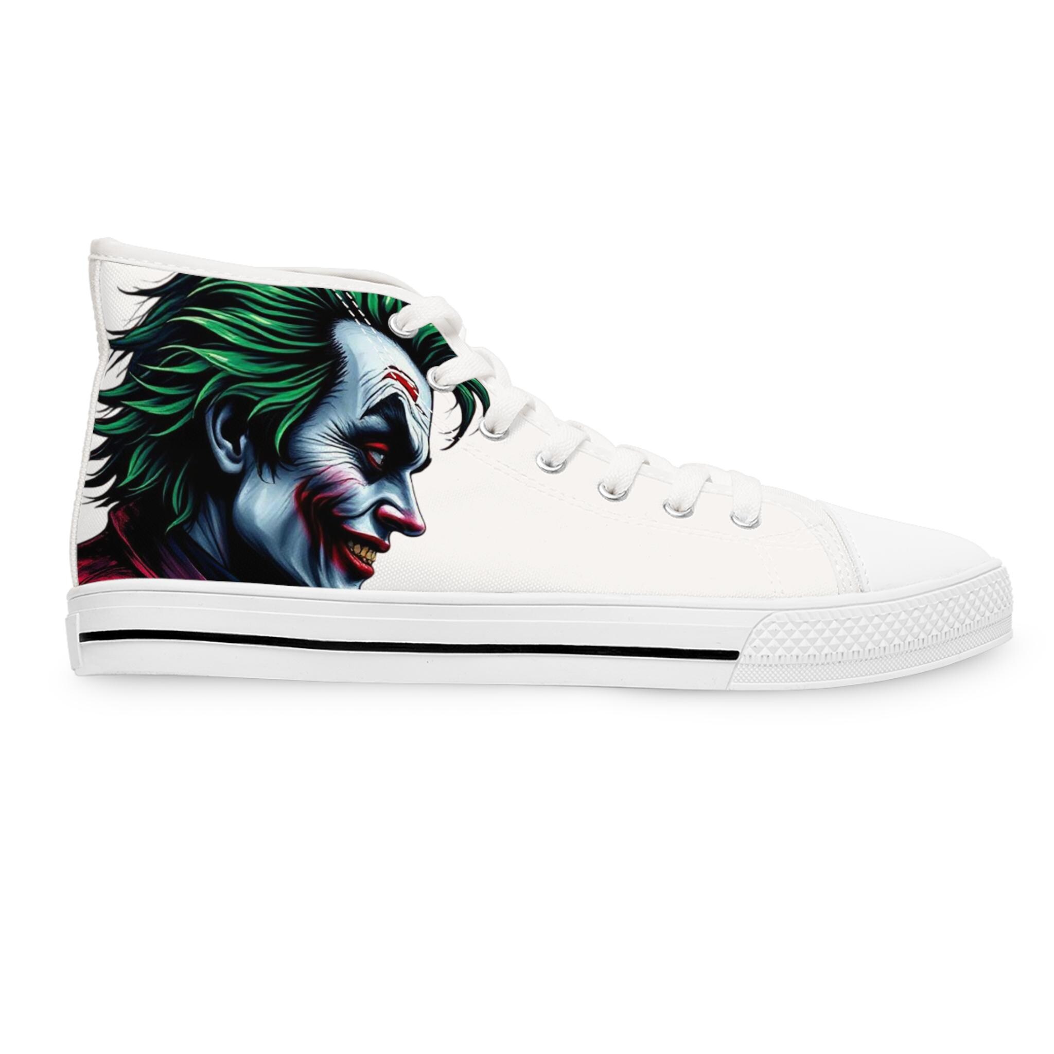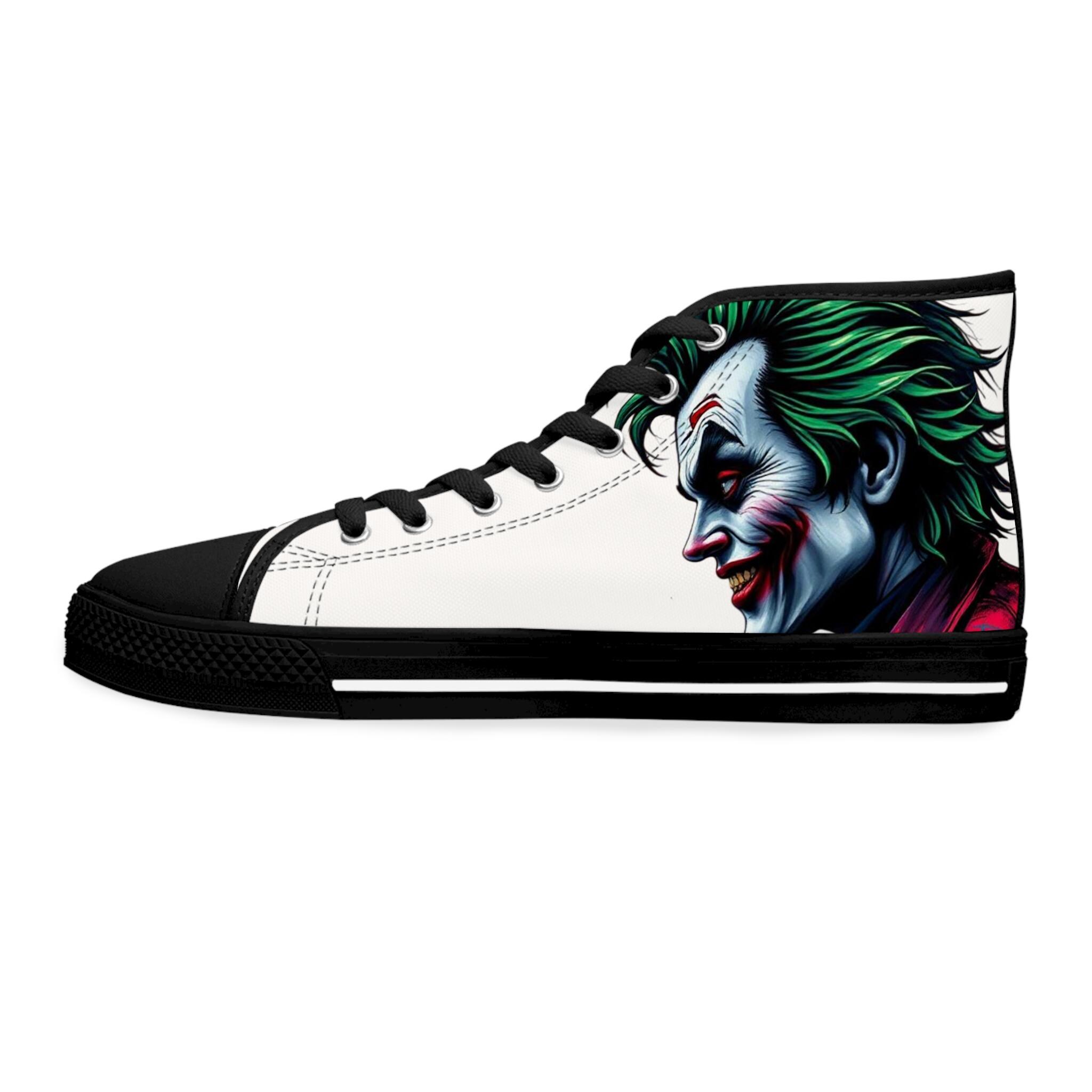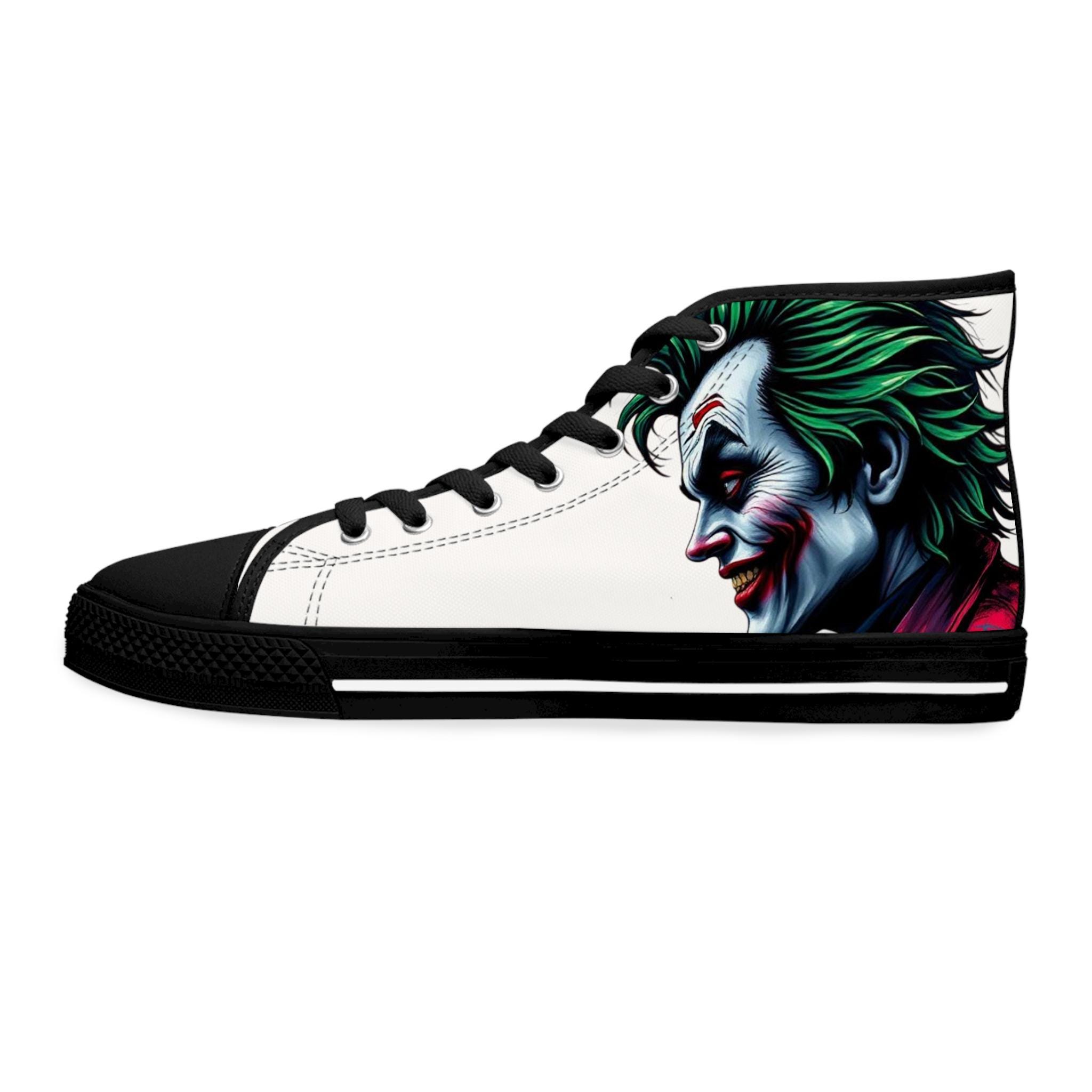Step into a darker kind of playful rebellion. These high-top sneakers merge bold, cinematic artwork with everyday wearability — the painted, green-haired grin peeking from the ankle adds a mischievous edge to jeans, layered looks, or festival outfits. The canvas upper keeps the silhouette light and breathable, while the pleather toe and durable rubber sole handle city streets and late-night roamings. Memory foam EVA insoles cushion each step so you can wander longer without the ache. Wear them when you want an outfit that whispers trouble and tells a story: comic-book energy, midnight walks, and soundtrack-ready moments all wrapped into one pair.