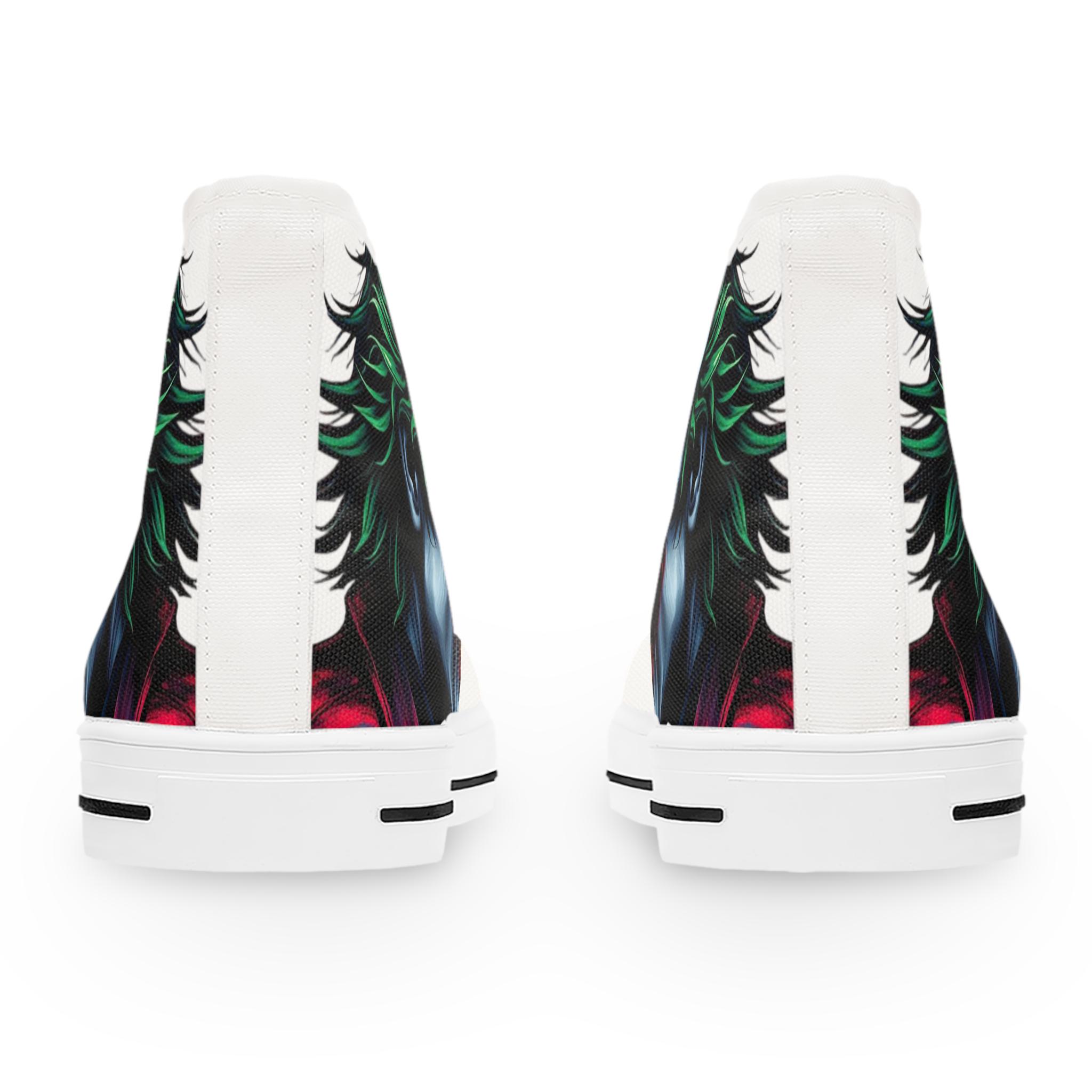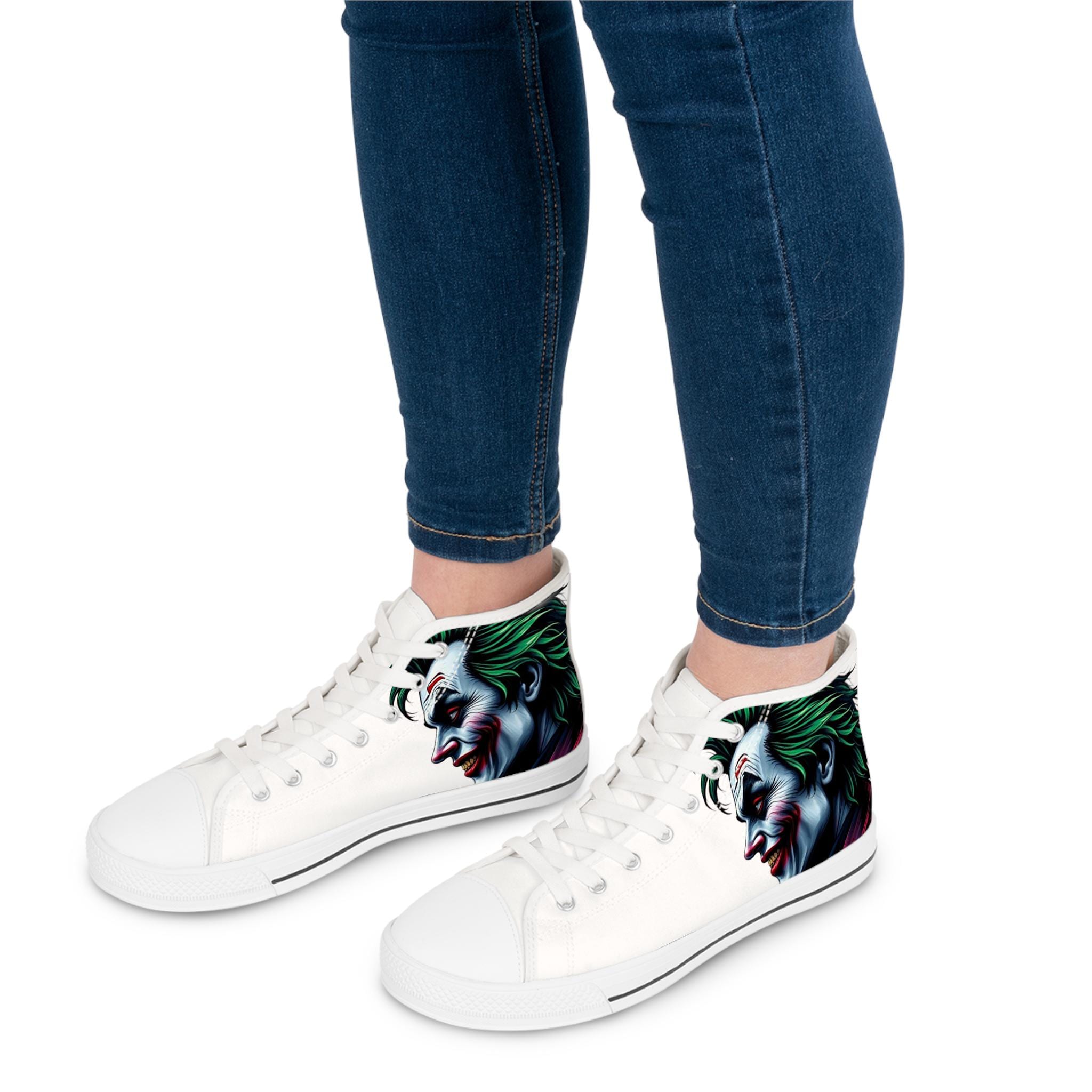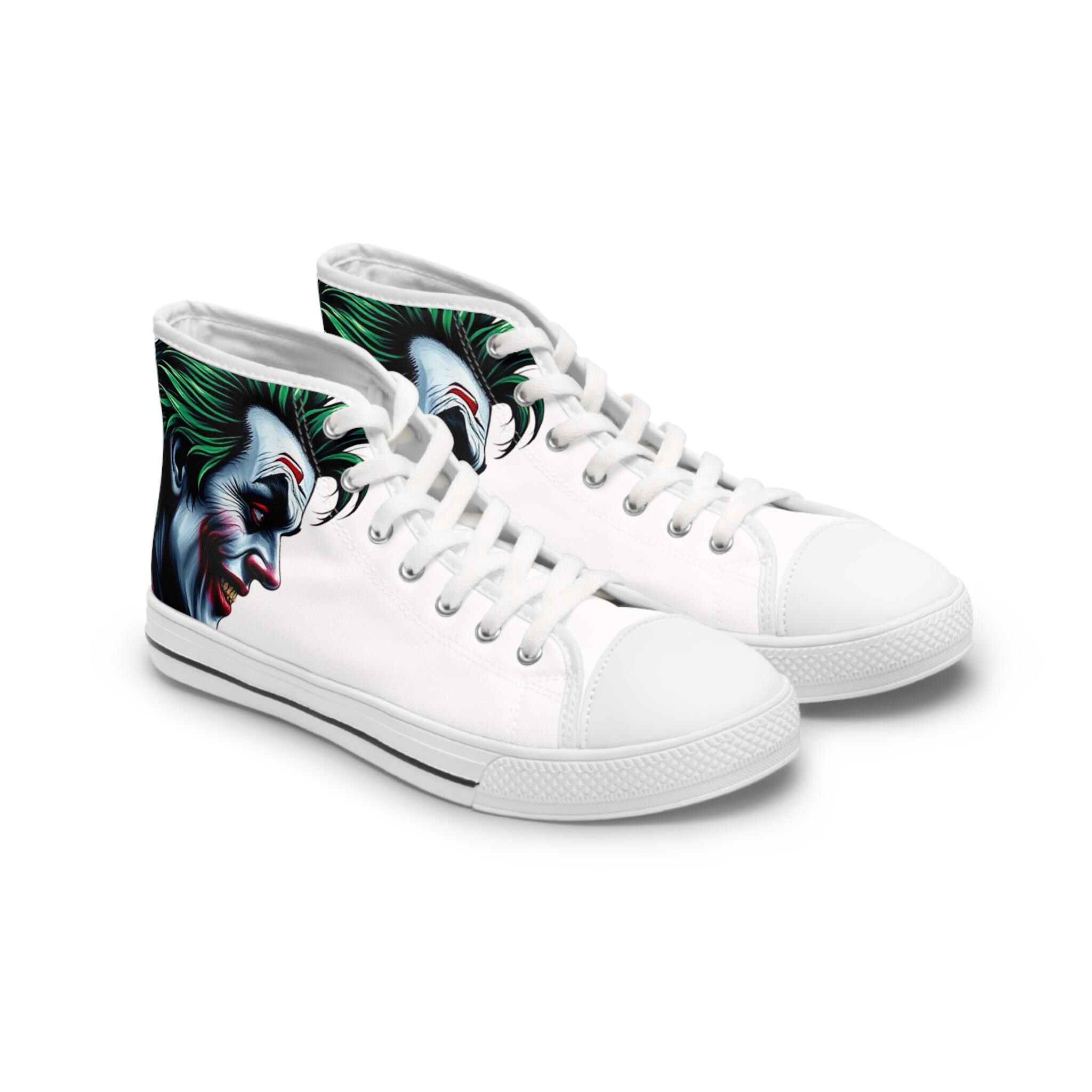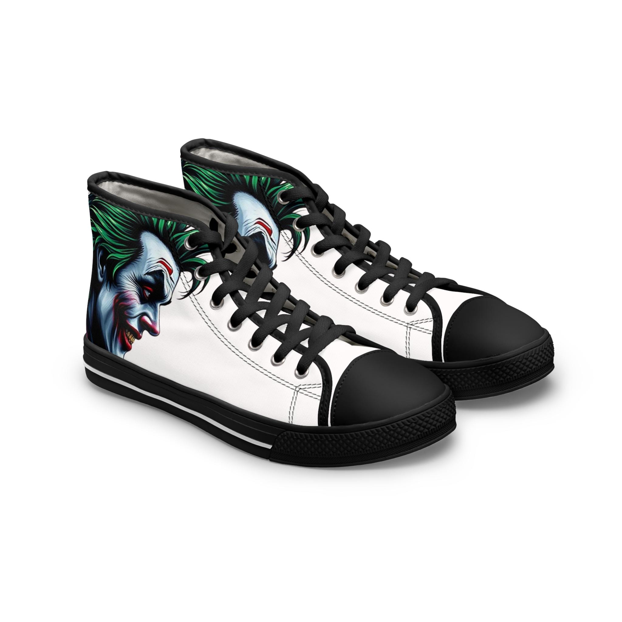 Step into a darker kind of playful rebellion. These high-top sneakers merge bold, cinematic artwork with everyday wearability — the painted, green-haired grin peeking from the ankle adds a mischievous edge to jeans, layered looks, or festival outfits. The canvas upper keeps the silhouette light and breathable, while the pleather toe and durable rubber sole handle city streets and late-night roamings. Memory foam EVA insoles cushion each step so you can wander longer without the ache. Wear them when you want an outfit that whispers trouble and tells a story: comic-book energy, midnight walks, and soundtrack-ready moments all wrapped into one pair.
