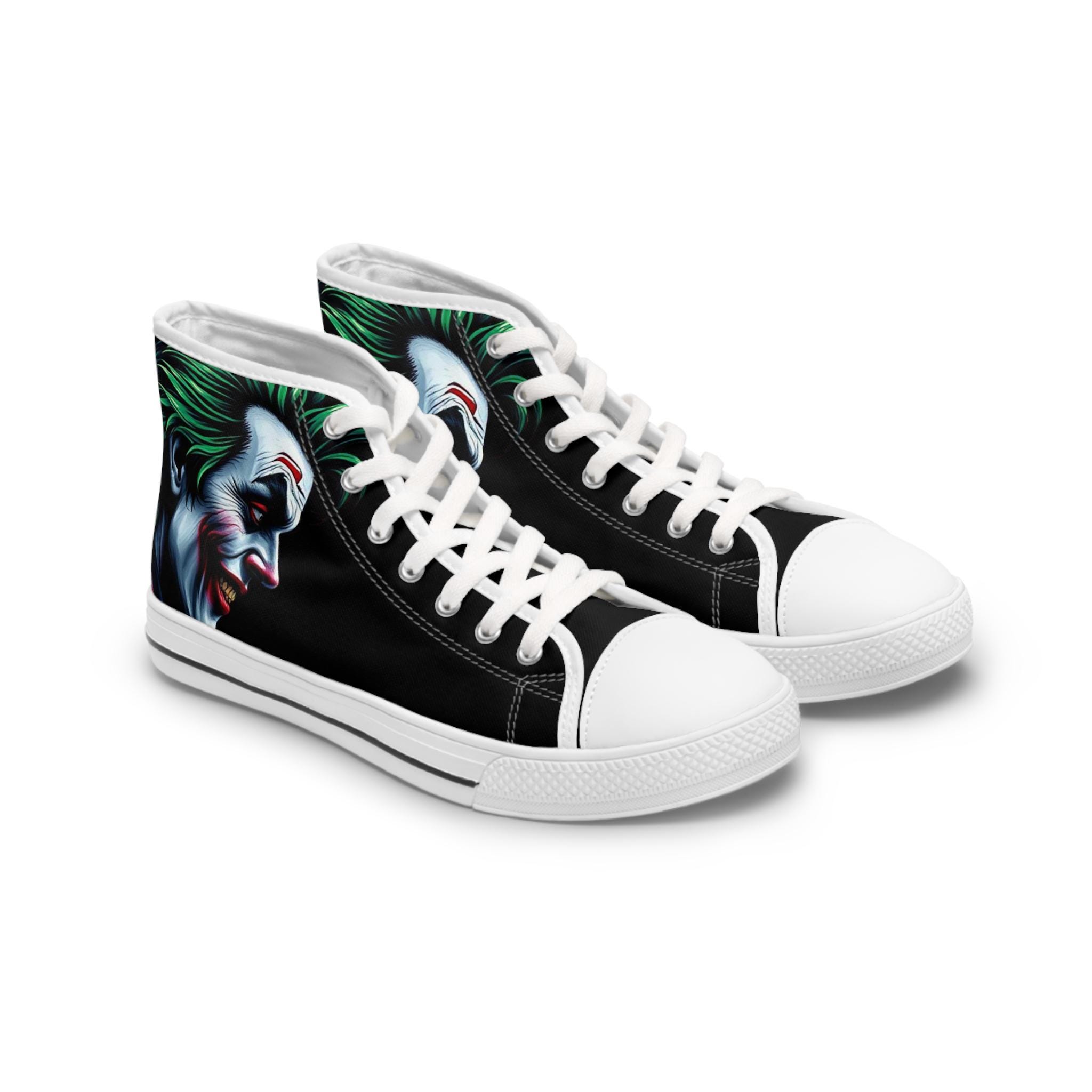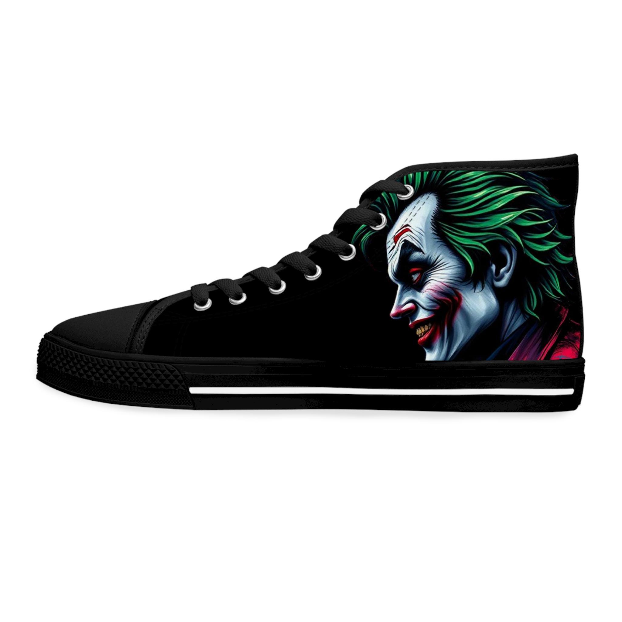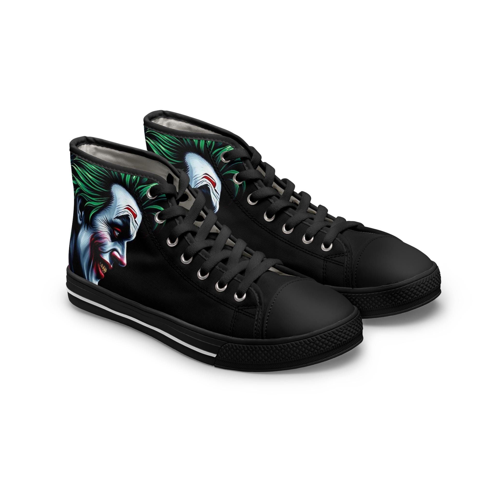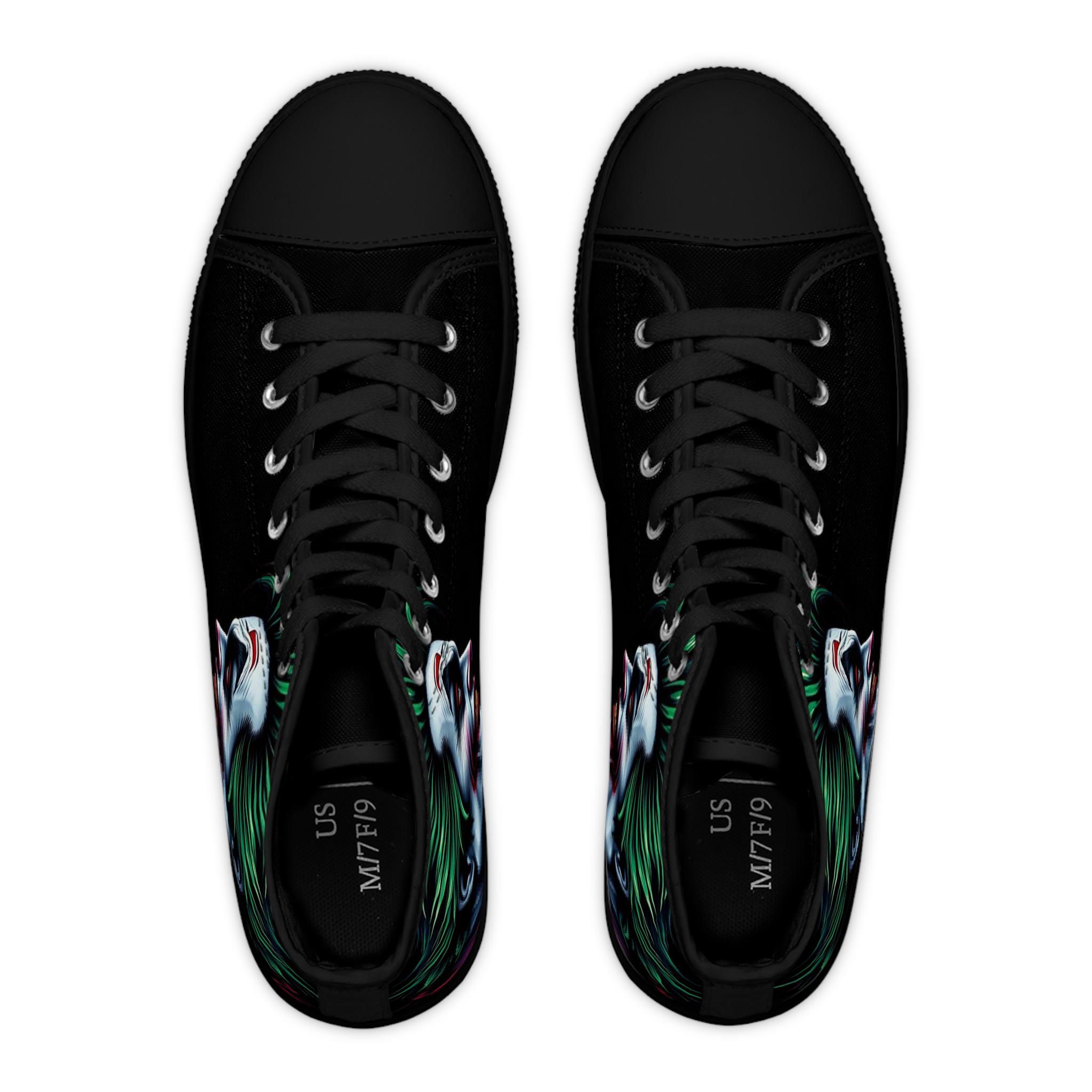 Joker Face Illustration Women's High Top Sneakers | Clown Villain Art, Black Green