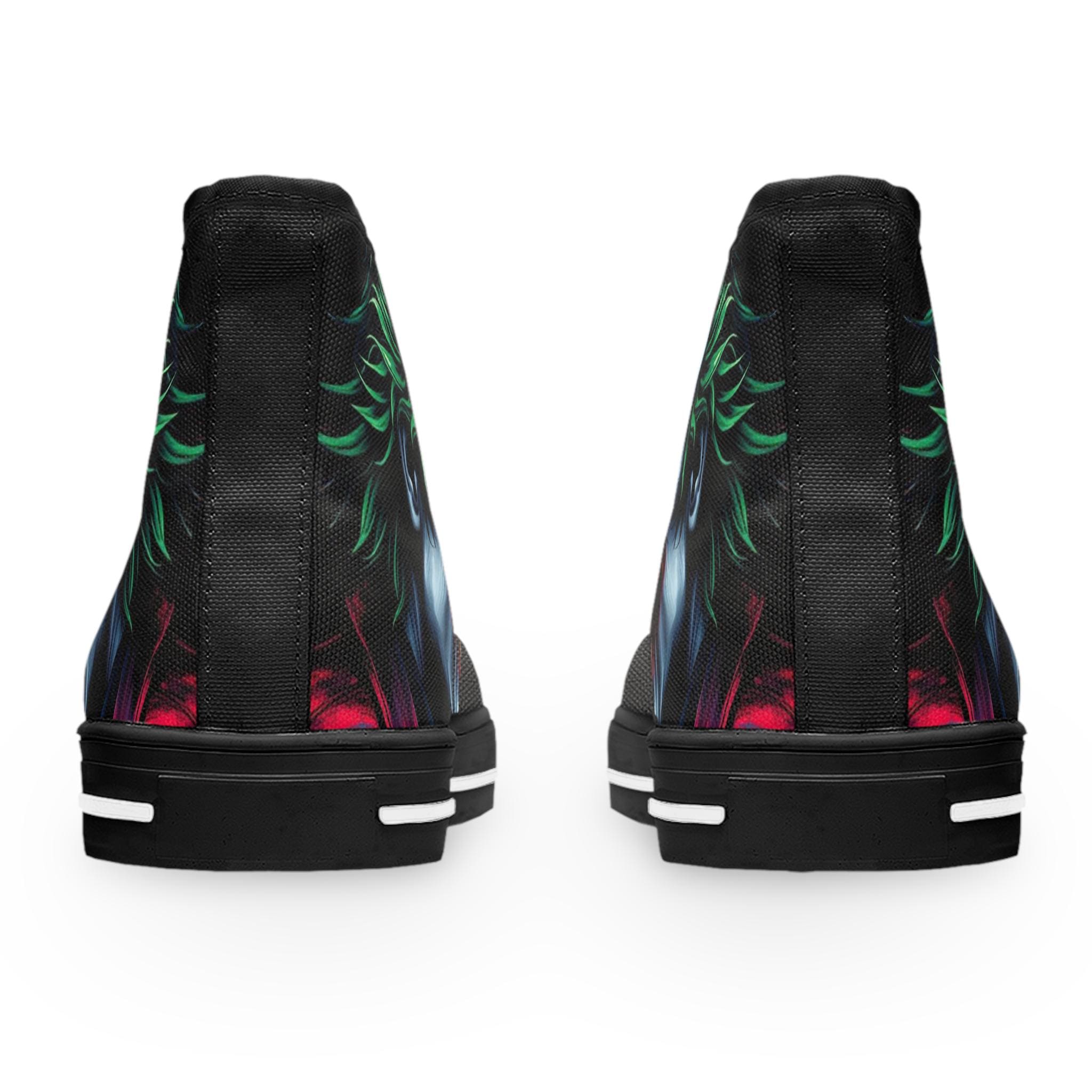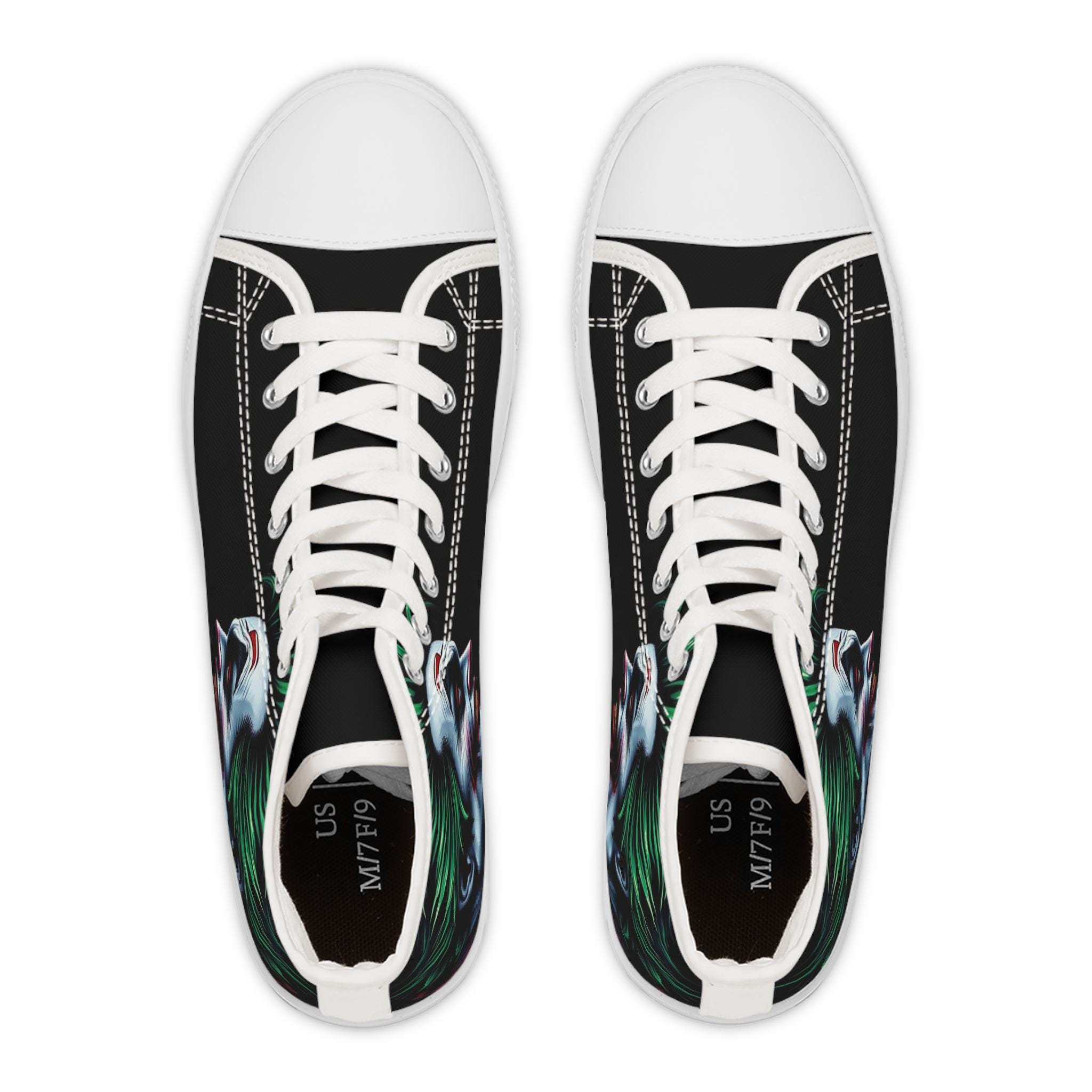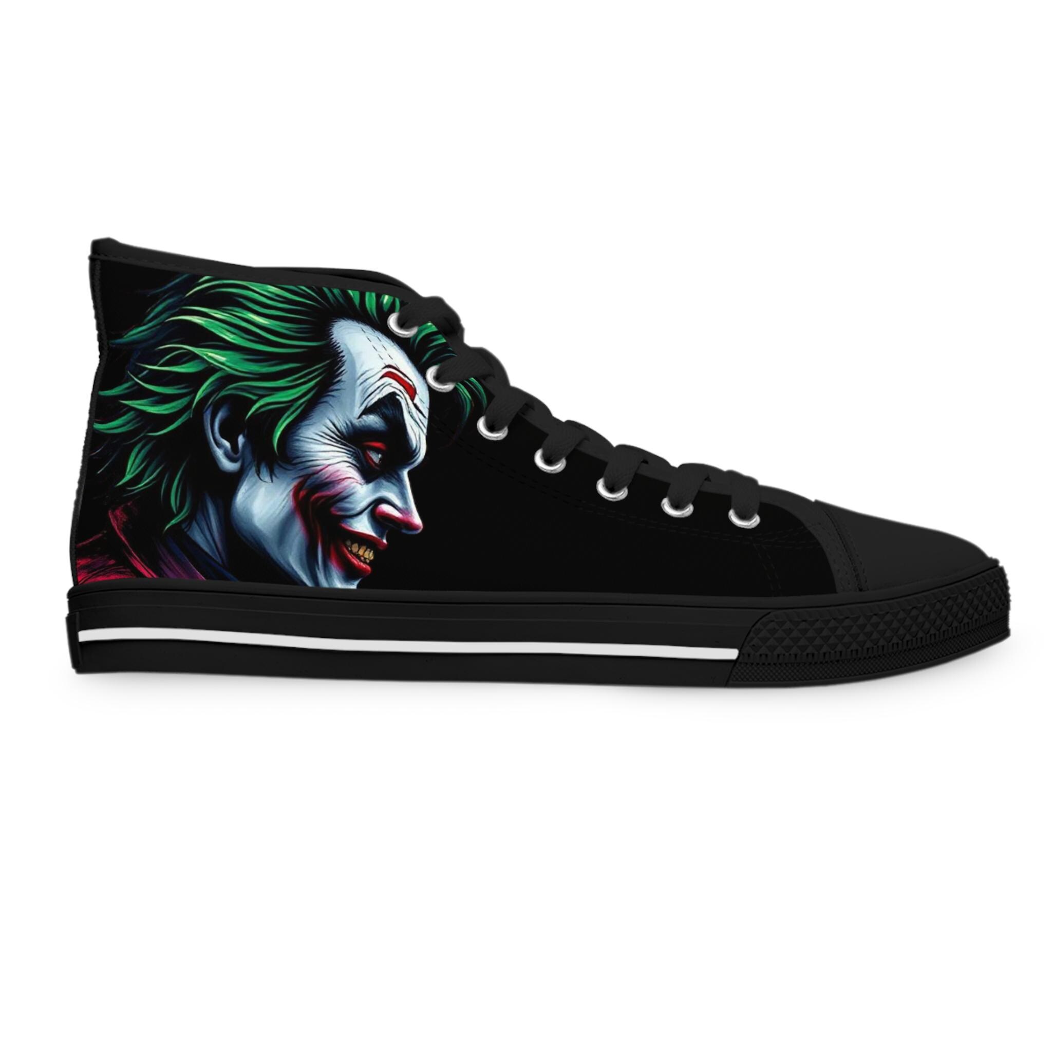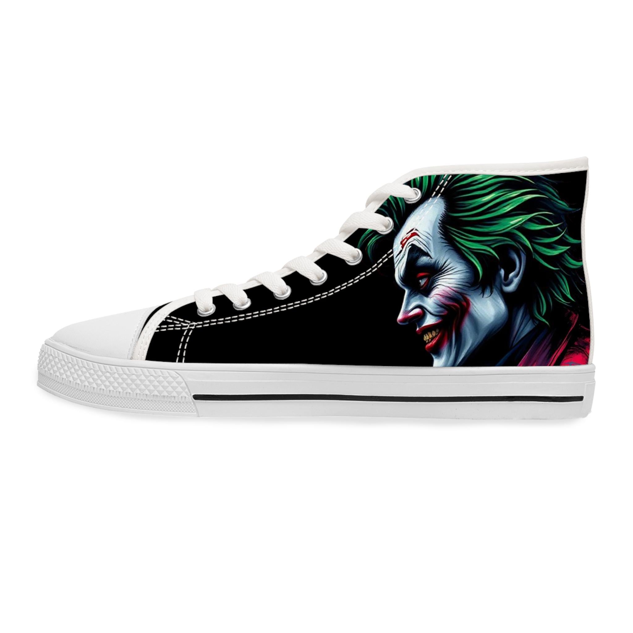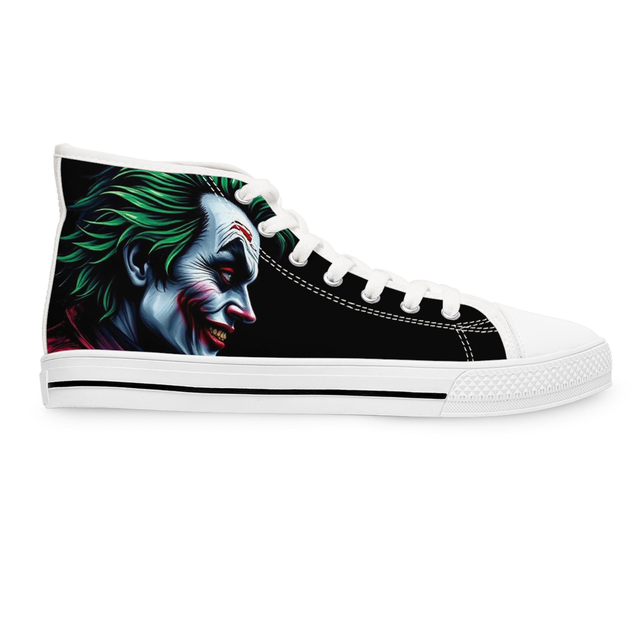 Joker Face Illustration Women's High Top Sneakers | Clown Villain Art, Black Green