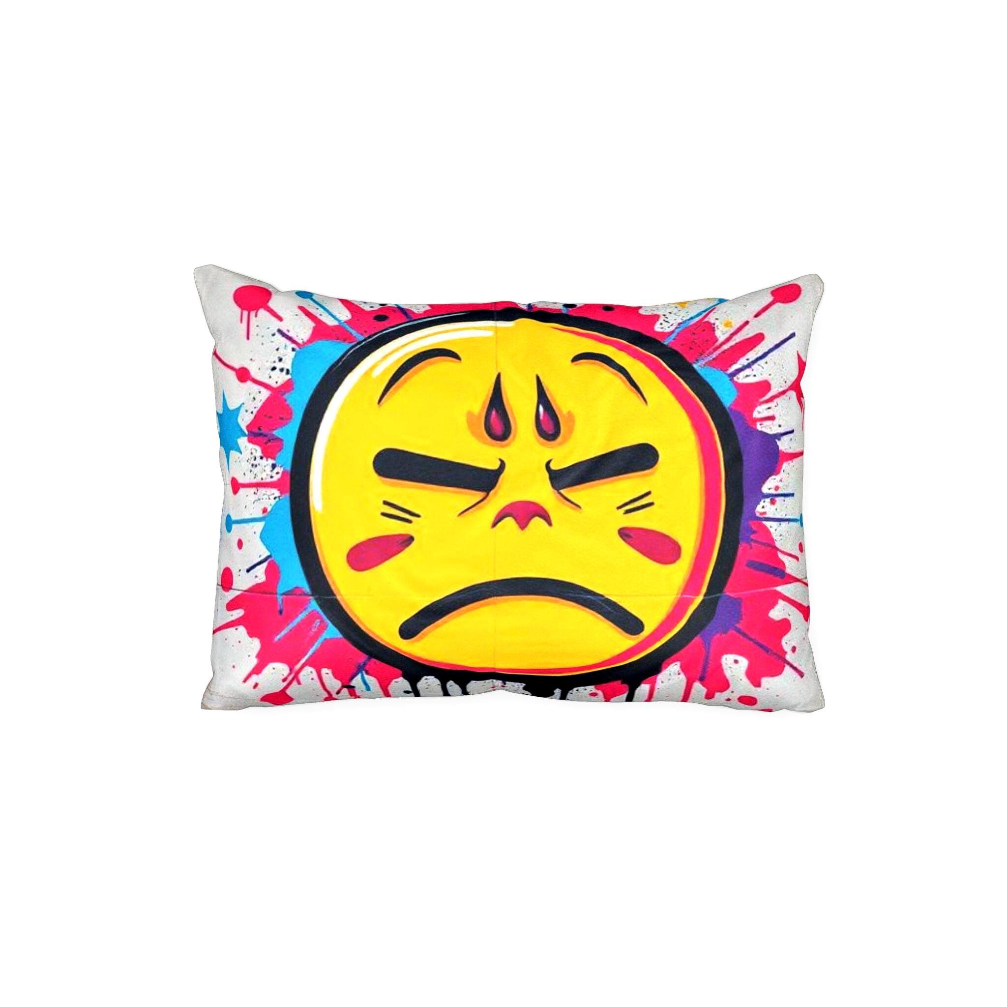 A bold, street-art inspired pillow sham that brings color and attitude to any relaxed space. The front shows a graffiti-style emotive face—bright yellow with expressive furrows and paint-splatter accents in magenta and cyan—set against a crisp white background. The cotton surface feels smooth and resilient, so the printed artwork stays vibrant wash after wash. It layers naturally on a sofa, daybed, or the head of a bed, adding a playful yet edgy mood to downtime. This sham suits someone who favors urban art, eclectic decor, or a pop-culture edge in their living space. It arrives lightweight and breathable, easy to swap in when you want to change the room’s energy for a weekend hangout, a casual gathering, or simply to make your chill zone more expressive.