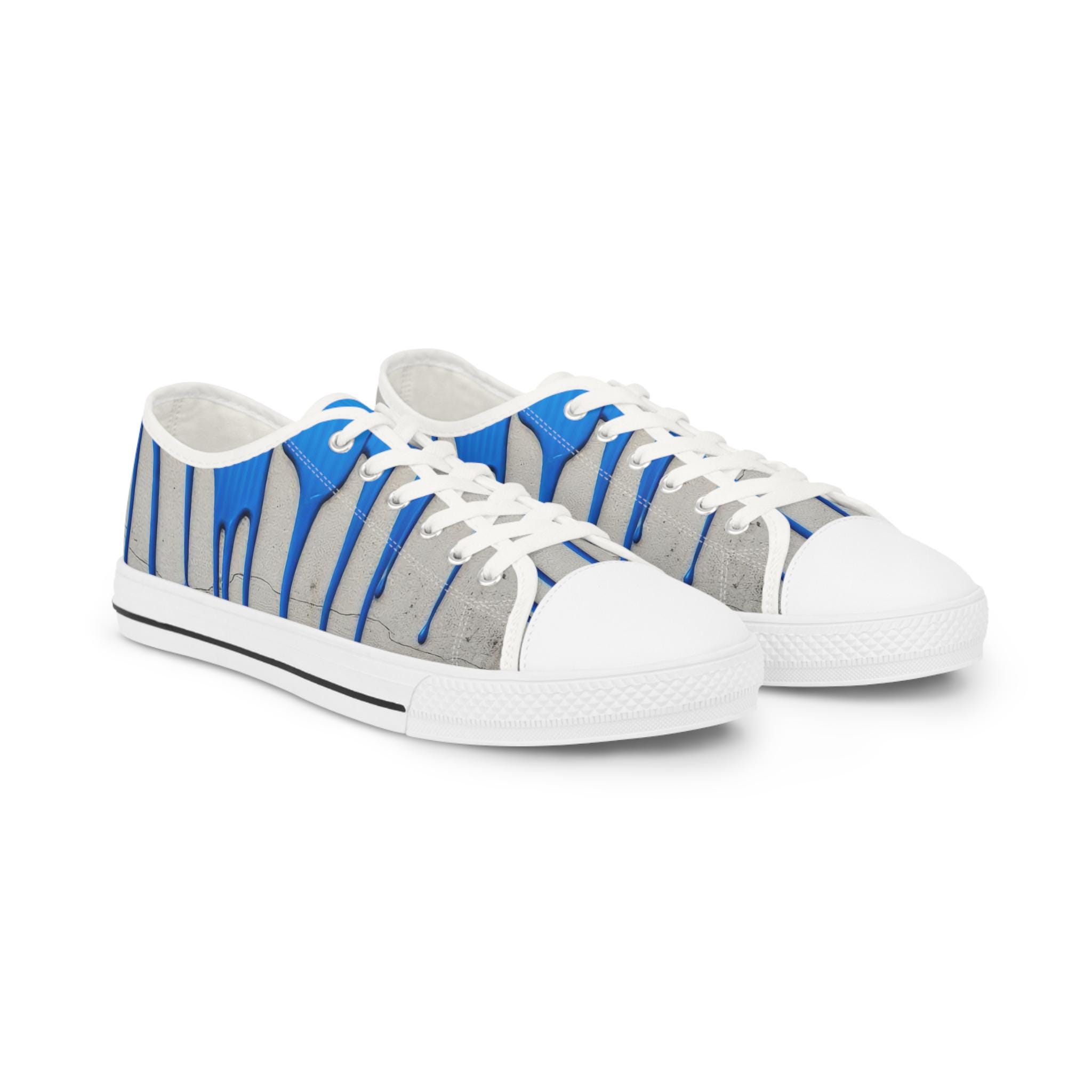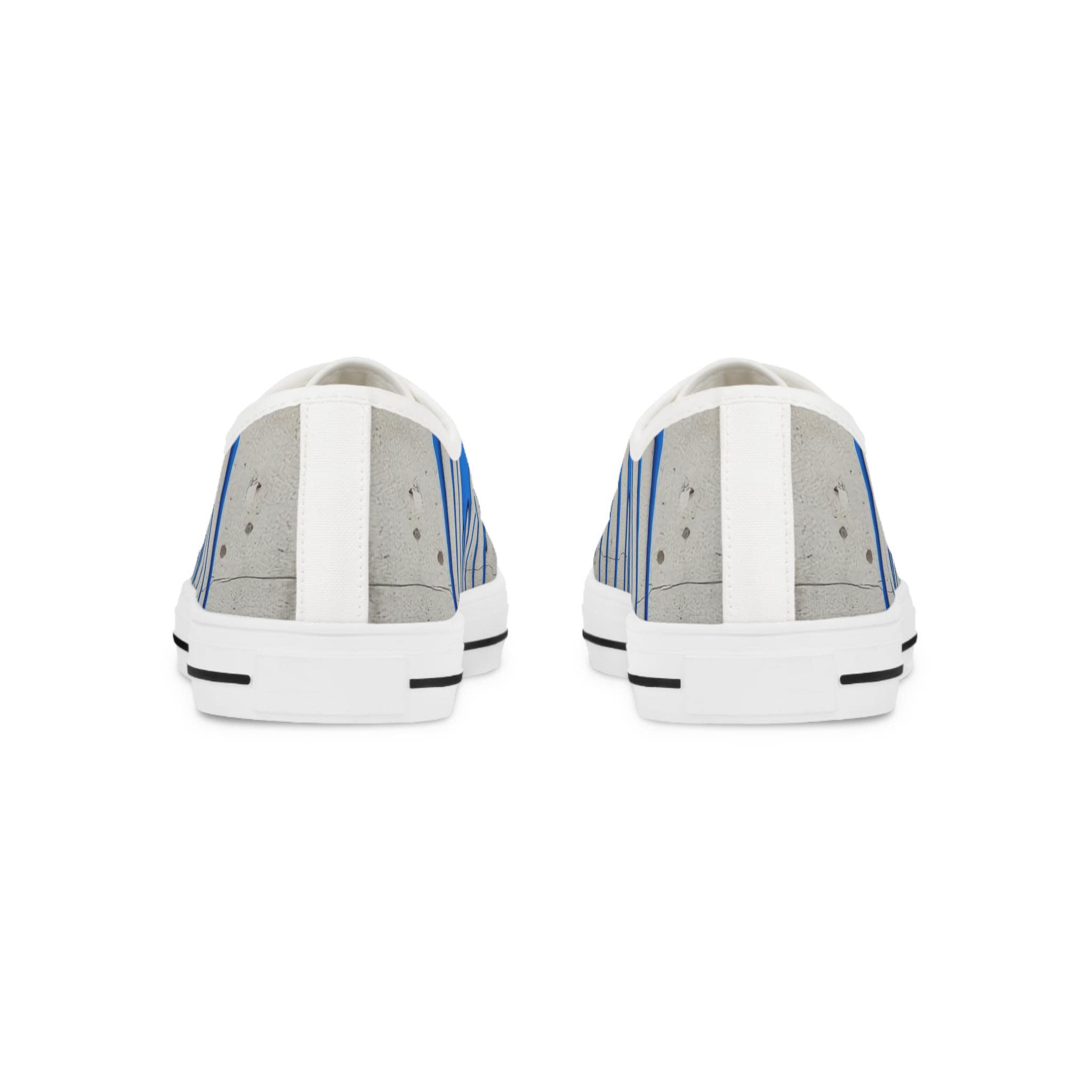 These low-top sneakers bring a crisp, energetic pulse to everyday steps. Bright sky-blue panels flow into soft gray accents, creating a modern, slightly retro silhouette that reads playful and confident. Lightweight canvas and memory-foam insoles cushion long walks while EVA shock absorption keeps each stride responsive. The wrapped design means the pattern wraps around the sides and tongue for a cohesive look from every angle. Wear them with cropped jeans, casual chinos, or a favorite dress to add a splash of color and dependable comfort to your routine. Note: they run slightly larger than typical sizing — consider sizing down if you prefer a snug fit.
