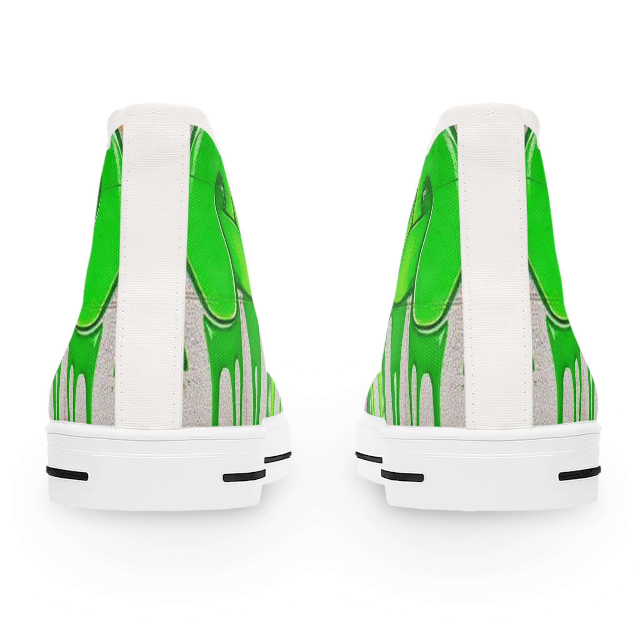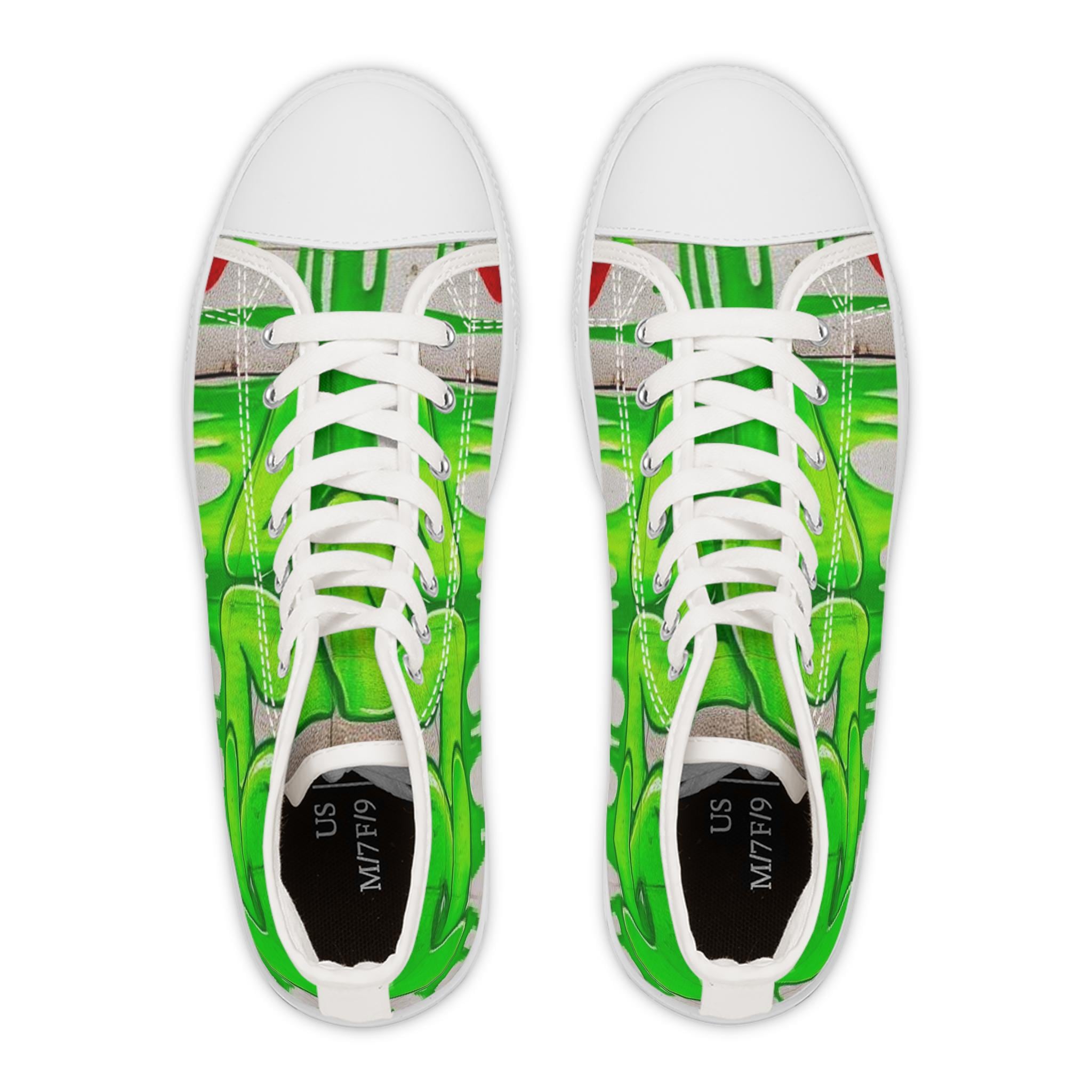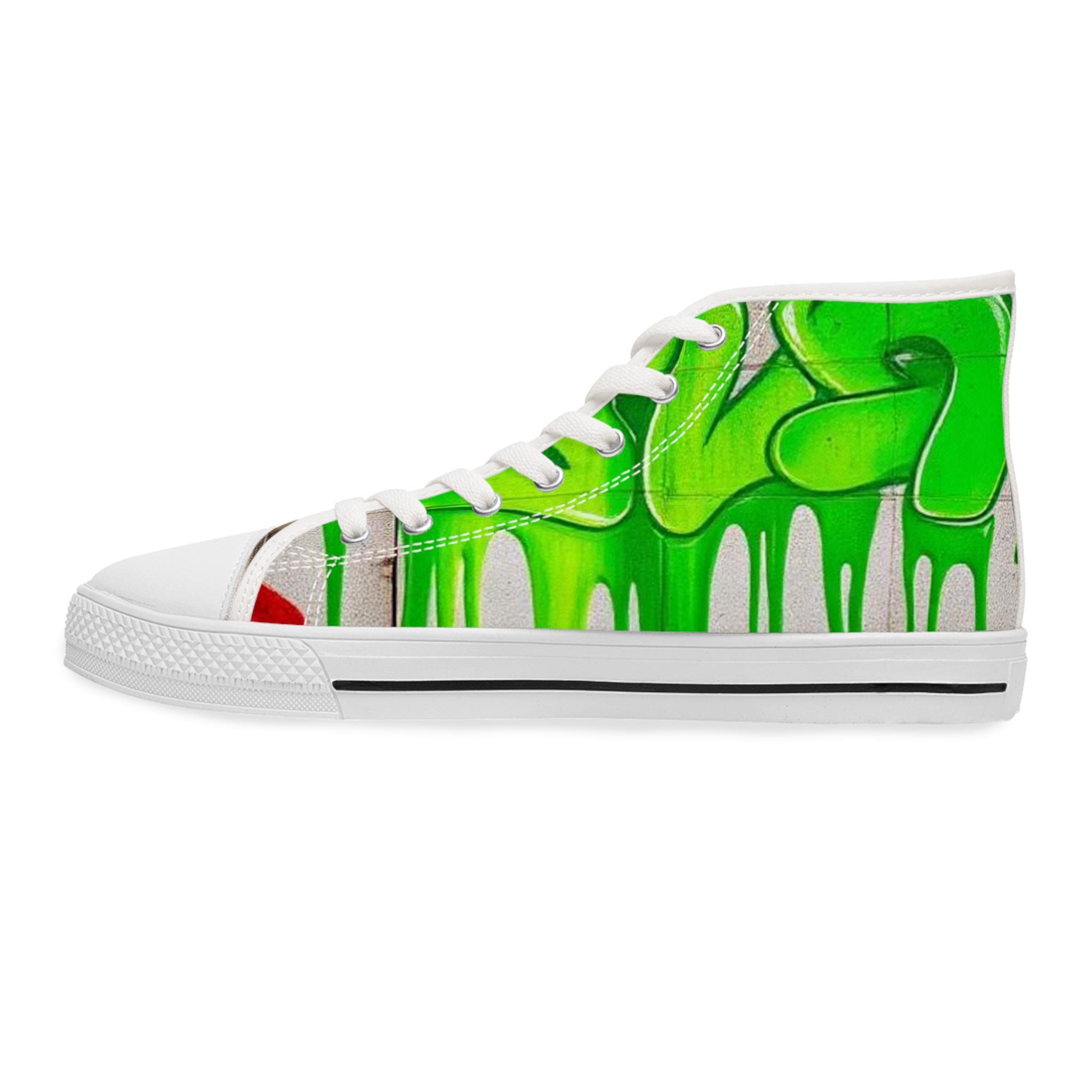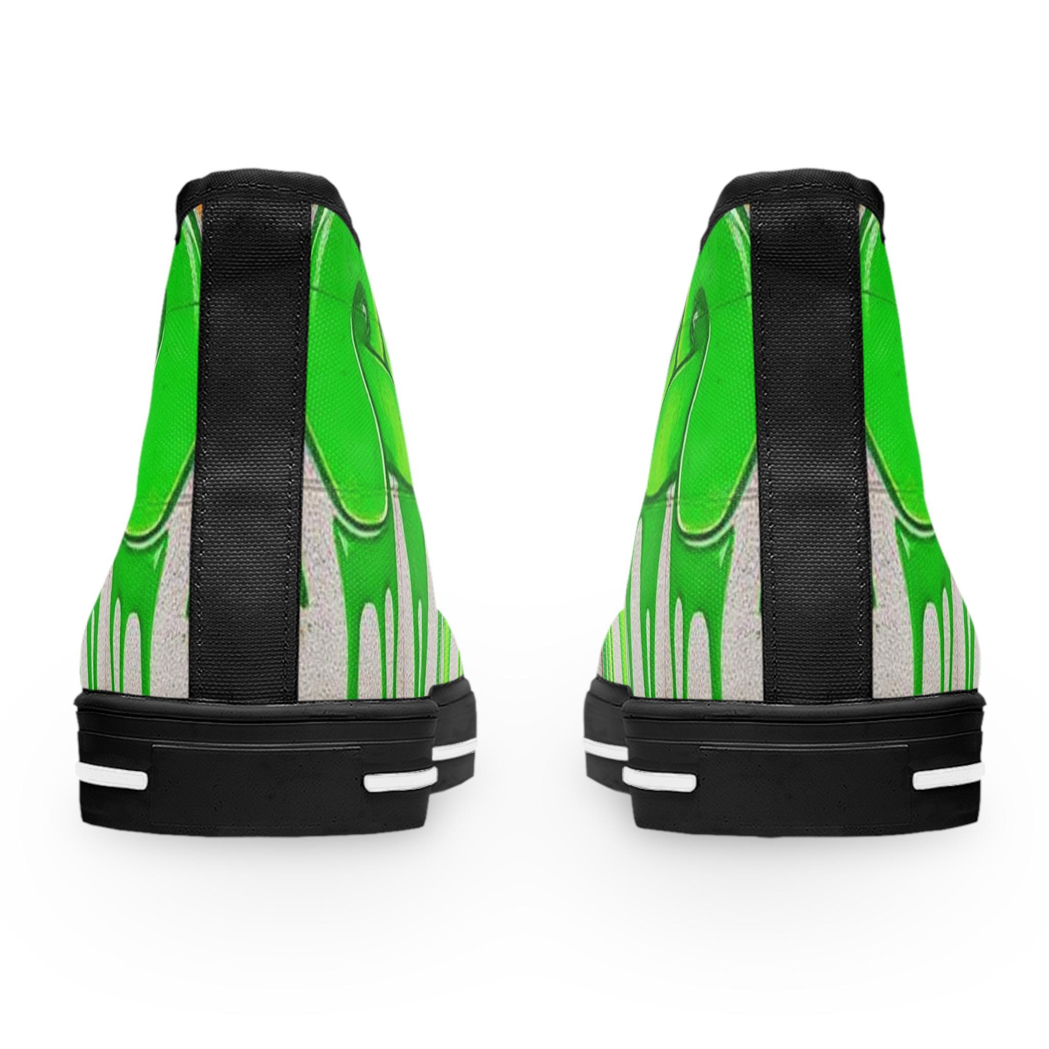 Step into a bold, playful rhythm with these high-top sneakers. The vibrant green, bubble-like graphic wraps every panel — sides, tongue, and toe — creating a lively, street-art energy that makes each step feel expressive. Lightweight canvas and a foamed lining cushion your foot, while EVA memory-foam insoles absorb shock so you can wander city blocks, art walks, or weekend markets without compromise. Metal eyelets and a pleather toe cap add durability where it counts. These sneakers belong on someone who chooses color over blending in and collects moments more than things.