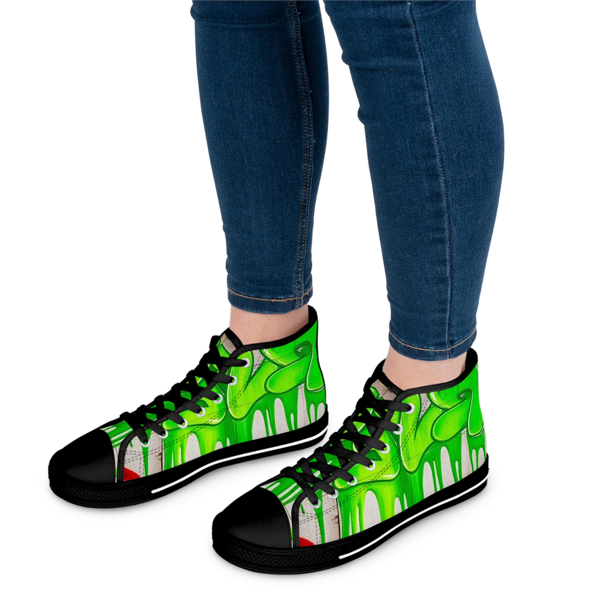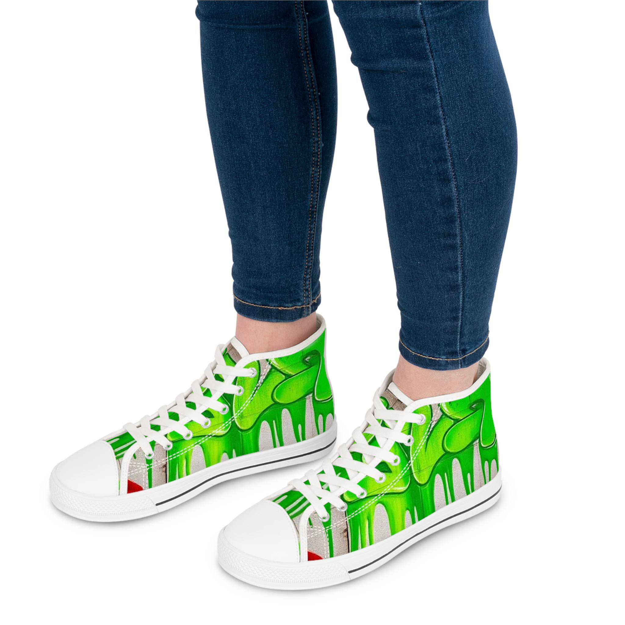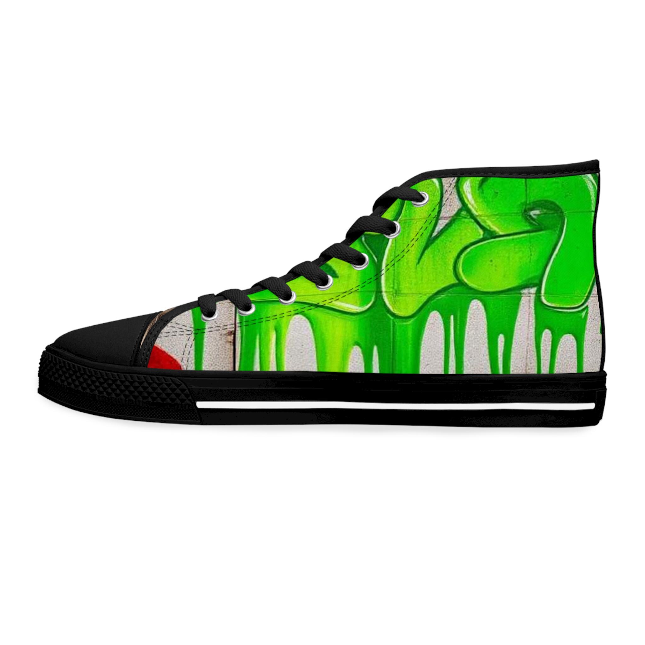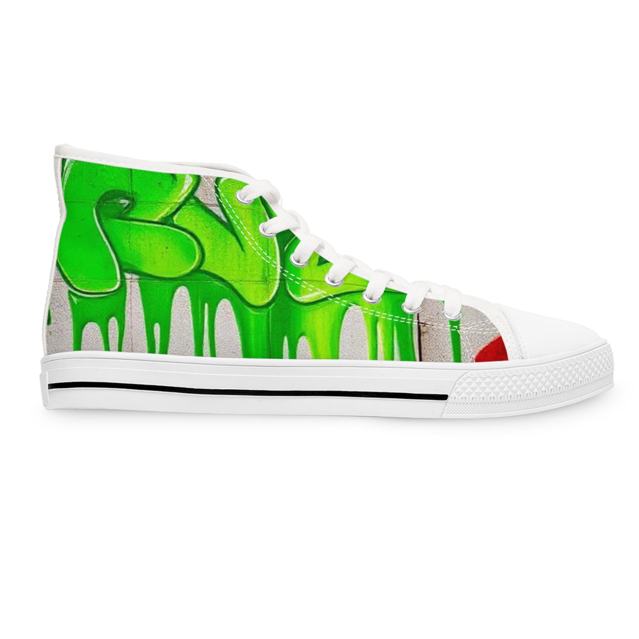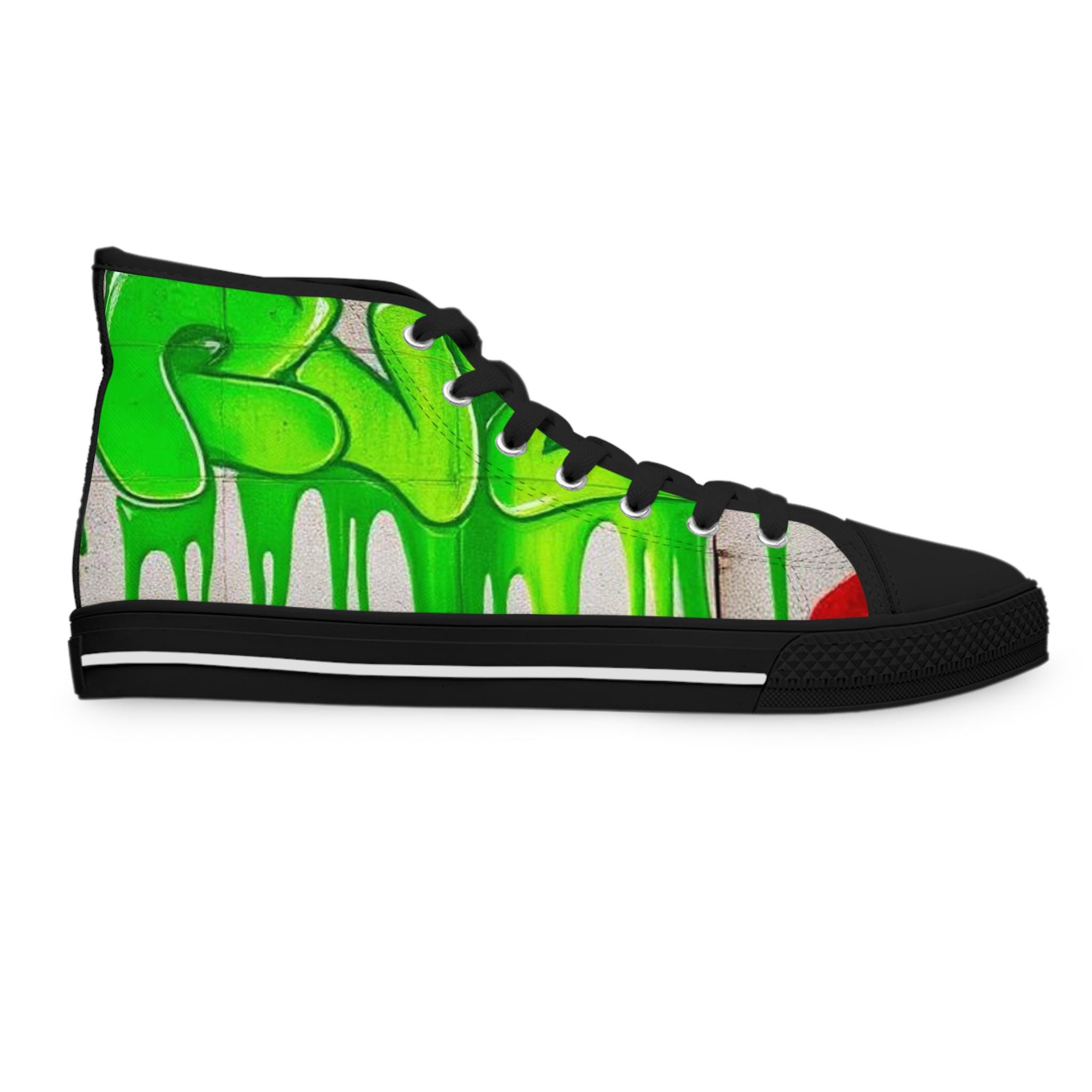 Step into a bold, playful rhythm with these high-top sneakers. The vibrant green, bubble-like graphic wraps every panel — sides, tongue, and toe — creating a lively, street-art energy that makes each step feel expressive. Lightweight canvas and a foamed lining cushion your foot, while EVA memory-foam insoles absorb shock so you can wander city blocks, art walks, or weekend markets without compromise. Metal eyelets and a pleather toe cap add durability where it counts. These sneakers belong on someone who chooses color over blending in and collects moments more than things.