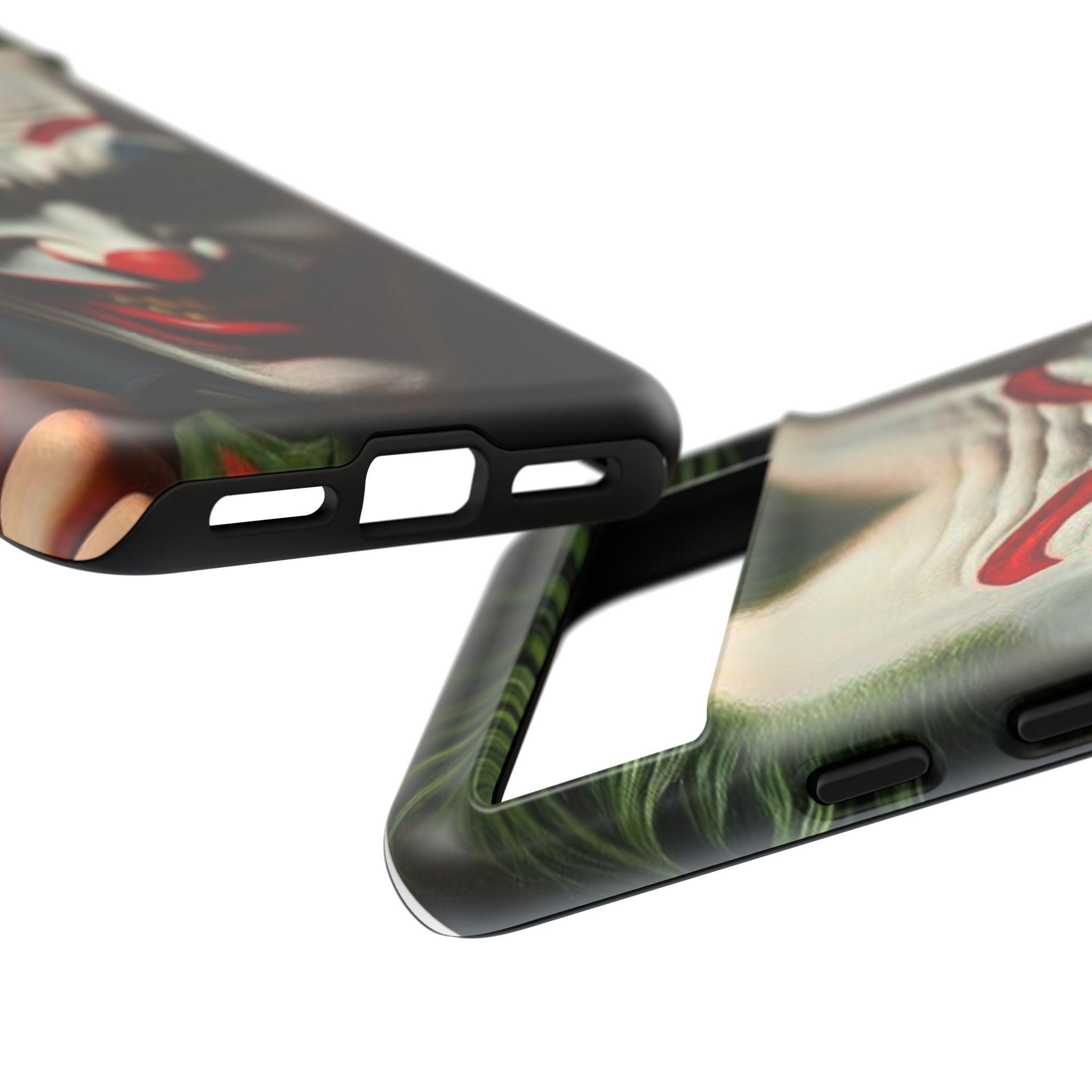 This rugged phone case wraps your device in bold, high-contrast artwork while keeping it safe through daily knocks and drops. The dual-layer construction — a tough polycarbonate shell with a soft TPU silicone liner — absorbs shocks and resists impact, while the full-wrap 3D print maintains rich color and detail. UV protection helps the design stay vivid outdoors and clear port openings keep every connector and button accessible. Slim enough to support wireless charging yet built to defend, this case feels secure in hand and shows off dramatic style without sacrificing protection. Note care instructions: avoid high-alcohol liquids, prolonged direct sunlight, and heavy contact with lotions to preserve the print.