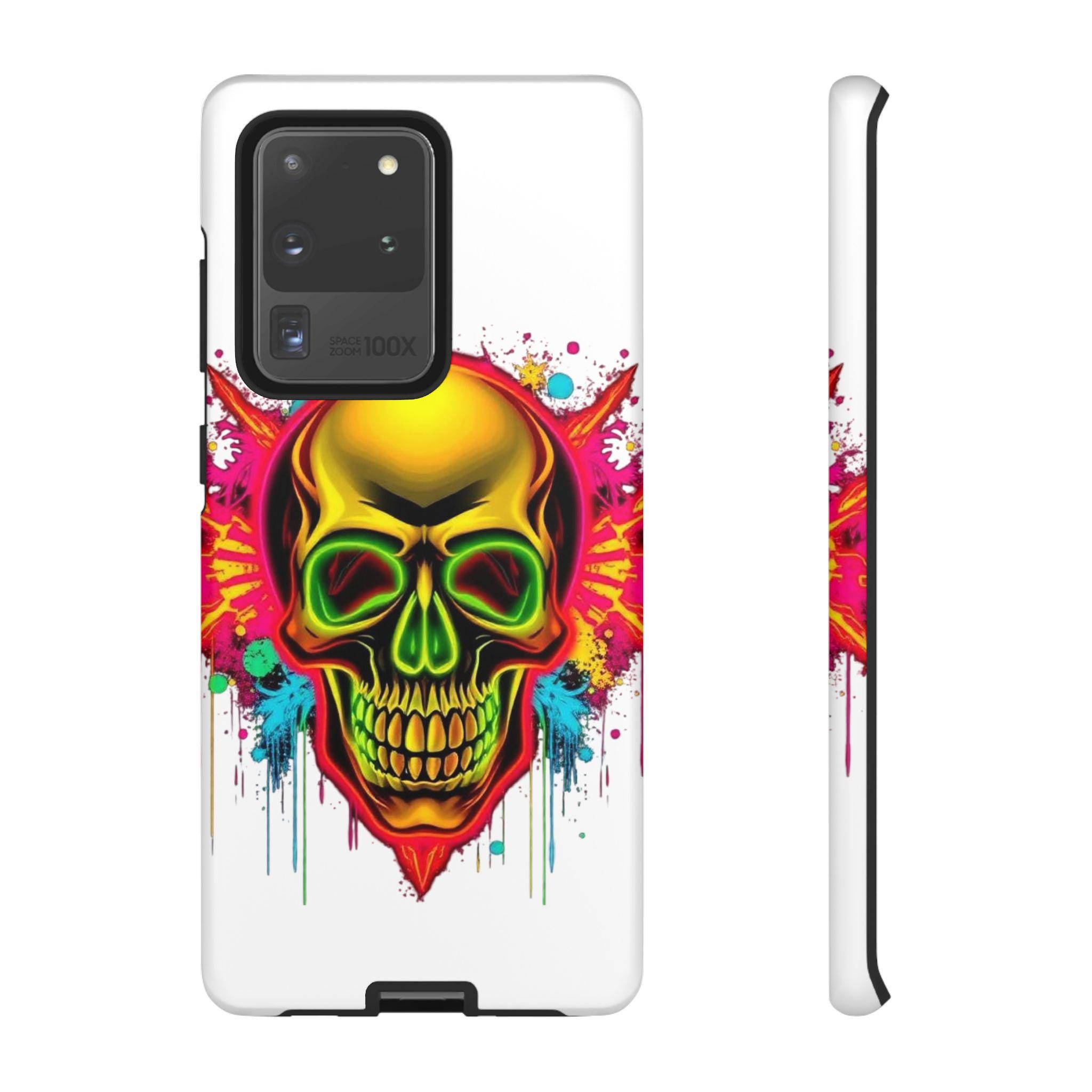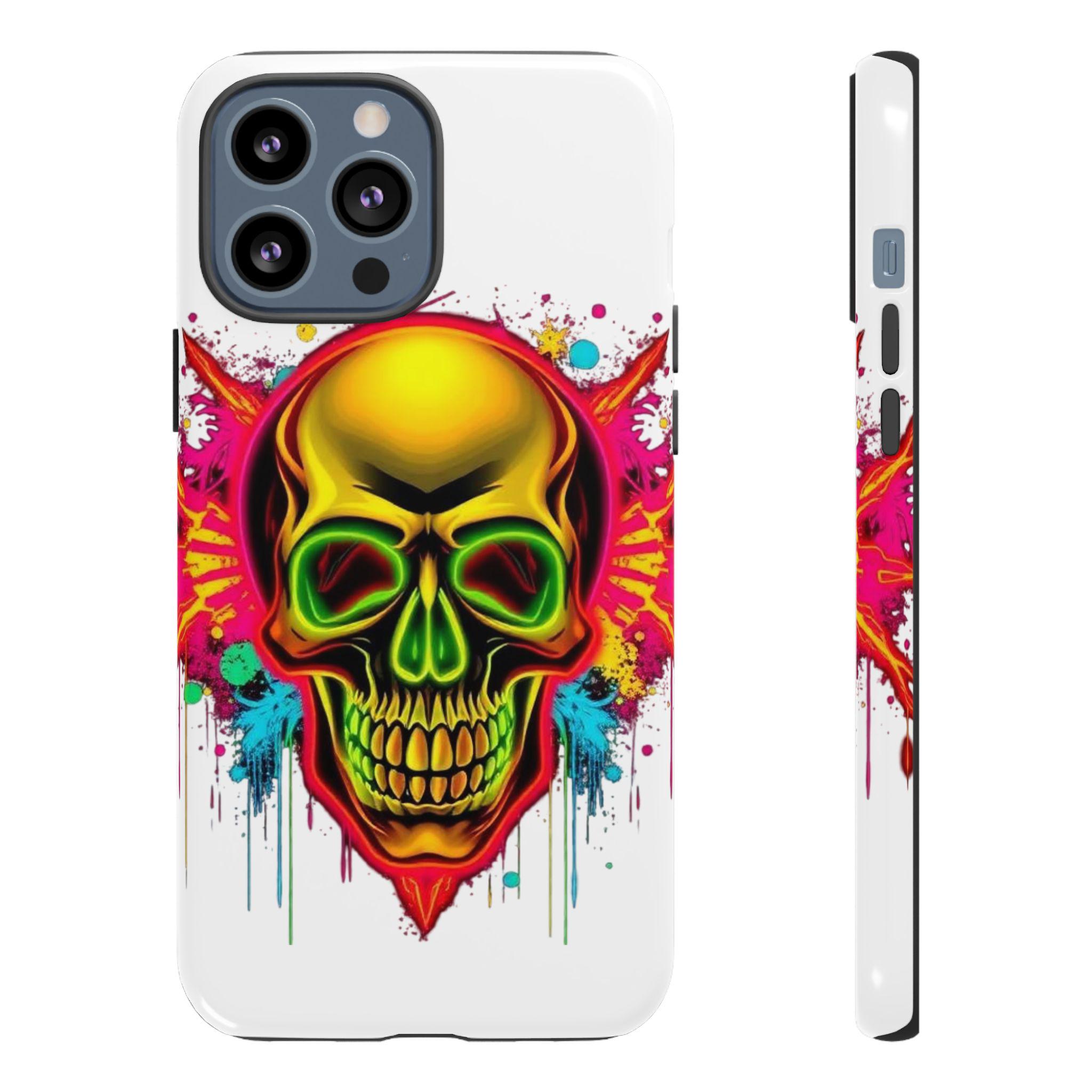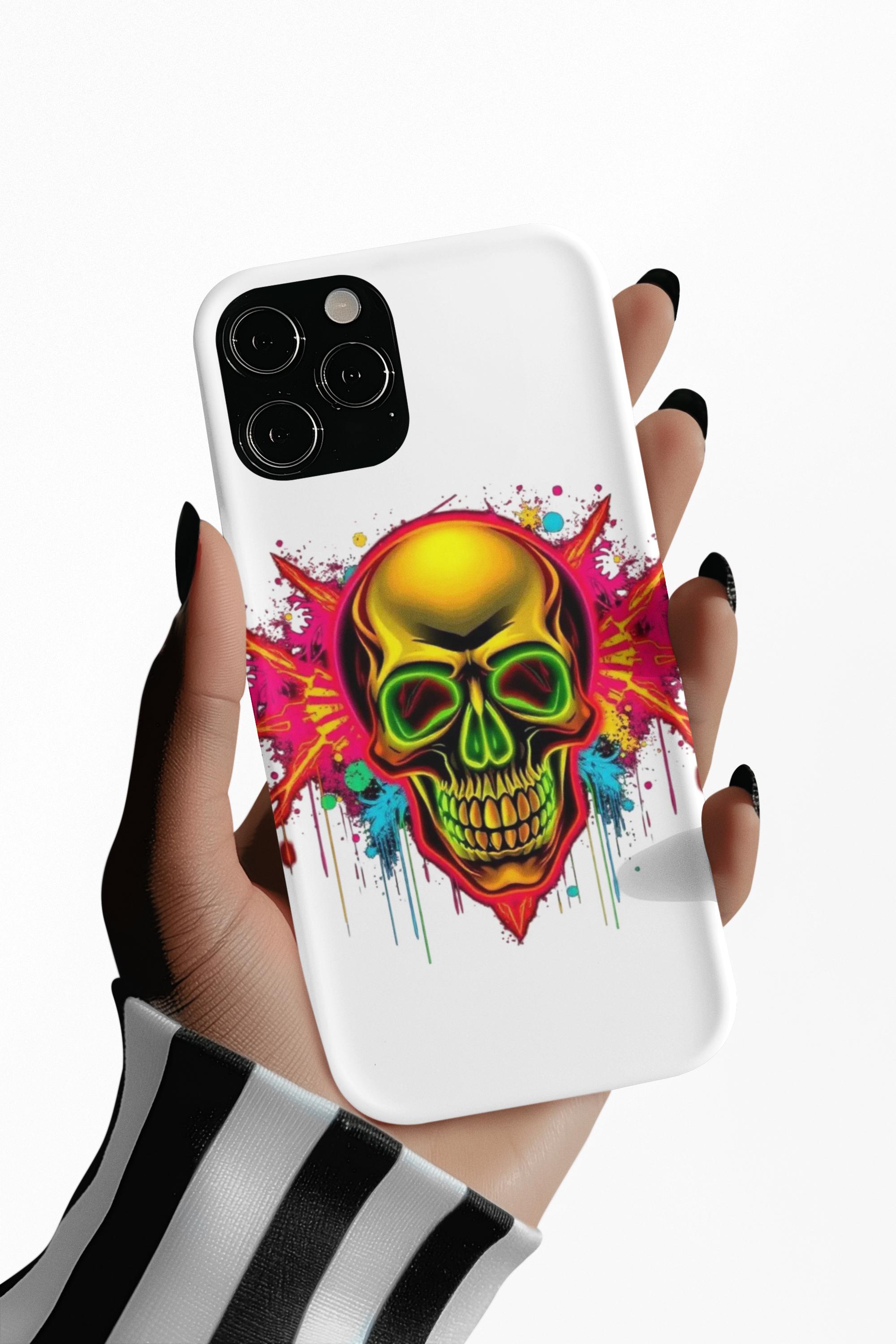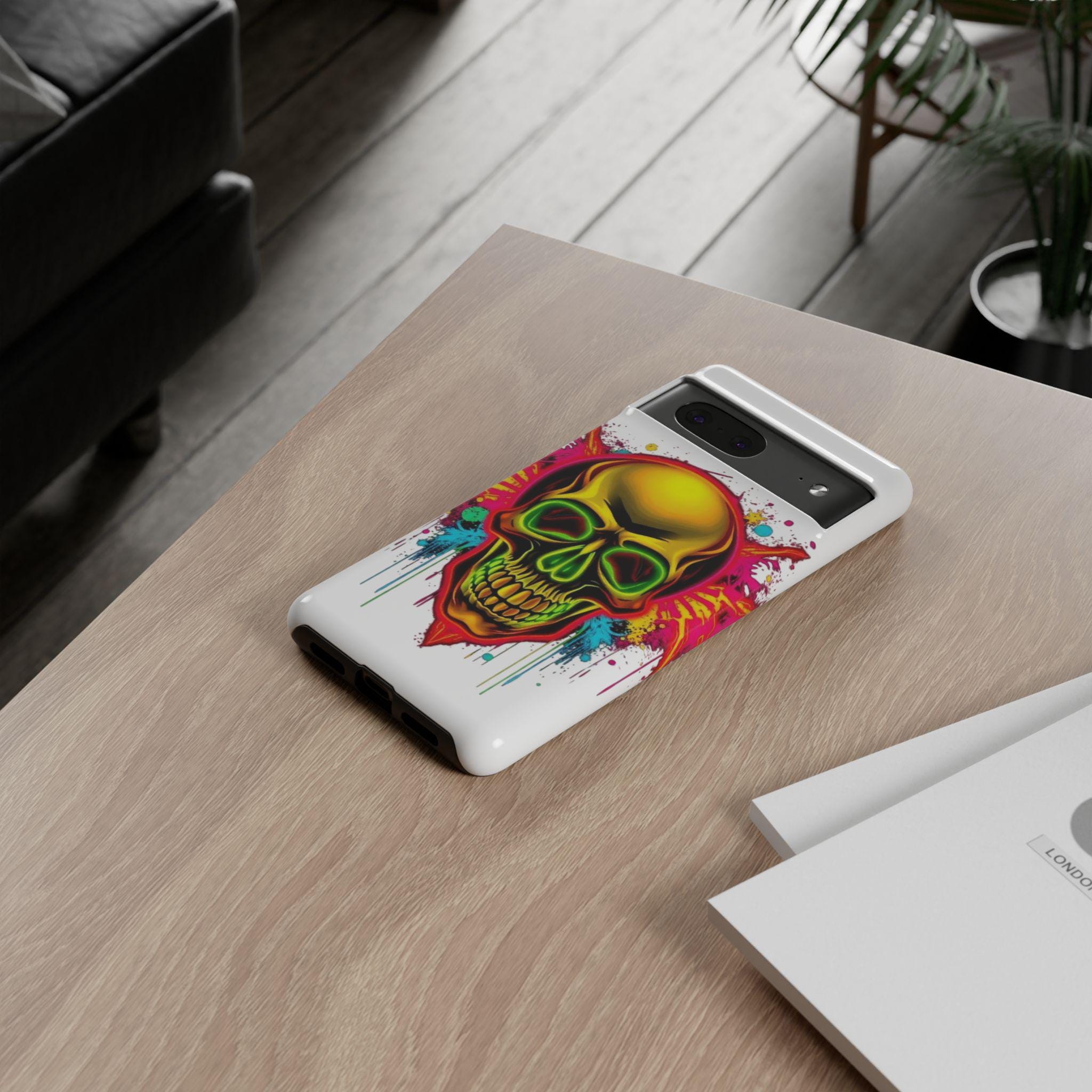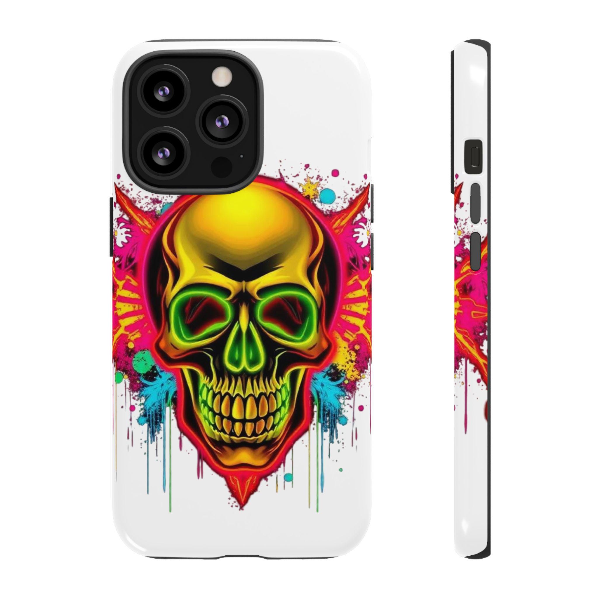 A bold, protective phone case that turns your device into a statement. Vivid neon skull artwork splashes across a high-density 3D wrap, the colors retaining their intensity thanks to UV-resistant printing. The case’s dual-layer construction — a rigid polycarbonate shell and a TPU silicone liner — absorbs shocks and shields edges from drops while keeping ports open and wireless charging accessible. Lightweight and durable, it carries a certified compliance pedigree and arrives in a glossy or matte finish that keeps the design striking through daily wear. Handle with care around strong alcohols, creams, and prolonged heat or sunlight to maintain long-term appearance.