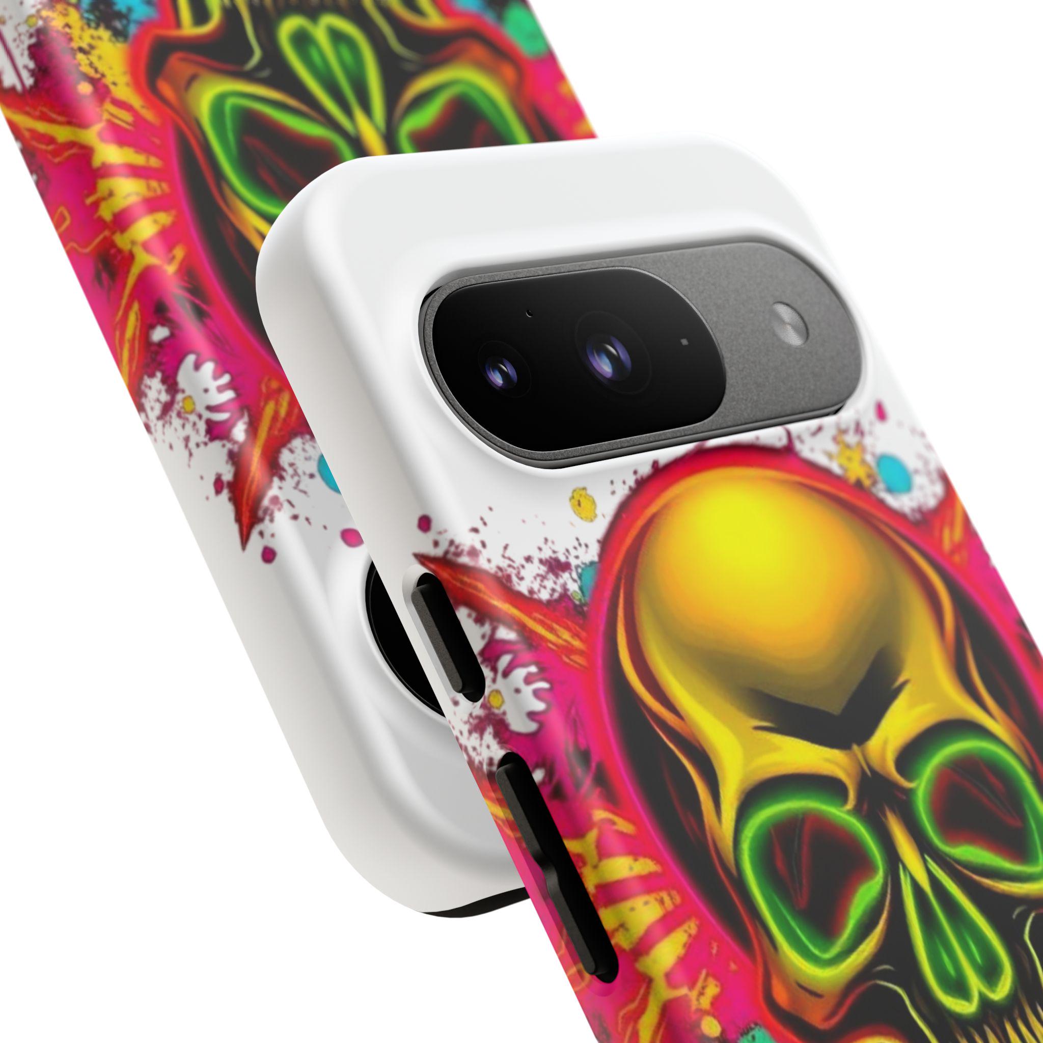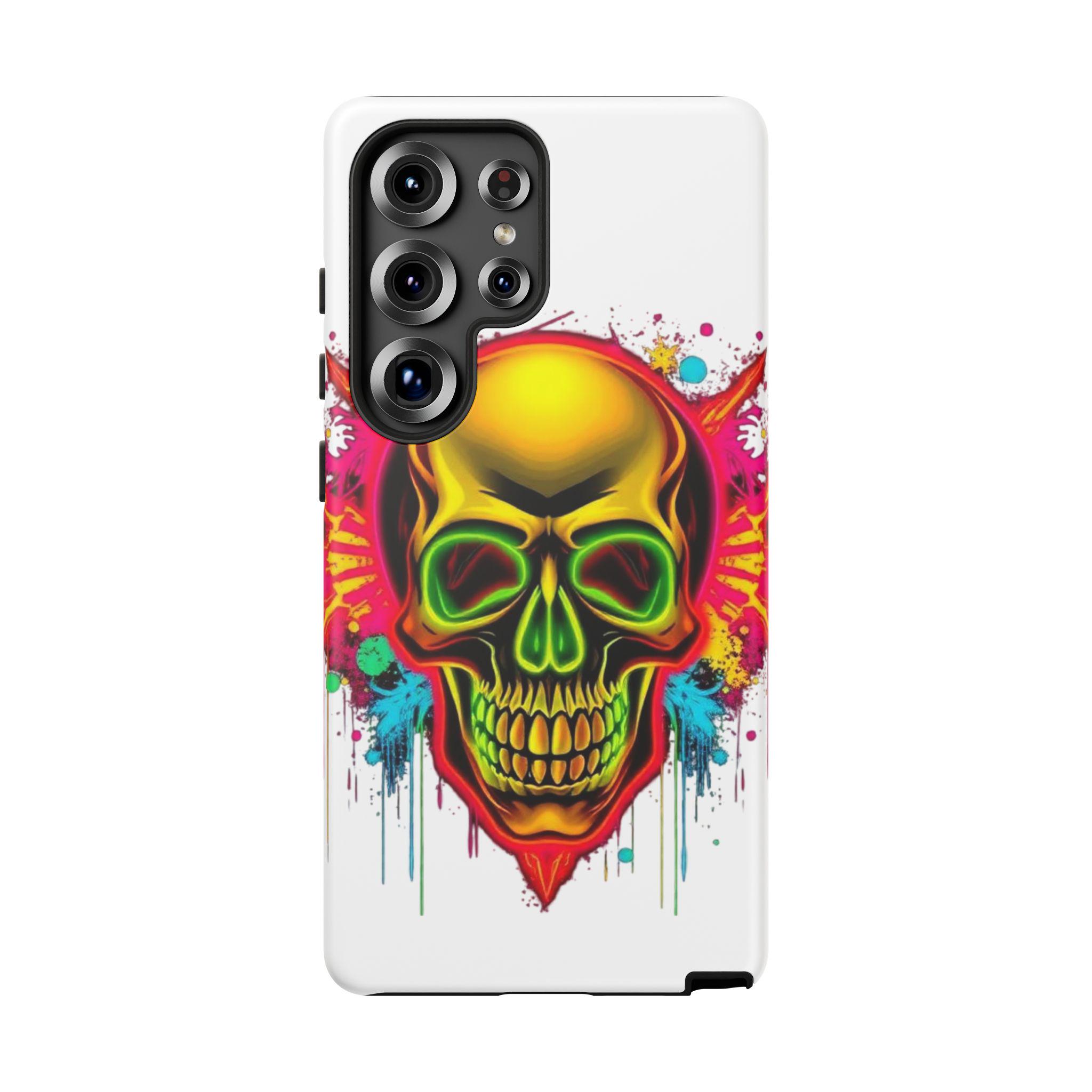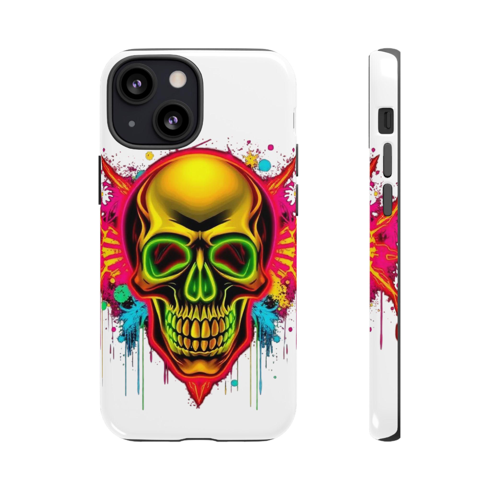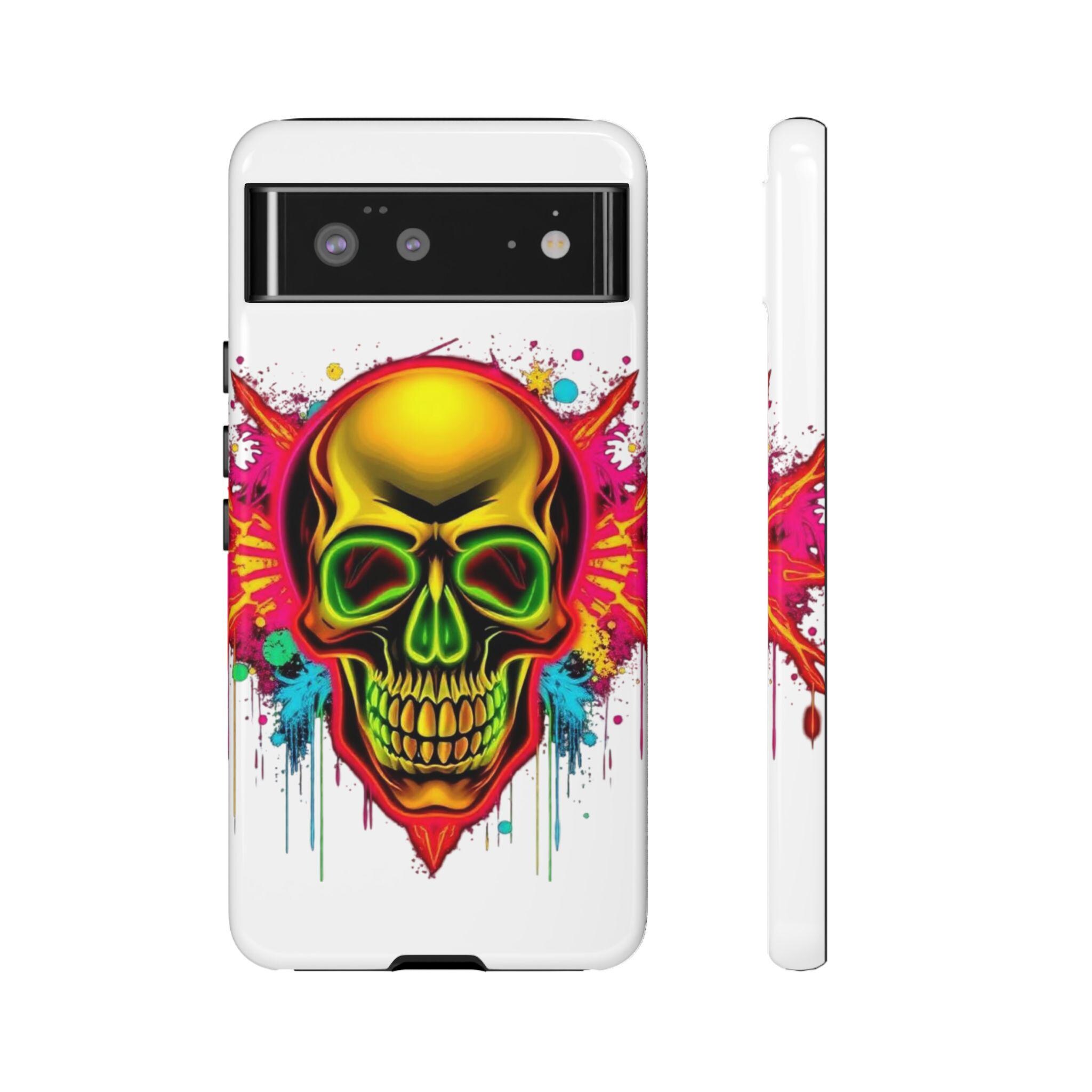 A bold, protective phone case that turns your device into a statement. Vivid neon skull artwork splashes across a high-density 3D wrap, the colors retaining their intensity thanks to UV-resistant printing. The case’s dual-layer construction — a rigid polycarbonate shell and a TPU silicone liner — absorbs shocks and shields edges from drops while keeping ports open and wireless charging accessible. Lightweight and durable, it carries a certified compliance pedigree and arrives in a glossy or matte finish that keeps the design striking through daily wear. Handle with care around strong alcohols, creams, and prolonged heat or sunlight to maintain long-term appearance.