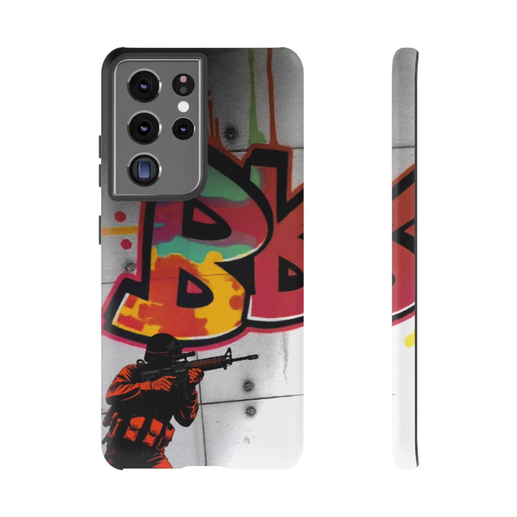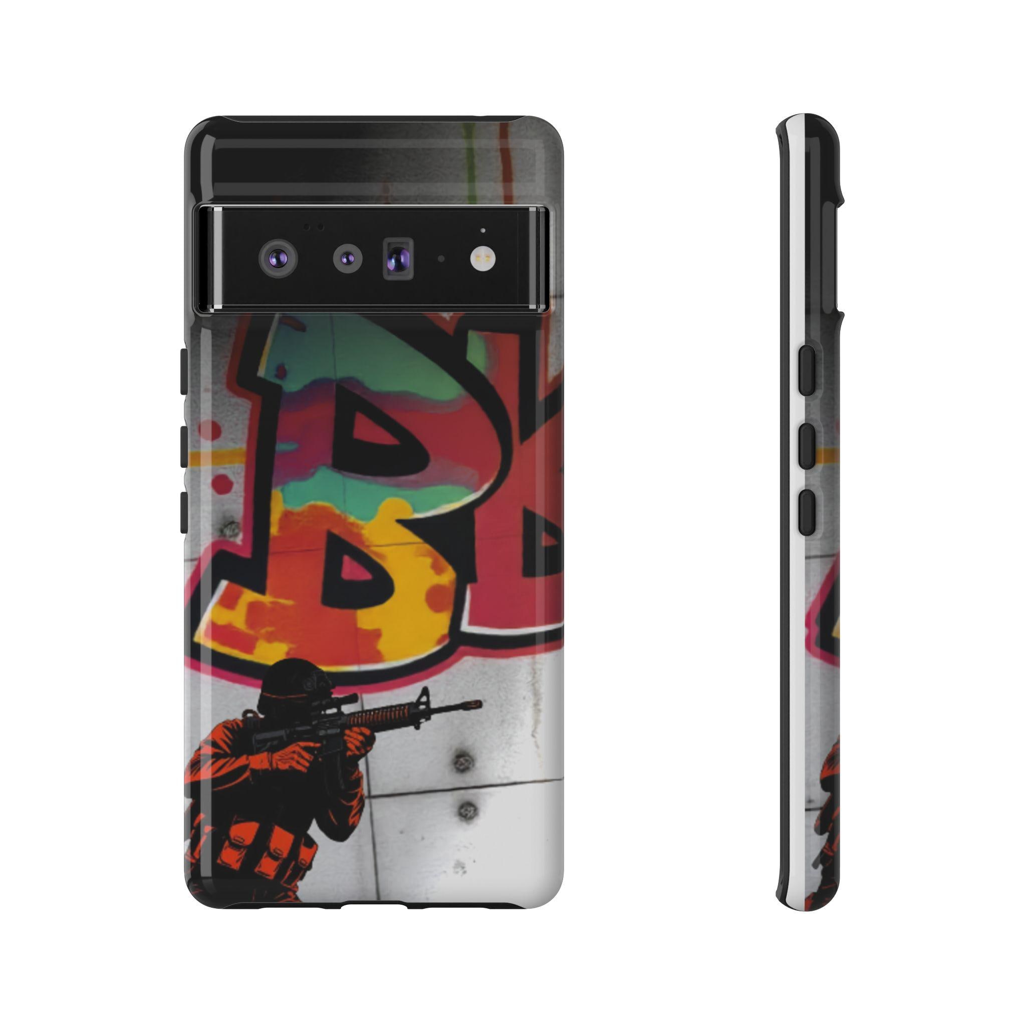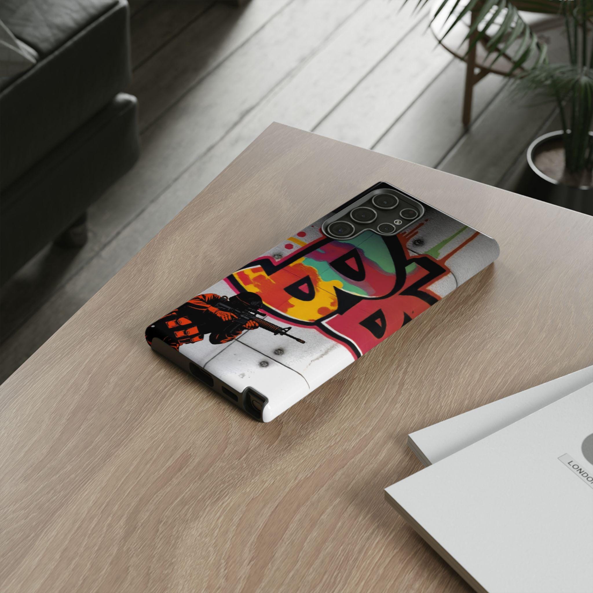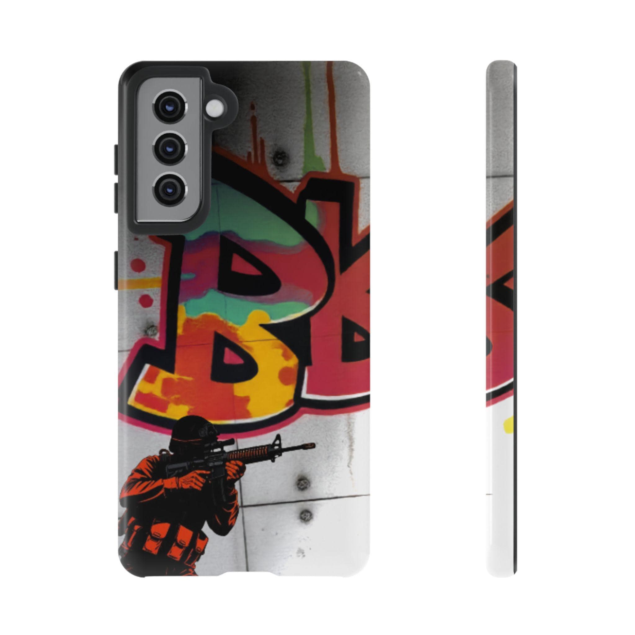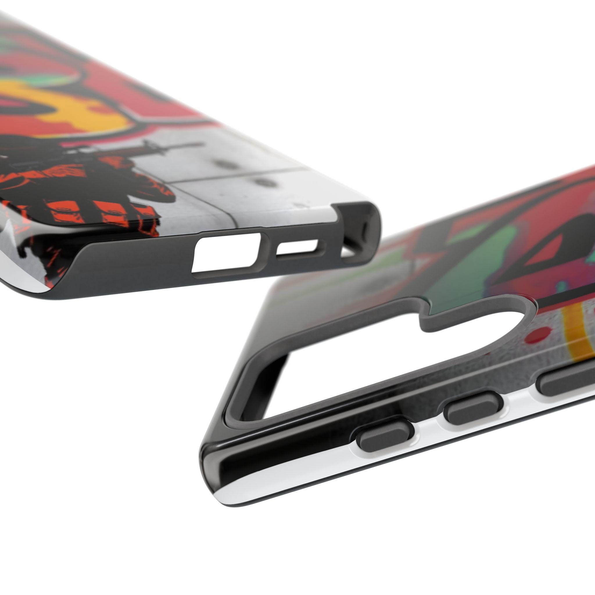 This Tough Case brings street energy and solid protection together. The wraparound print shows bold graffiti colors and a small tactical figure, giving the case a gritty, urban attitude. Dual-layer construction — a rigid polycarbonate shell with a shock-absorbing TPU silicone liner — cushions drops while keeping ports clear and wireless charging accessible. The high-density 3D wrap and UV protection preserve the artwork outdoors, and glossy or matte finishes let you choose the exact look. Lightweight and engineered for everyday impact, this case feels at home on city commutes, skate sessions, or tucked into a backpack for late-night shoots.