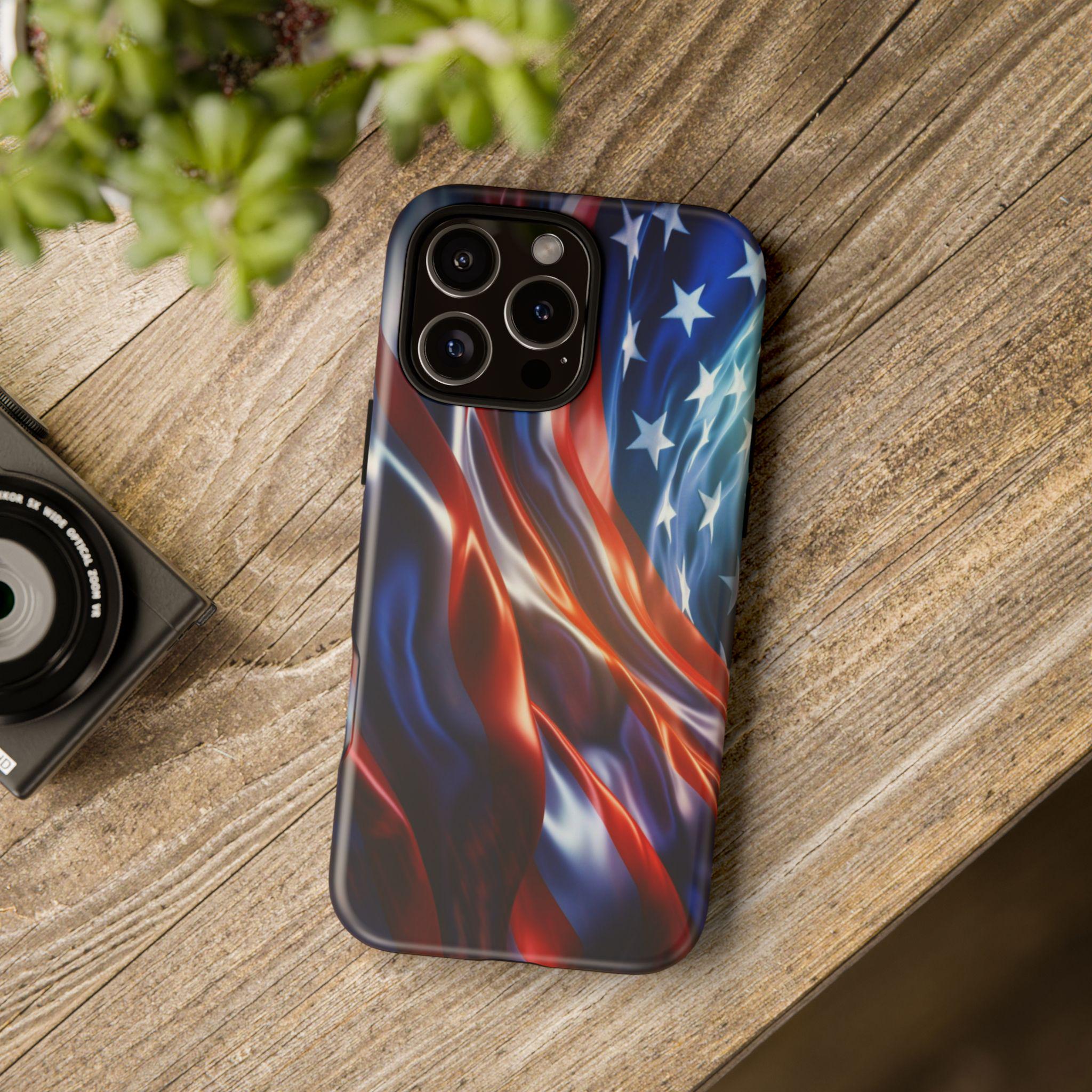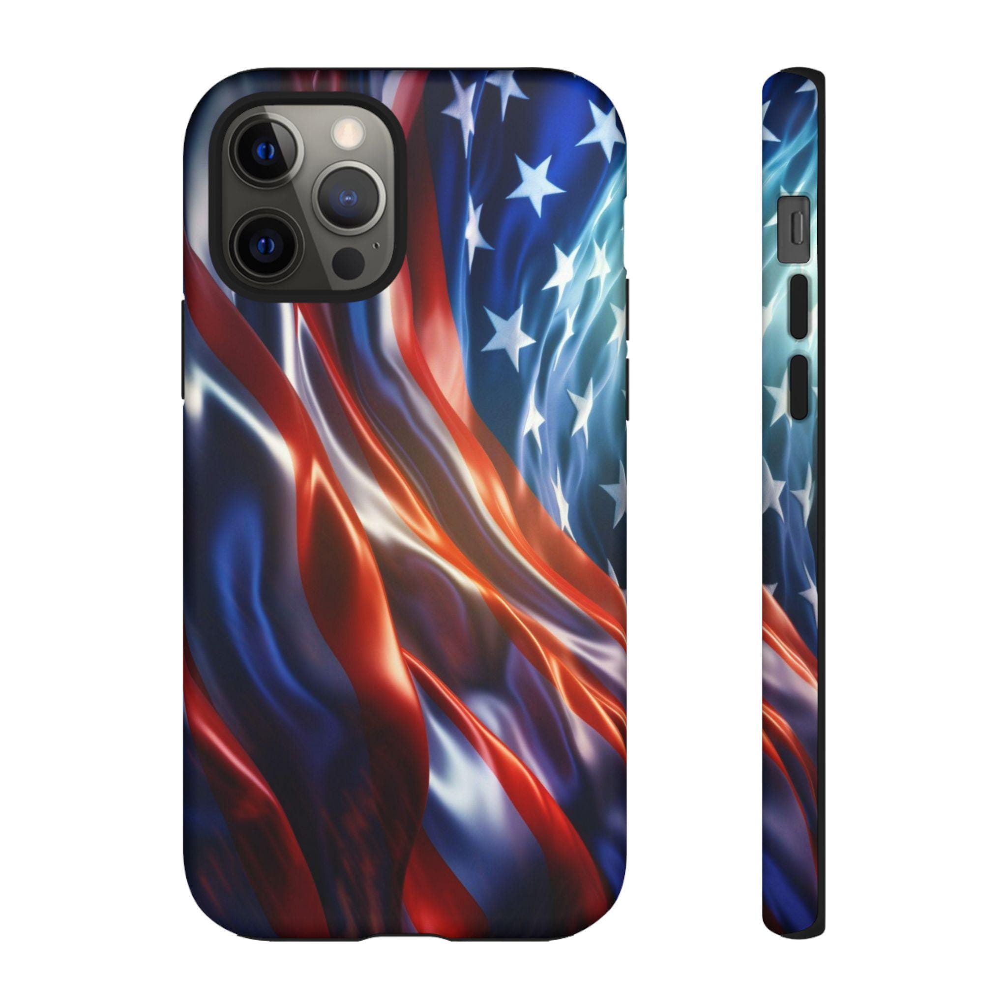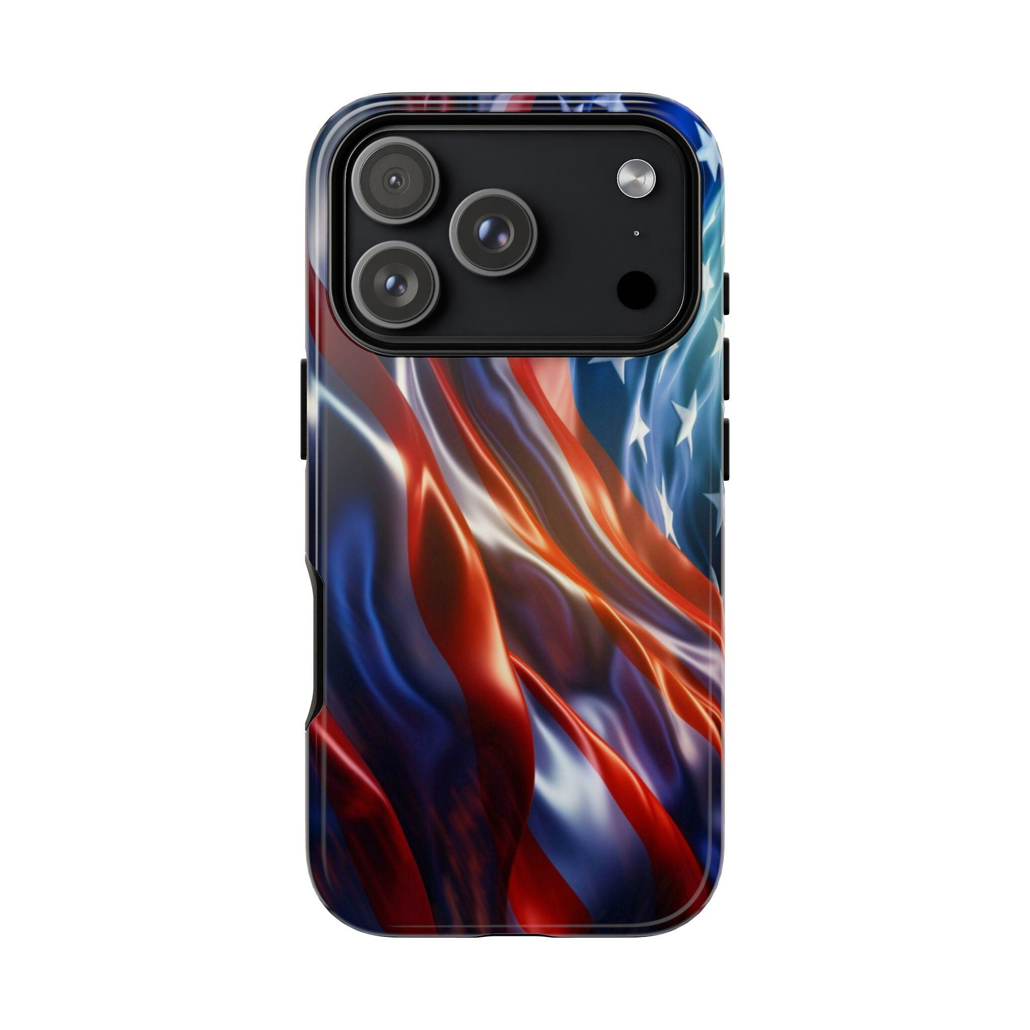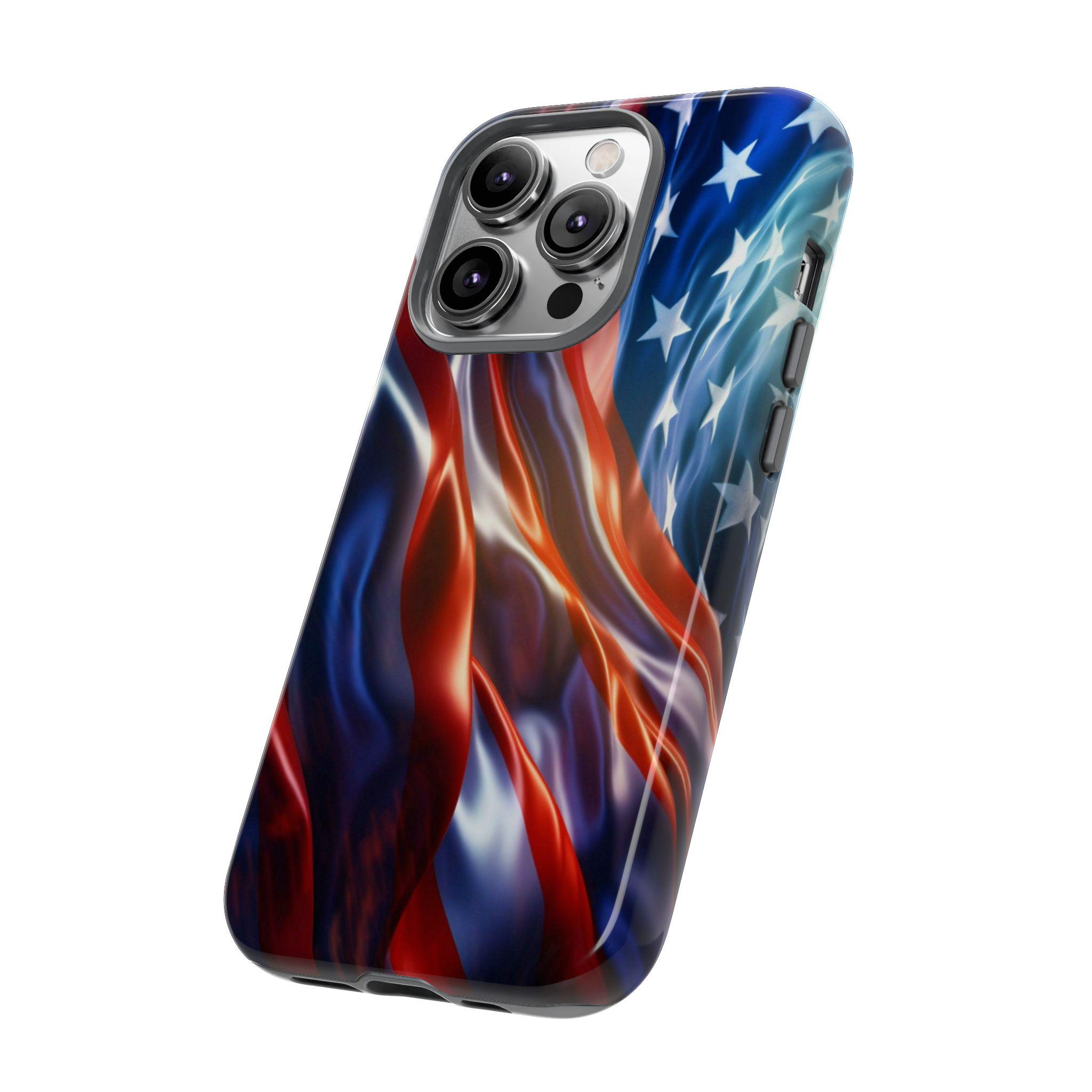 A durable, dual-layer phone case that wraps your device in a vivid, waving flag design. The glossy transfer print delivers deep color and high contrast while a soft TPU silicone liner cushions against drops. Lightweight and slim, it keeps ports accessible and supports wireless charging, all while resisting outdoor fading thanks to UV protection. This case blends bold patriotic style with real everyday protection — a tactile shield that slips comfortably into pockets and keeps your phone looking sharp through daily use and holiday crowds.