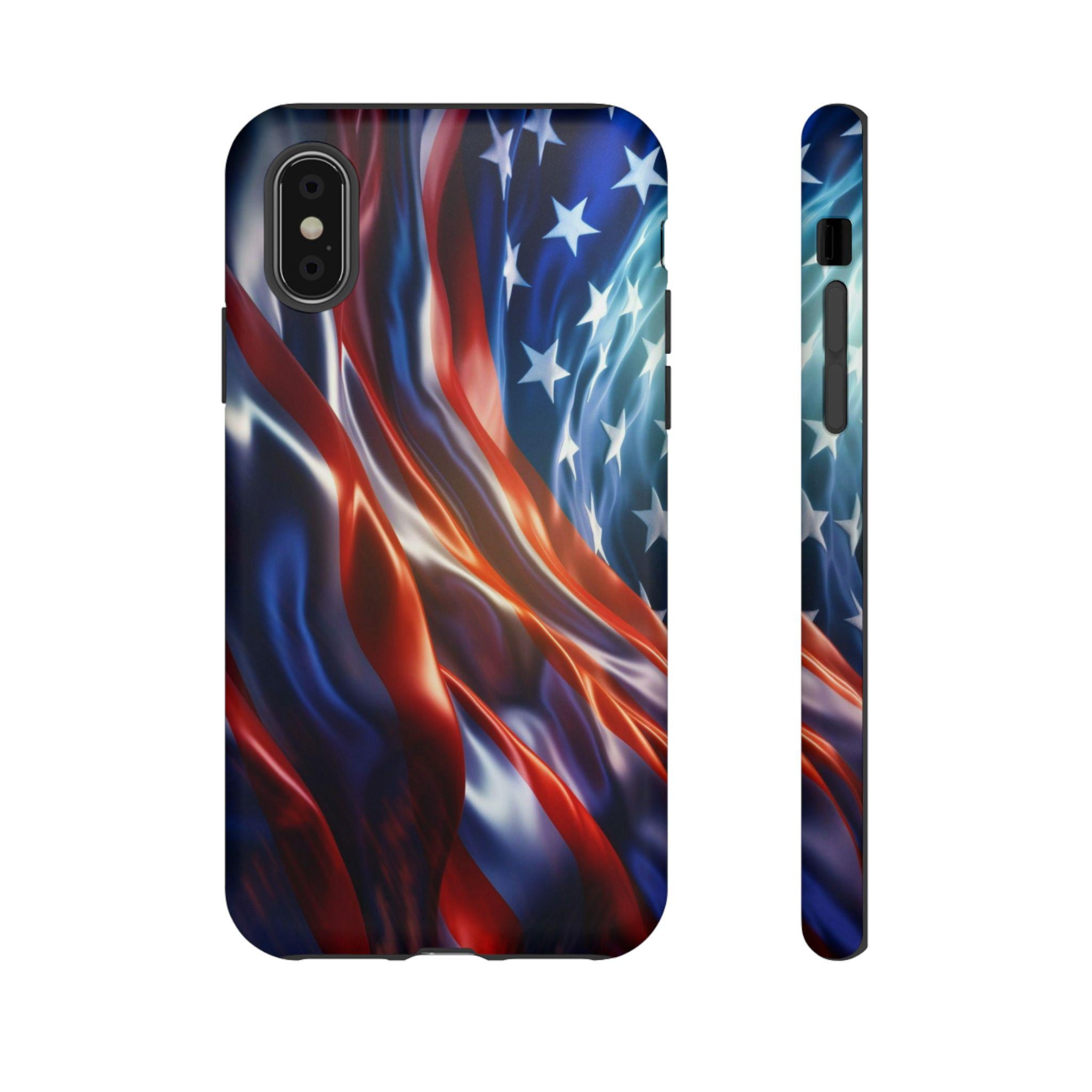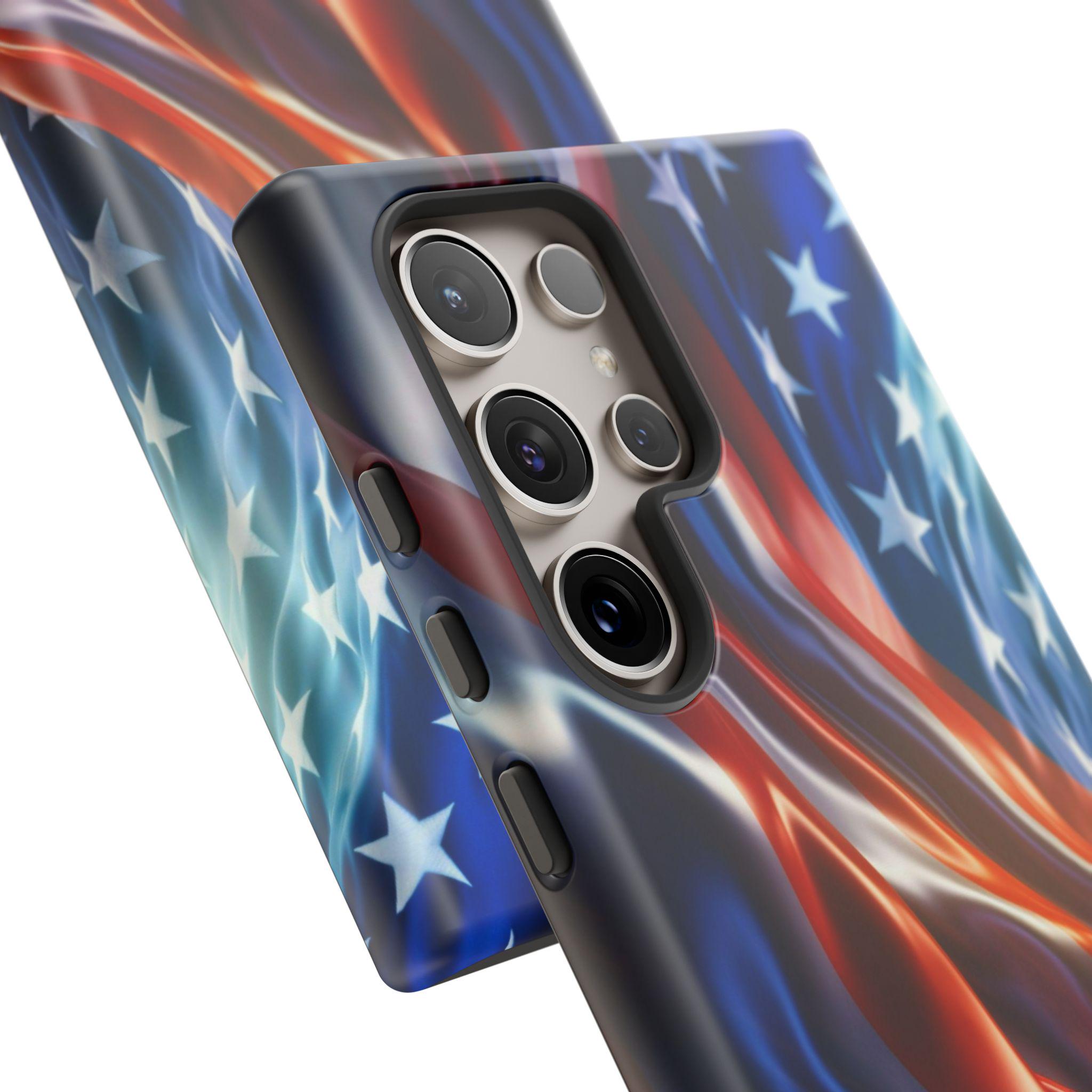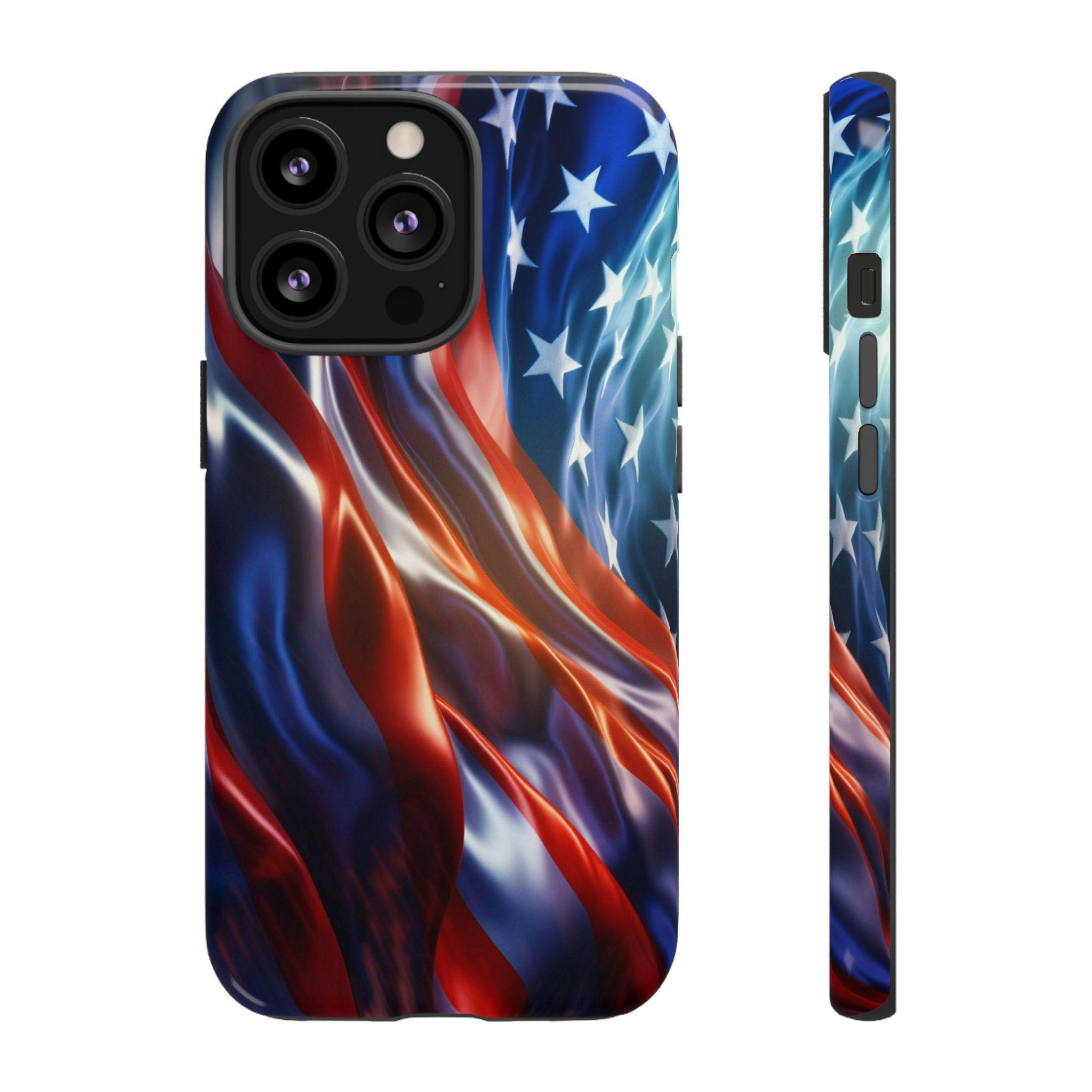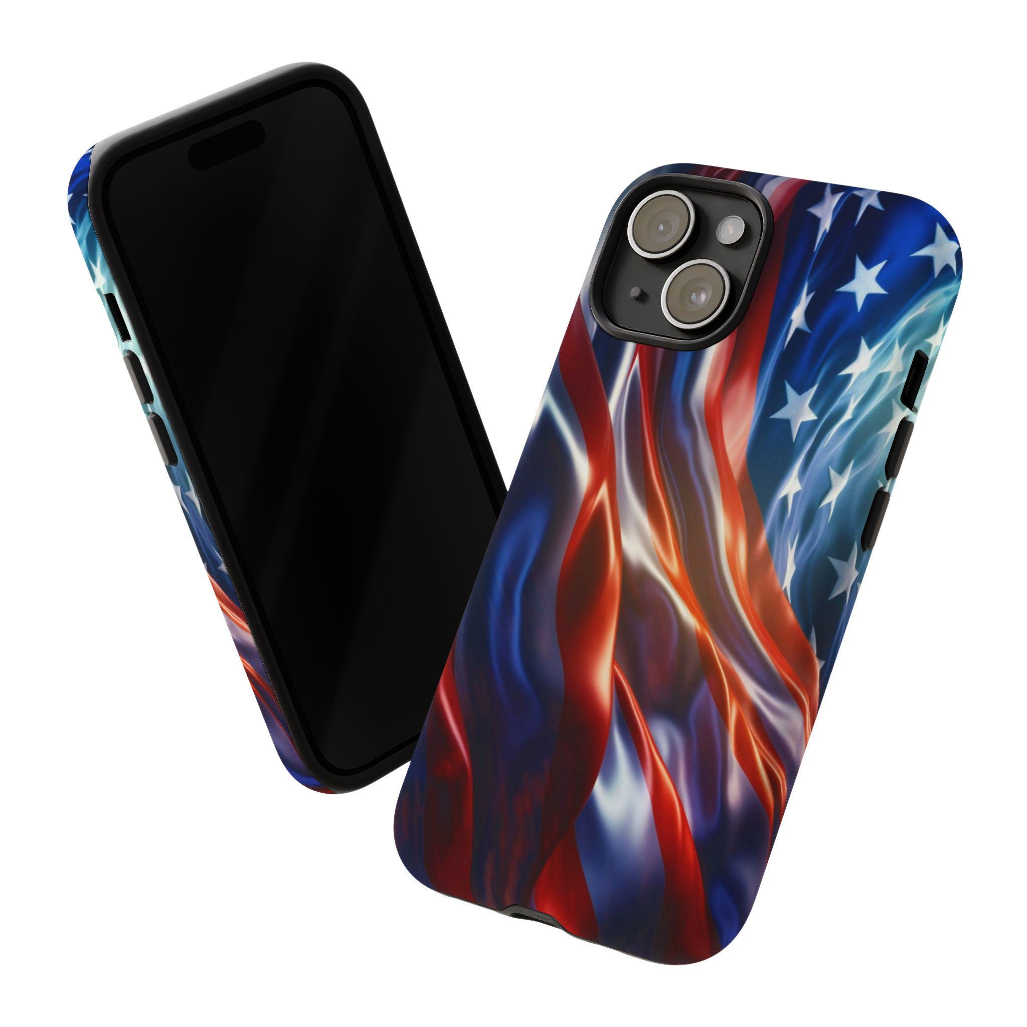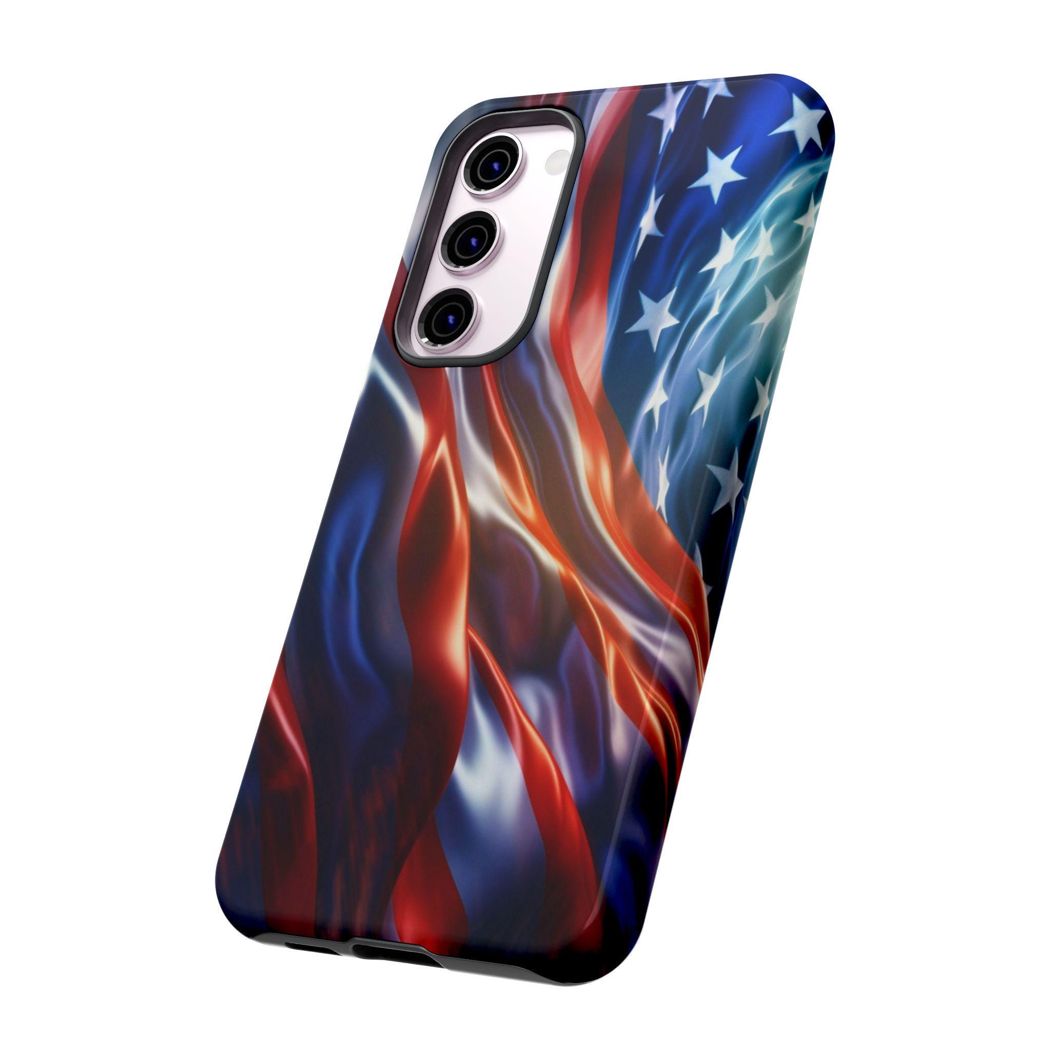 A durable, dual-layer phone case that wraps your device in a vivid, waving flag design. The glossy transfer print delivers deep color and high contrast while a soft TPU silicone liner cushions against drops. Lightweight and slim, it keeps ports accessible and supports wireless charging, all while resisting outdoor fading thanks to UV protection. This case blends bold patriotic style with real everyday protection — a tactile shield that slips comfortably into pockets and keeps your phone looking sharp through daily use and holiday crowds.