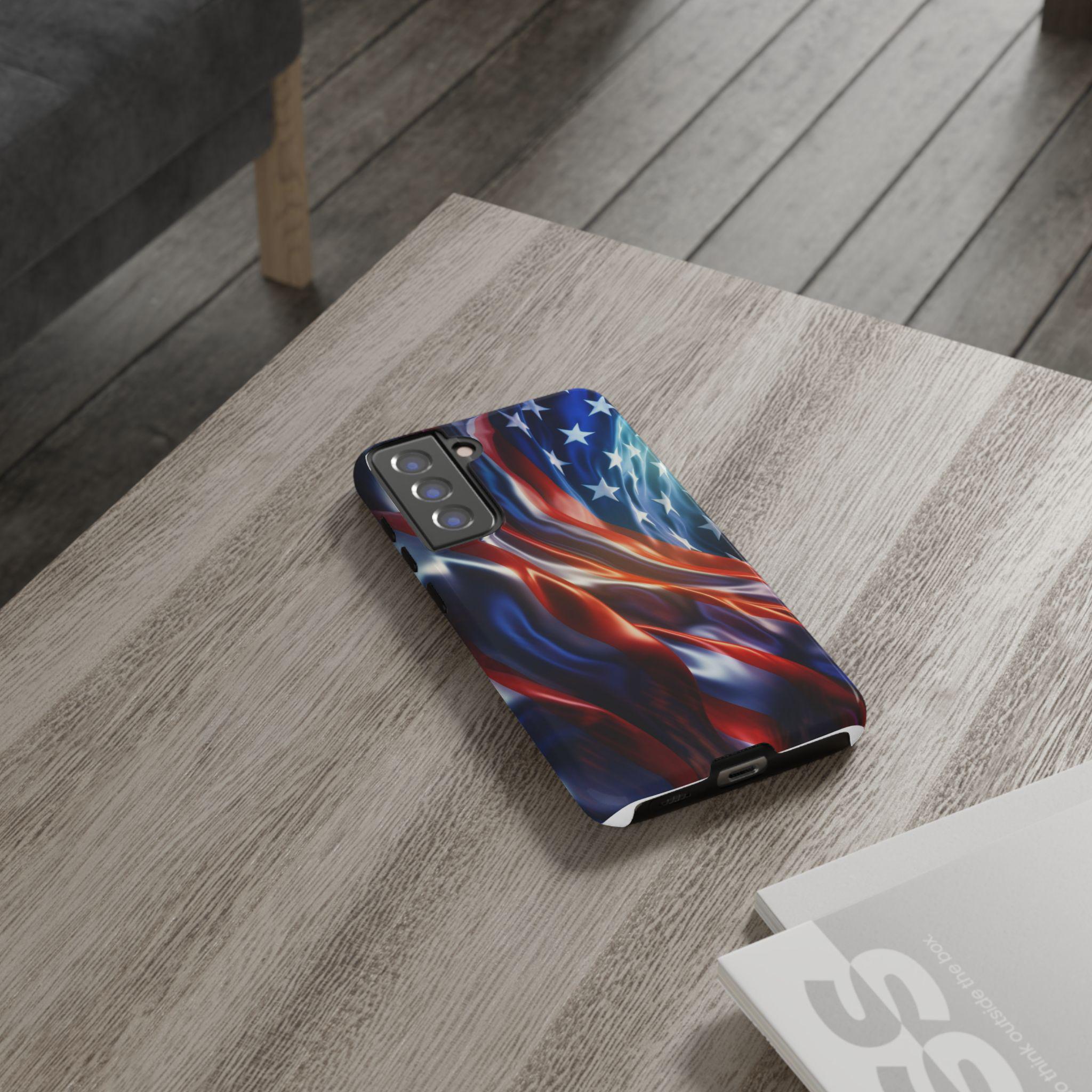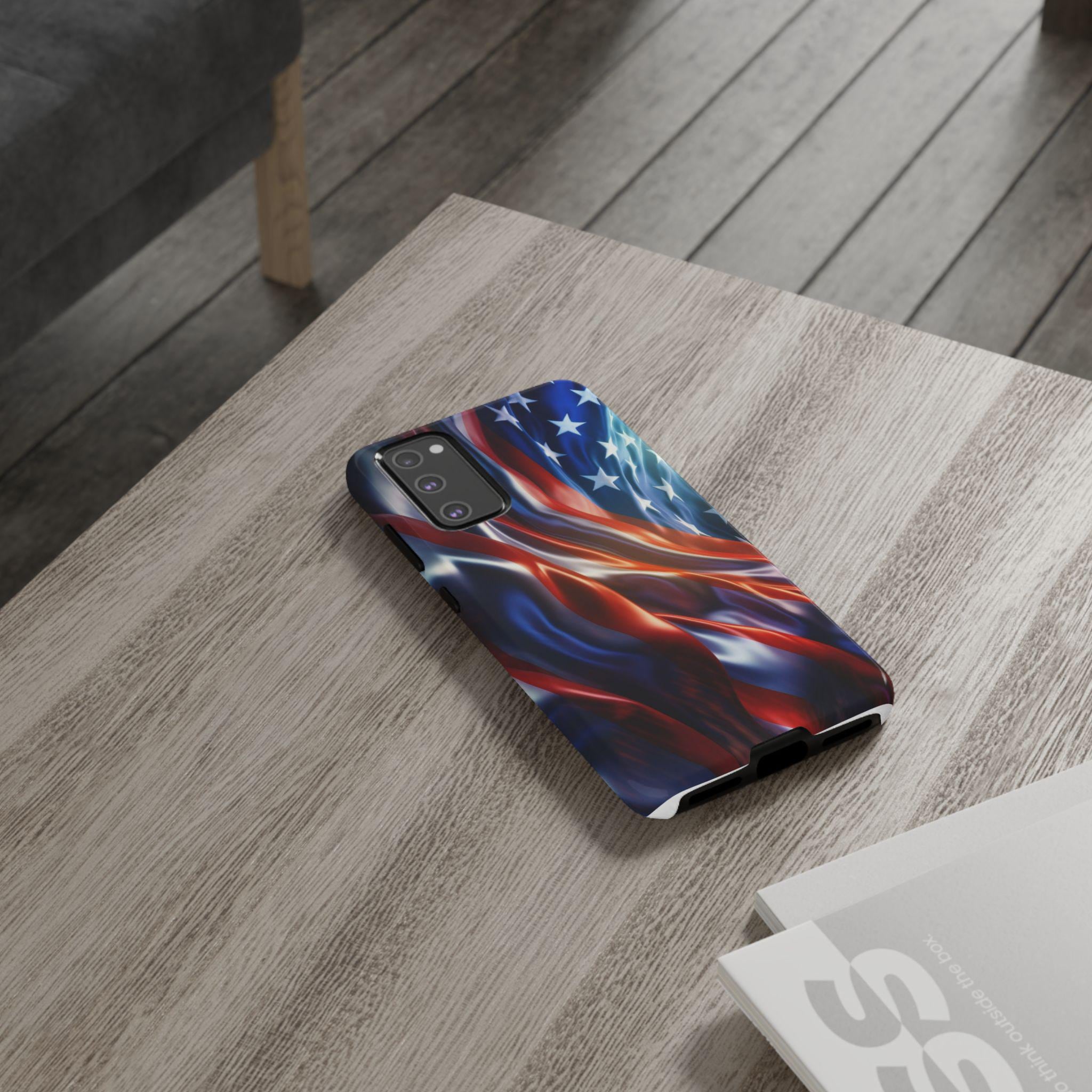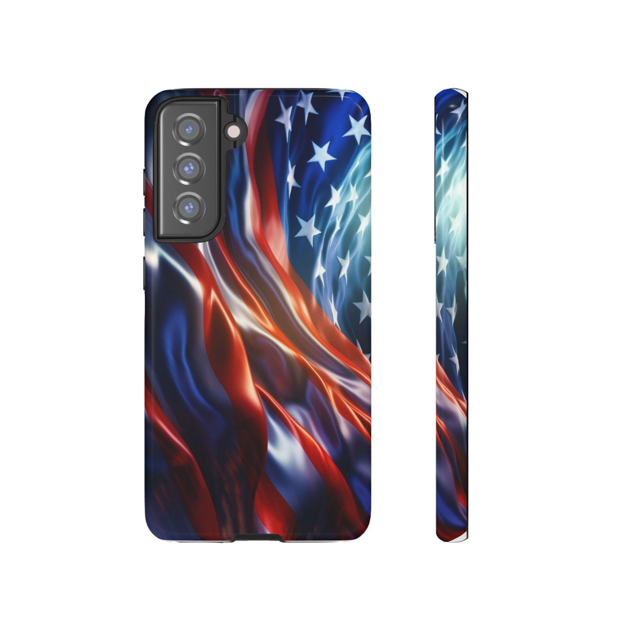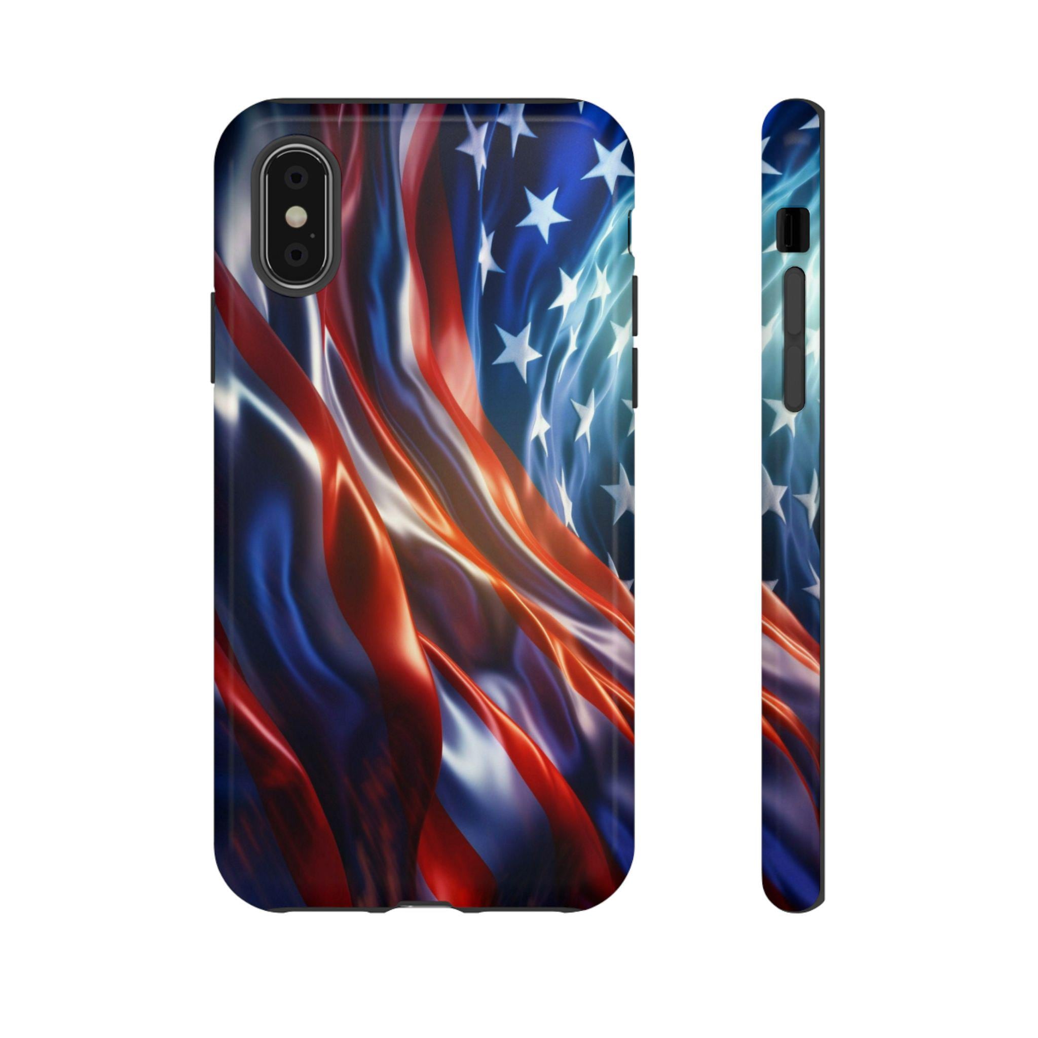 A durable, dual-layer phone case that wraps your device in a vivid, waving flag design. The glossy transfer print delivers deep color and high contrast while a soft TPU silicone liner cushions against drops. Lightweight and slim, it keeps ports accessible and supports wireless charging, all while resisting outdoor fading thanks to UV protection. This case blends bold patriotic style with real everyday protection — a tactile shield that slips comfortably into pockets and keeps your phone looking sharp through daily use and holiday crowds.