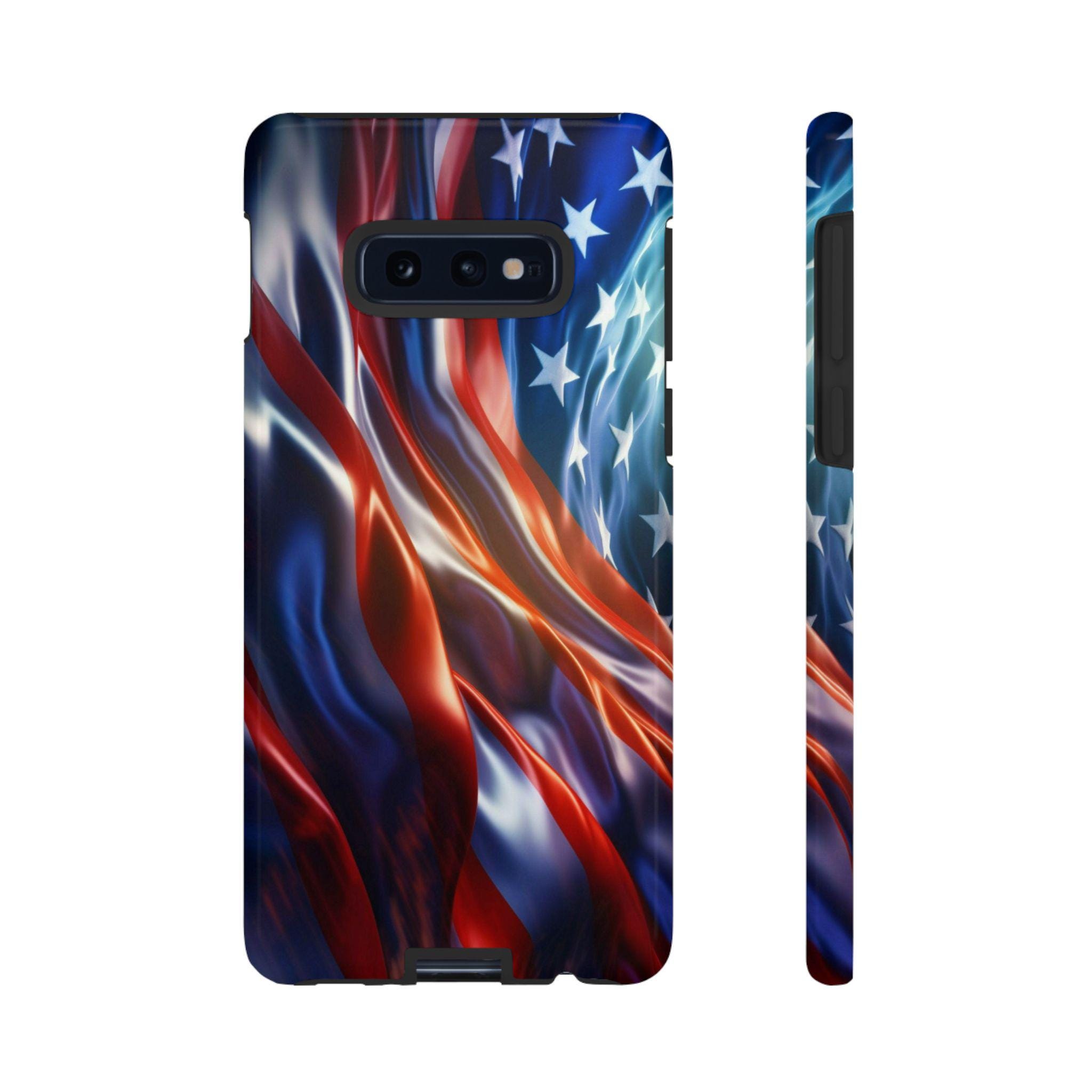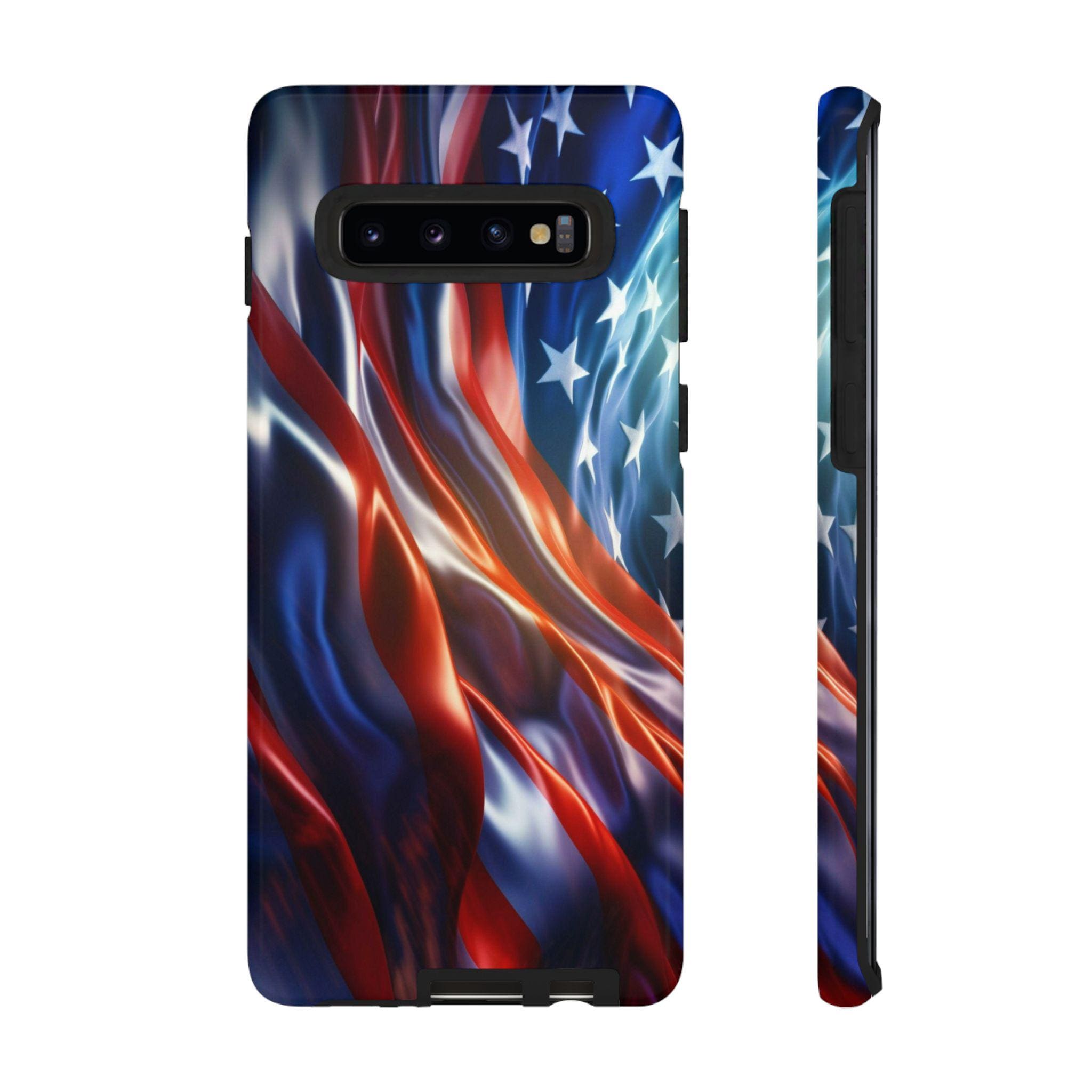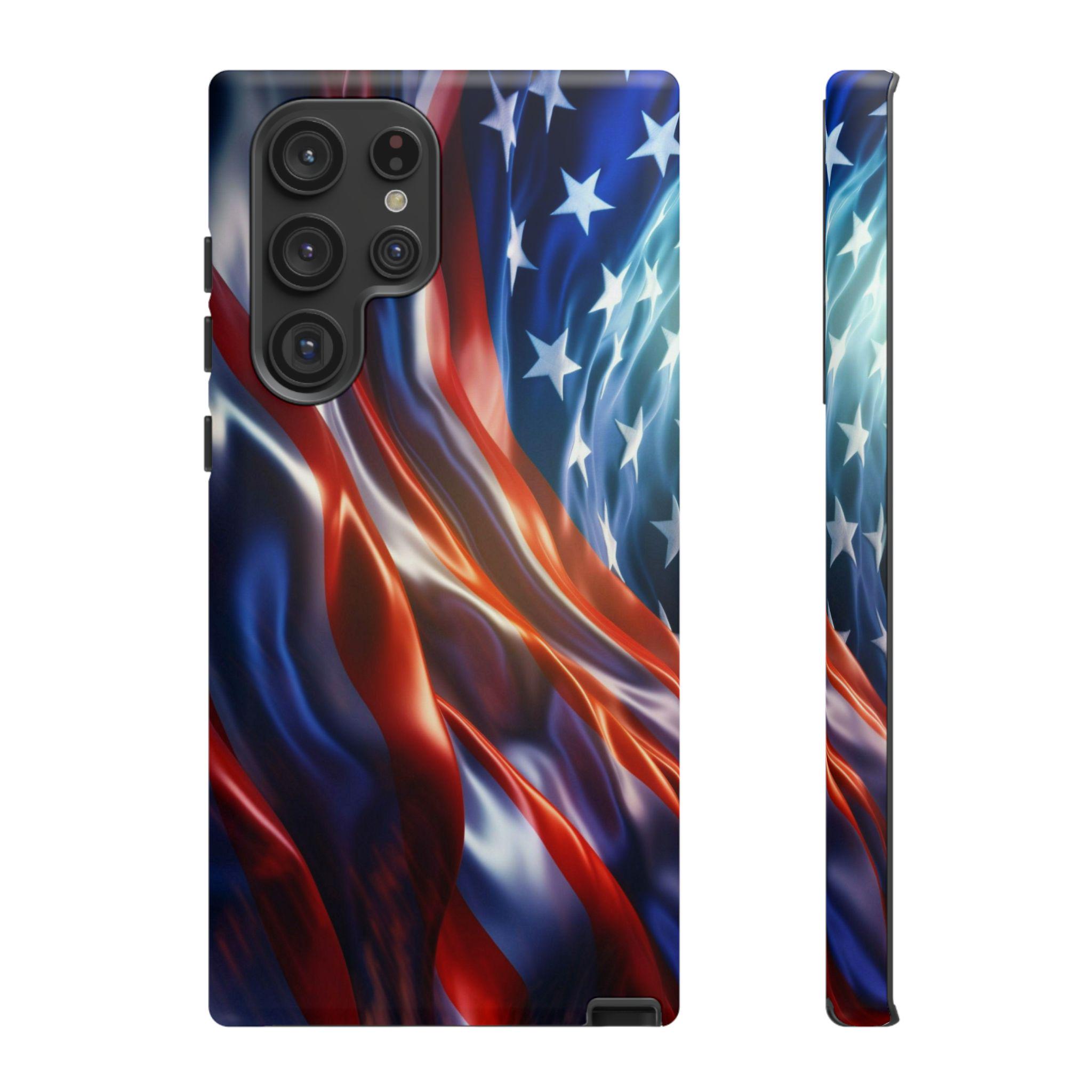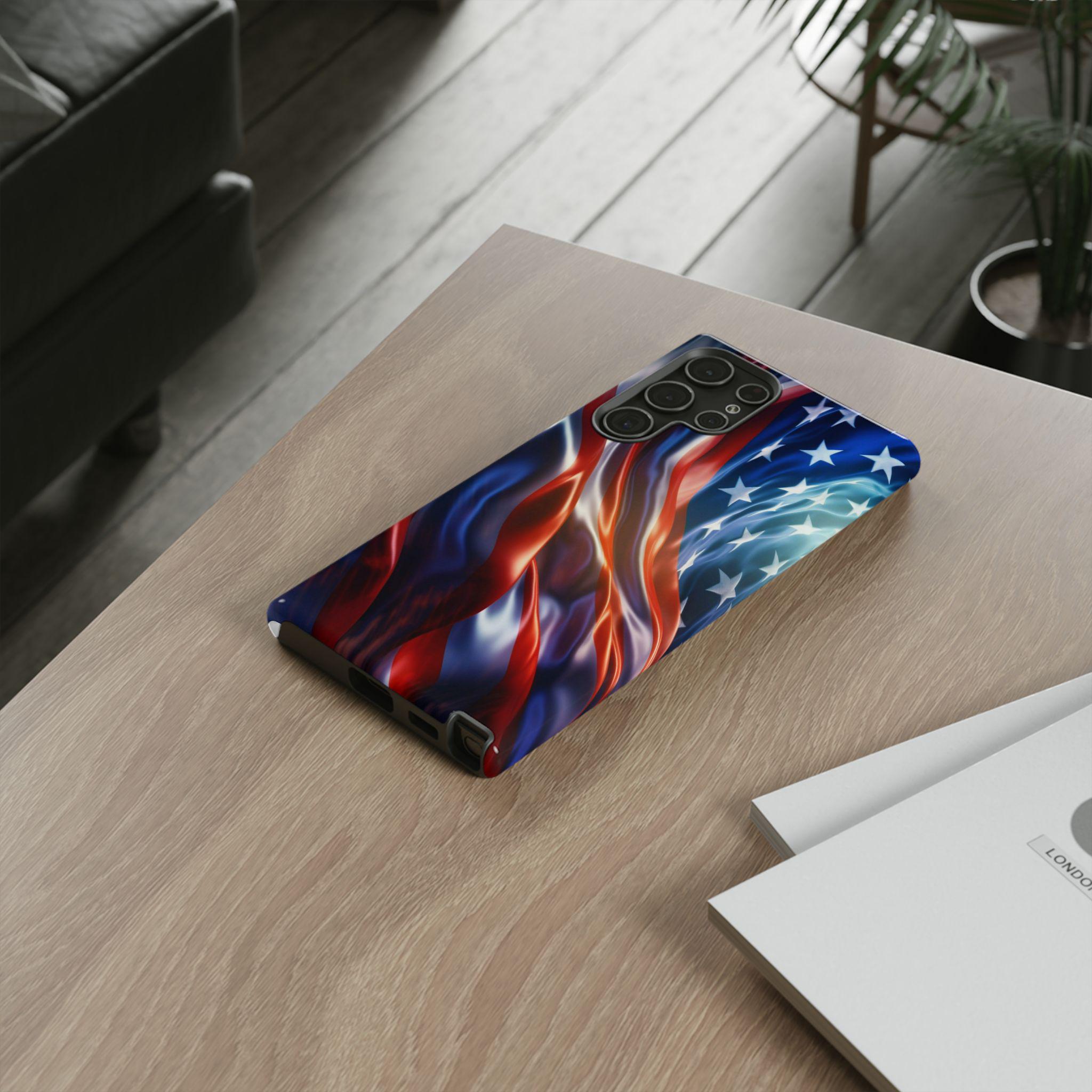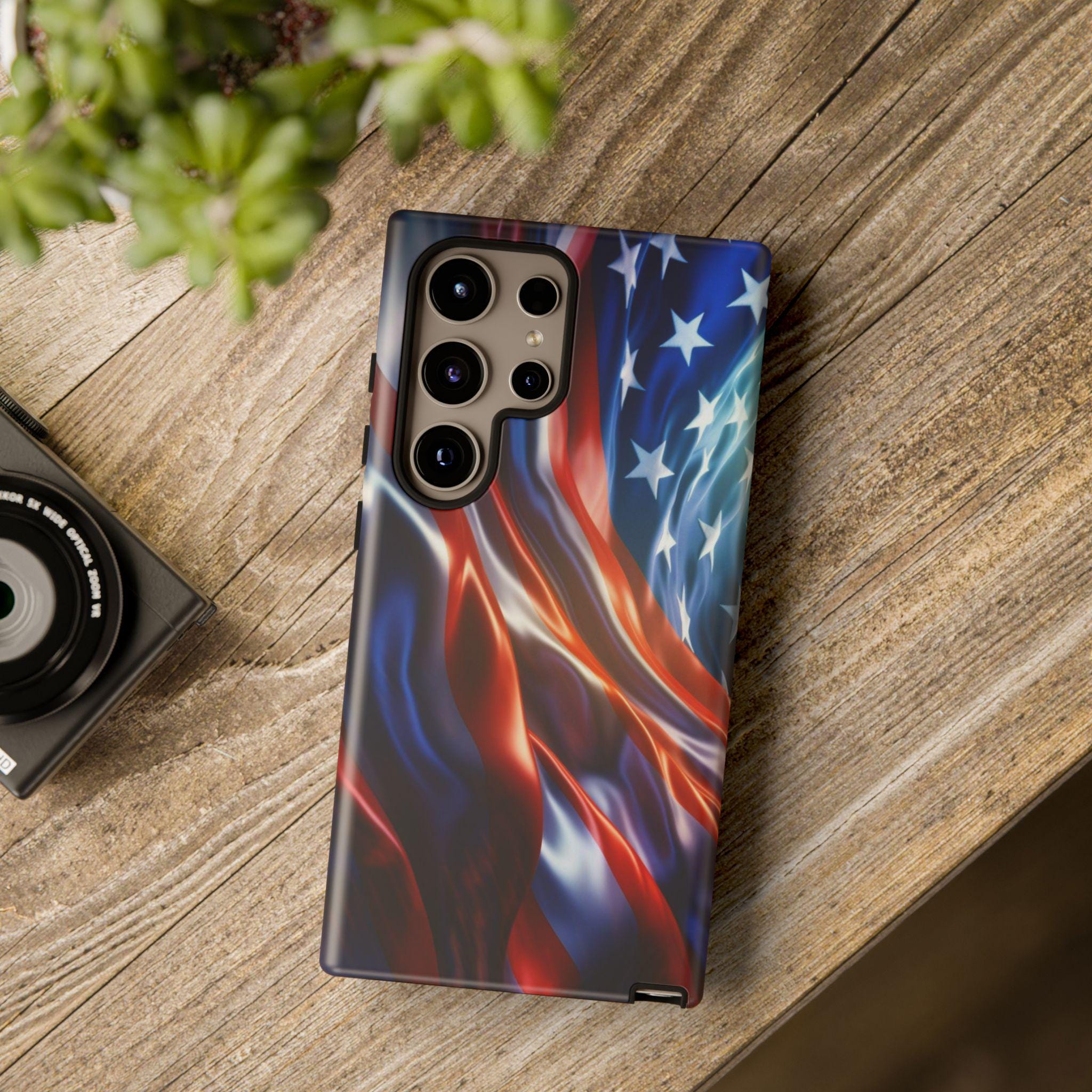 A durable, dual-layer phone case that wraps your device in a vivid, waving flag design. The glossy transfer print delivers deep color and high contrast while a soft TPU silicone liner cushions against drops. Lightweight and slim, it keeps ports accessible and supports wireless charging, all while resisting outdoor fading thanks to UV protection. This case blends bold patriotic style with real everyday protection — a tactile shield that slips comfortably into pockets and keeps your phone looking sharp through daily use and holiday crowds.