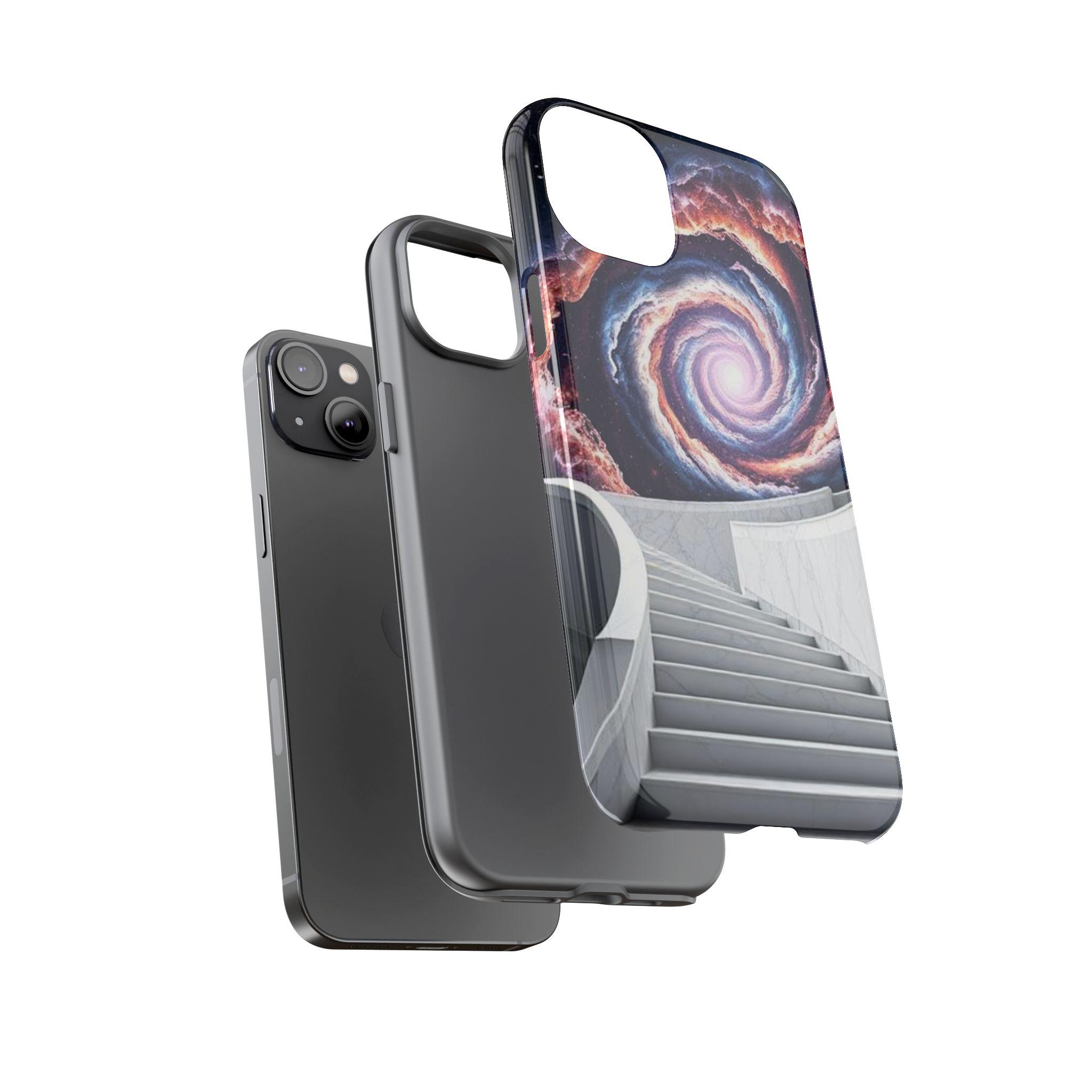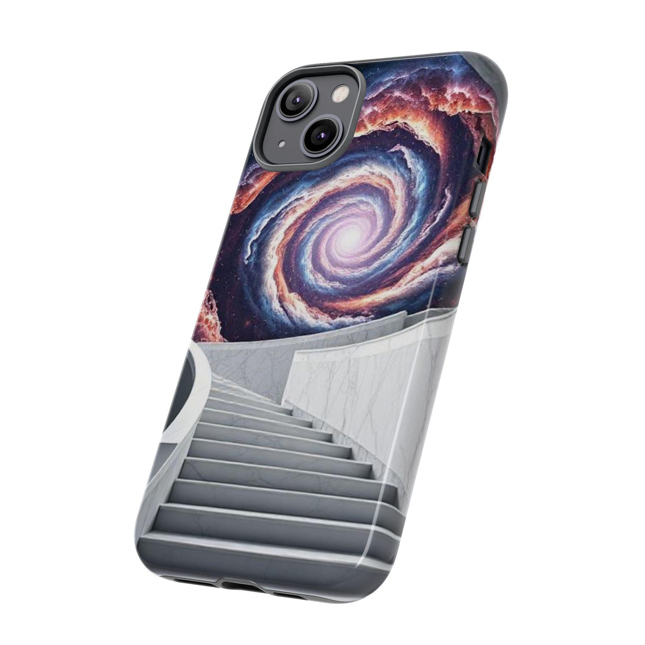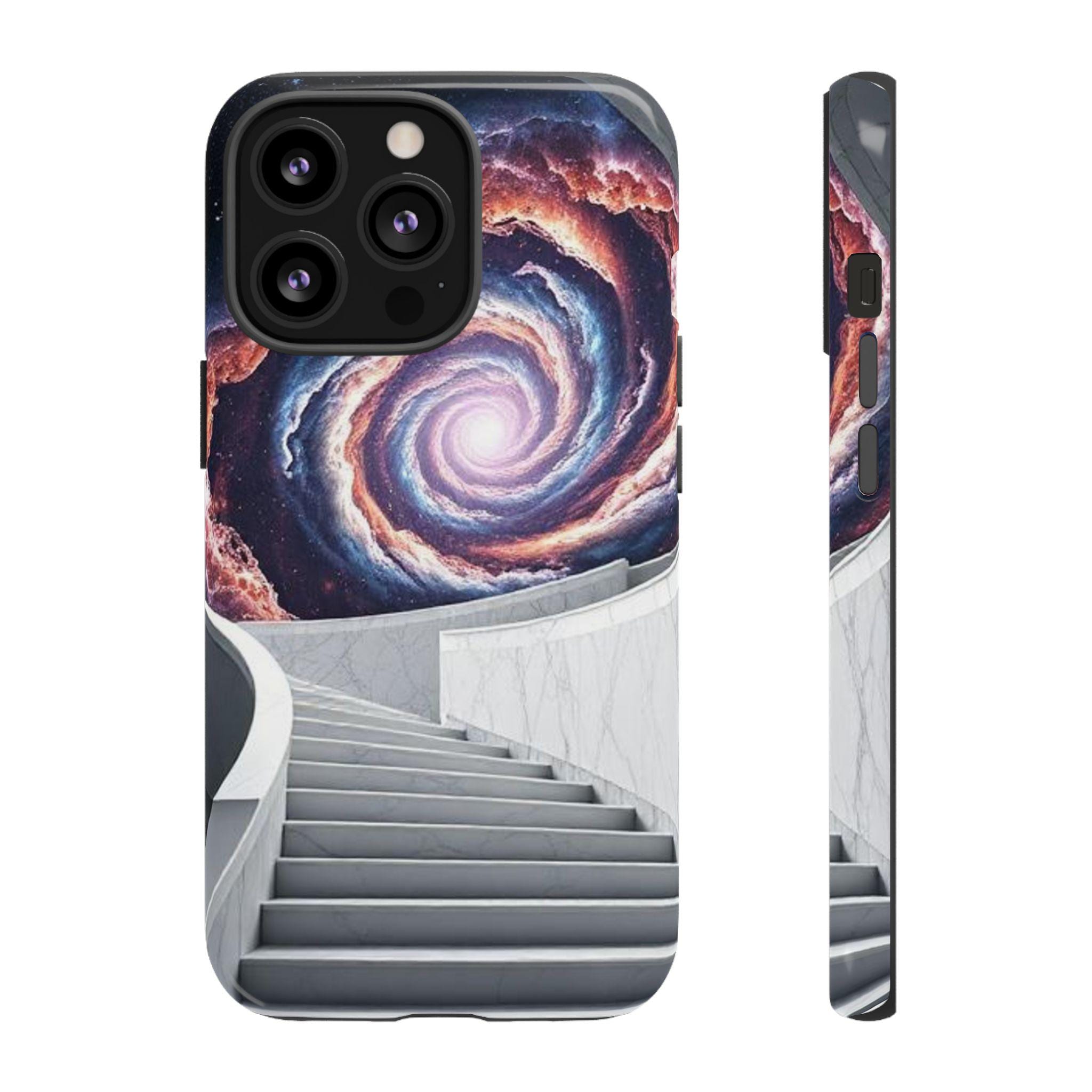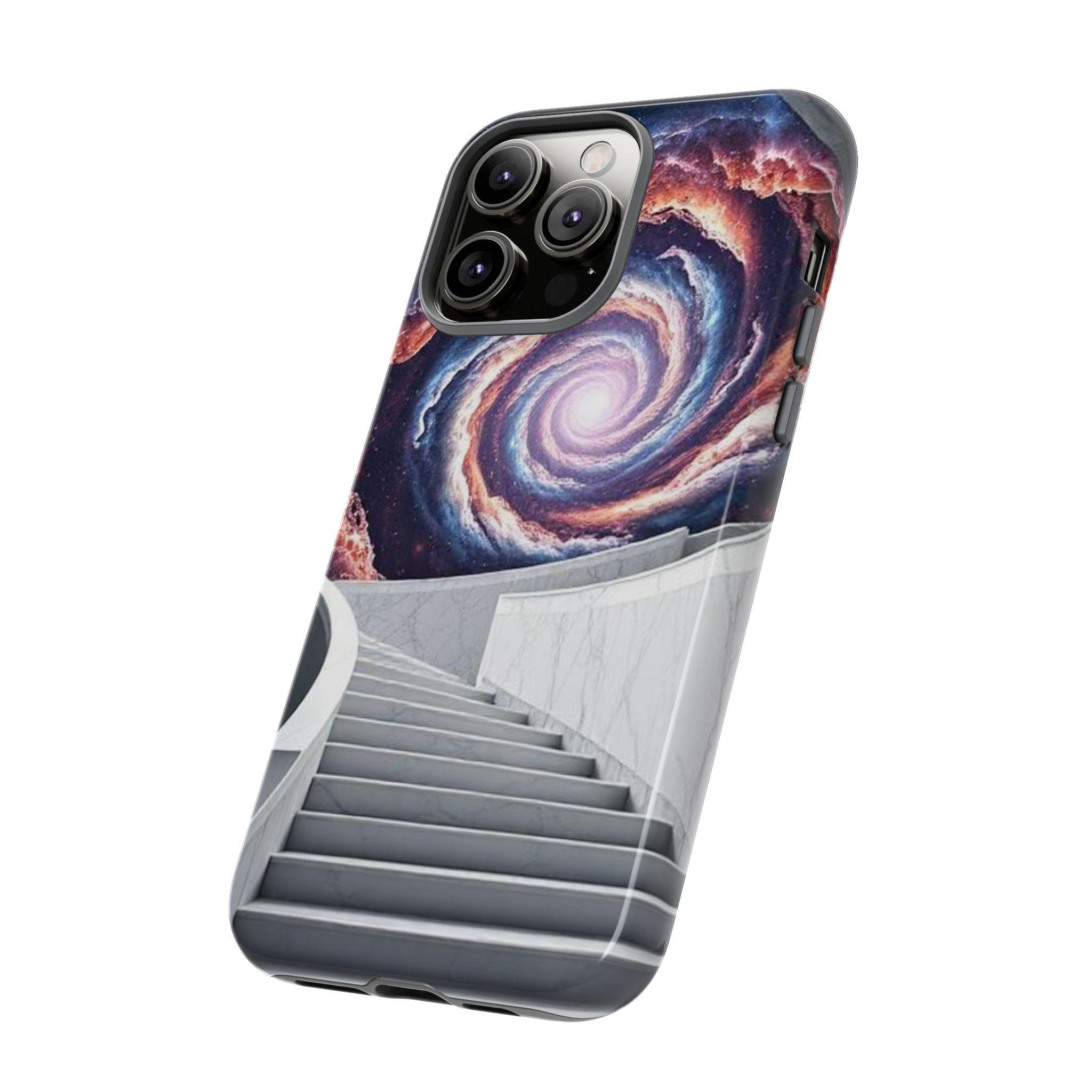 A protective phone case that feels like a tiny portal in your pocket. Smooth marble-like steps rise toward a spiral galaxy, drawing the eye and quieting the noise of daily life. The dual-layer shell and soft TPU liner cushion against drops while the high-density 3D wrap keeps the cosmic artwork vivid. It sits light in the hand, slips easily into a bag, and keeps ports open so your routine stays uninterrupted. Bring a little wonder to commuting, late-night writing sessions, or city walks where you want something that sparks conversation and holds up to everyday wear.