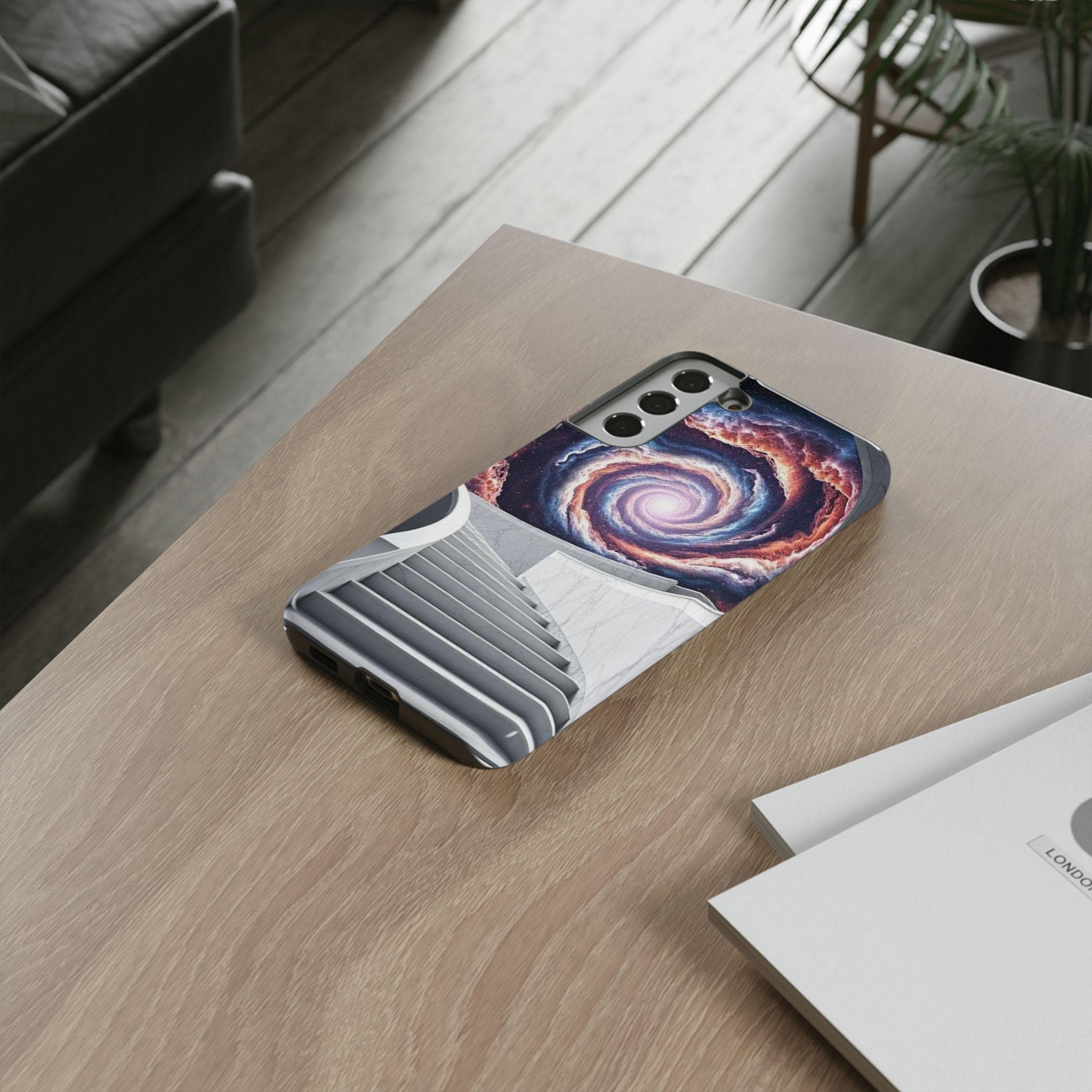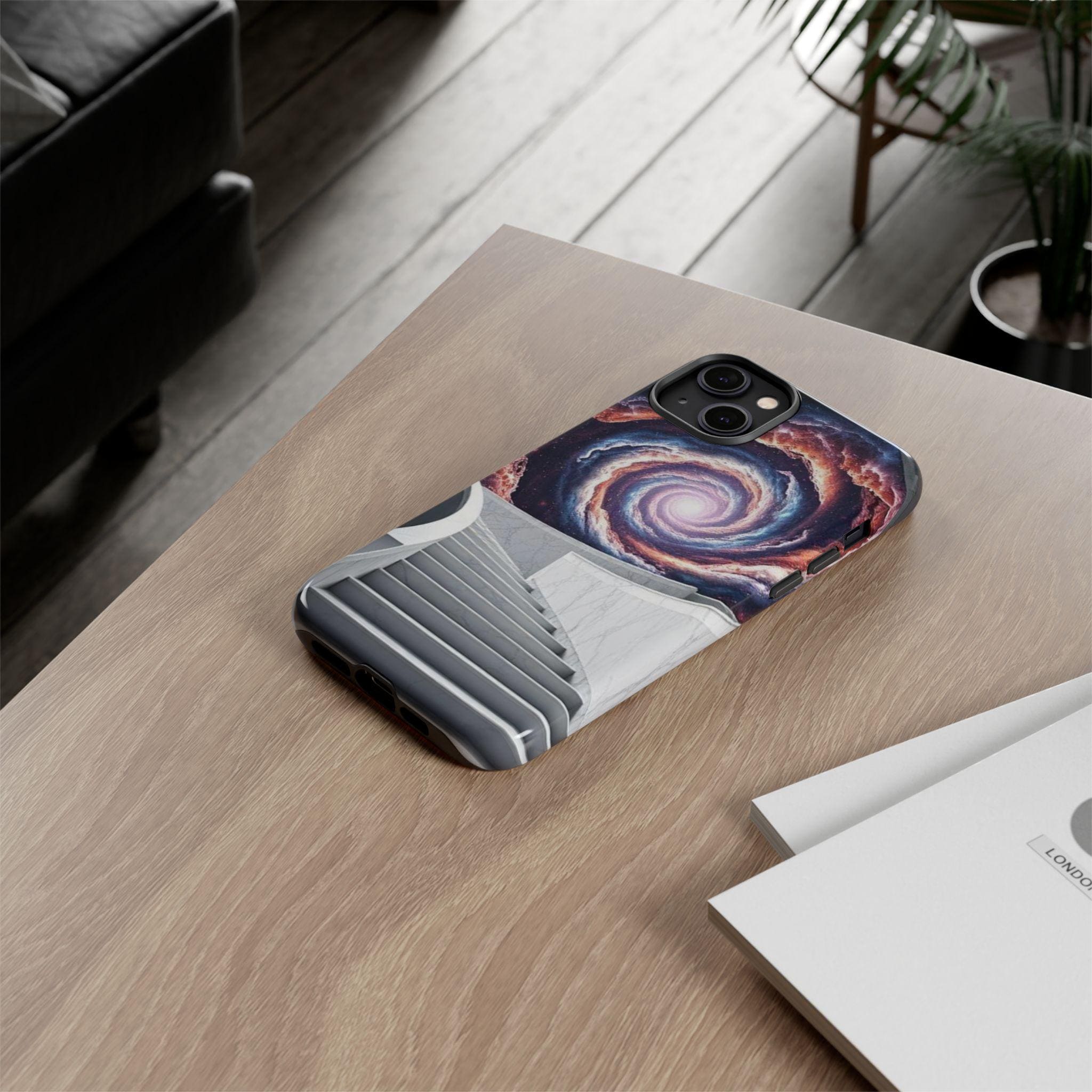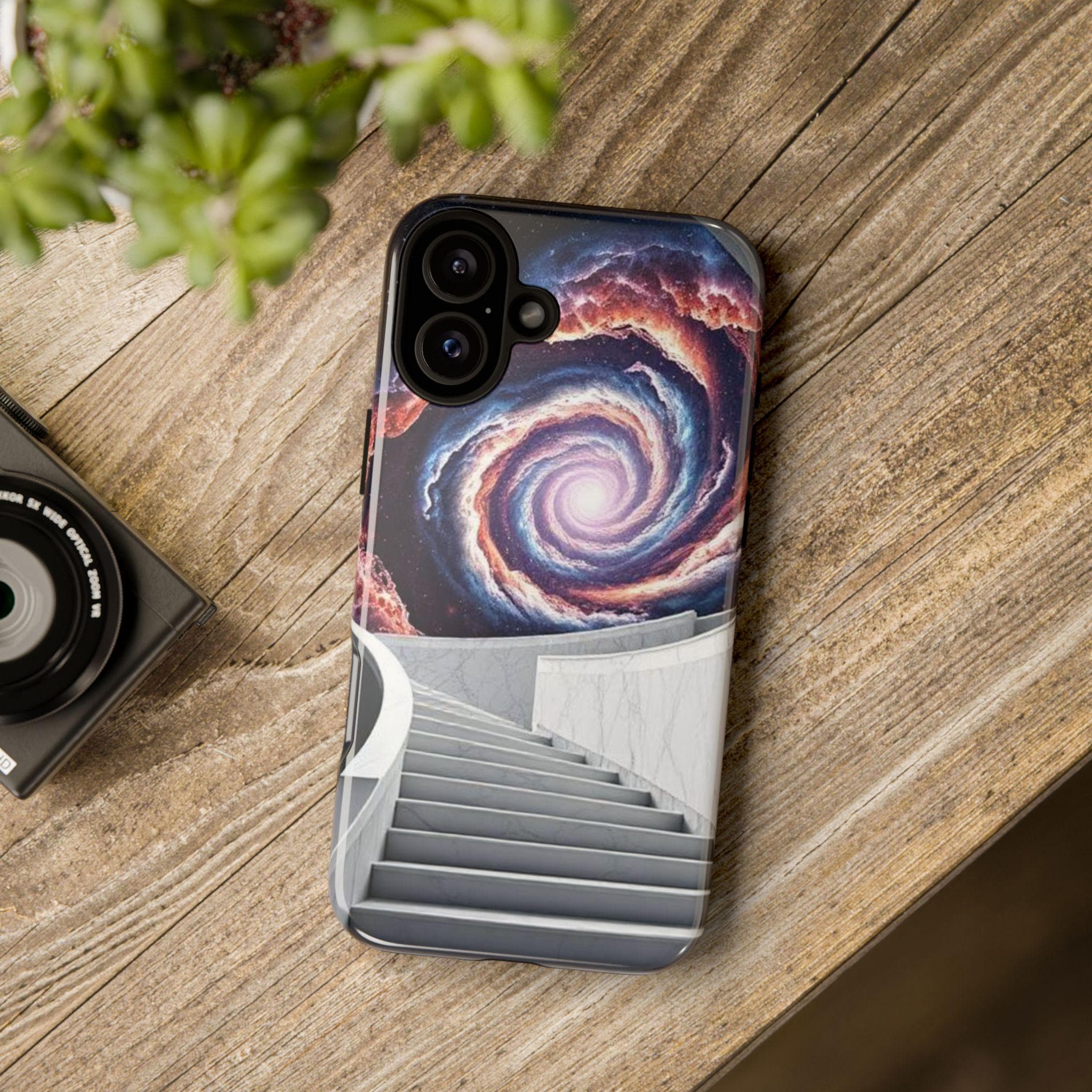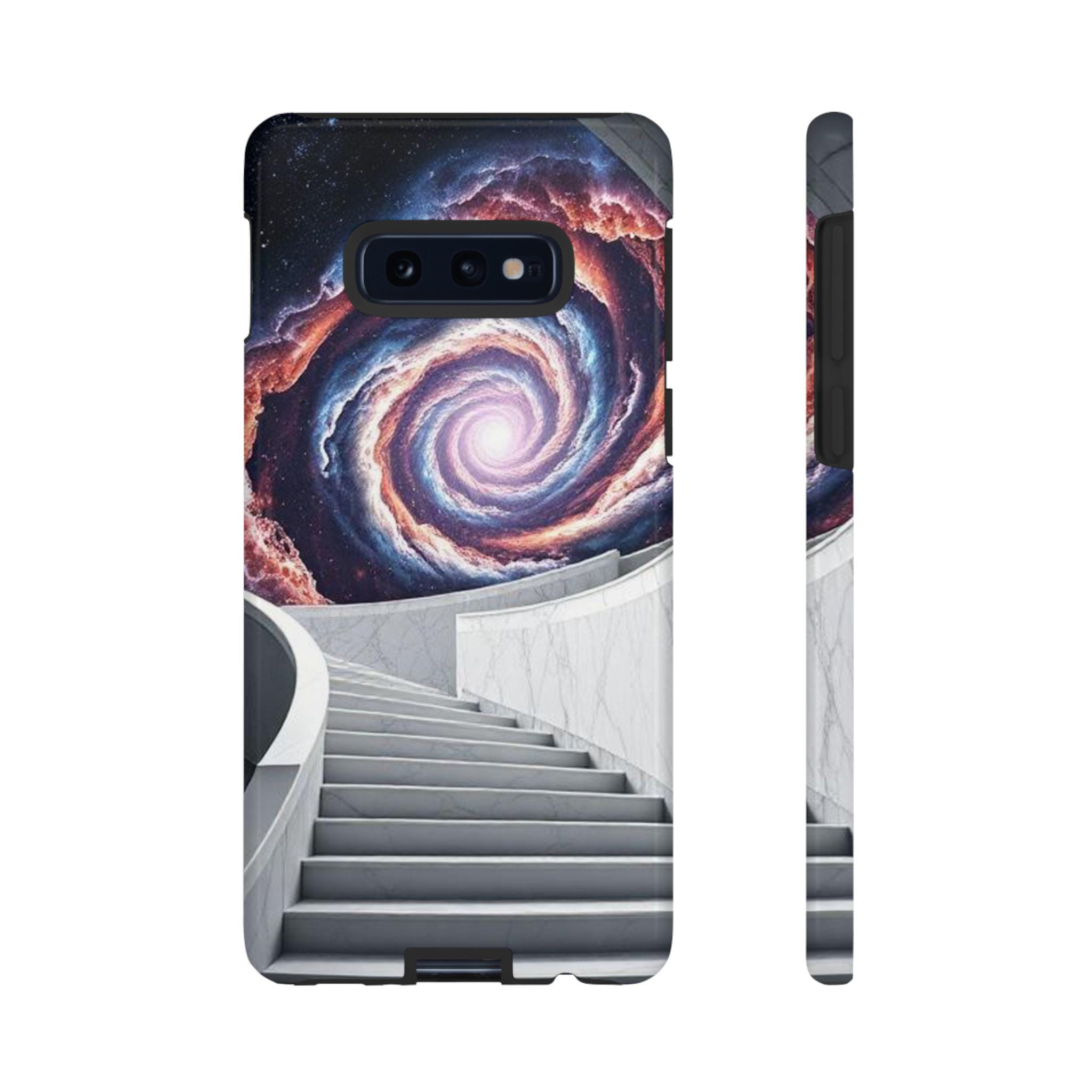 A protective phone case that feels like a tiny portal in your pocket. Smooth marble-like steps rise toward a spiral galaxy, drawing the eye and quieting the noise of daily life. The dual-layer shell and soft TPU liner cushion against drops while the high-density 3D wrap keeps the cosmic artwork vivid. It sits light in the hand, slips easily into a bag, and keeps ports open so your routine stays uninterrupted. Bring a little wonder to commuting, late-night writing sessions, or city walks where you want something that sparks conversation and holds up to everyday wear.