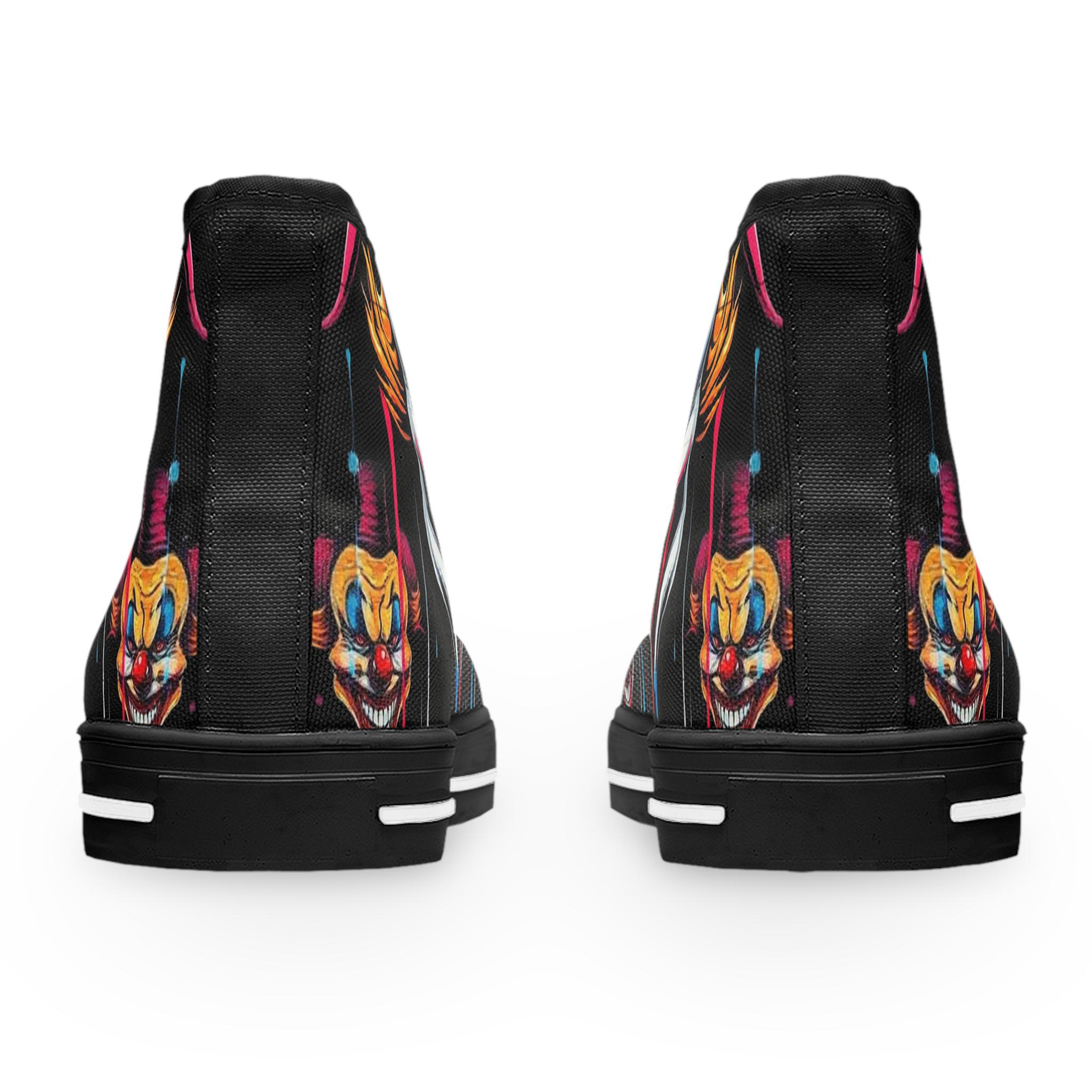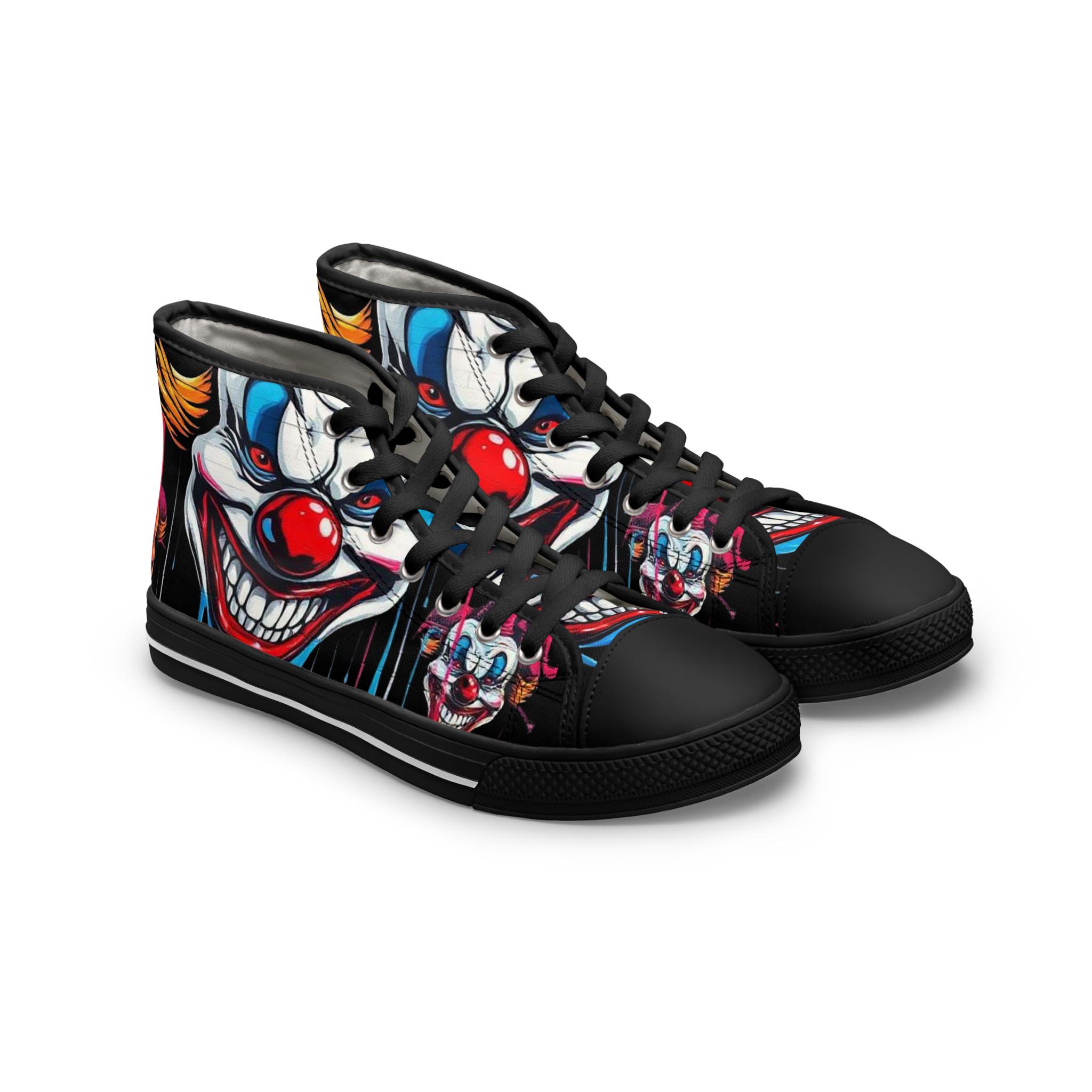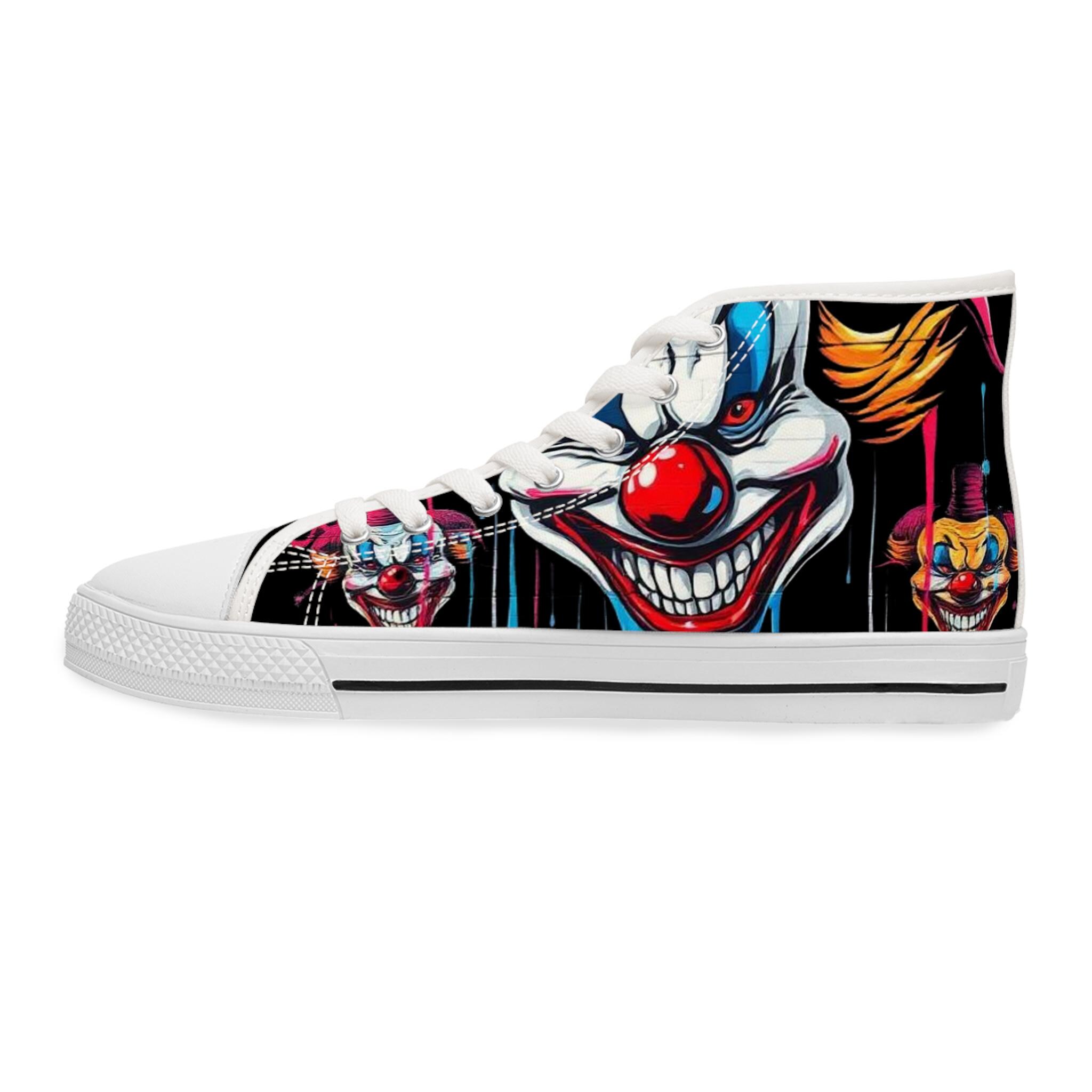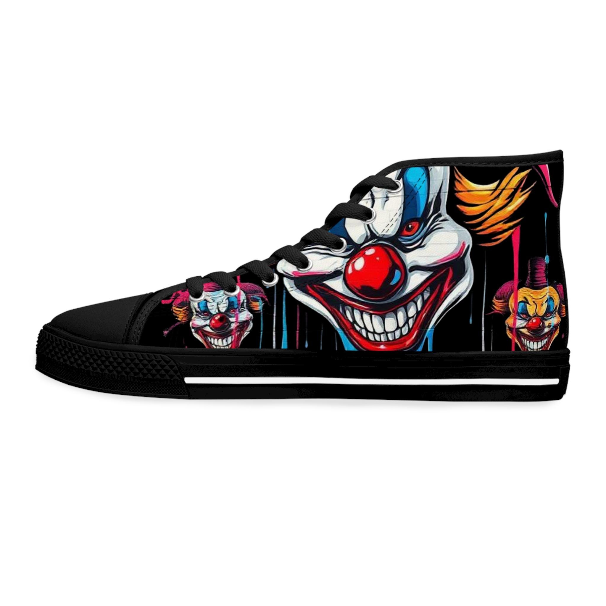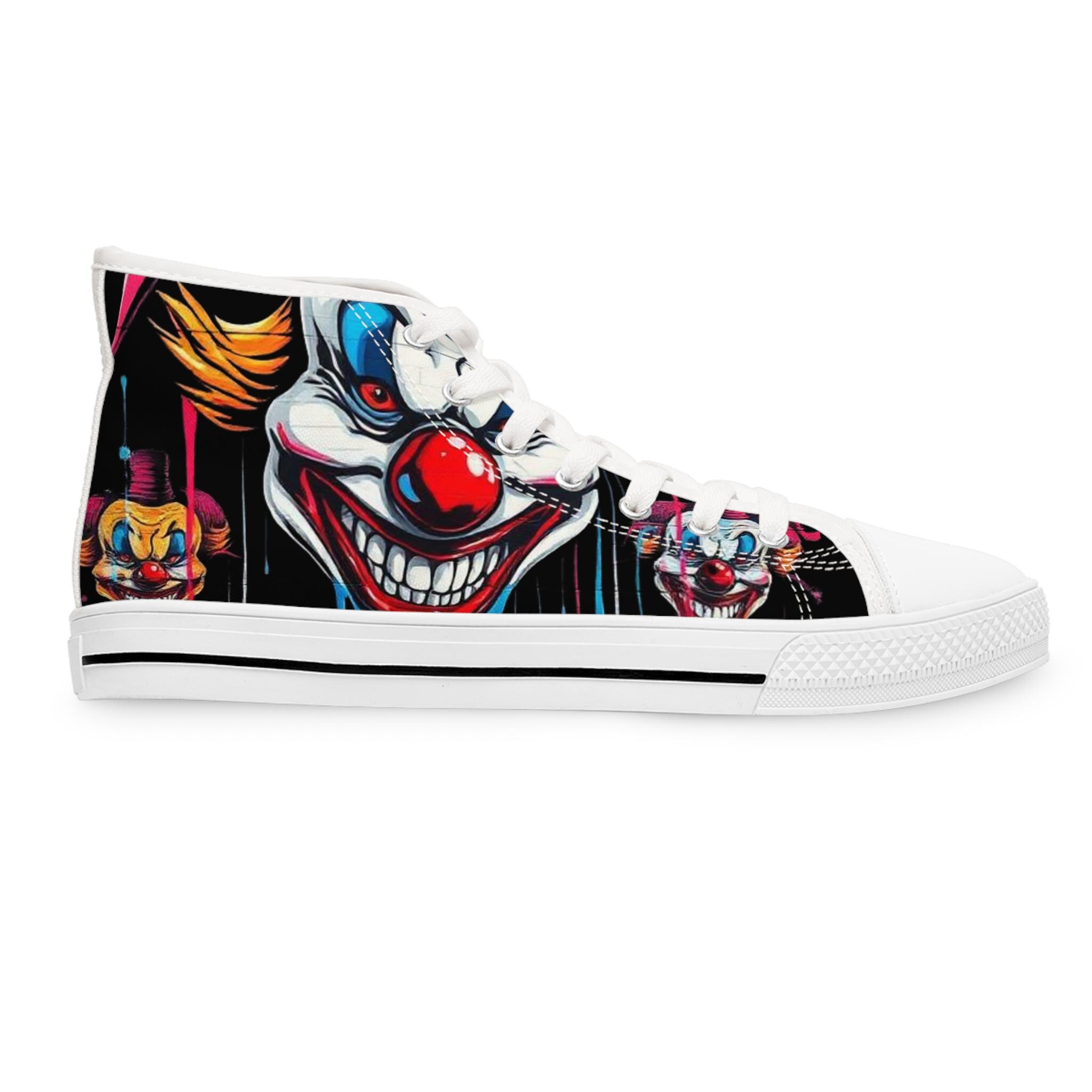 Scary Grinning Clown Women's High Top Sneakers | Horror Face, Colorful Creepy Art