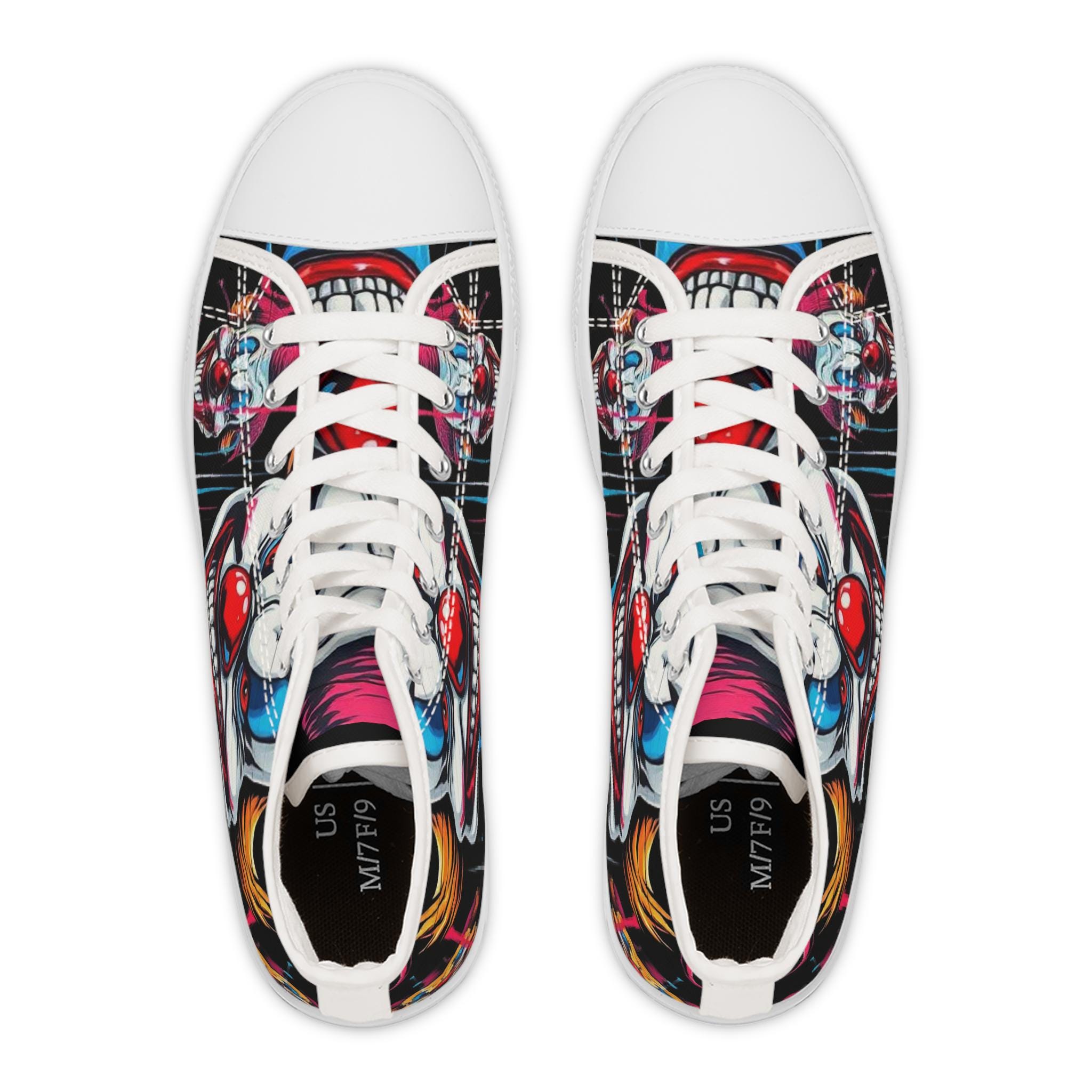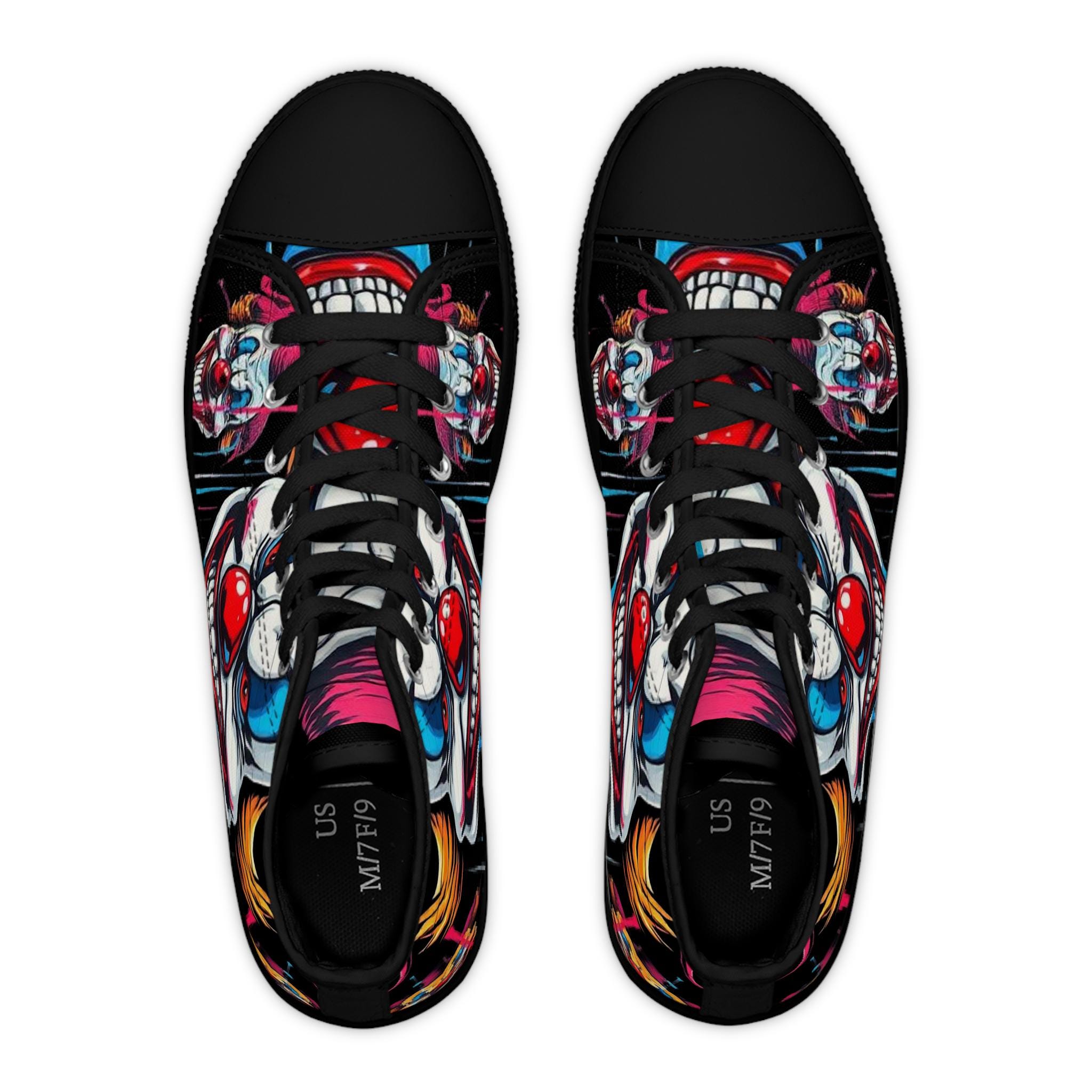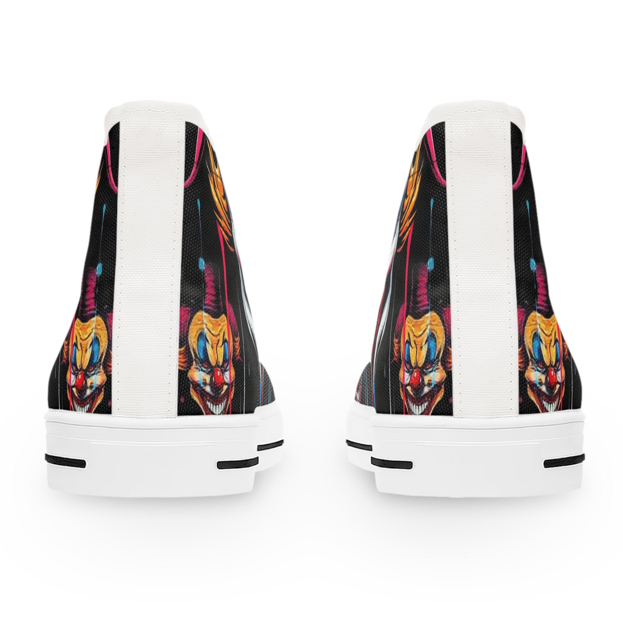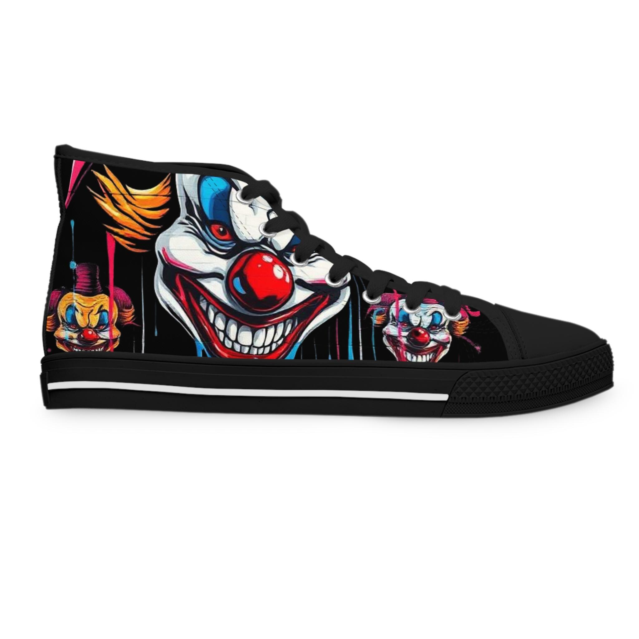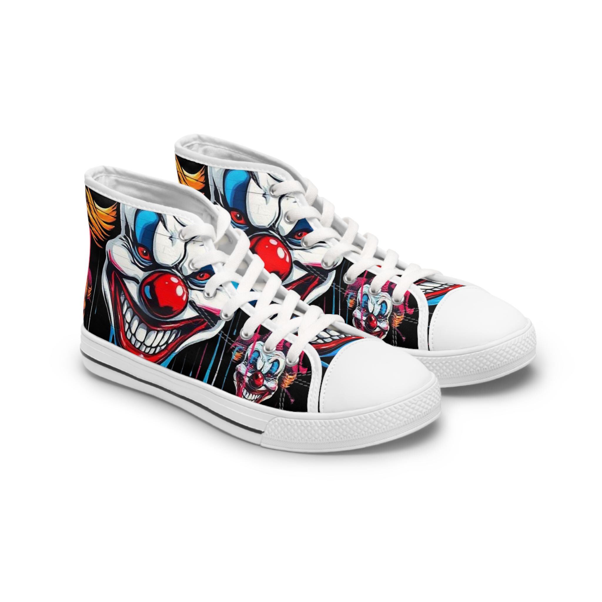 Scary Grinning Clown Women's High Top Sneakers | Horror Face, Colorful Creepy Art
