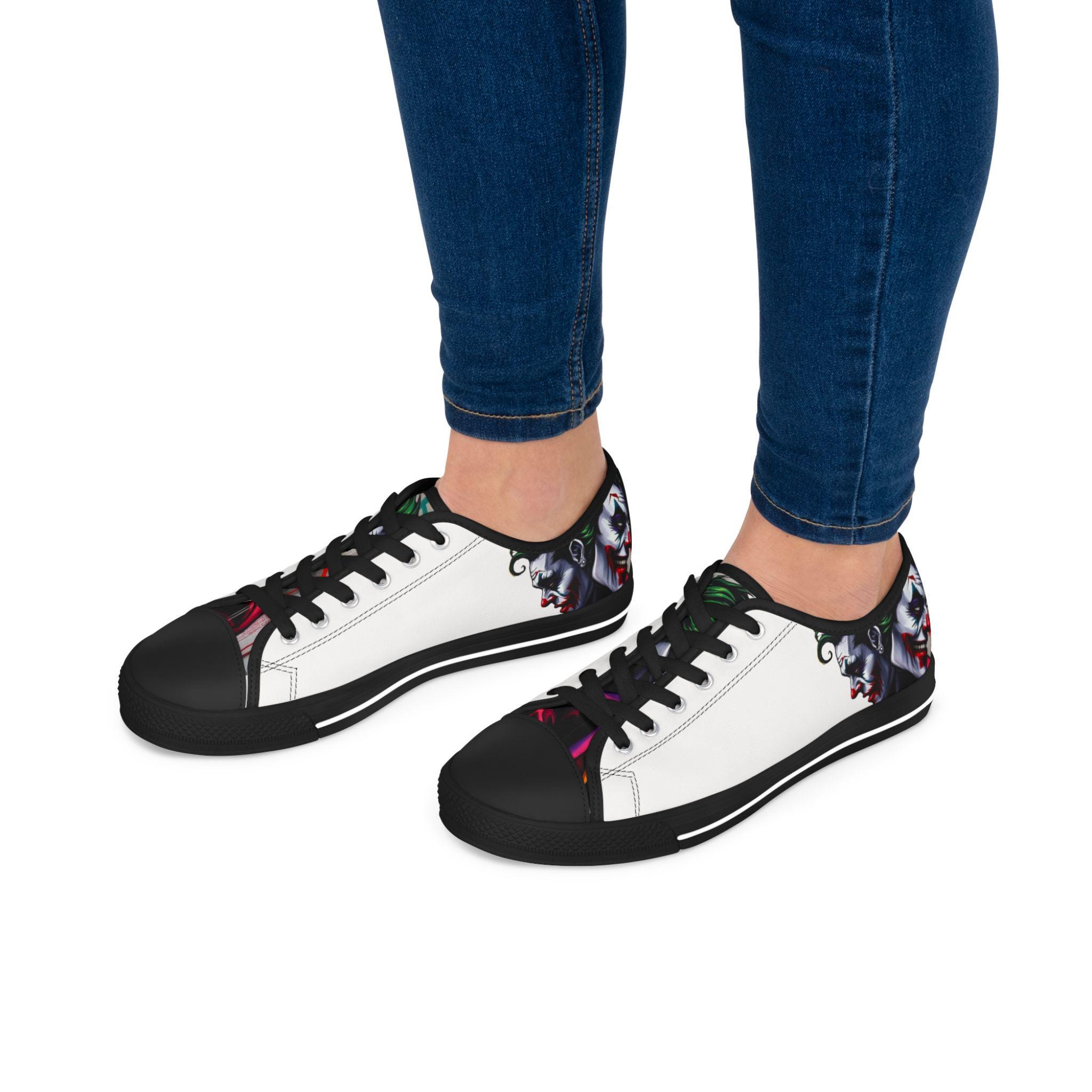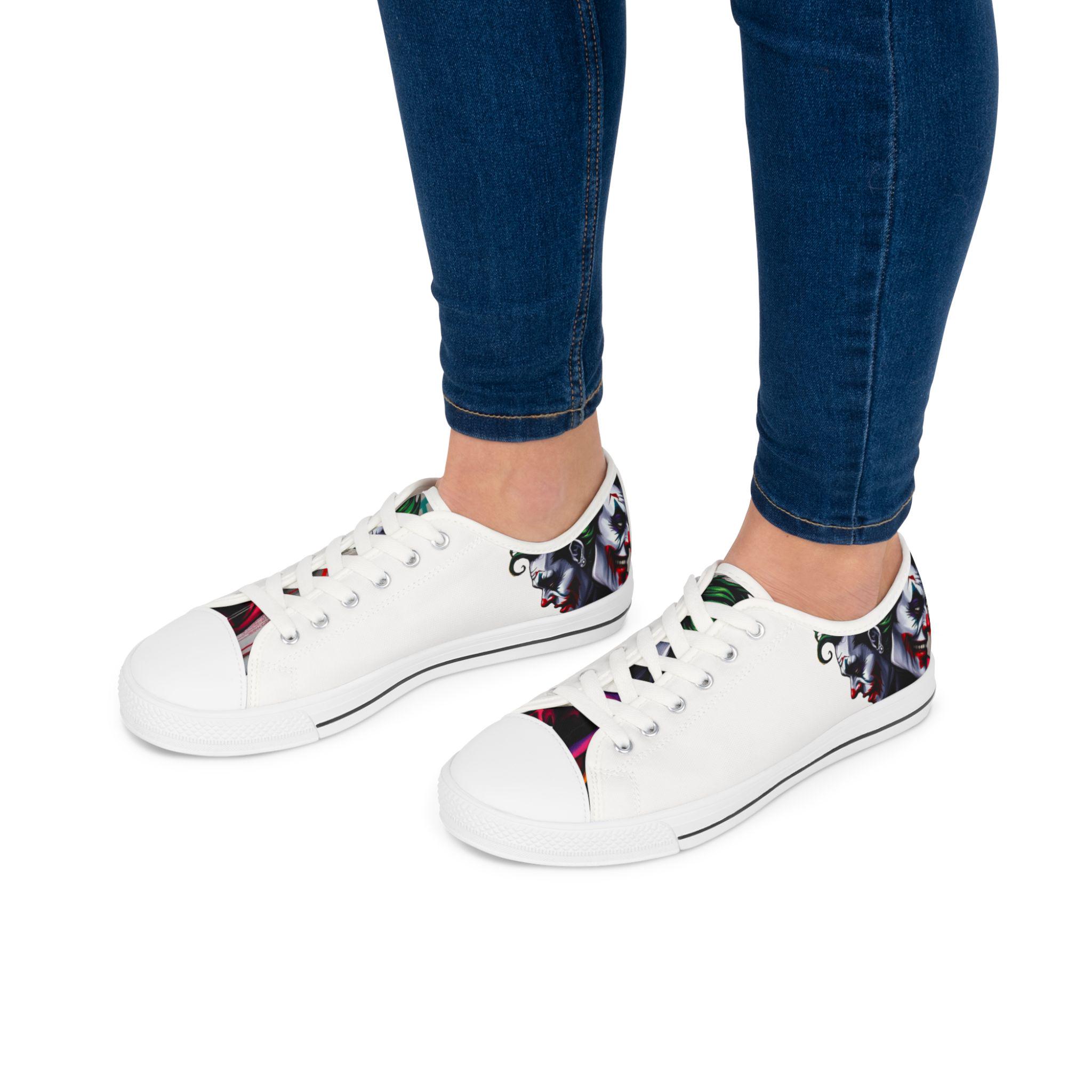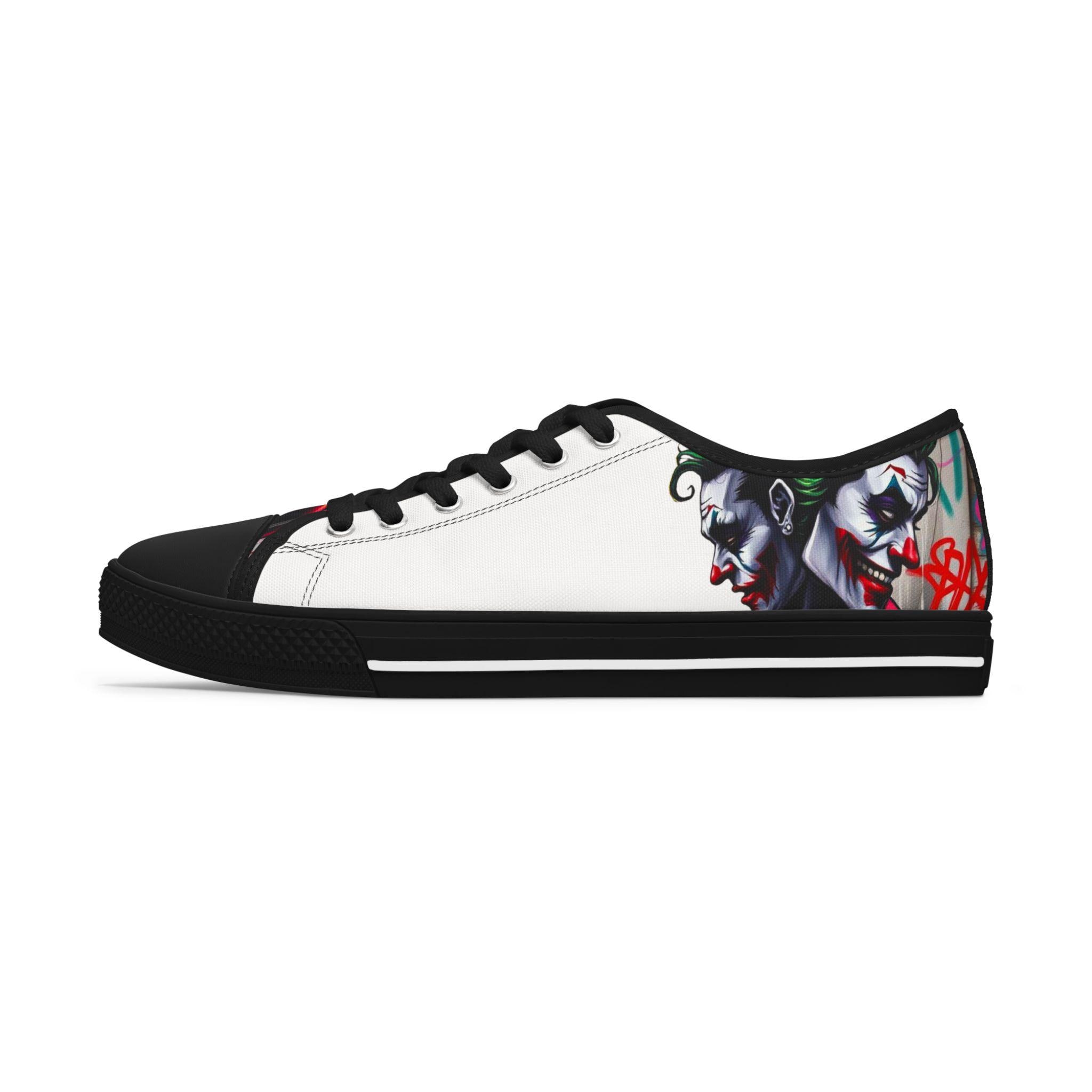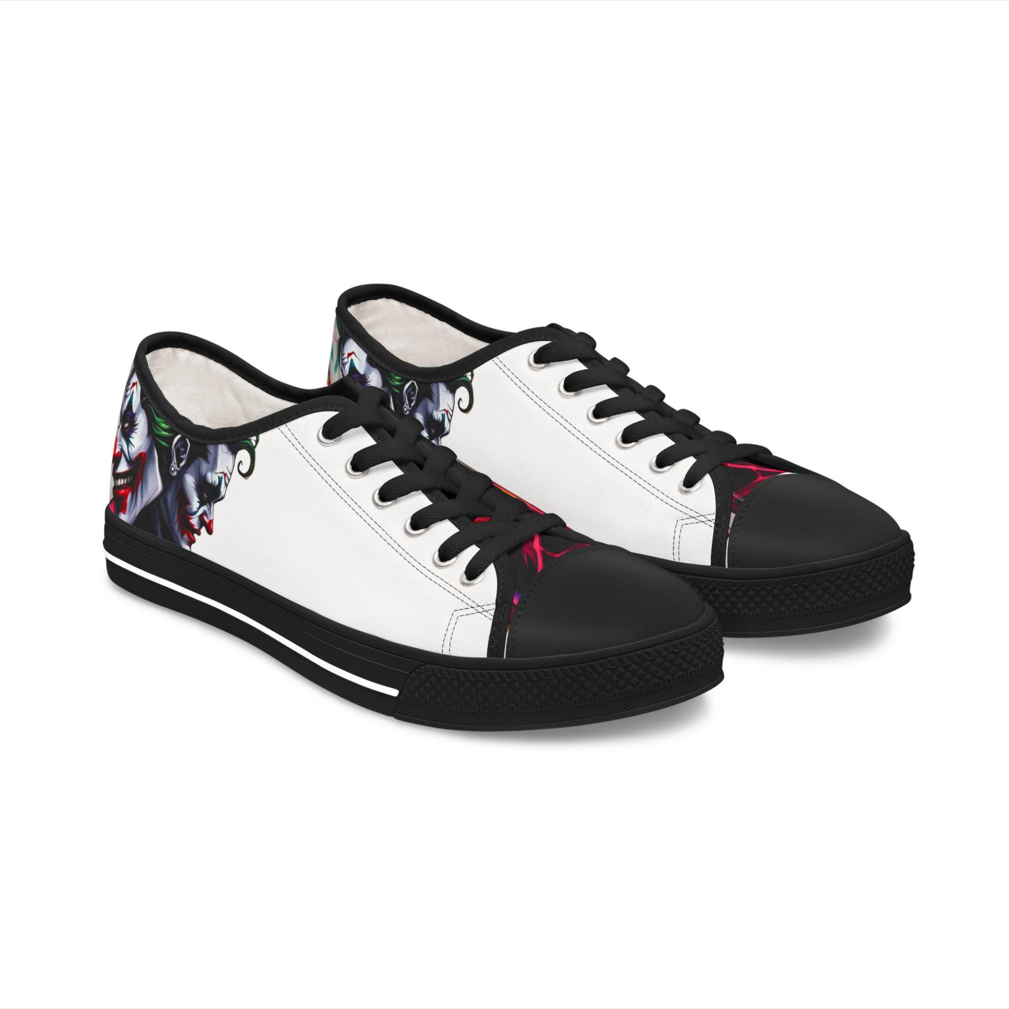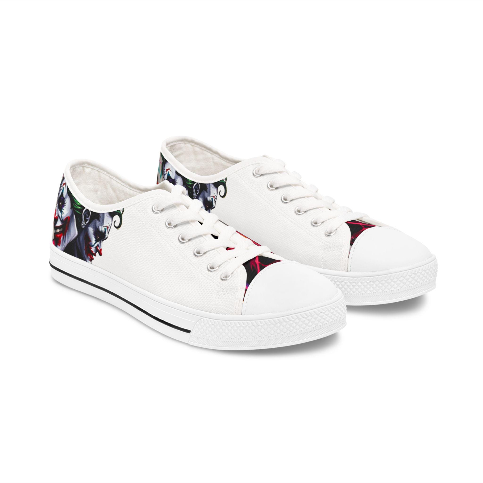 These low-top canvas sneakers carry an edgy, streetwise energy — subtle from afar, bold up close. Smooth white polyester canvas wraps the foot with breathable comfort, while the black pleather toe and metal eyelets add durable, urban detailing. Memory foam insoles and EVA shock-absorbing layers cushion every step, so you can wander city blocks or stand at shows without your feet complaining. The artwork prints wrap around the sides and tongue, letting a moody, graffiti-inspired character peek out when you walk. Wear them with slim jeans, a leather jacket, or a band tee to lean into a rebellious, art-forward look.