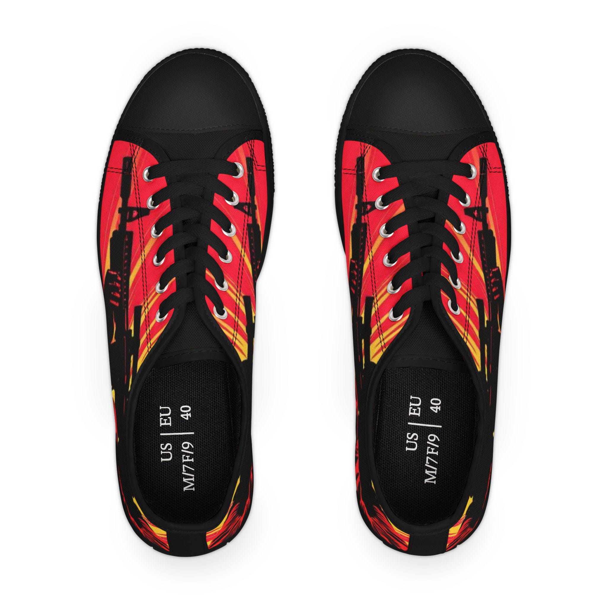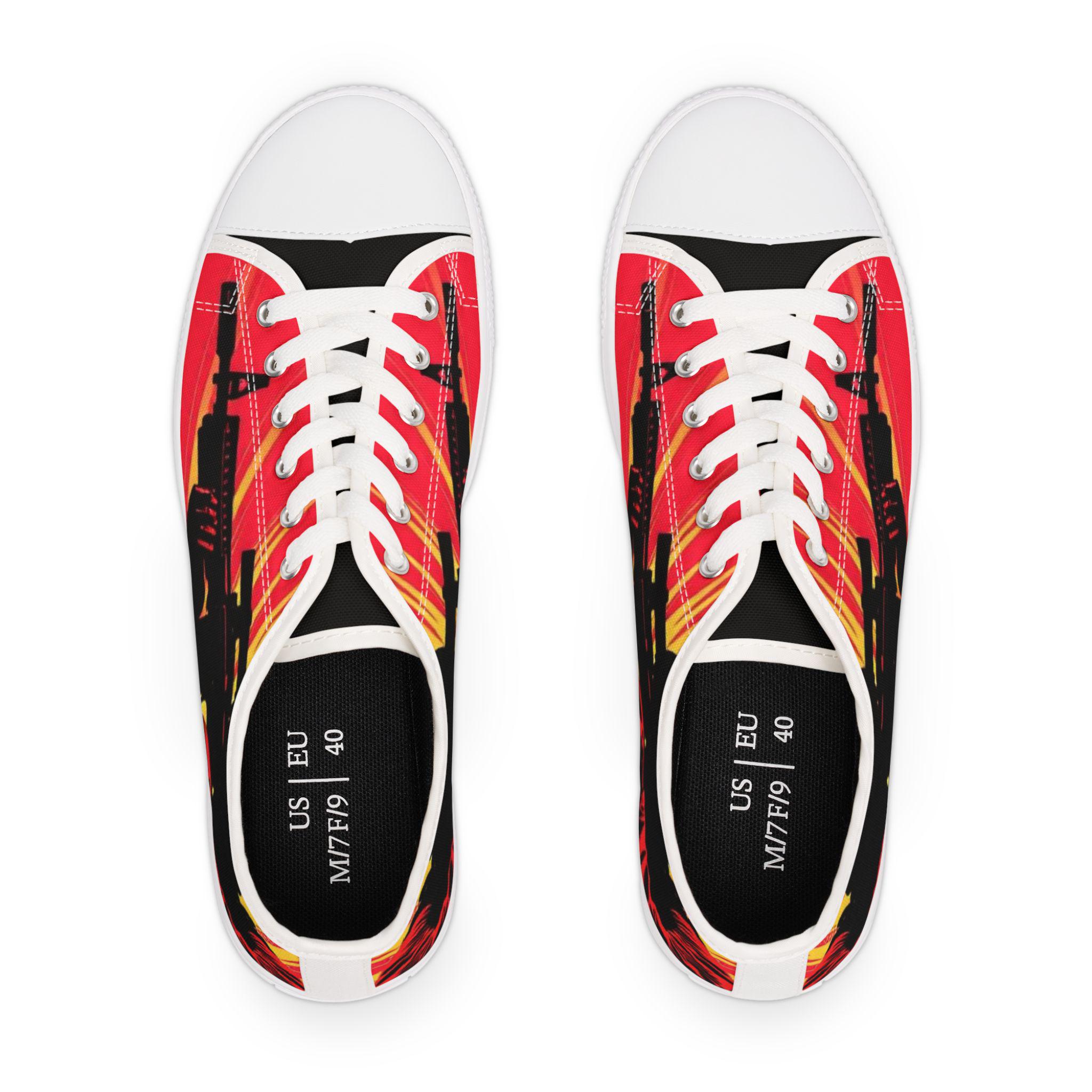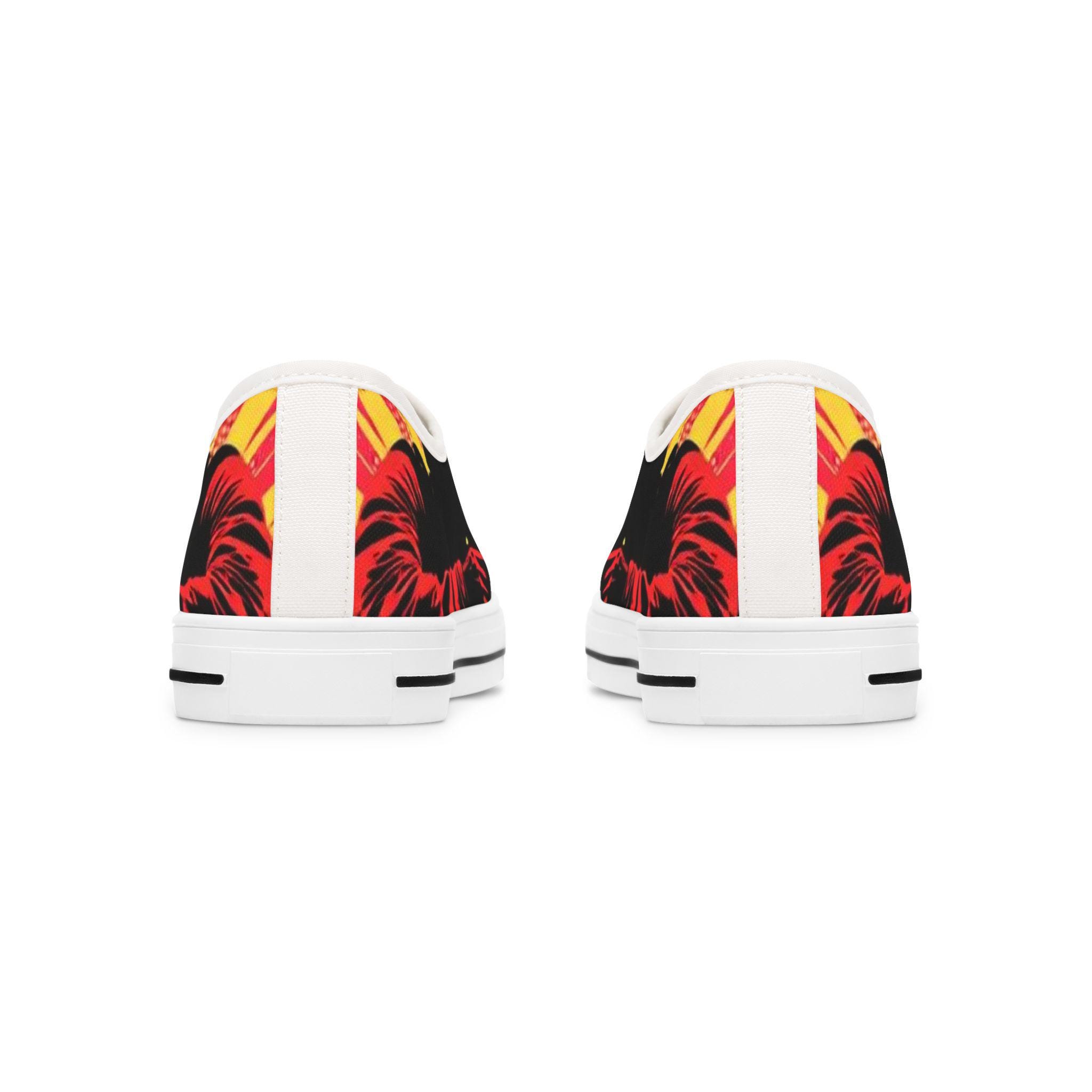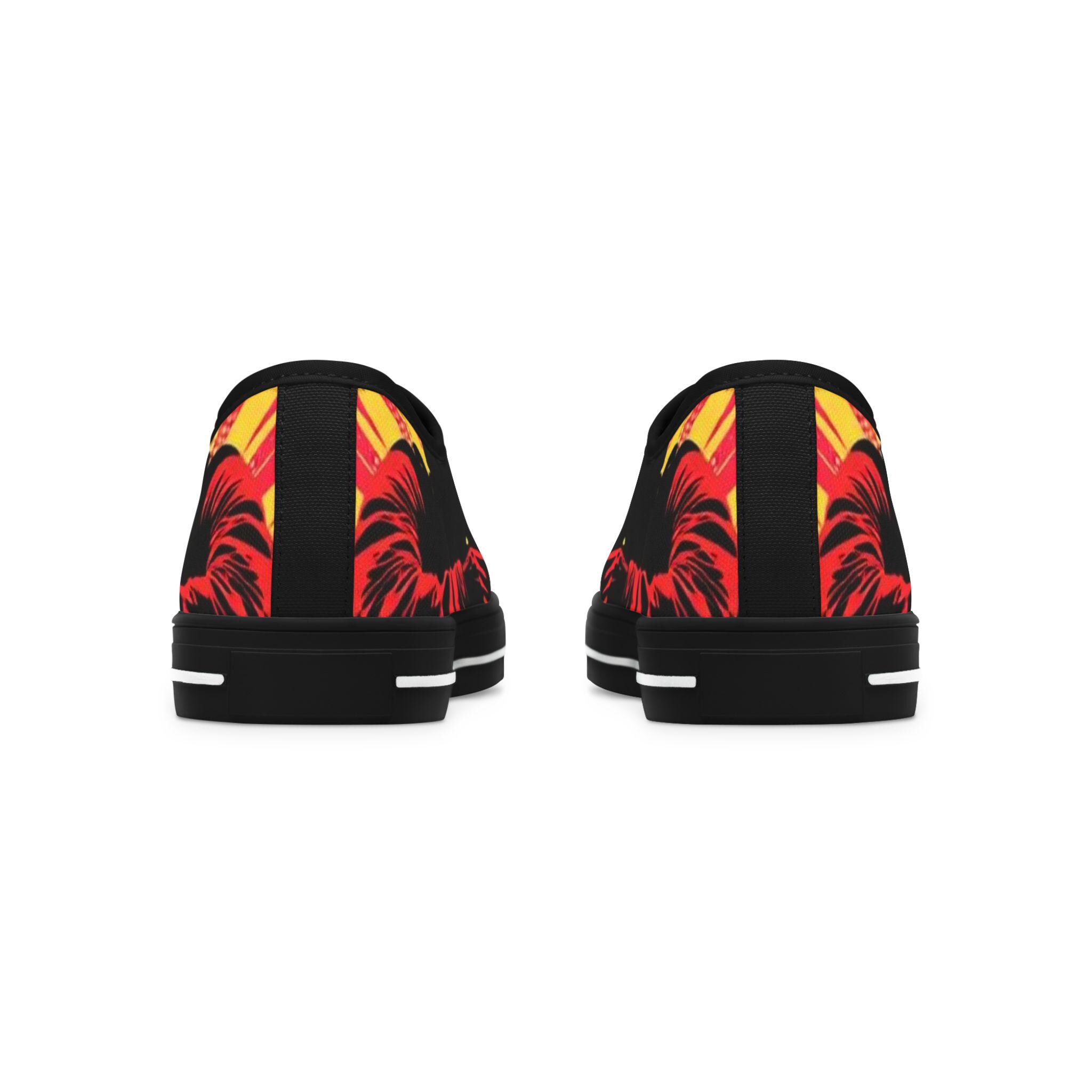Low-top canvas sneakers that bring bold street-art energy to every step. The full-wrap design features high-contrast, fiery imagery across both sides and the tongue, creating a striking, continuous look. Built on a lightweight EVA sole with shock-absorbing insole and hi-poly memory foam, they balance eye-catching style with day-long comfort. Metal eyelets and a pleather-reinforced round toe add durability where it matters, while breathable polyester canvas keeps feet cool. Choose black or white accents to match your wardrobe and let these sneakers be the statement piece for casual outings, concerts, or weekend city wandering.