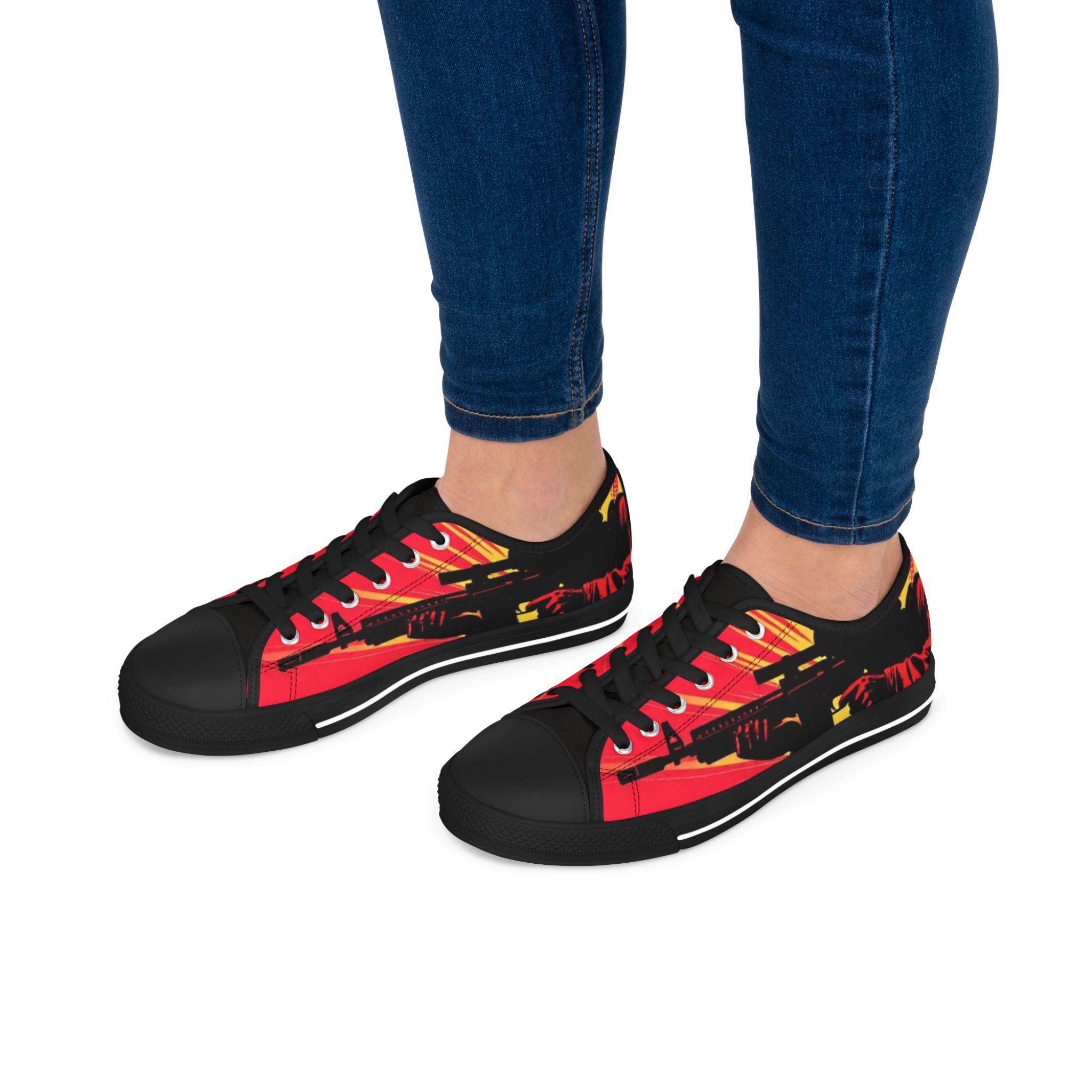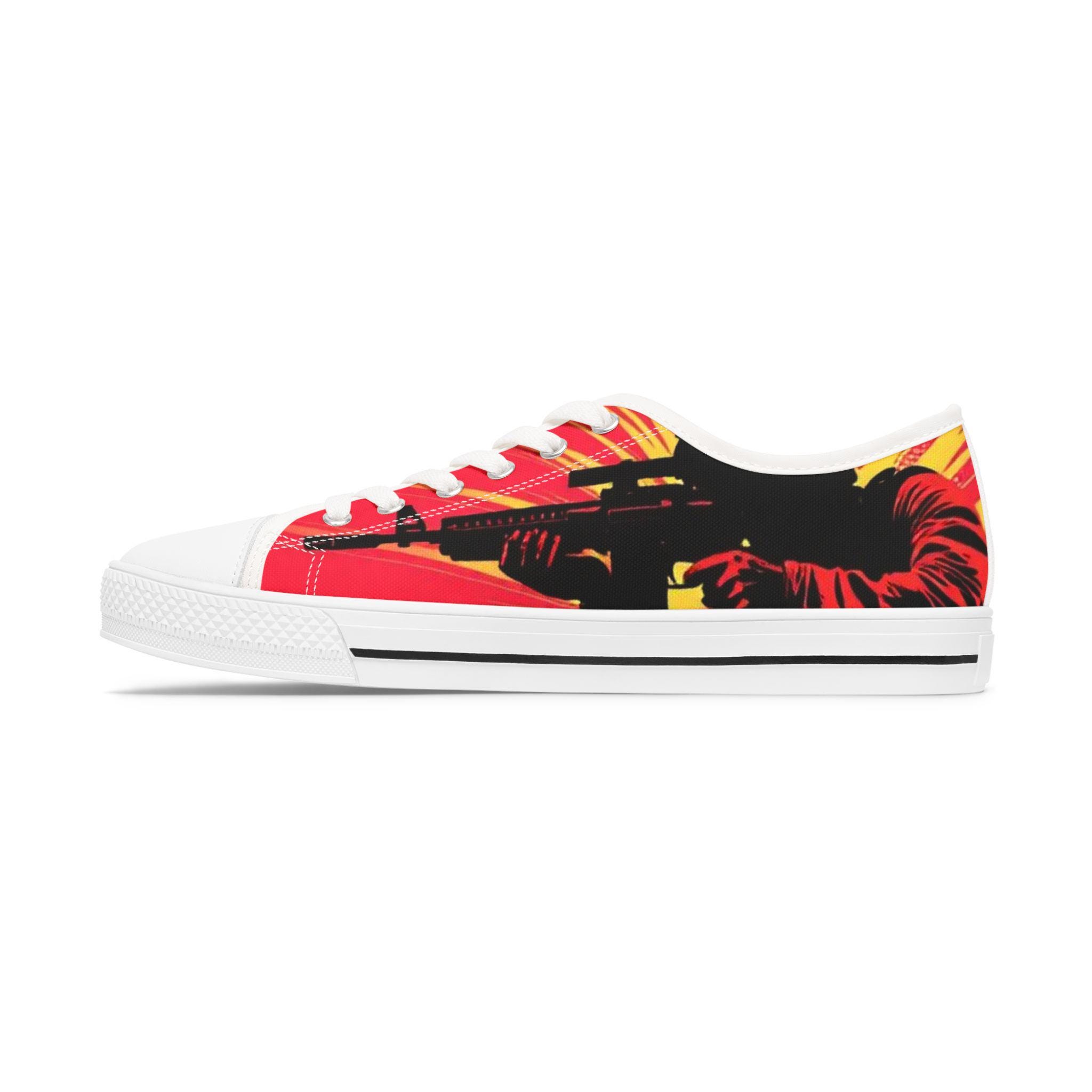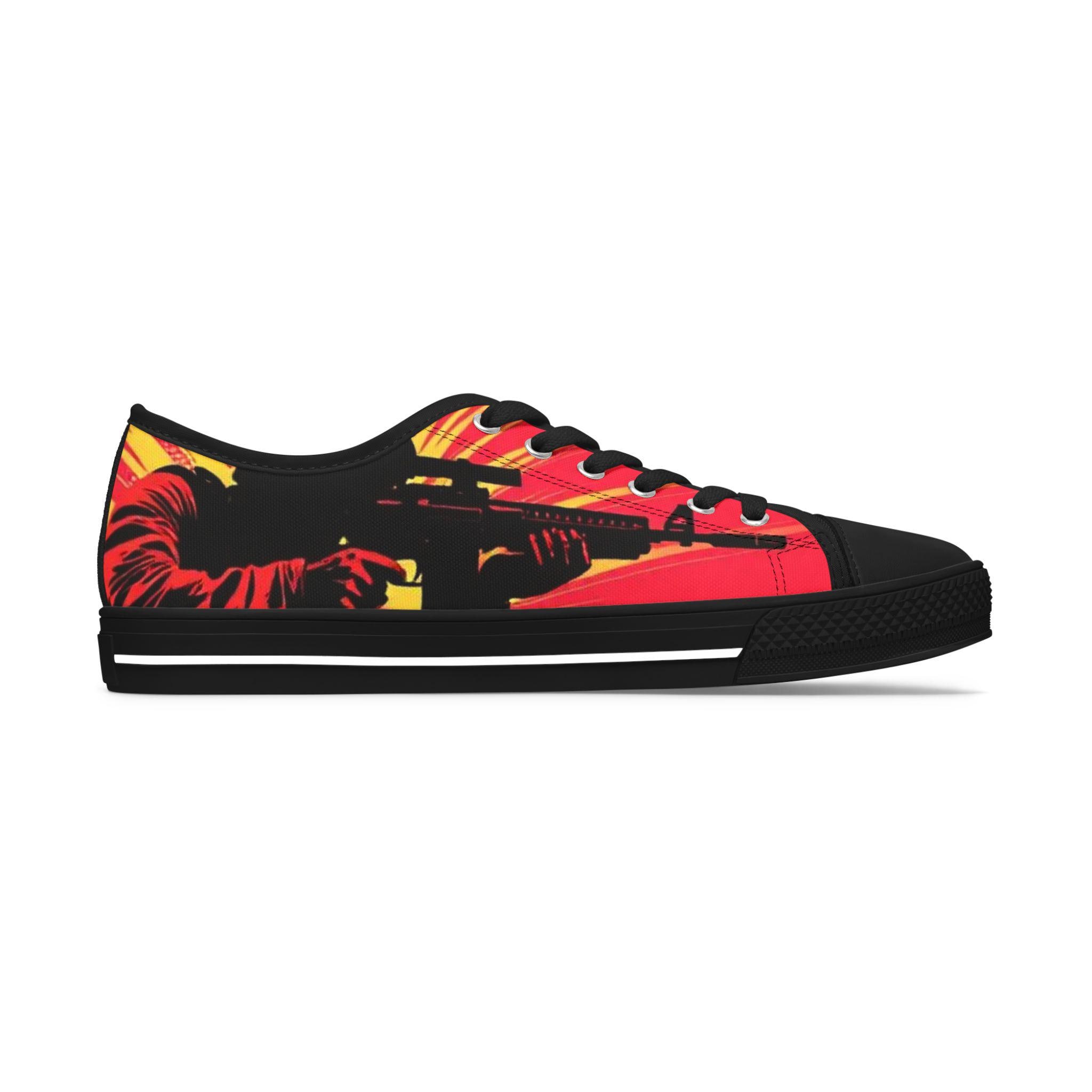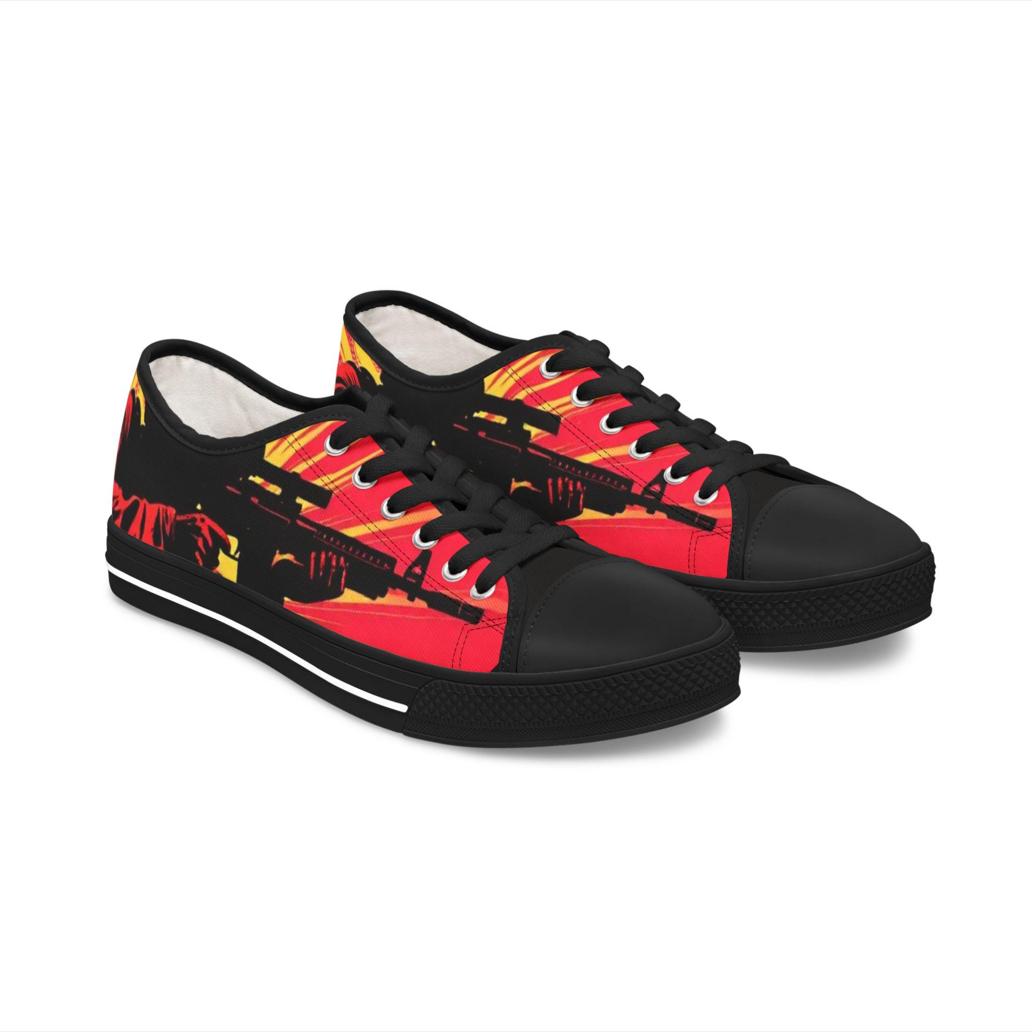 Low-top canvas sneakers that bring bold street-art energy to every step. The full-wrap design features high-contrast, fiery imagery across both sides and the tongue, creating a striking, continuous look. Built on a lightweight EVA sole with shock-absorbing insole and hi-poly memory foam, they balance eye-catching style with day-long comfort. Metal eyelets and a pleather-reinforced round toe add durability where it matters, while breathable polyester canvas keeps feet cool. Choose black or white accents to match your wardrobe and let these sneakers be the statement piece for casual outings, concerts, or weekend city wandering.