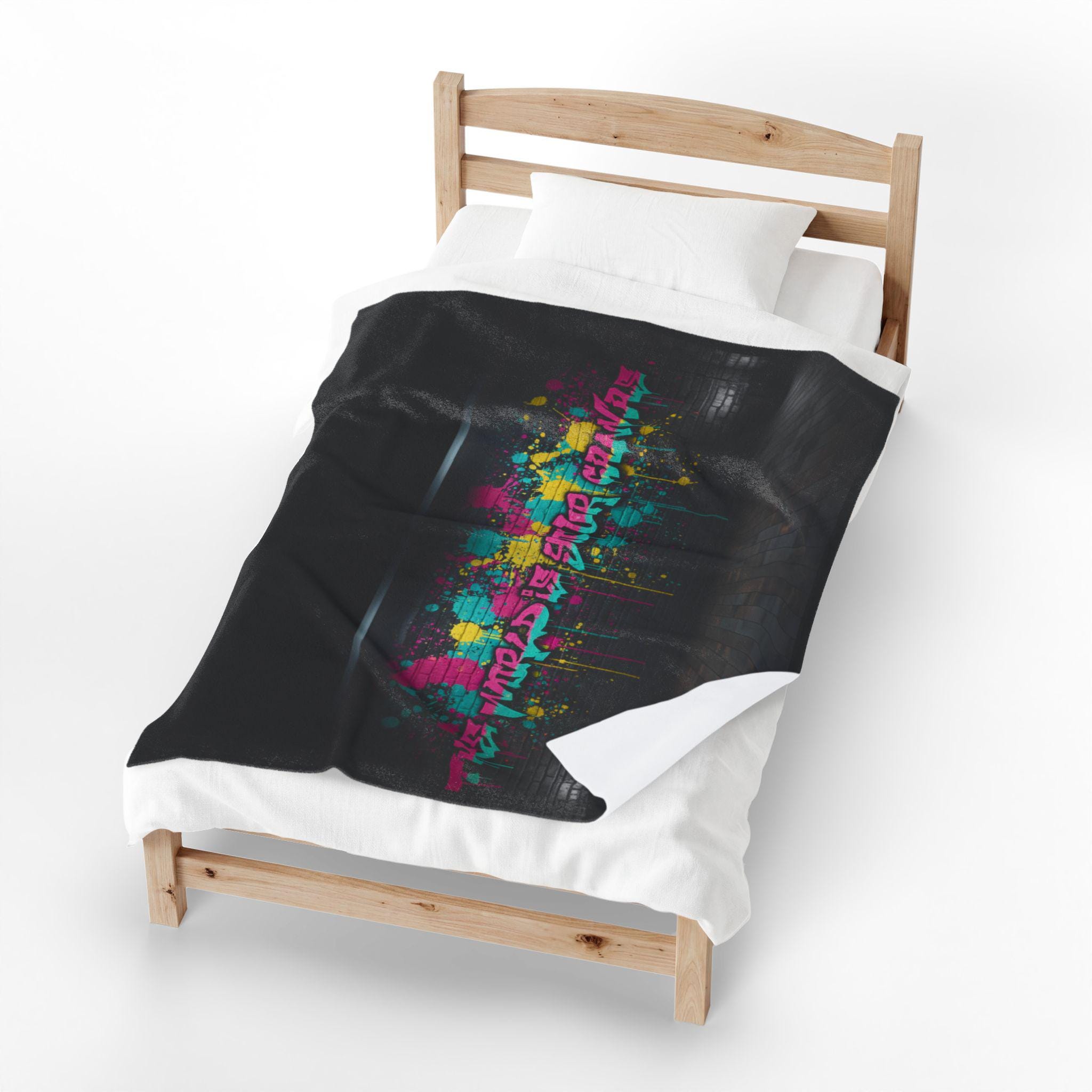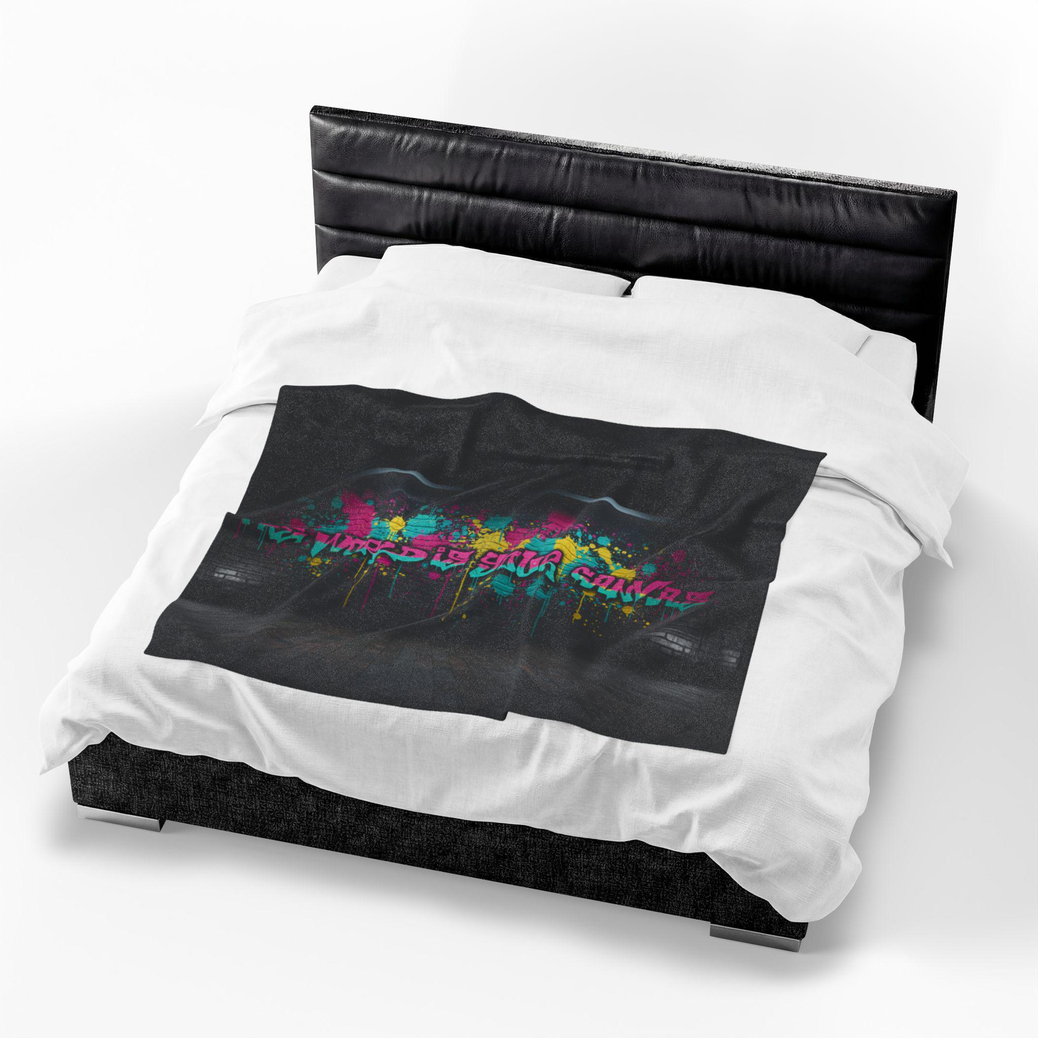 Sink into a velvety throw that feels like a late-night street mural wrapped around you. This plush blanket pairs vibrant, graffiti-inspired color with a softly brushed surface that drapes warm and smooth over shoulders and laps. City lights, paint splatters, and bold lettering read like an urban soundtrack—great for settling in with a film, sketching playlist, or watching the rain against the window. It moves easily from couch to studio, adding an edge of creative energy without sacrificing cozy. Machine-friendly and colorfast, the printed side holds its detail and pop so the art stays vivid through evenings and washes.