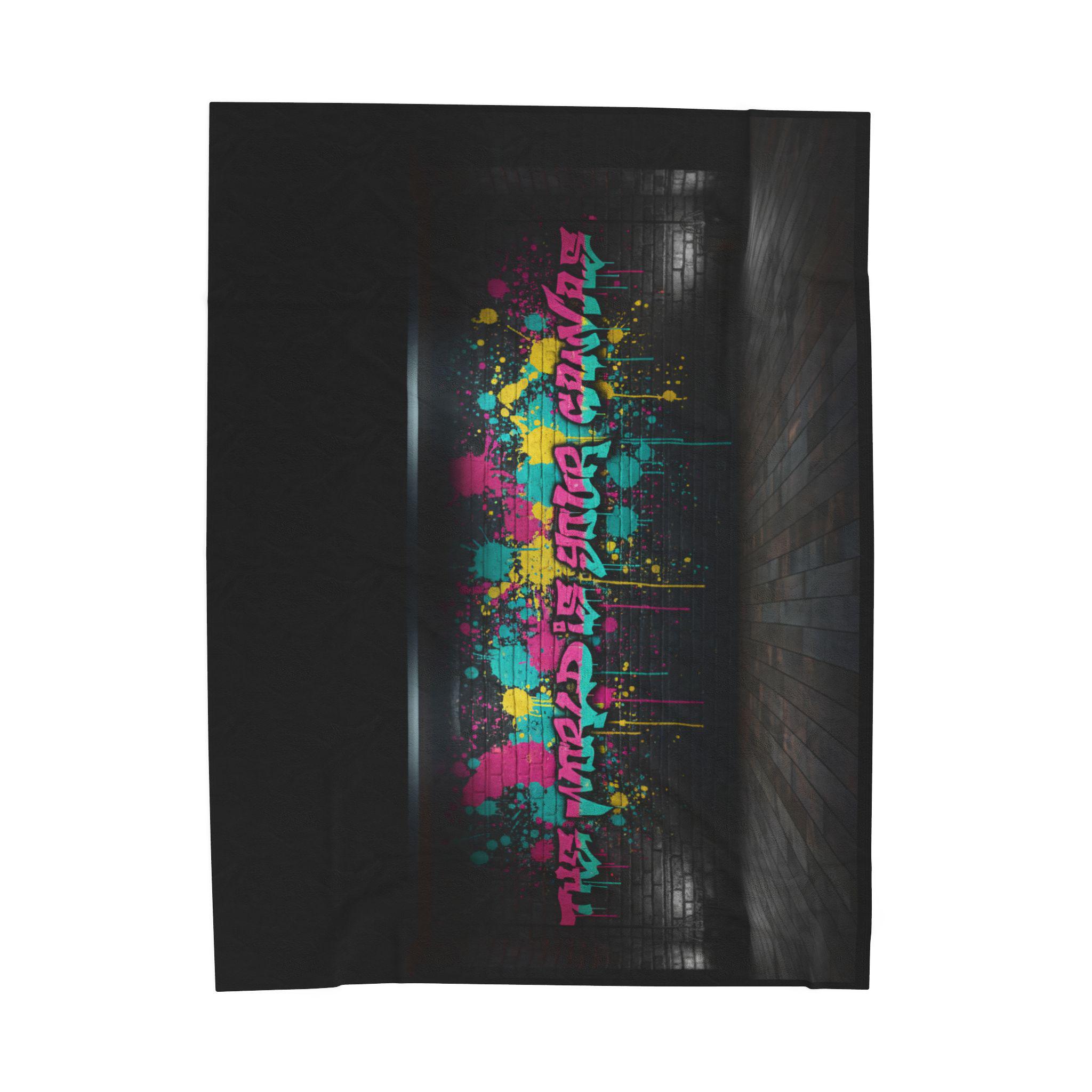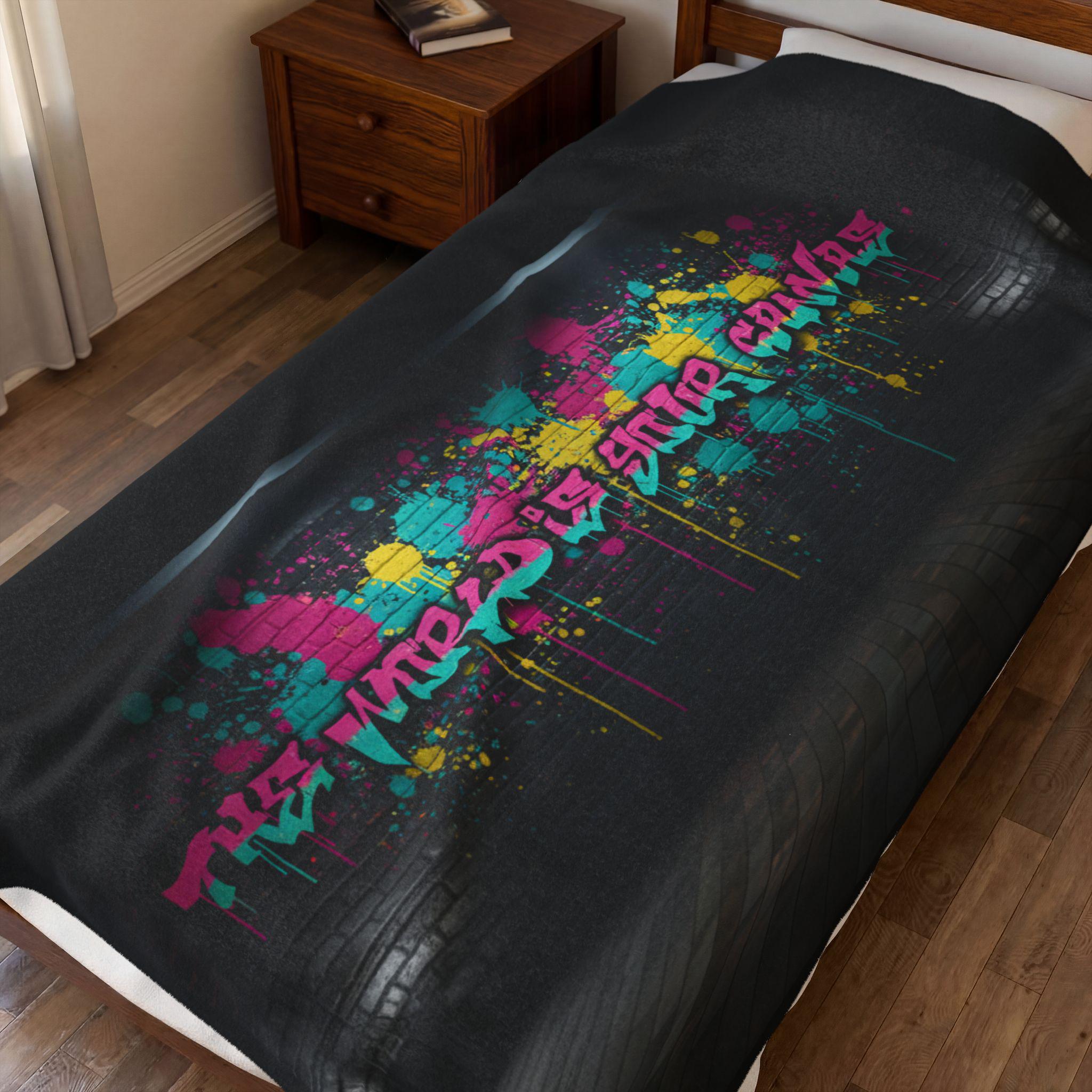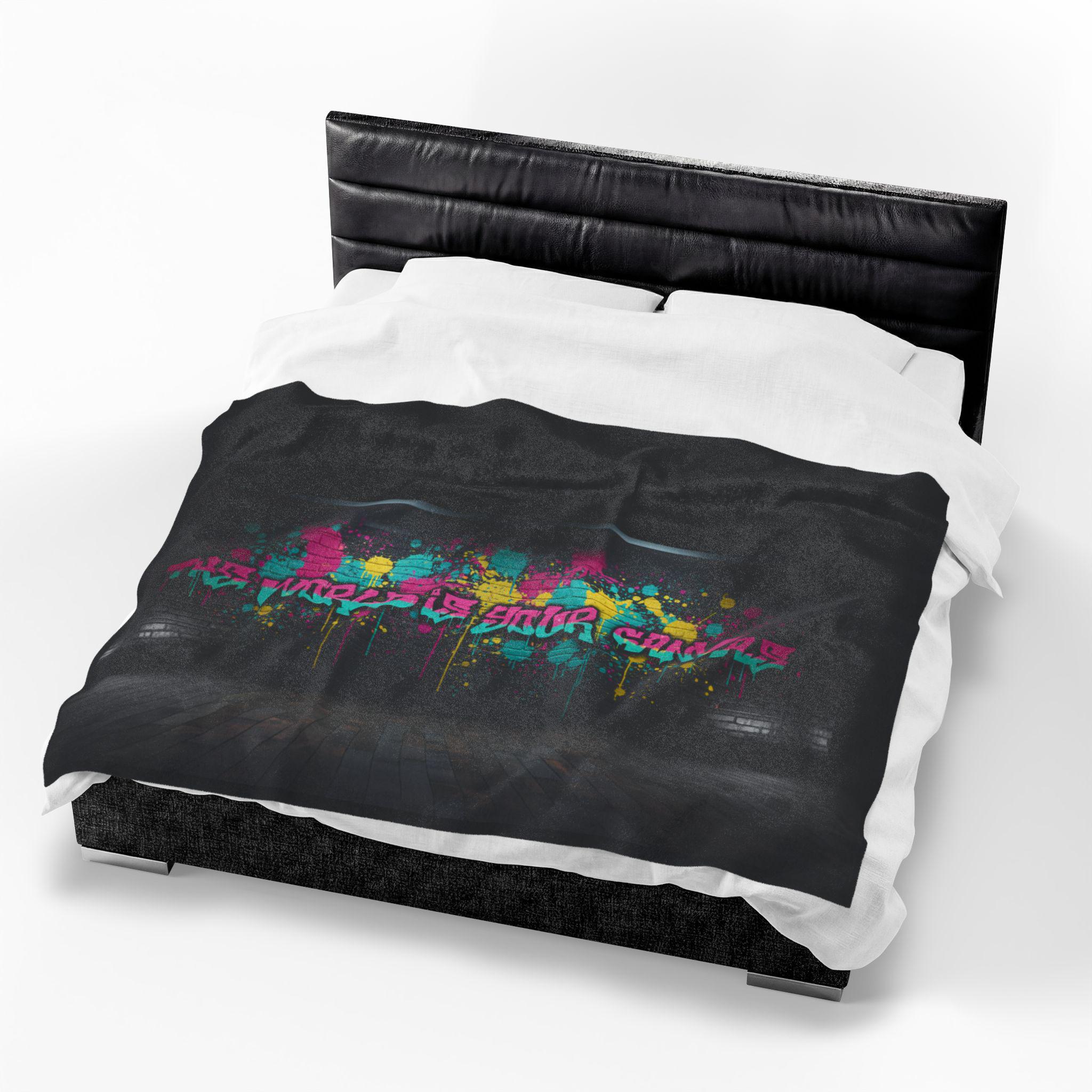 Neon Graffiti The World Is Your Canvas Art Blanket | Urban Spray Paint Alley Mural