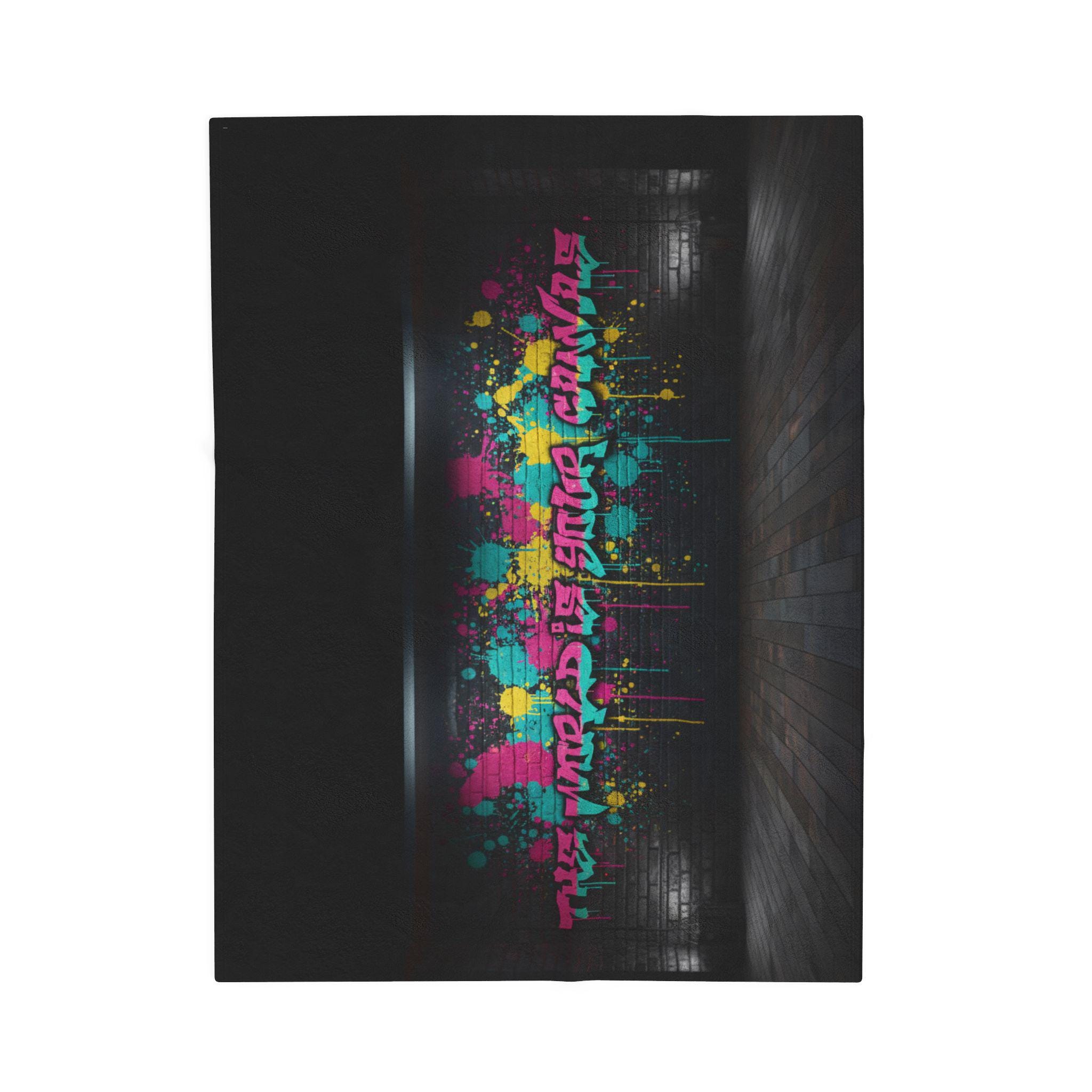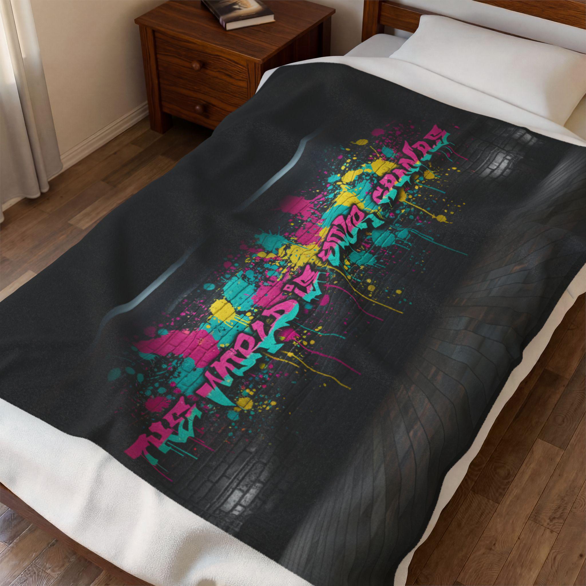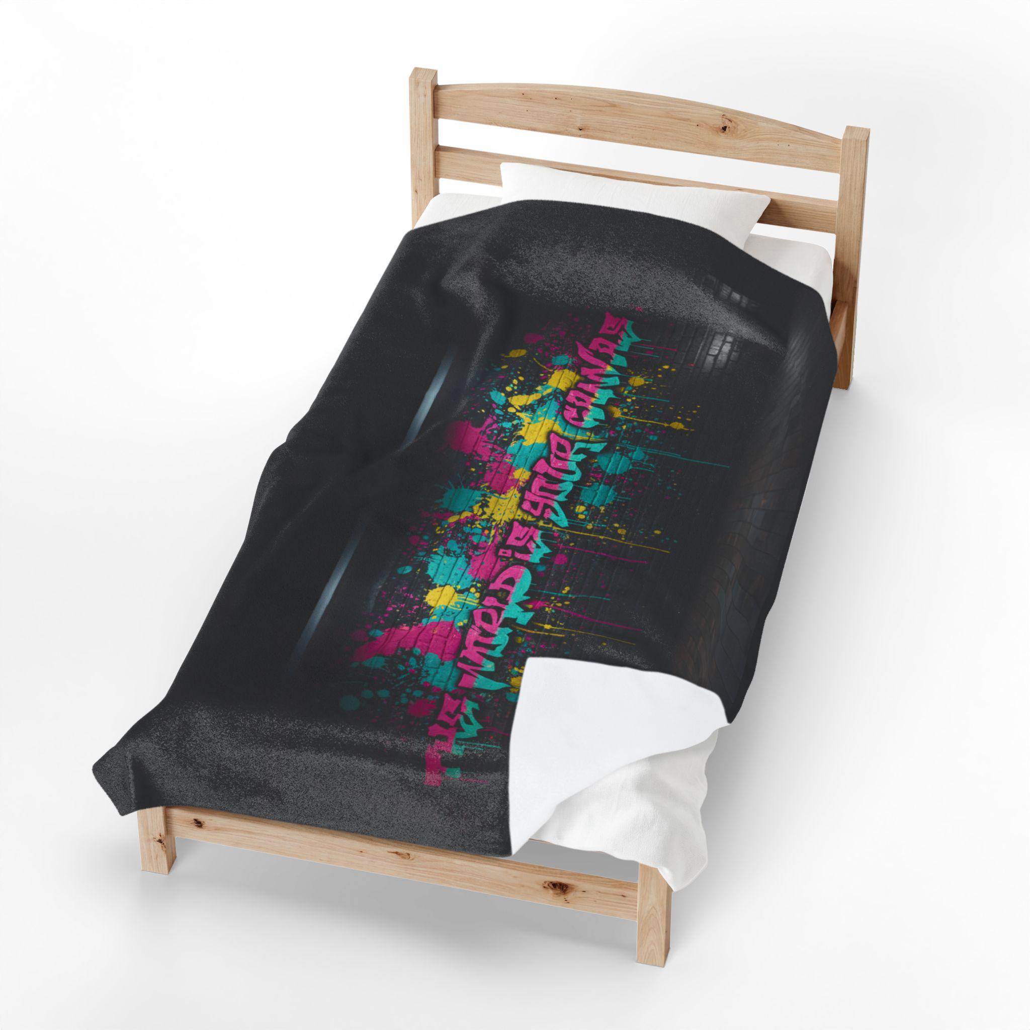 Neon Graffiti The World Is Your Canvas Art Blanket | Urban Spray Paint Alley Mural