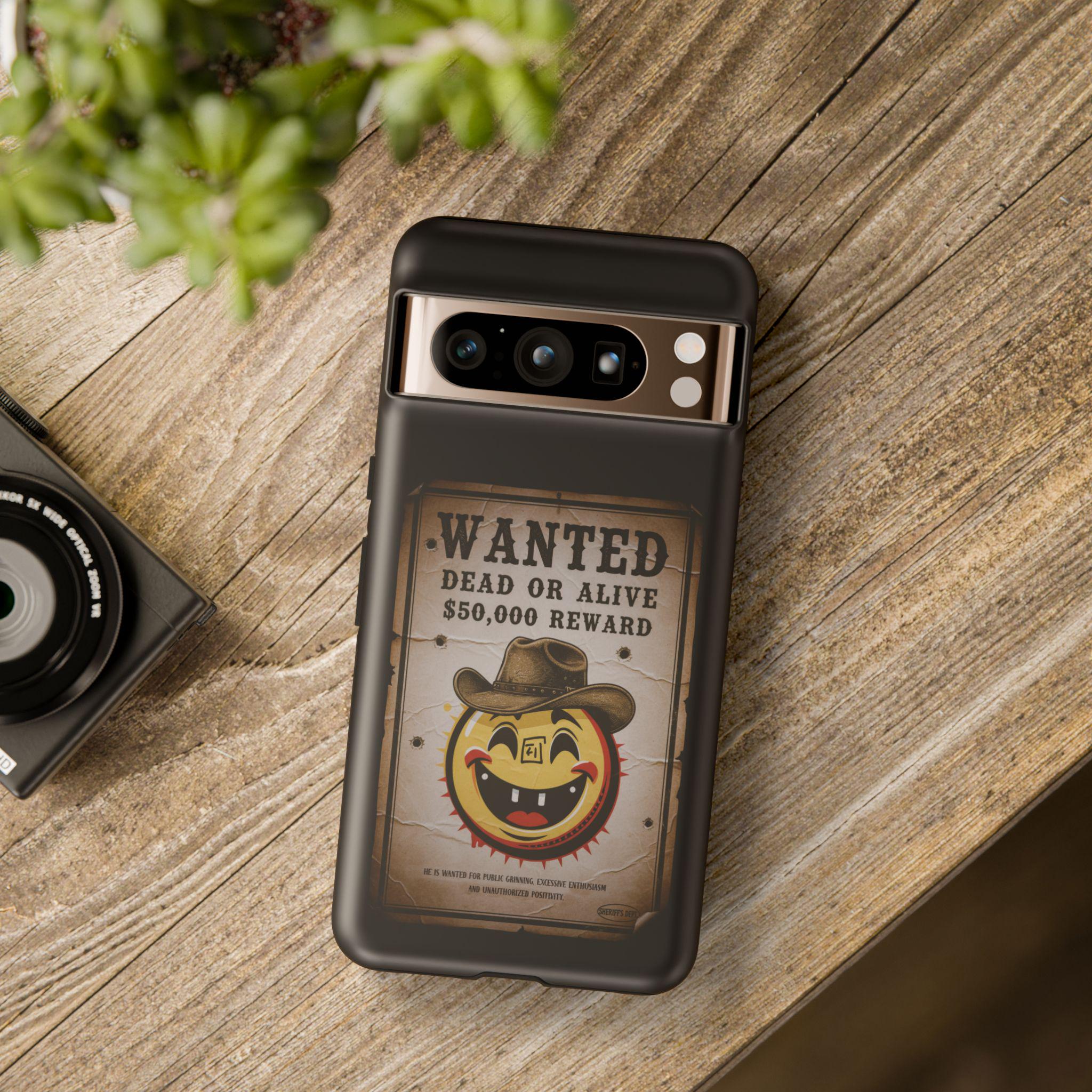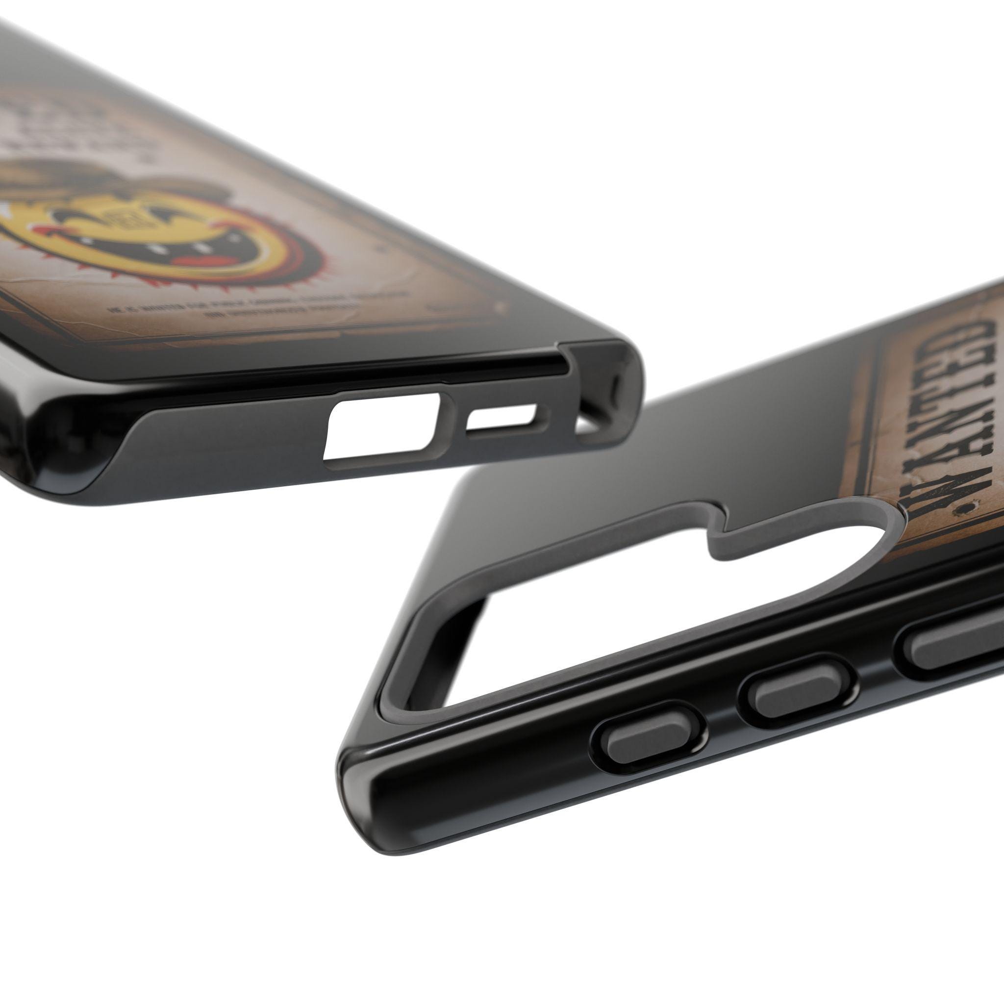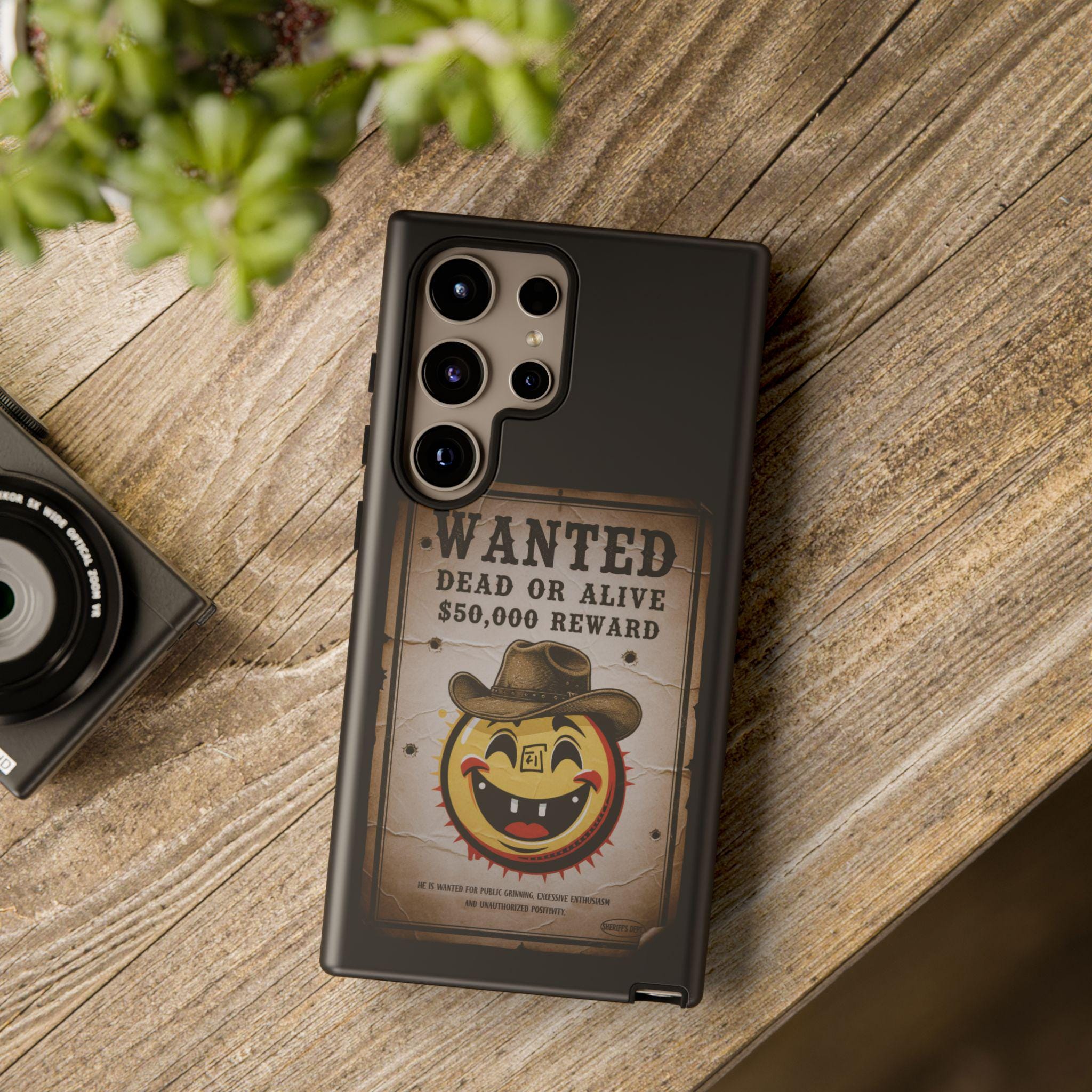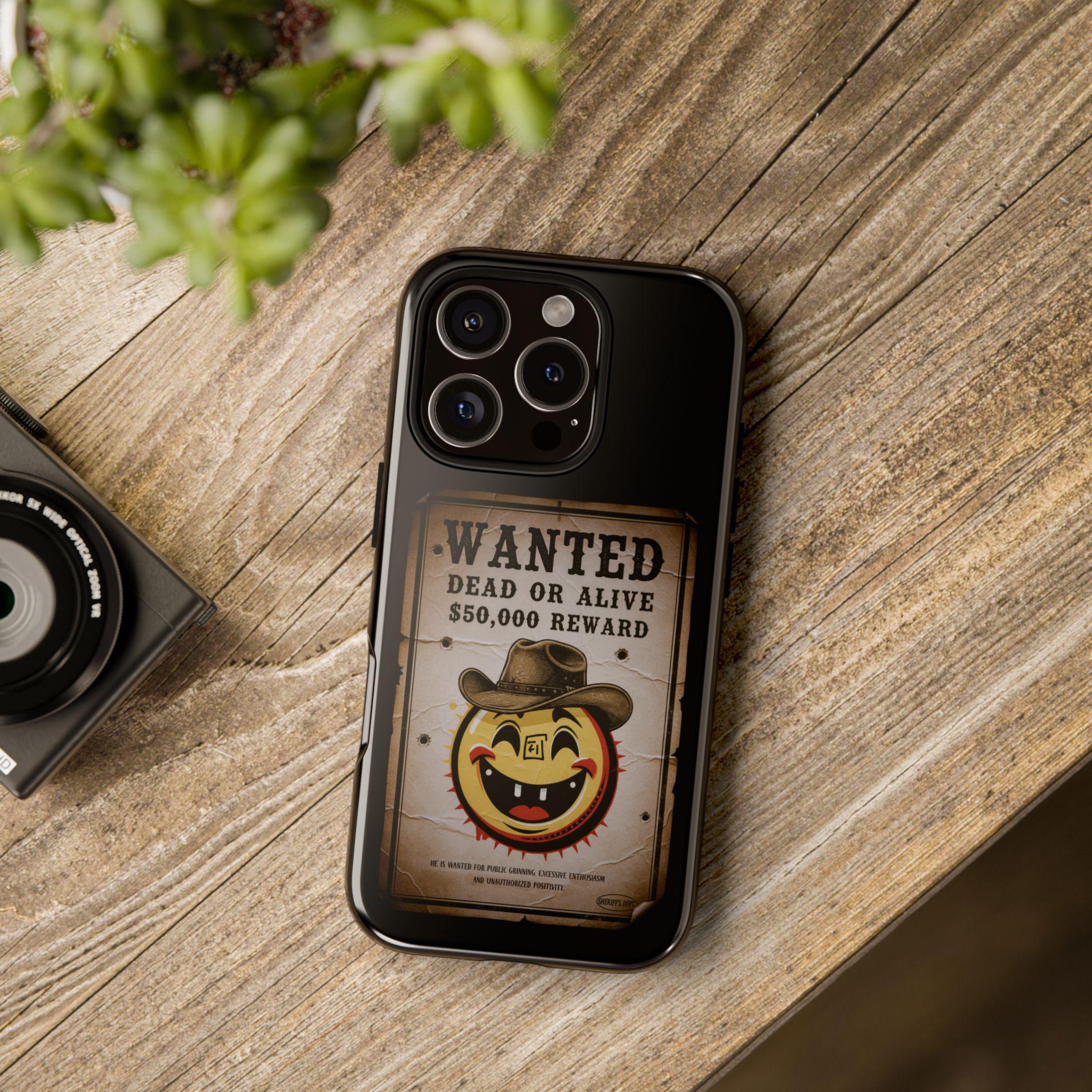 This protective phone case brings a gritty, vintage western vibe to your everyday carry. The design centers on an aged "WANTED" poster with a grinning, toothy emblem wearing a cowboy hat — weathered paper texture, nail holes, and subtle grime give the artwork an authentic outlaw look. Built as a dual-layer shell with a snug TPU silicone liner, the case absorbs shocks while the polycarbonate outer keeps the printed wrap crisp and resistant to wear. It’s lightweight but solid: clear port openings preserve connectivity and the case supports wireless charging. Use it when you want your phone to feel like part of a well-worn story — rough edges, character, and a nod to old saloons and dusty trails.