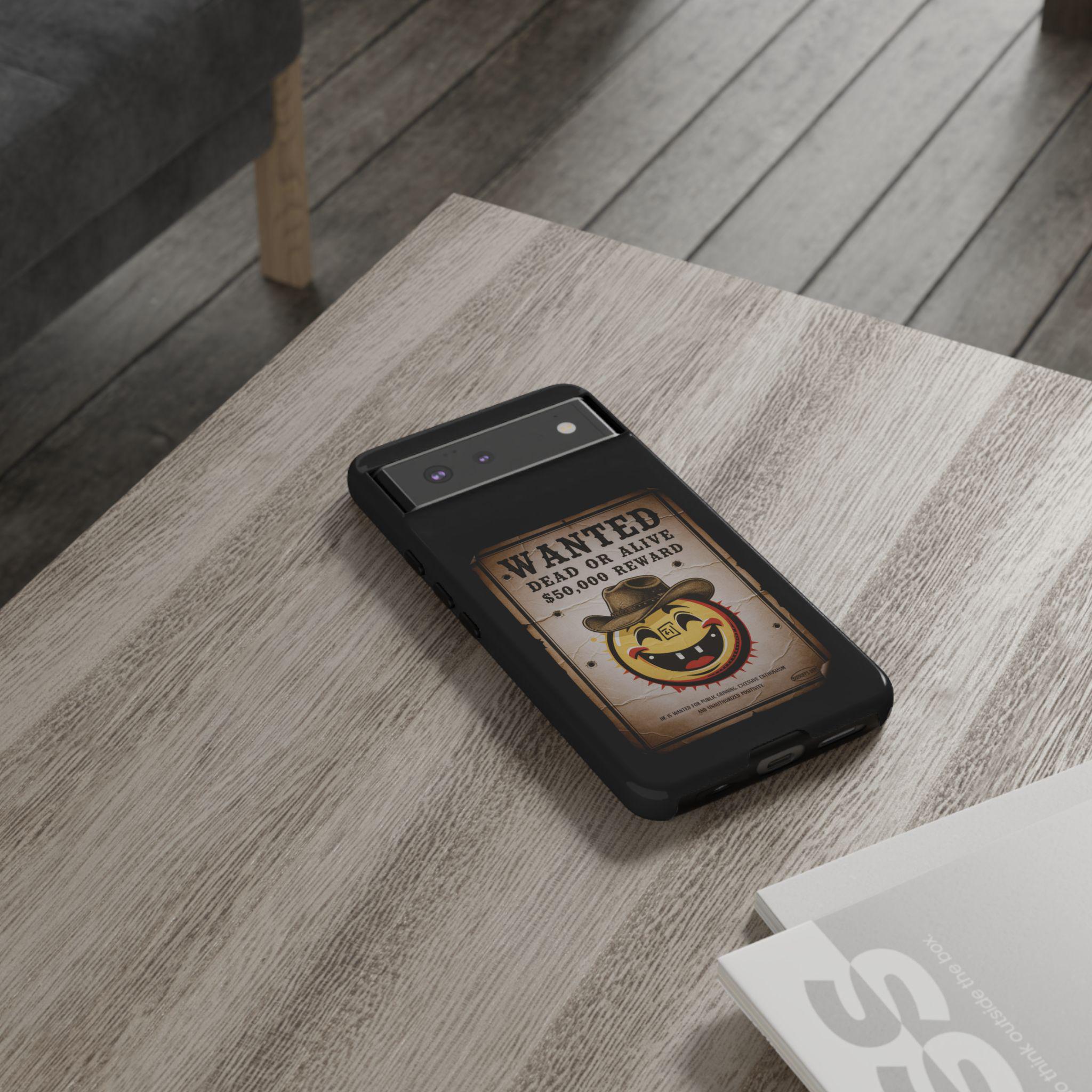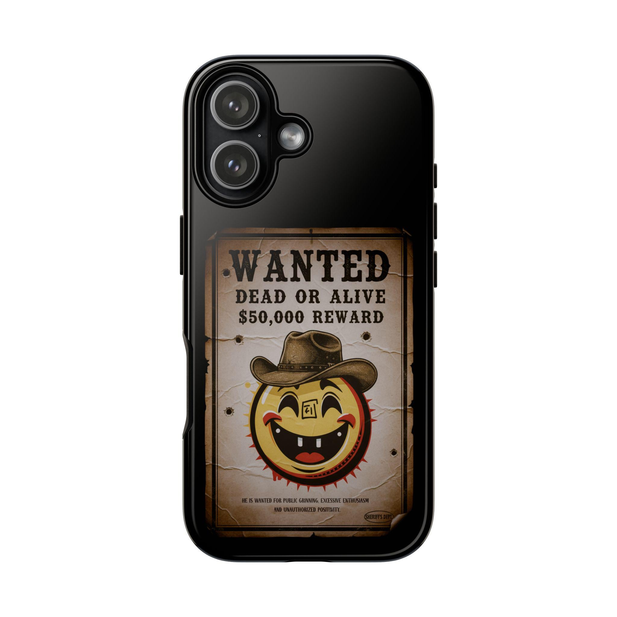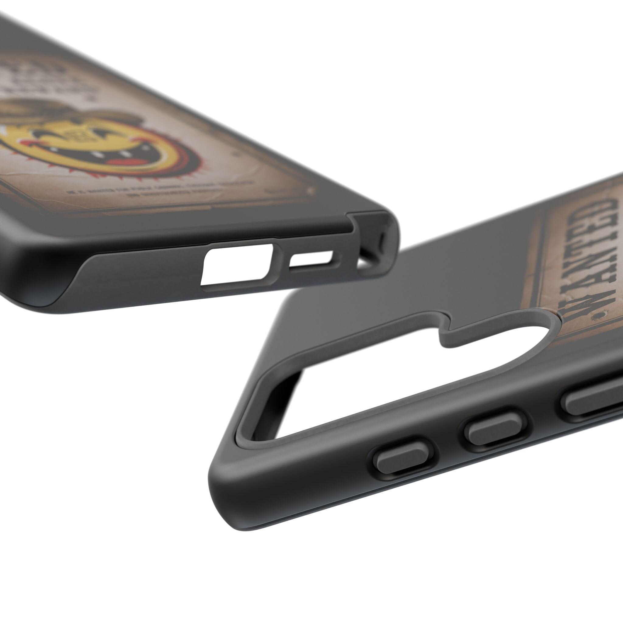 This protective phone case brings a gritty, vintage western vibe to your everyday carry. The design centers on an aged "WANTED" poster with a grinning, toothy emblem wearing a cowboy hat — weathered paper texture, nail holes, and subtle grime give the artwork an authentic outlaw look. Built as a dual-layer shell with a snug TPU silicone liner, the case absorbs shocks while the polycarbonate outer keeps the printed wrap crisp and resistant to wear. It’s lightweight but solid: clear port openings preserve connectivity and the case supports wireless charging. Use it when you want your phone to feel like part of a well-worn story — rough edges, character, and a nod to old saloons and dusty trails.