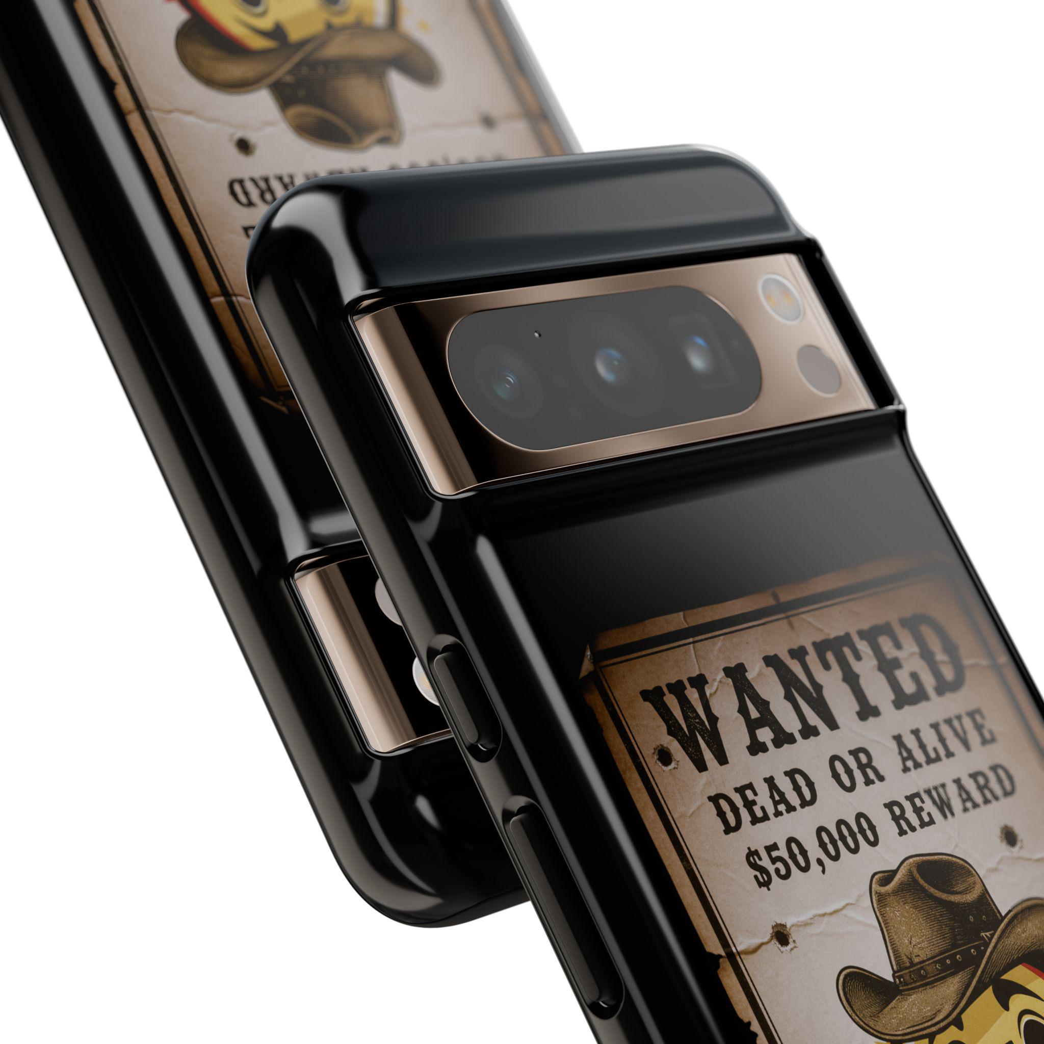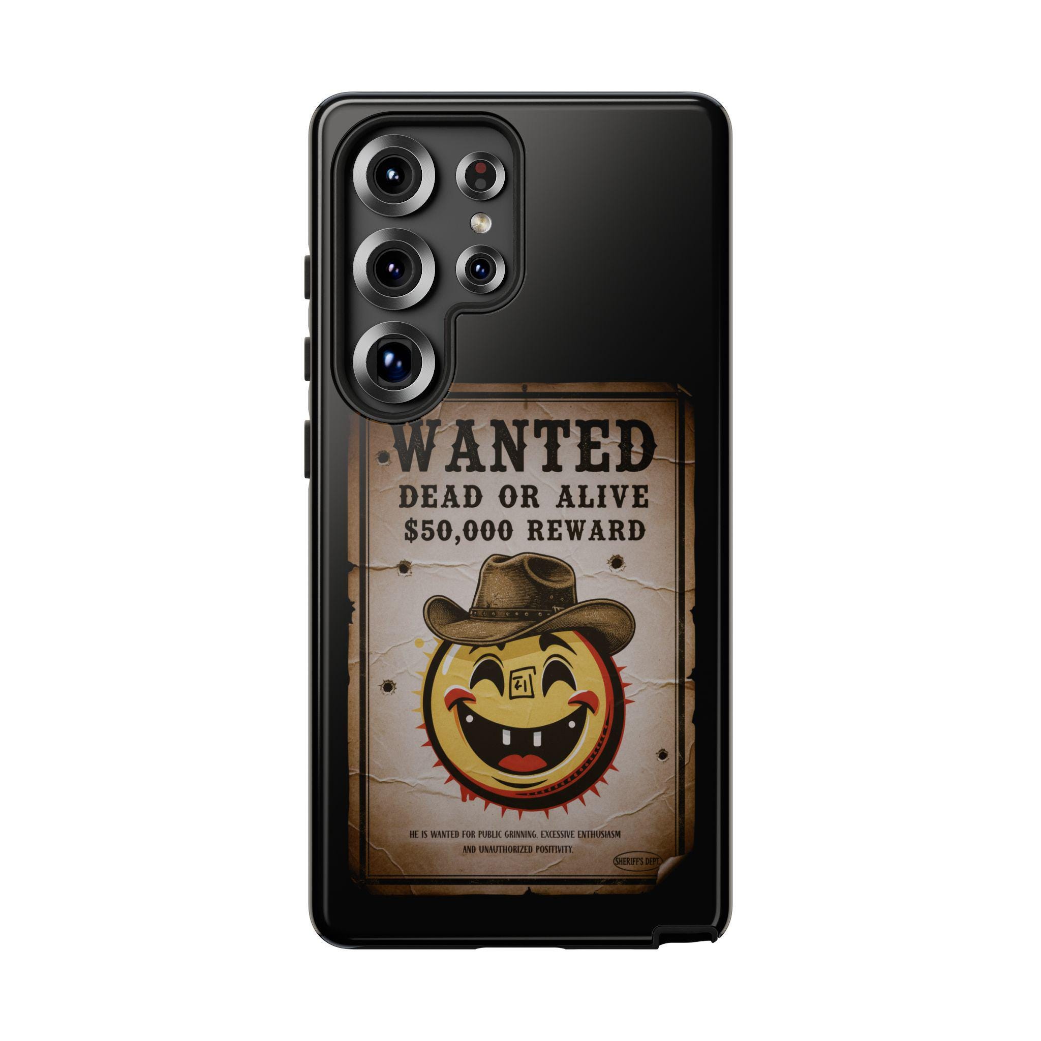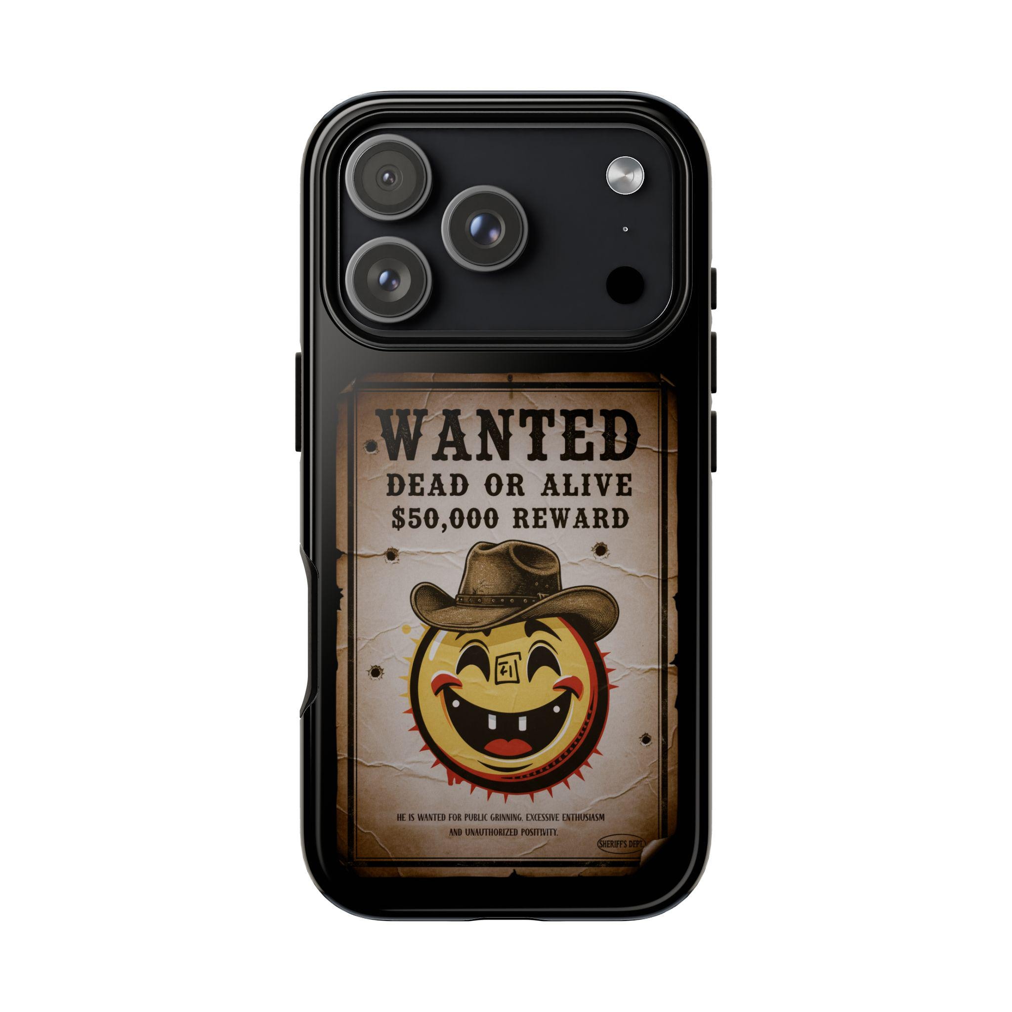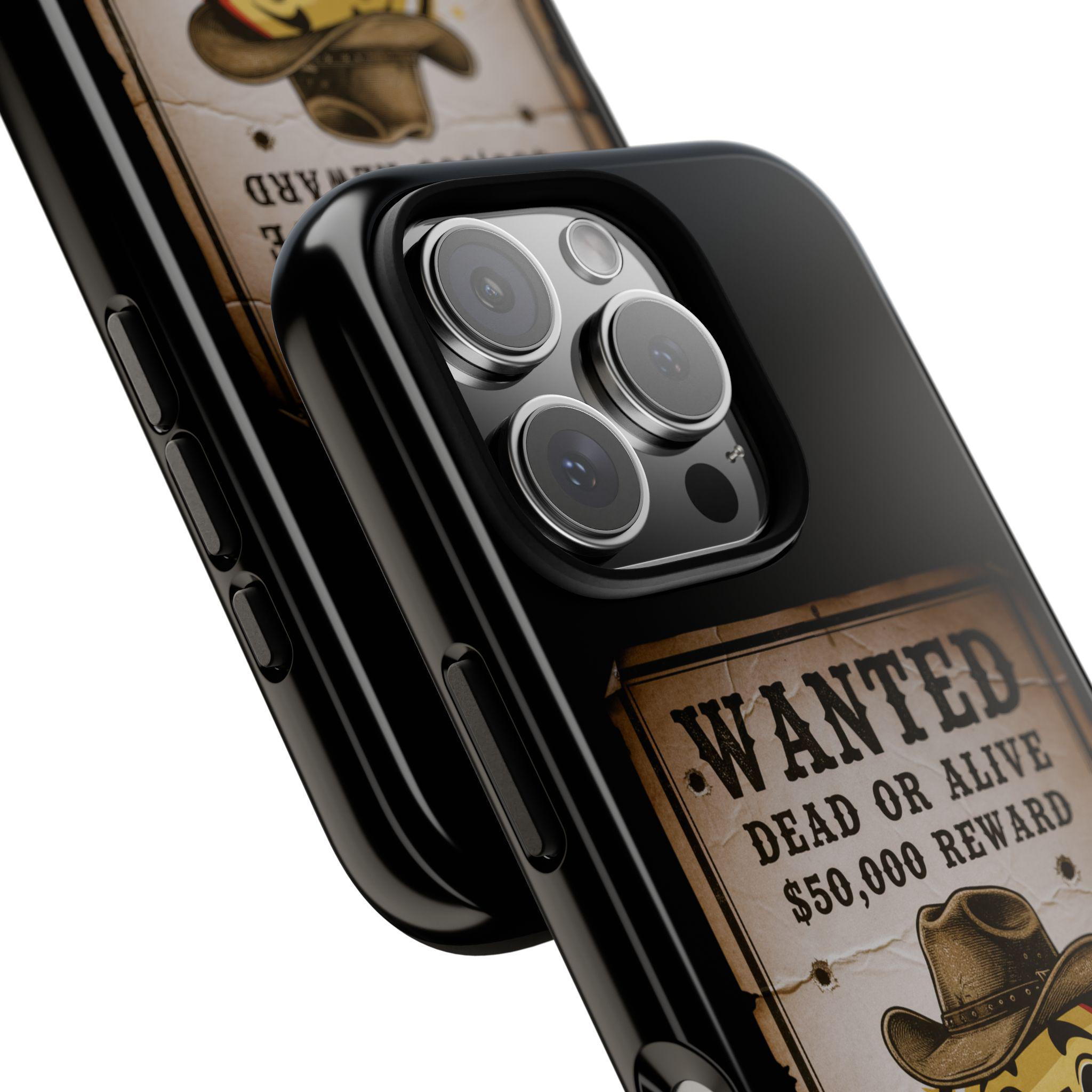 This protective phone case brings a gritty, vintage western vibe to your everyday carry. The design centers on an aged "WANTED" poster with a grinning, toothy emblem wearing a cowboy hat — weathered paper texture, nail holes, and subtle grime give the artwork an authentic outlaw look. Built as a dual-layer shell with a snug TPU silicone liner, the case absorbs shocks while the polycarbonate outer keeps the printed wrap crisp and resistant to wear. It’s lightweight but solid: clear port openings preserve connectivity and the case supports wireless charging. Use it when you want your phone to feel like part of a well-worn story — rough edges, character, and a nod to old saloons and dusty trails.