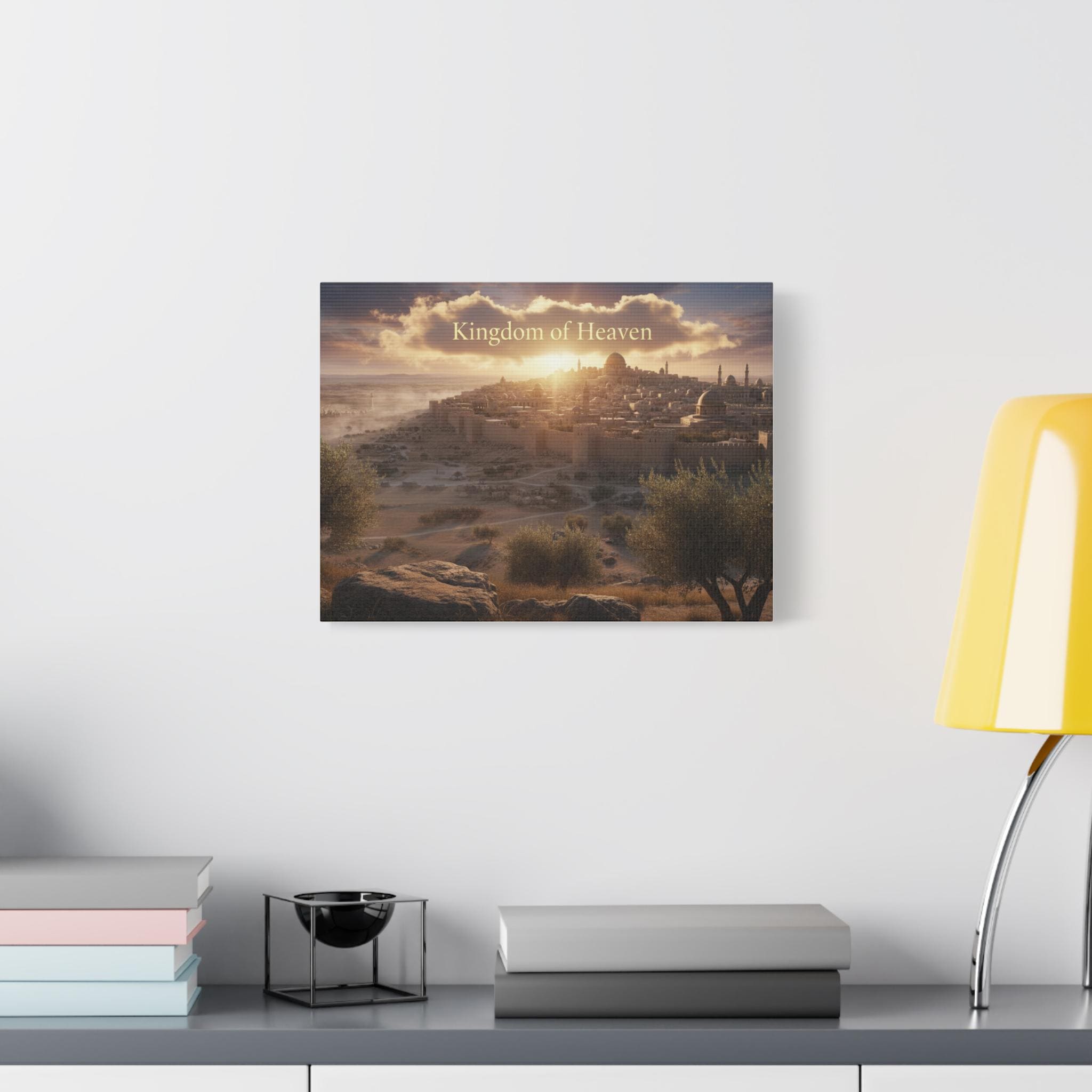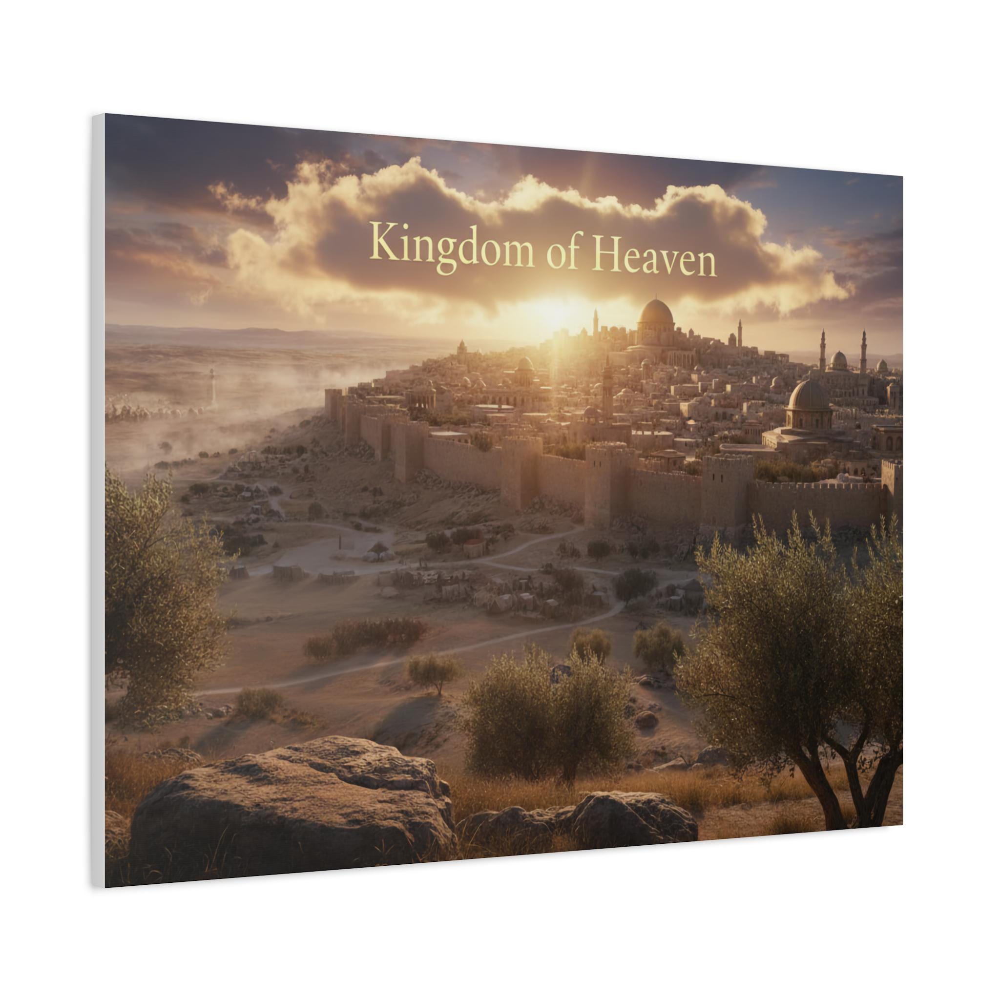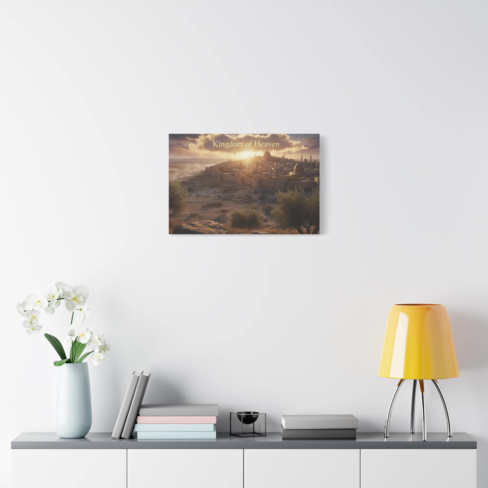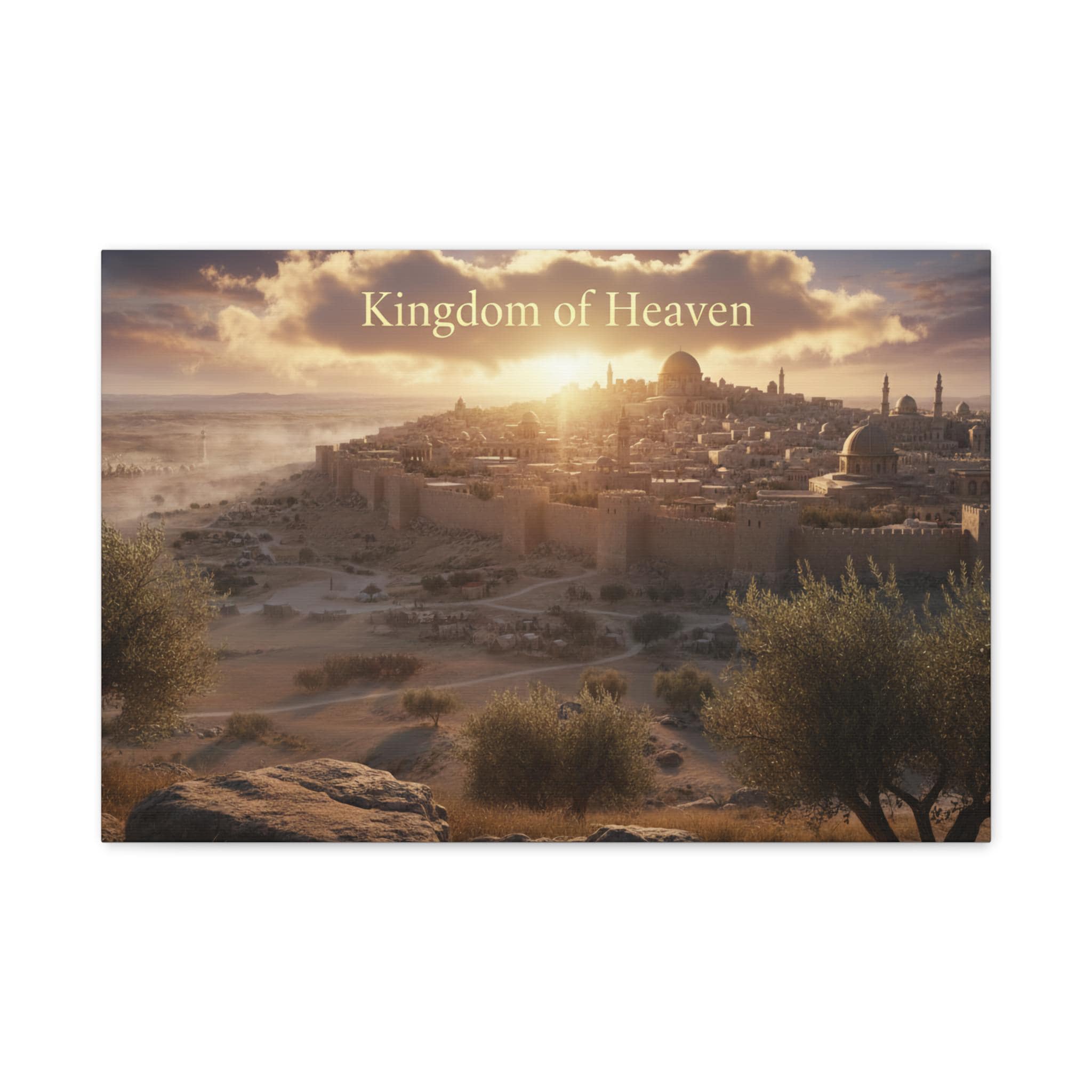 A stretched matte canvas that brings a quiet, golden sunrise over an ancient city into your home. The image breathes warm light across textured canvas, the soft matte finish keeping glare low so the scene feels like a window into another time. Lightweight yet sturdy, the canvas arrives ready to hang with a built-in back hanger and rubber corner supports to keep it steady on the wall. It’s crafted from a cotton/poly canvas stretched over a renewable pine frame, printed with low-odor latex inks and Greenguard Gold–certified coating for rich, lasting color. Let this piece sit above a mantel, in a study, or beside an entryway — it invites slow moments and gentle reflection each time you pass by.
