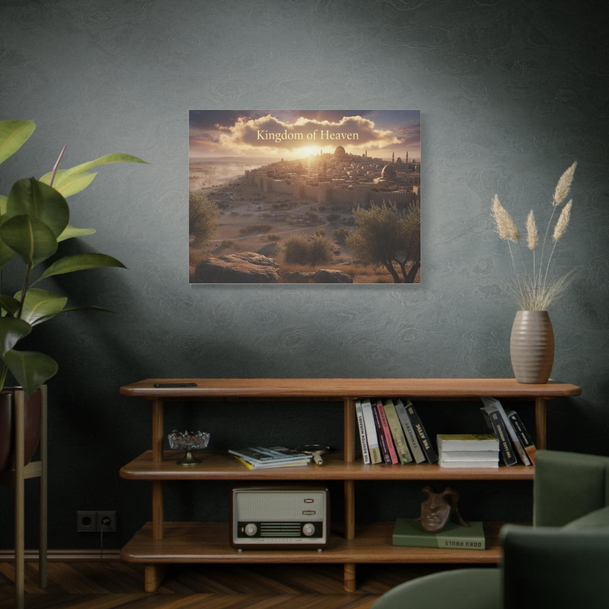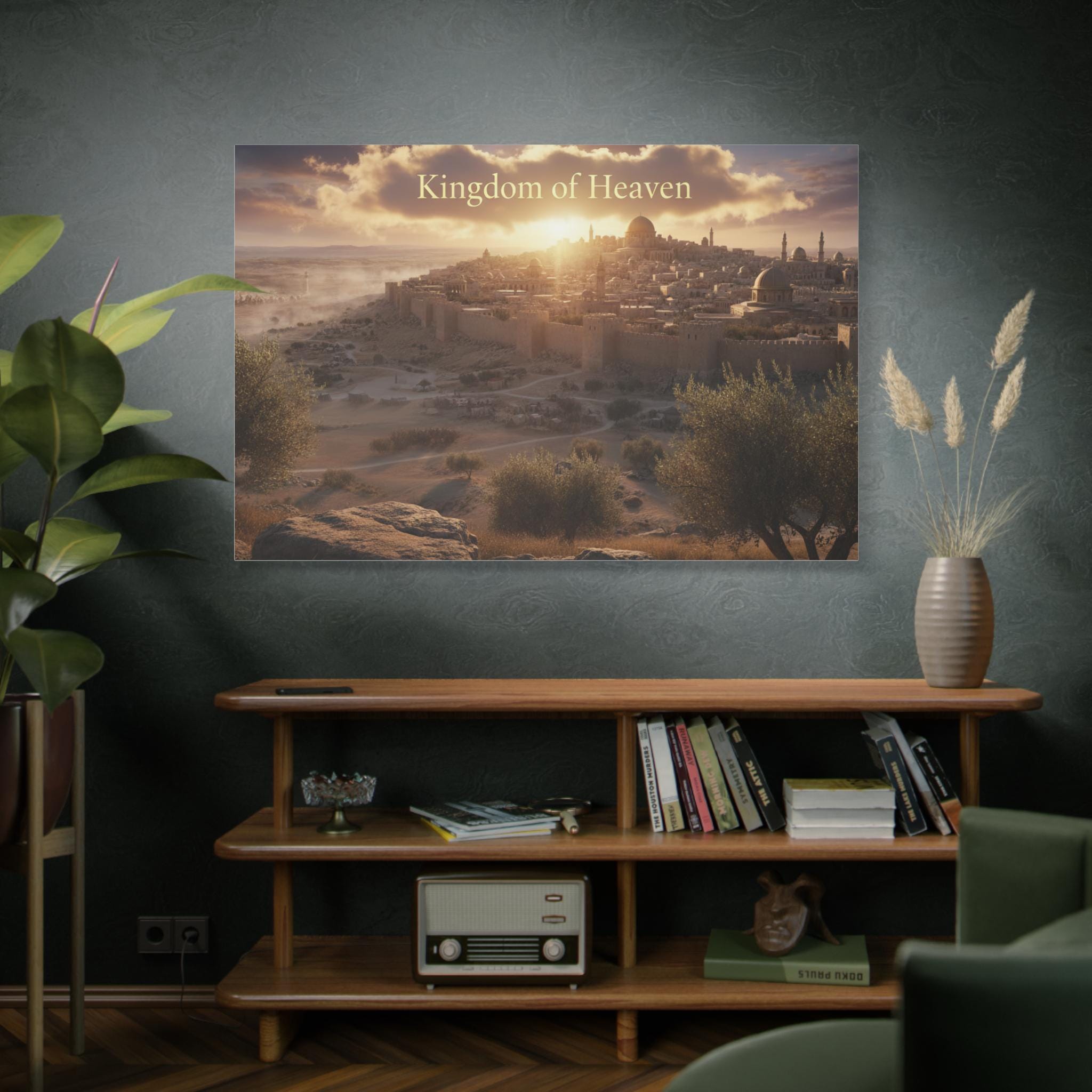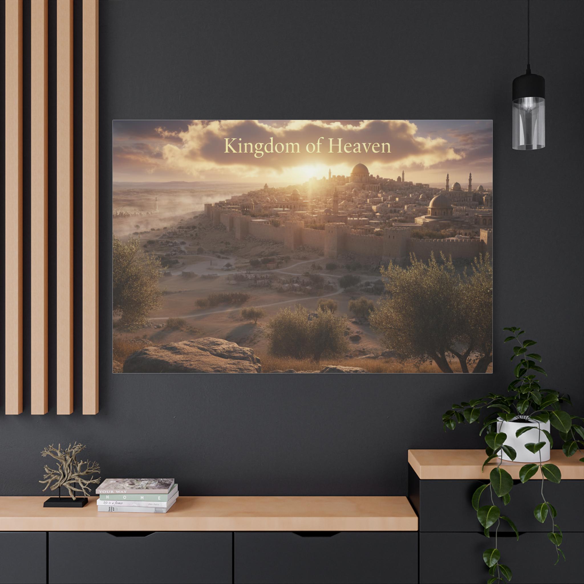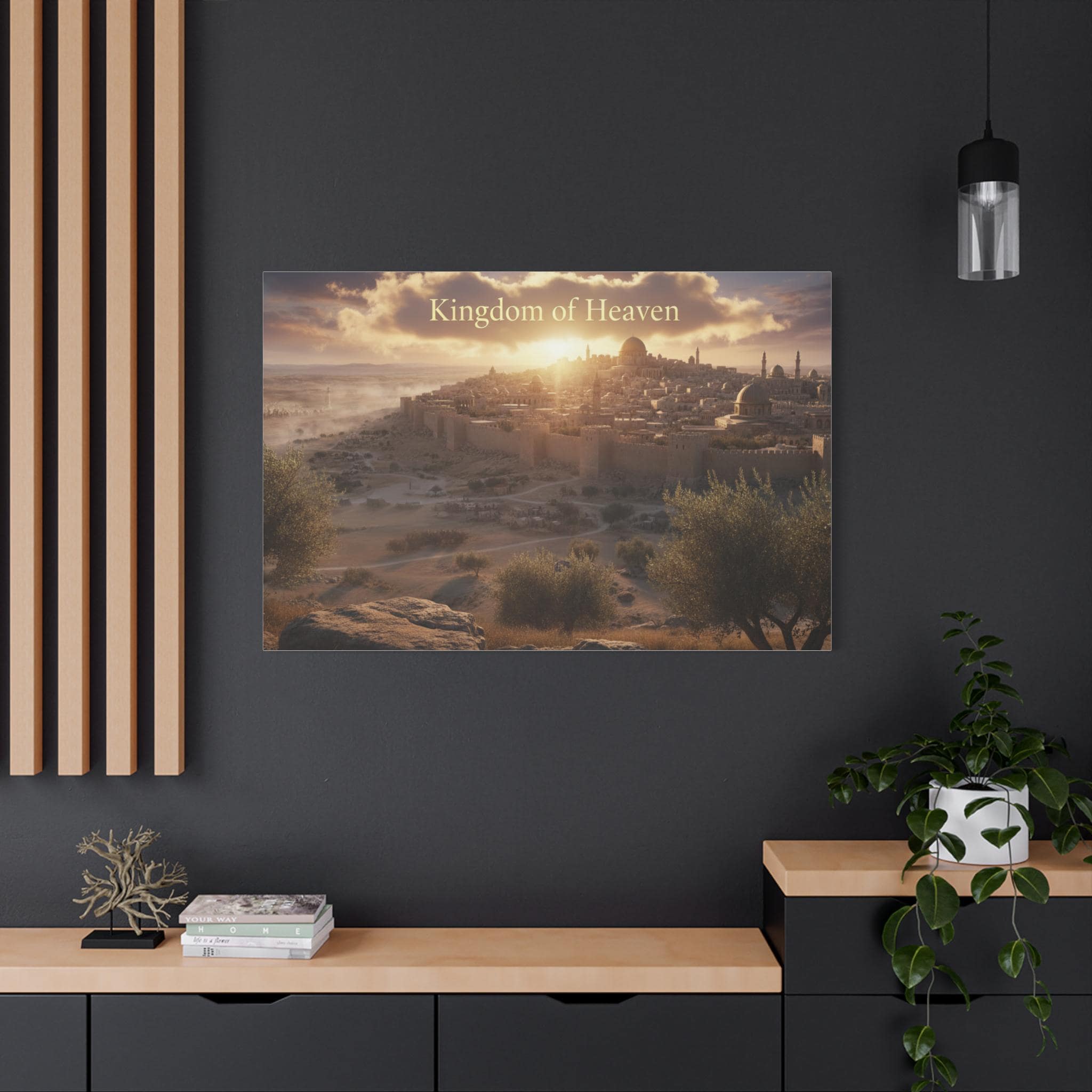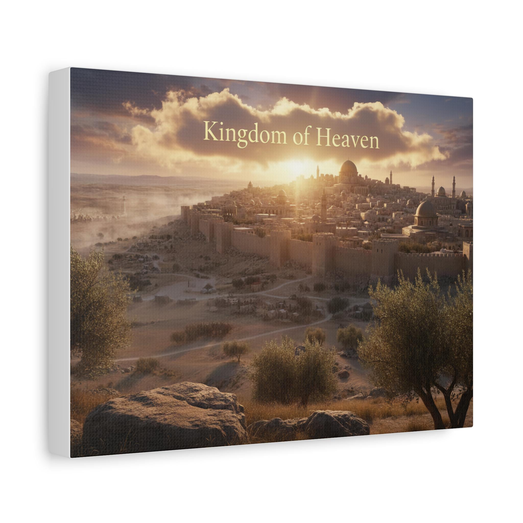 A stretched matte canvas that brings a quiet, golden sunrise over an ancient city into your home. The image breathes warm light across textured canvas, the soft matte finish keeping glare low so the scene feels like a window into another time. Lightweight yet sturdy, the canvas arrives ready to hang with a built-in back hanger and rubber corner supports to keep it steady on the wall. It’s crafted from a cotton/poly canvas stretched over a renewable pine frame, printed with low-odor latex inks and Greenguard Gold–certified coating for rich, lasting color. Let this piece sit above a mantel, in a study, or beside an entryway — it invites slow moments and gentle reflection each time you pass by.