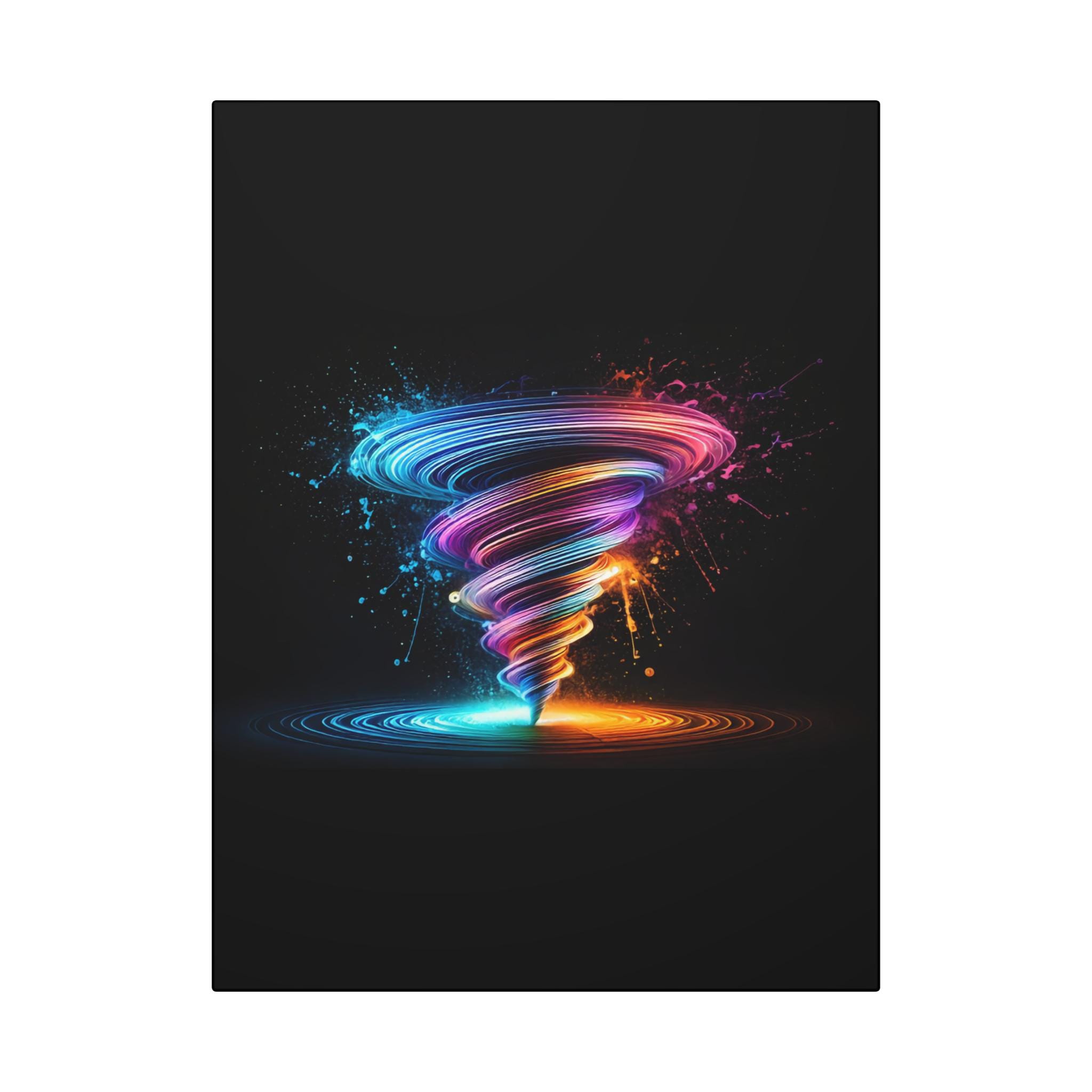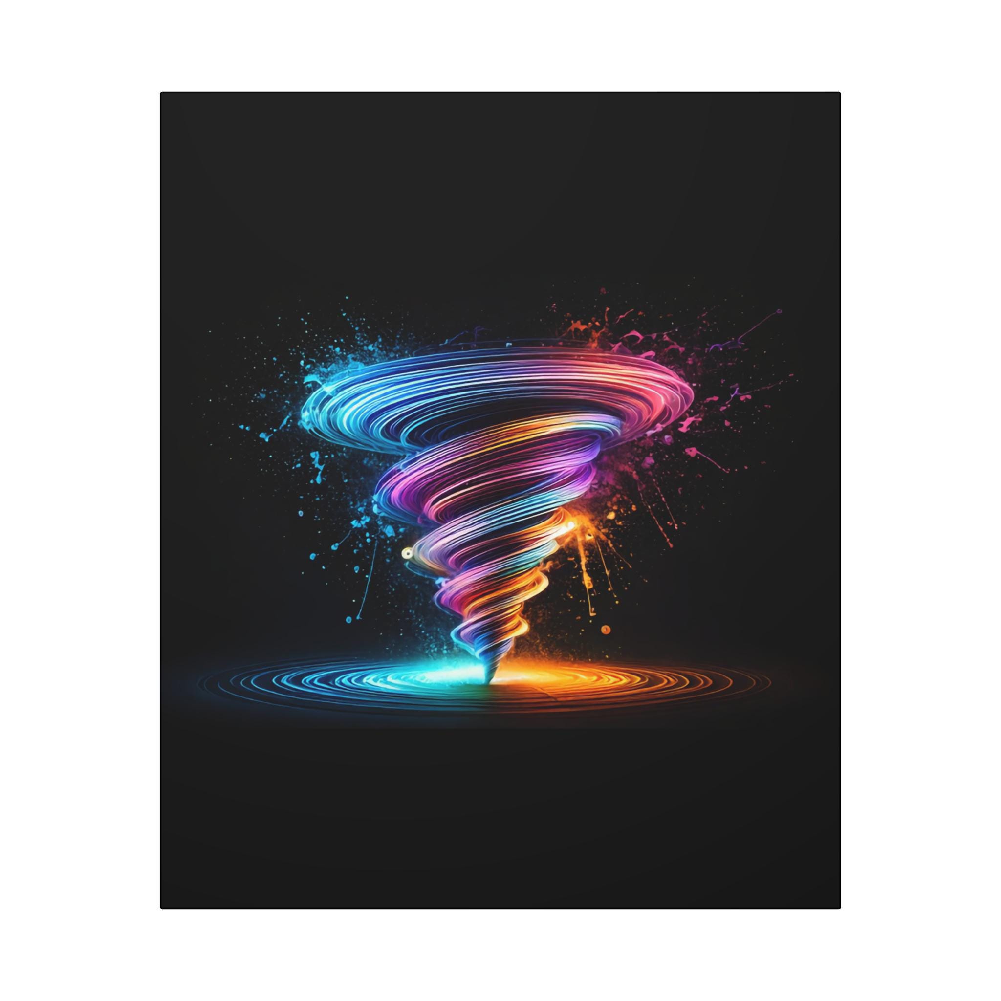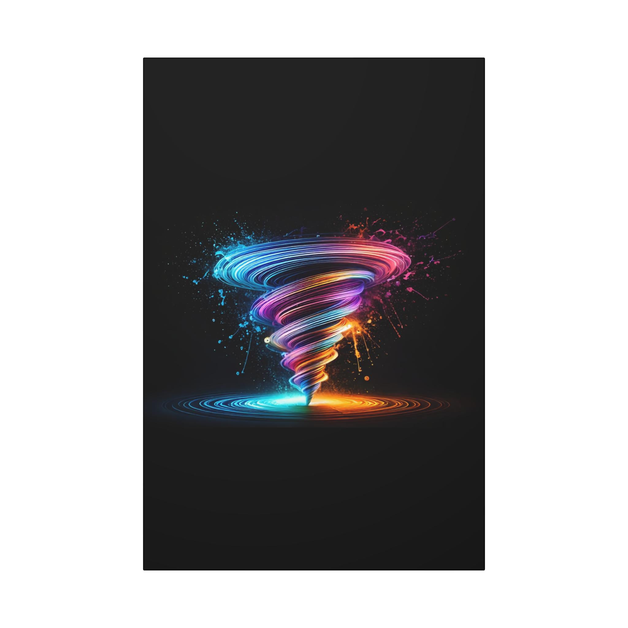 This canvas art wrap captures a swirling burst of color — electric blues, magentas, and molten oranges twisting into a luminous vortex against deep charcoal. It brings movement and modern energy to a room, turning a blank wall into a focal point that feels alive. Lightweight and designed for indoor display, the textured polyester surface holds crisp, saturated inks so the neon-like gradients and paint-splash details stay vivid. The canvas arrives ready to hang with a discreet black backing and built-in hanger, available in multiple sizes and orientations so you can find the right scale for a living room, studio, or office. It’s for anyone who wants dynamic visual impact without fuss: hang it solo above a sofa, group several sizes for a gallery wall, or place it where light can catch the glossy swirls and deepen the drama.