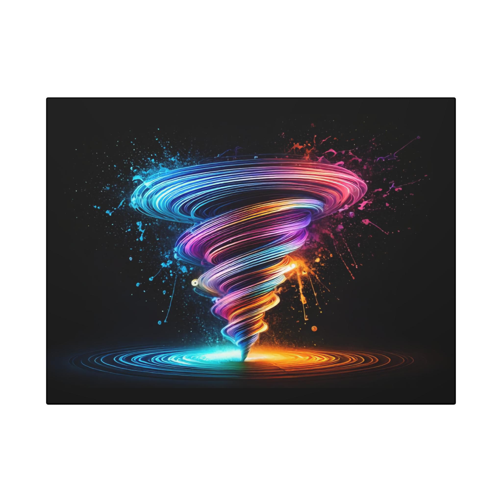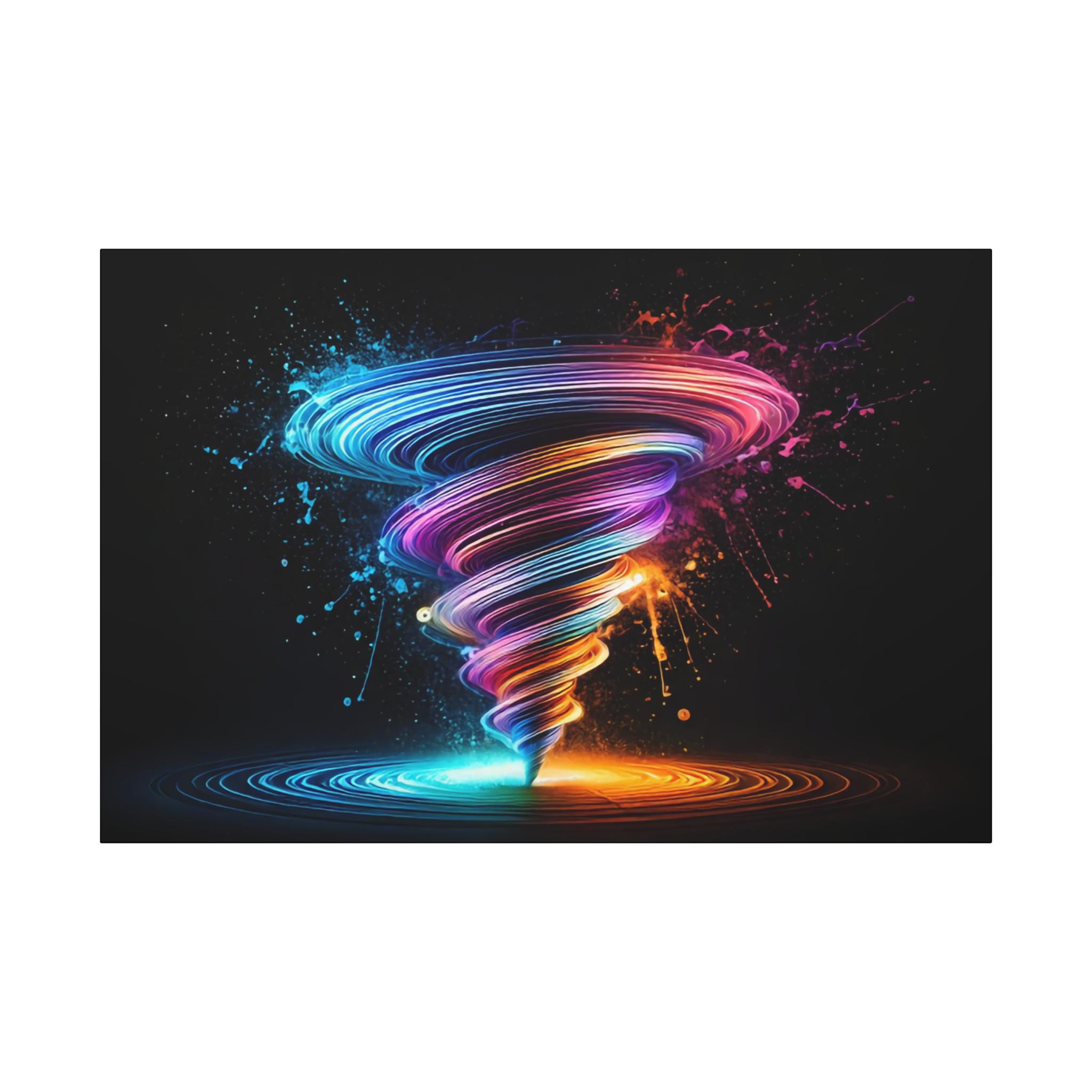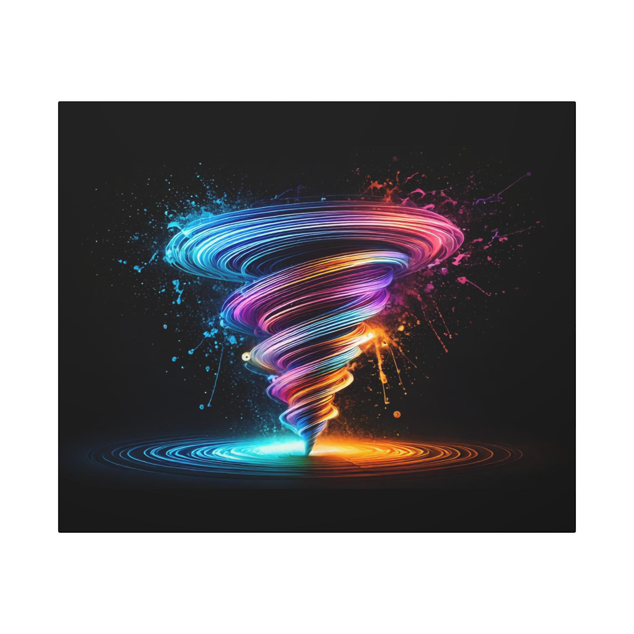 This canvas art wrap captures a swirling burst of color — electric blues, magentas, and molten oranges twisting into a luminous vortex against deep charcoal. It brings movement and modern energy to a room, turning a blank wall into a focal point that feels alive. Lightweight and designed for indoor display, the textured polyester surface holds crisp, saturated inks so the neon-like gradients and paint-splash details stay vivid. The canvas arrives ready to hang with a discreet black backing and built-in hanger, available in multiple sizes and orientations so you can find the right scale for a living room, studio, or office. It’s for anyone who wants dynamic visual impact without fuss: hang it solo above a sofa, group several sizes for a gallery wall, or place it where light can catch the glossy swirls and deepen the drama.