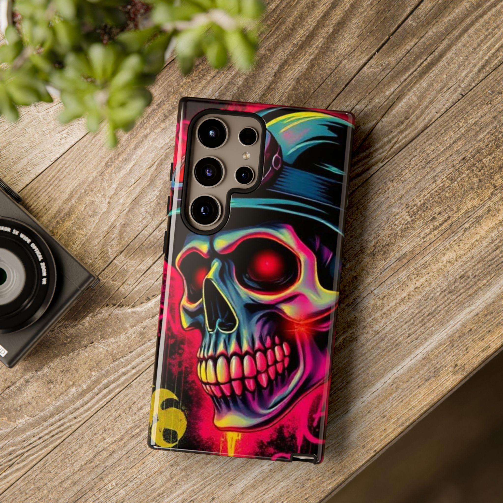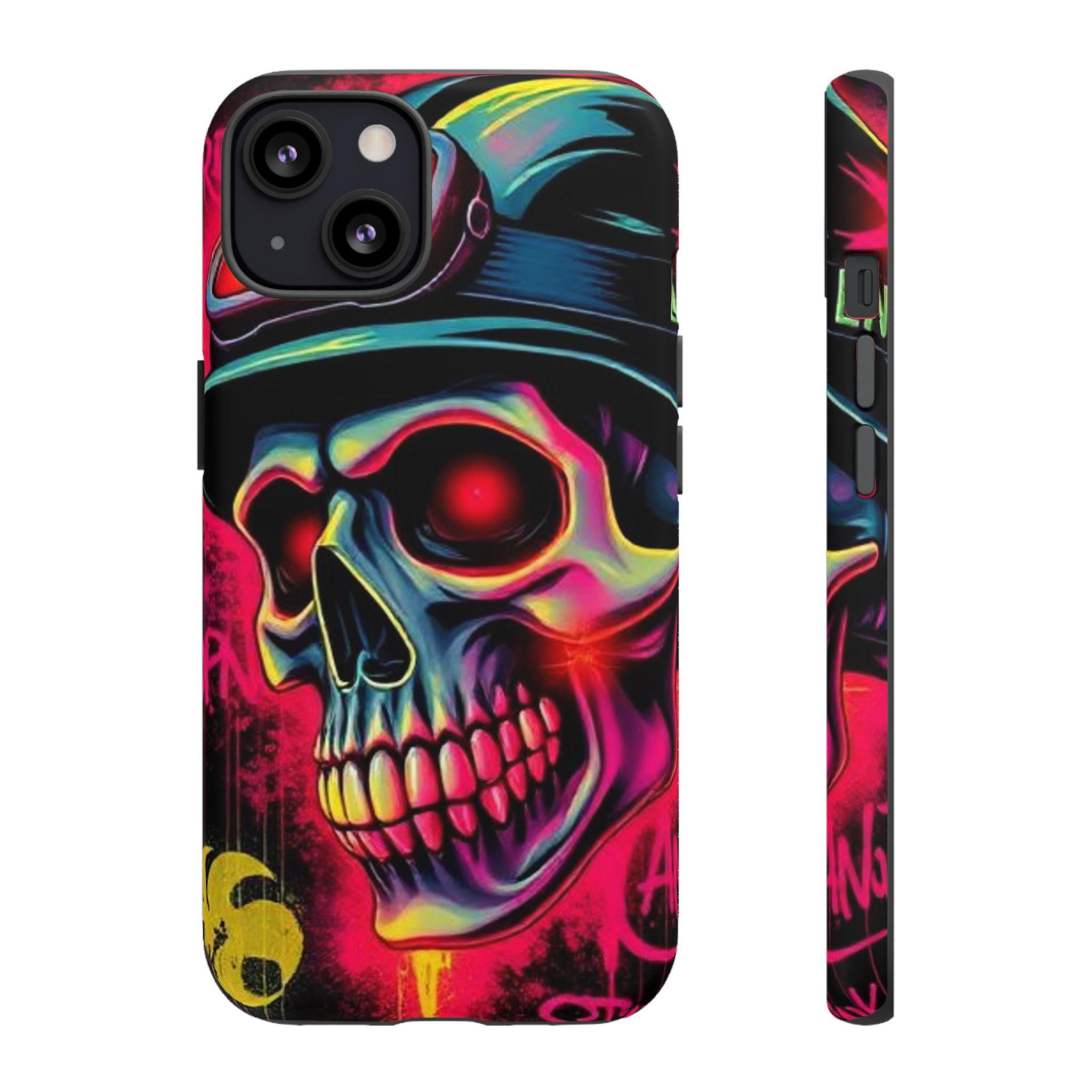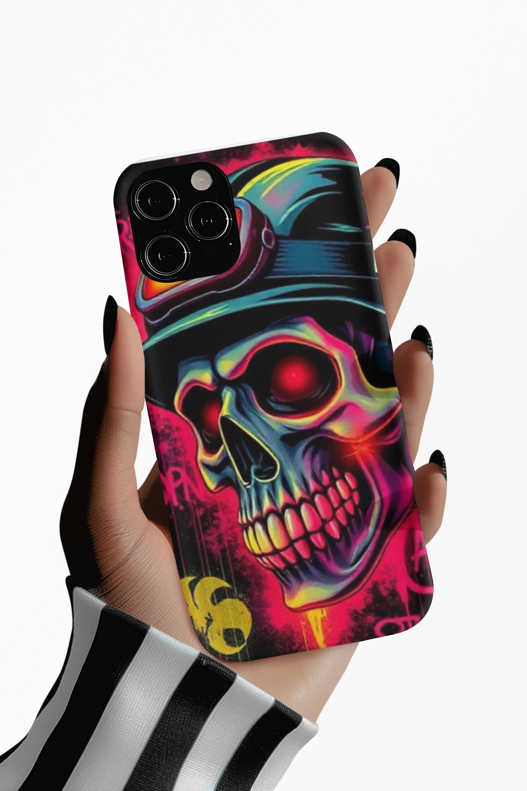 This tough phone case brings bold street-art energy to your daily carry. A neon skull in a fedora wraps around the shell in high-density 3D print, giving the design vivid color and depth that resists outdoor fading. The dual-layer construction—rigid polycarbonate outer shell with a TPU silicone liner—absorbs shocks and guards your phone against drops and scratches while keeping ports clear and wireless charging available. The glossy or matte finish options let you choose a sharp reflective look or a subtler satin feel. Built to meet RoHS and REACH standards and finished with UV protection, this case is made for people who want protection without sacrificing daring style.