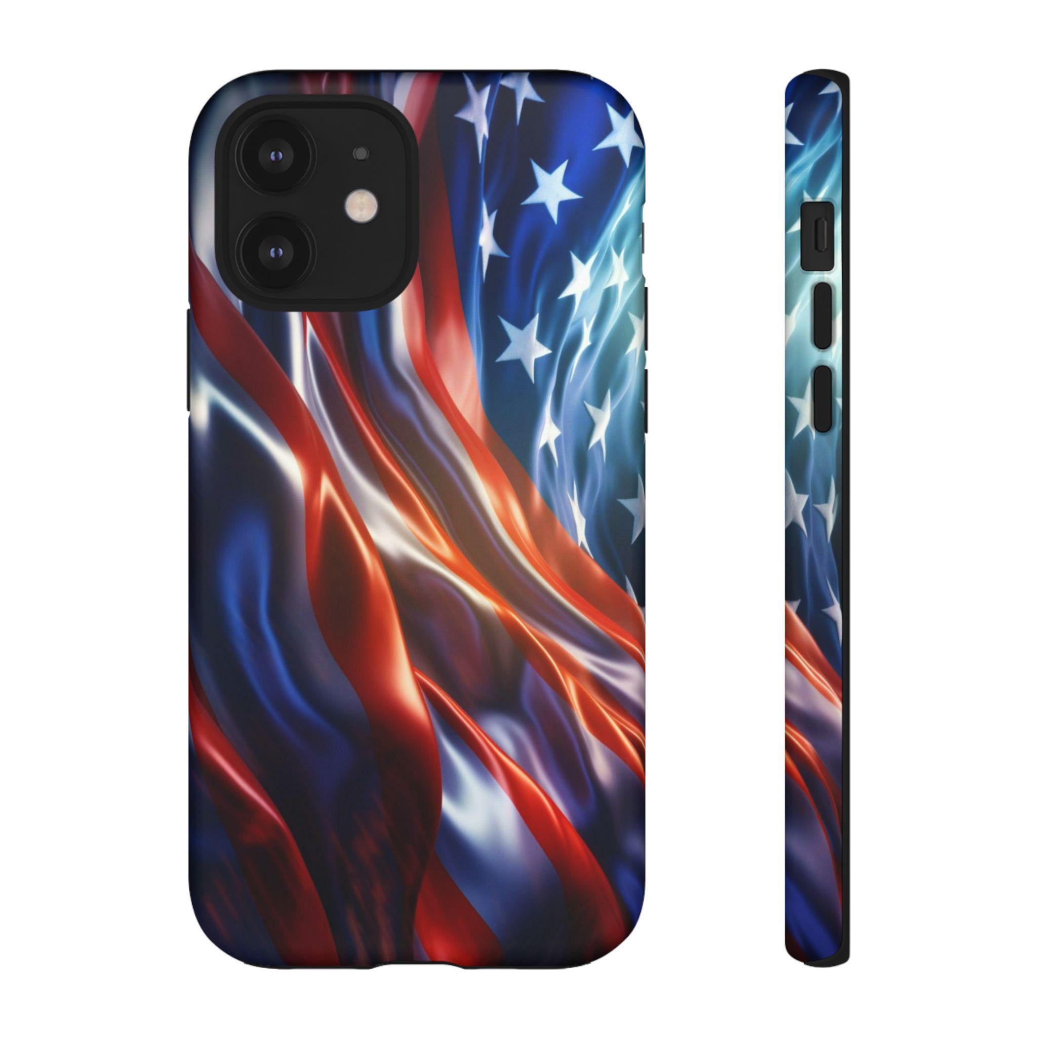 A durable, dual-layer phone case that wraps your device in a vivid, waving flag design. The glossy transfer print delivers deep color and high contrast while a soft TPU silicone liner cushions against drops. Lightweight and slim, it keeps ports accessible and supports wireless charging, all while resisting outdoor fading thanks to UV protection. This case blends bold patriotic style with real everyday protection — a tactile shield that slips comfortably into pockets and keeps your phone looking sharp through daily use and holiday crowds.