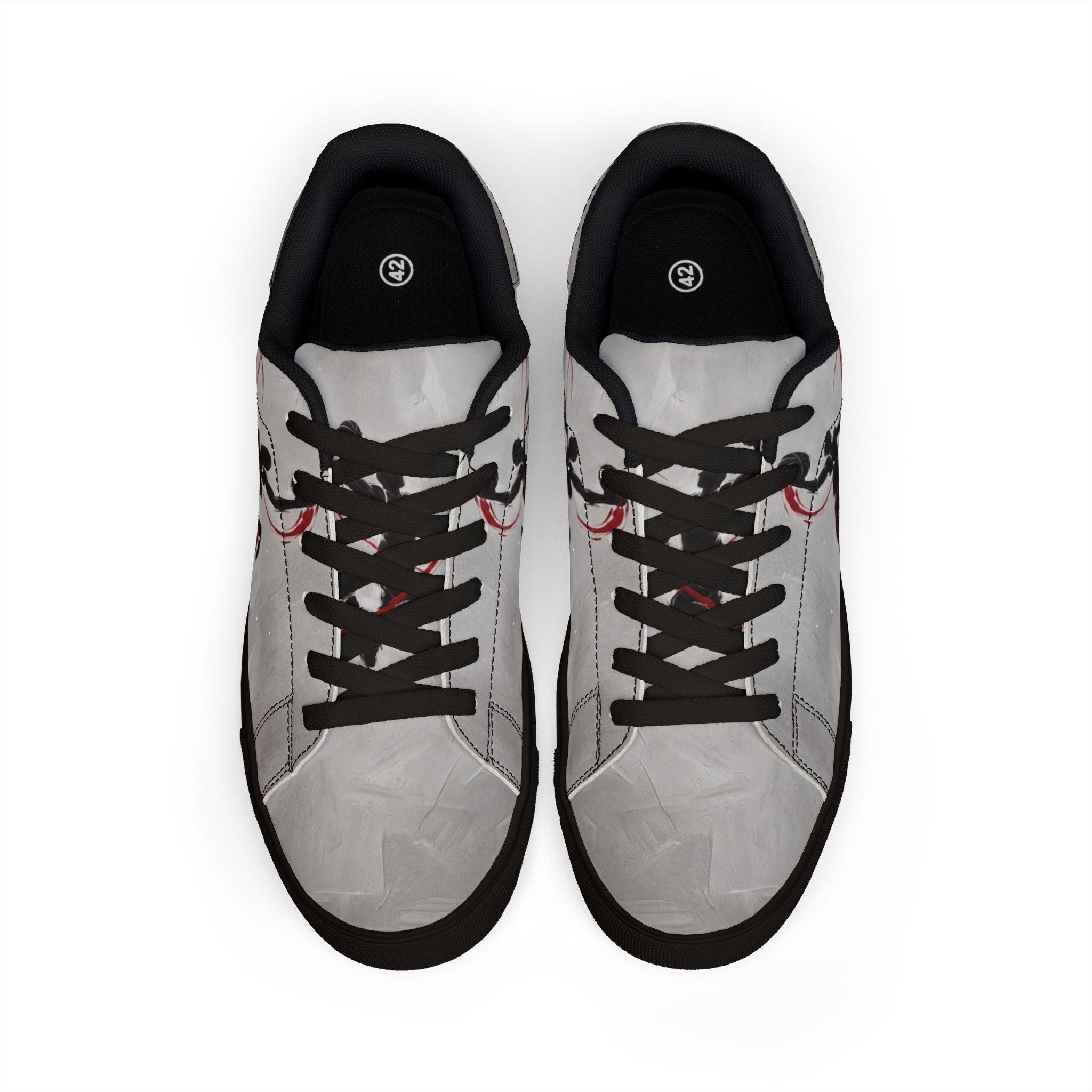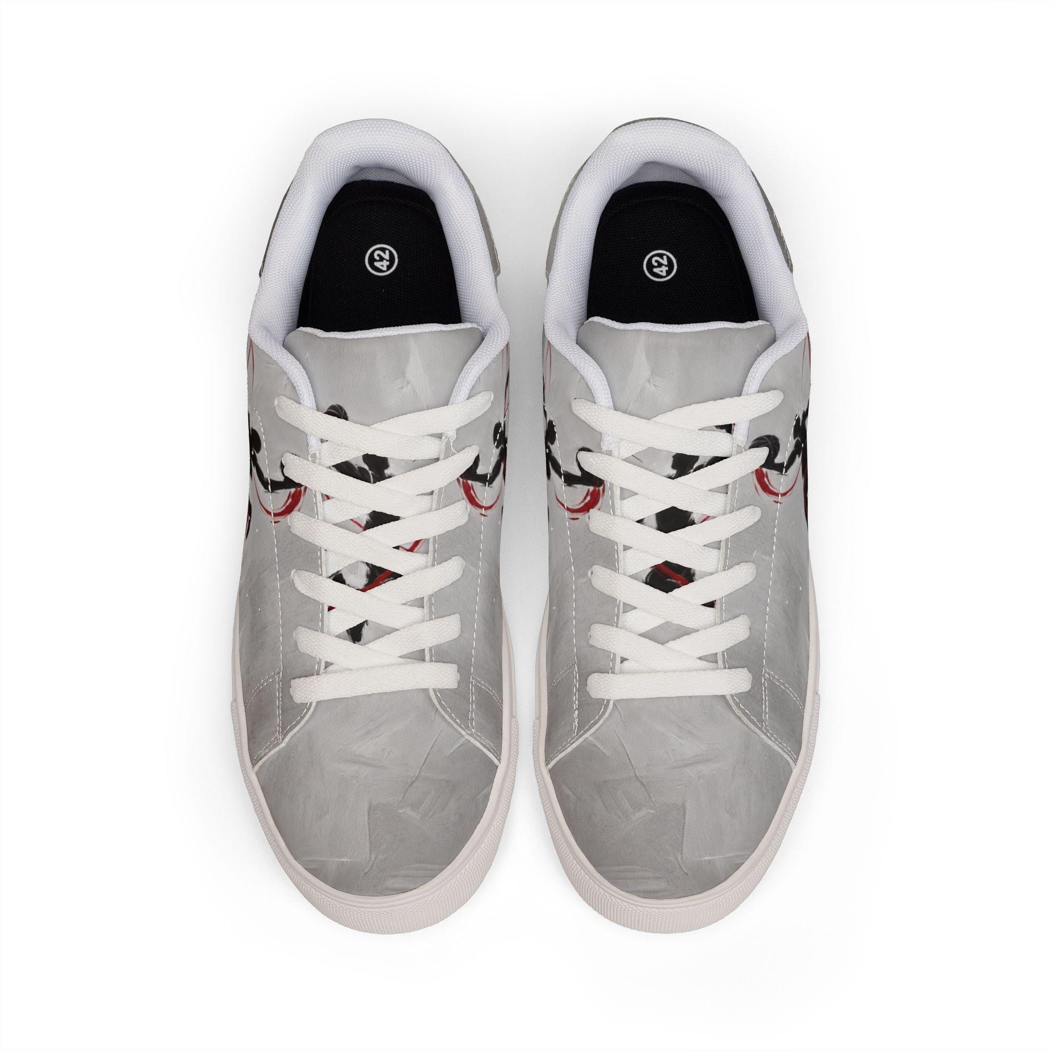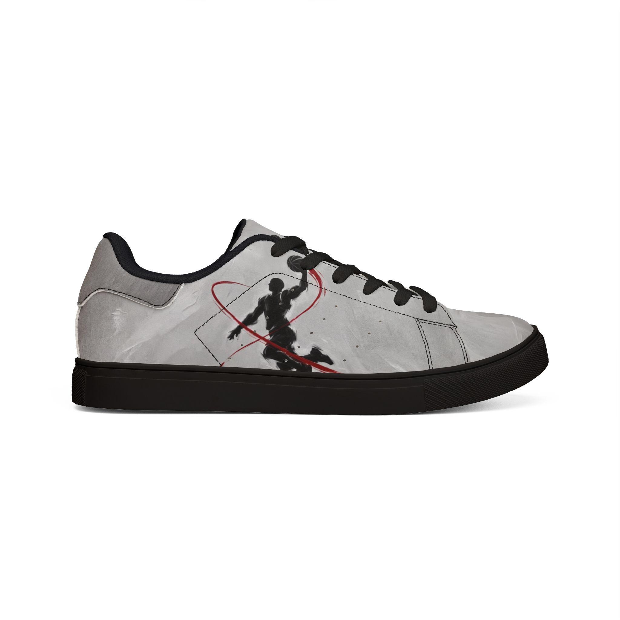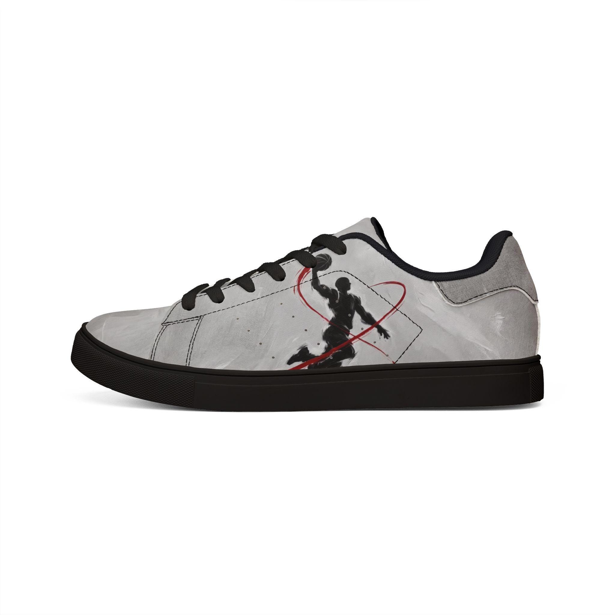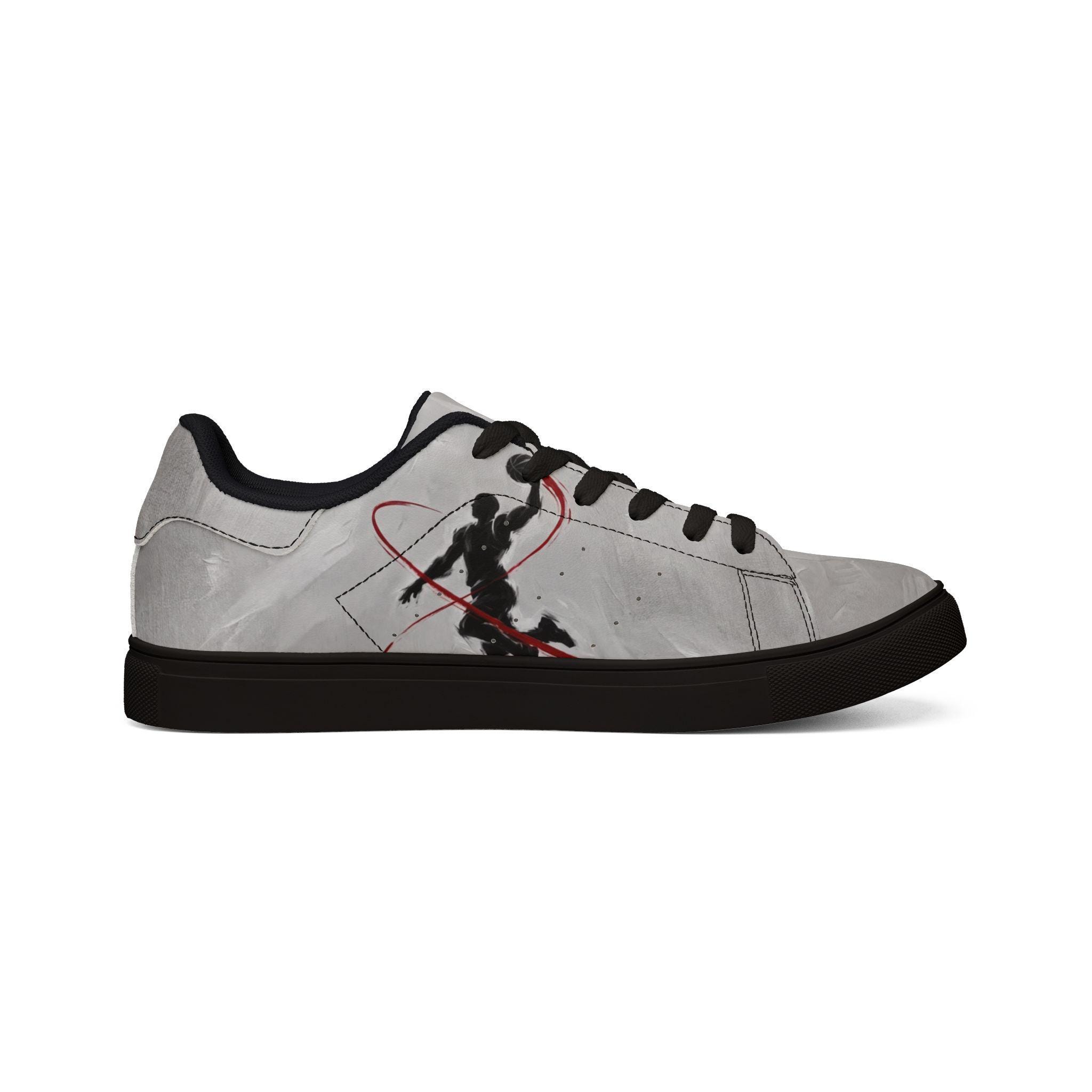 These low-top leather sneakers blend street-ready attitude with everyday comfort. The smooth microfiber PU upper gives the look of genuine leather while staying easy to maintain. A lace-up closure locks your foot in place for confident steps, and the rubber outsole with an EVA cushioning layer softens impacts whether you’re walking city blocks or hanging out with friends. A subtle, energetic silhouette graphic and tonal stitching options (black or white sole variants) add quiet style without shouting. Available in a wide size range to fit adult feet comfortably.