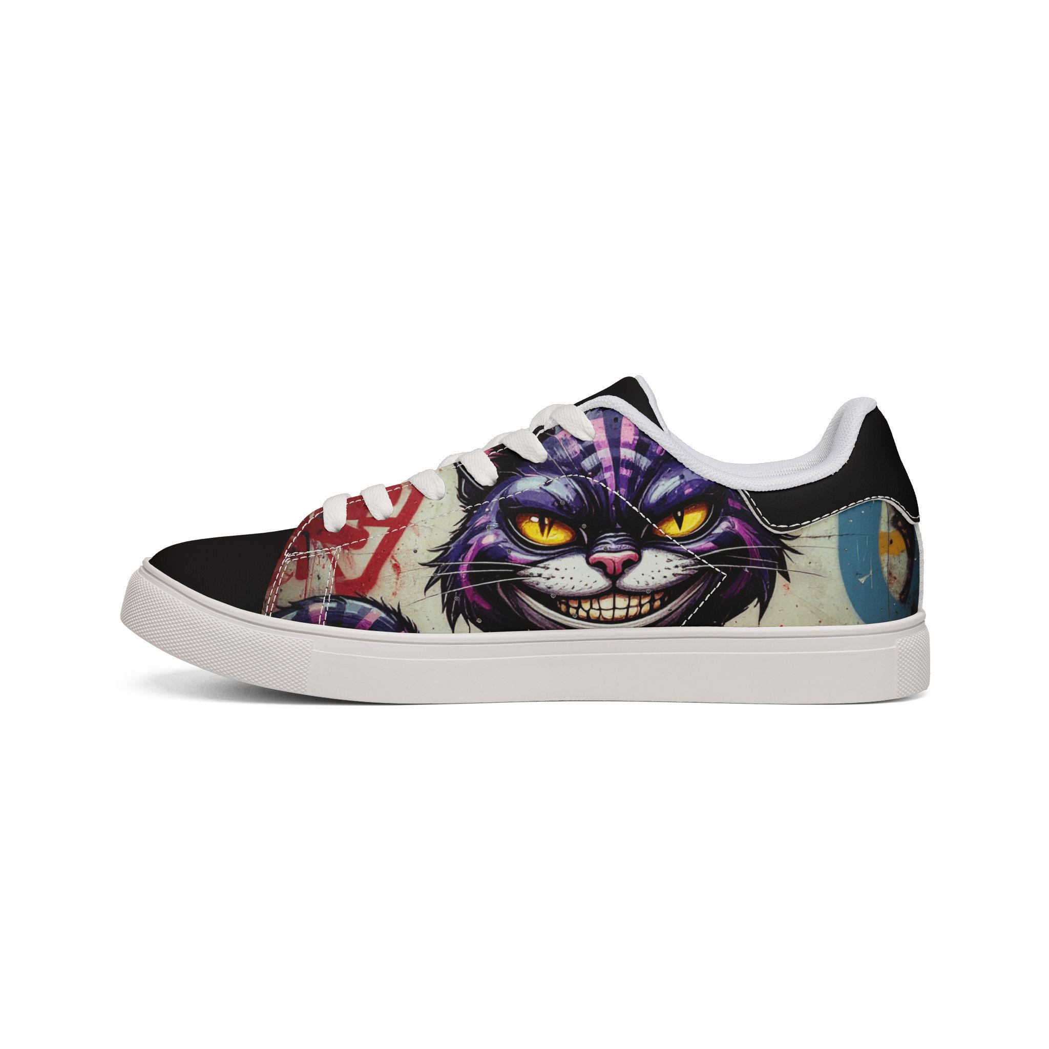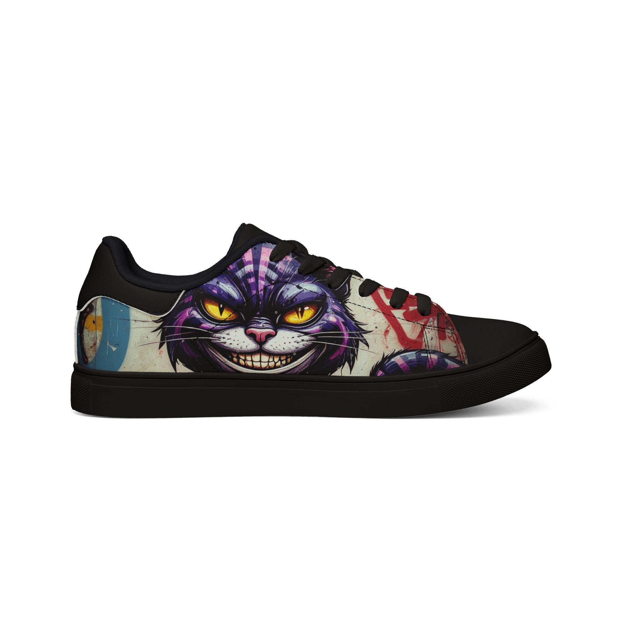 These low-top leather sneakers blend bold street art with everyday wearability. The upper is crafted from 100% microfiber PU that mimics genuine leather while staying easy to care for. A lace-up closure locks your foot in place for confident steps. Underfoot, a durable rubber outsole with an EVA cushioning layer absorbs impact and keeps each stride light. The design wraps a striking, mischievous cat face across the sides and toe, giving the shoe personality that stands out whether you’re strolling the city or hanging with friends. Available in contrasting sole/stitching options to match your look.