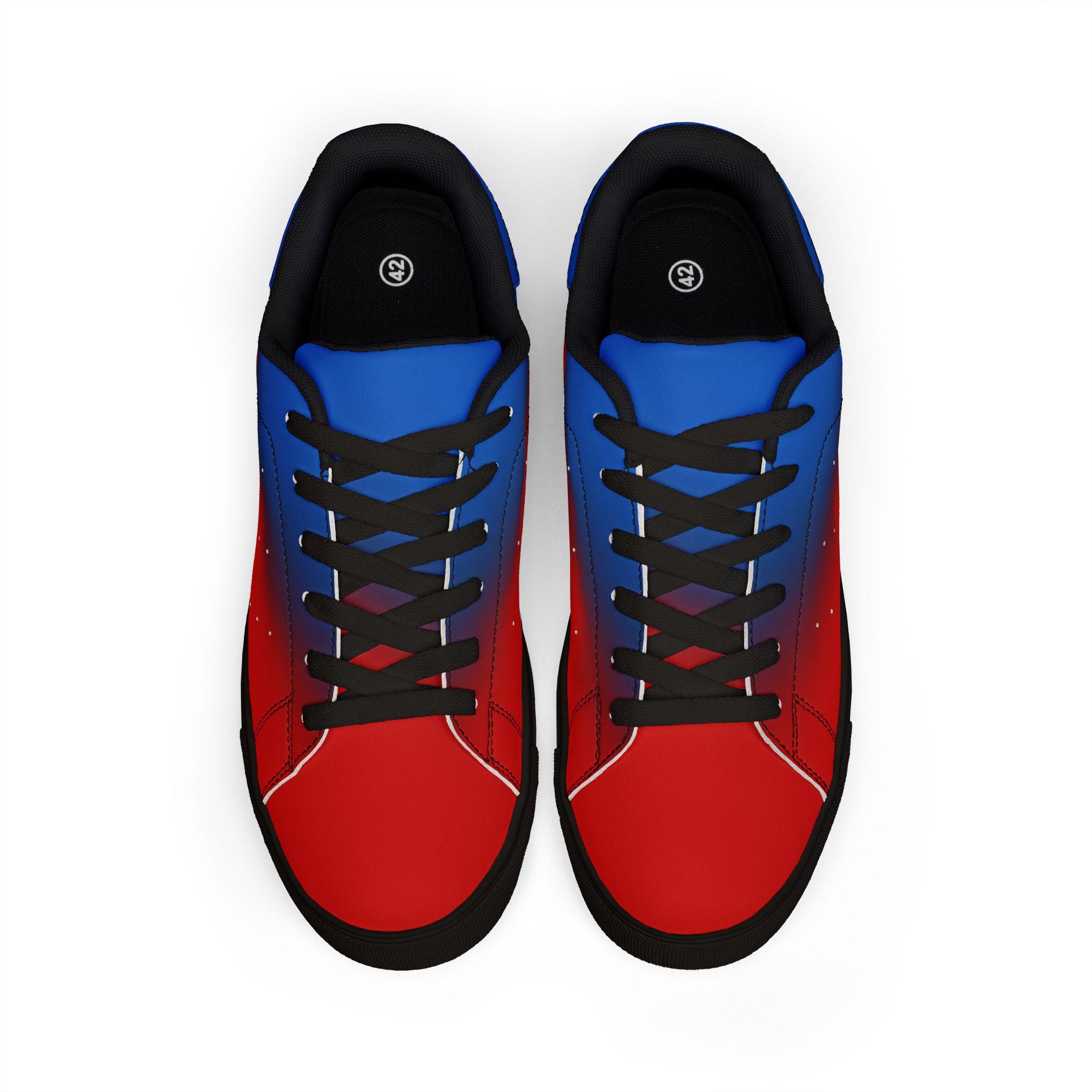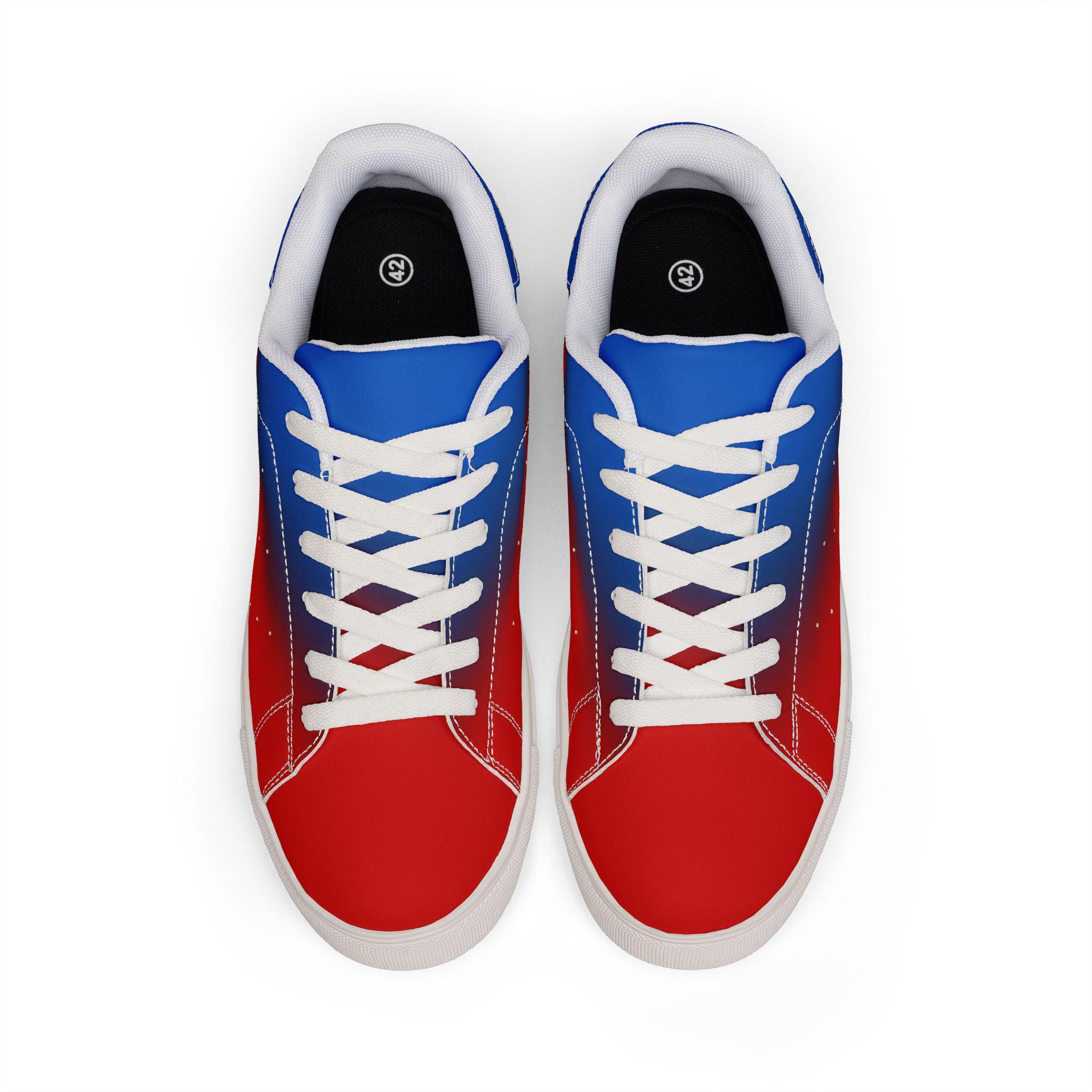 A sleek pair of low-top leather sneakers that bring bold color and everyday comfort together. The smooth microfiber leather upper wears like real leather while staying easy to care for. A cushioned EVA layer inside the durable rubber outsole softens each step and helps absorb shock during long days on the move. Lace-up closure gives a secure, locked-in fit so you can walk, commute, or explore without your foot slipping. Clean white midsoles and contrast stitching keep the silhouette modern and versatile. These sneakers slide easily into casual looks — from weekend errands to city walks — and feel broken-in from the first wear.