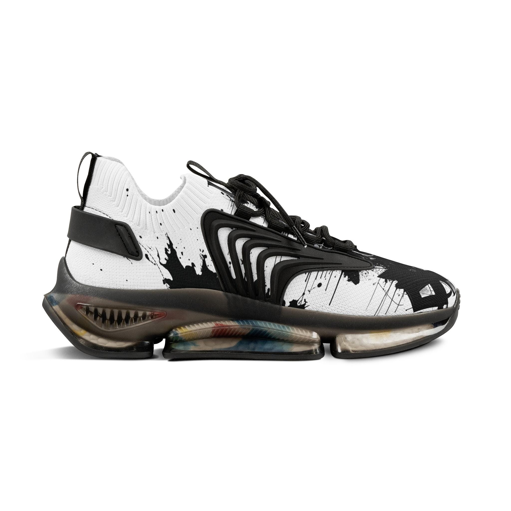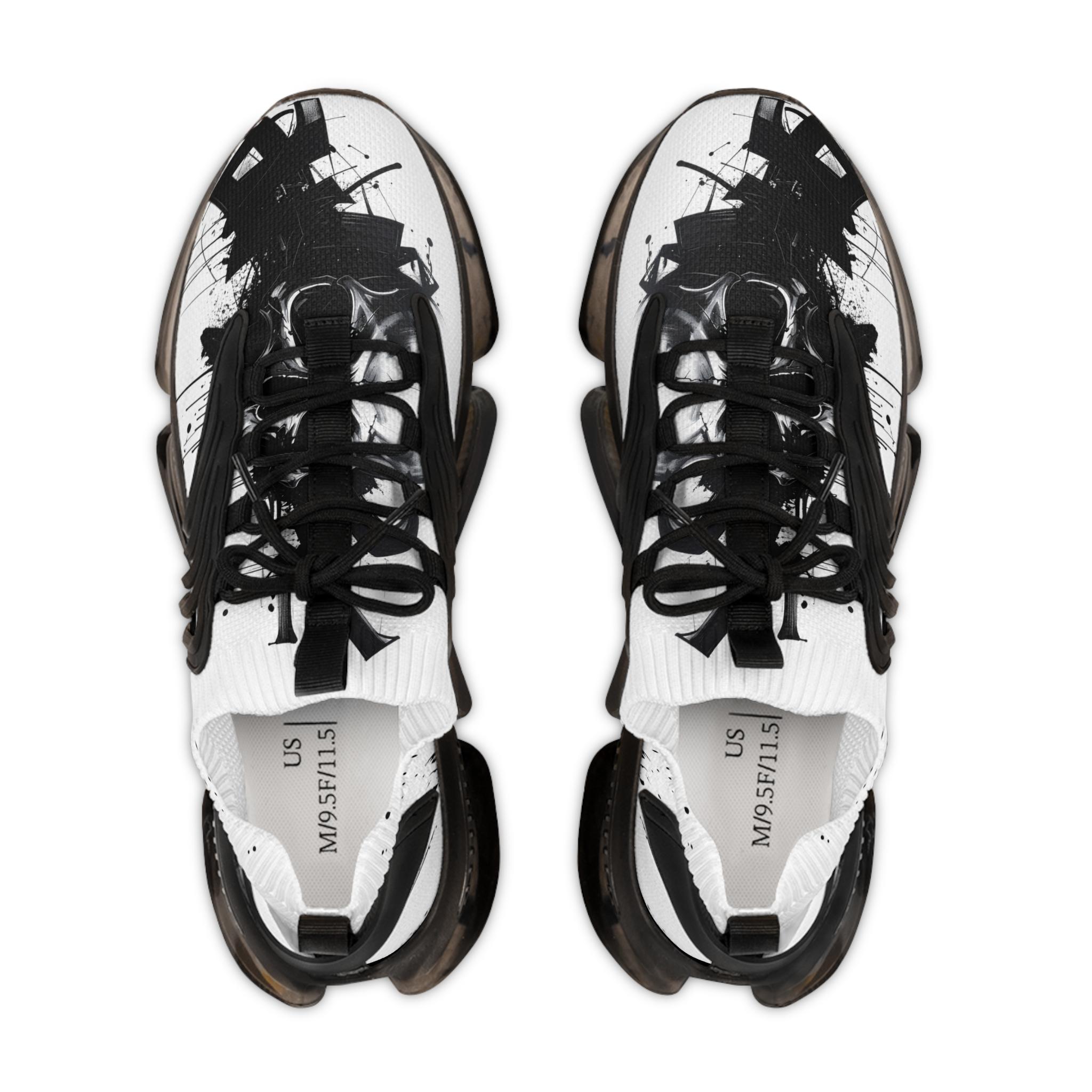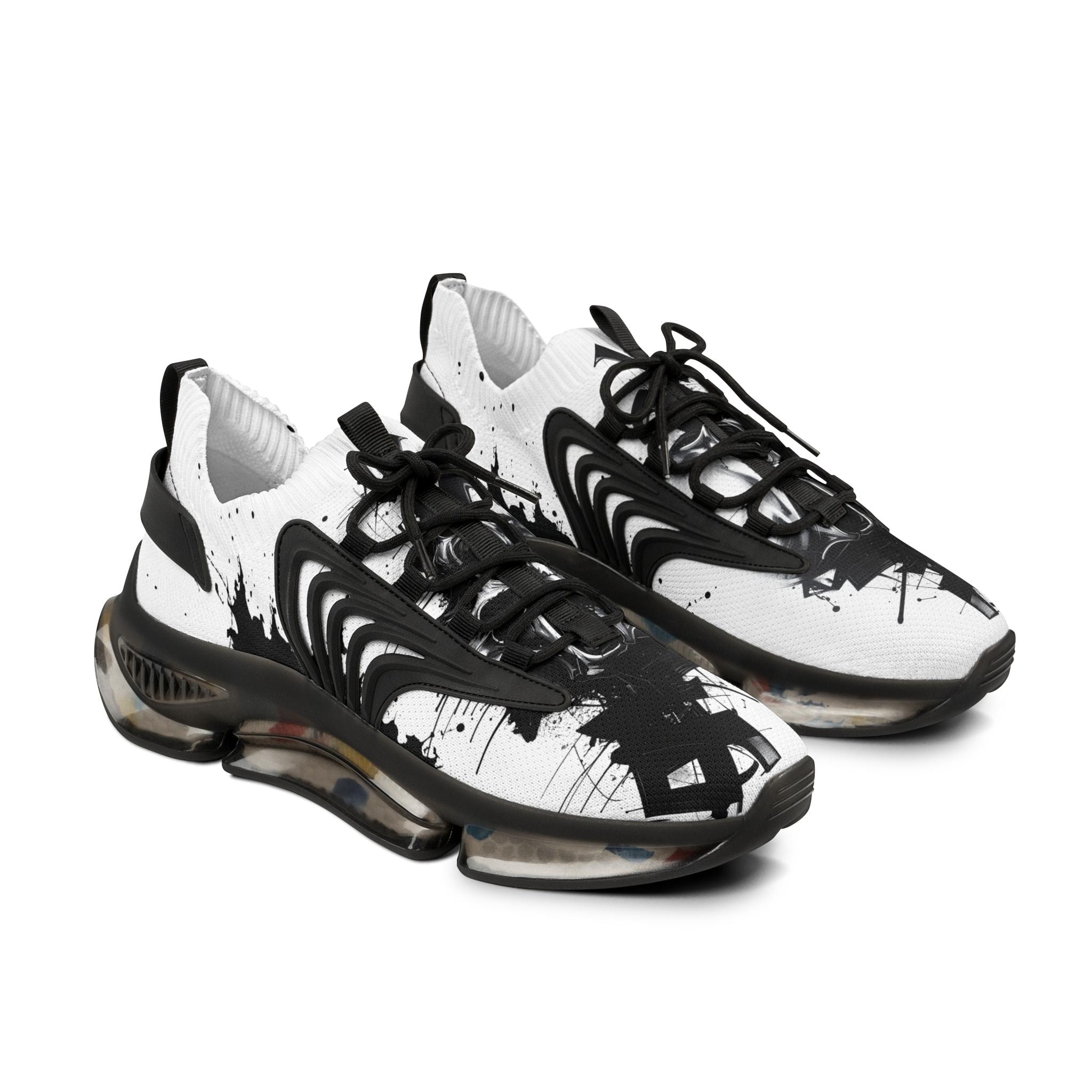 These mesh sneakers bring streetwise energy to everyday movement. Lightweight mesh-knit uppers feel airy against your foot while the deodorant memory foam insole cushions each step and controls heat. The sculpted EVA/TPU sole gives a responsive, springy ride and shows subtle color flecks that echo the ink-splash print across the vamp. KPU overlays add weather-resistant structure so the shoe keeps its shape through commutes, studio sessions, or weekend walks. Clean black or white detailing keeps the look wearable with layered streetwear, tailored joggers, or minimalist denim.