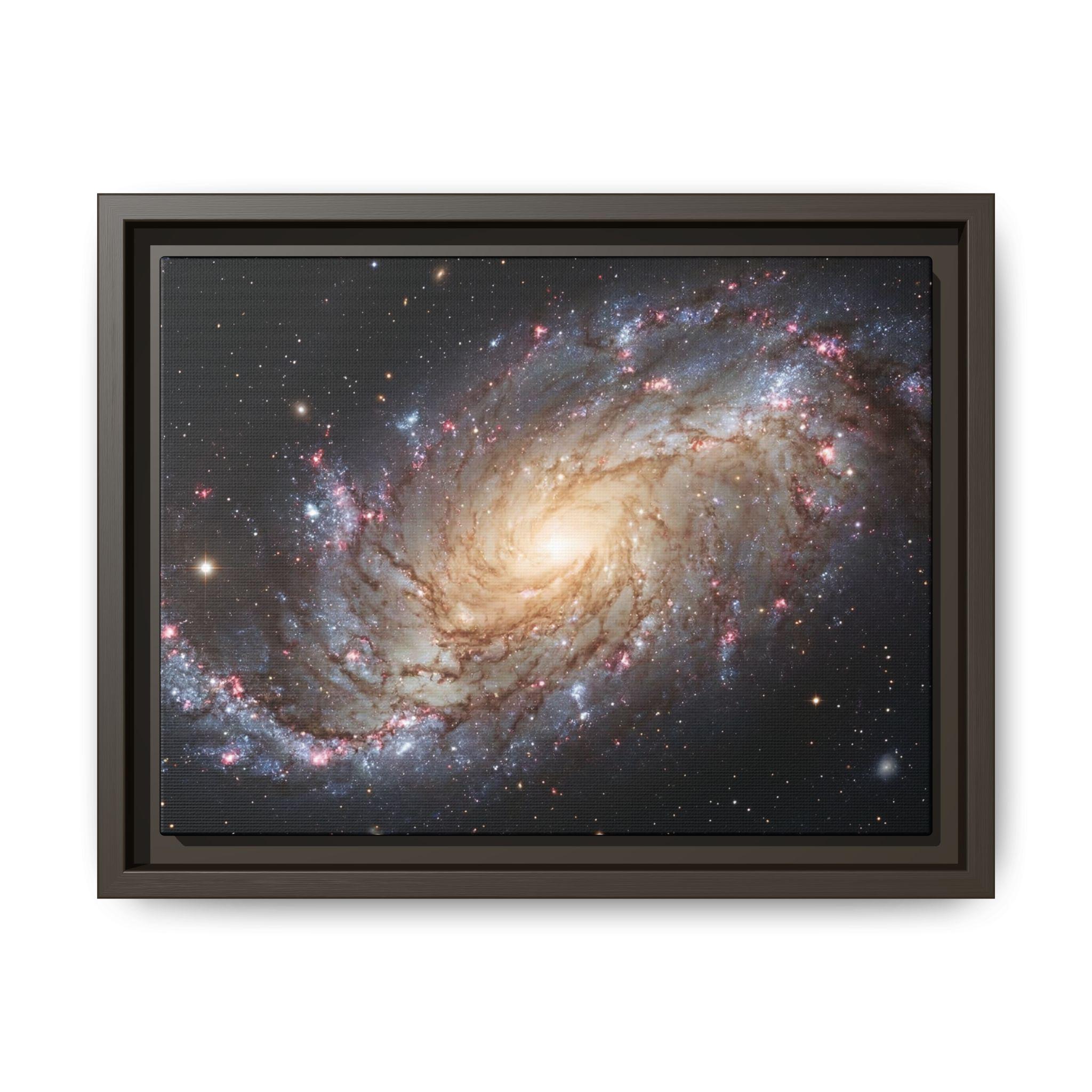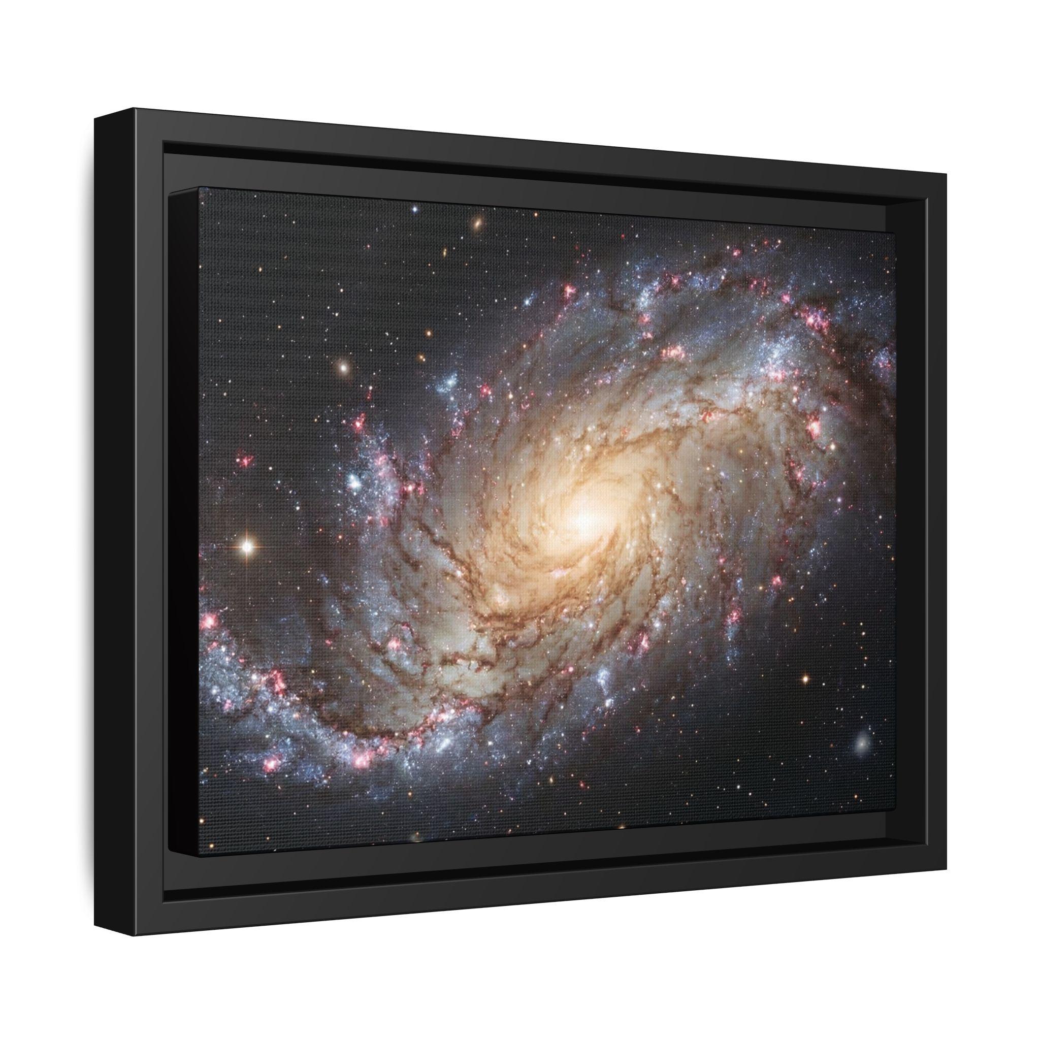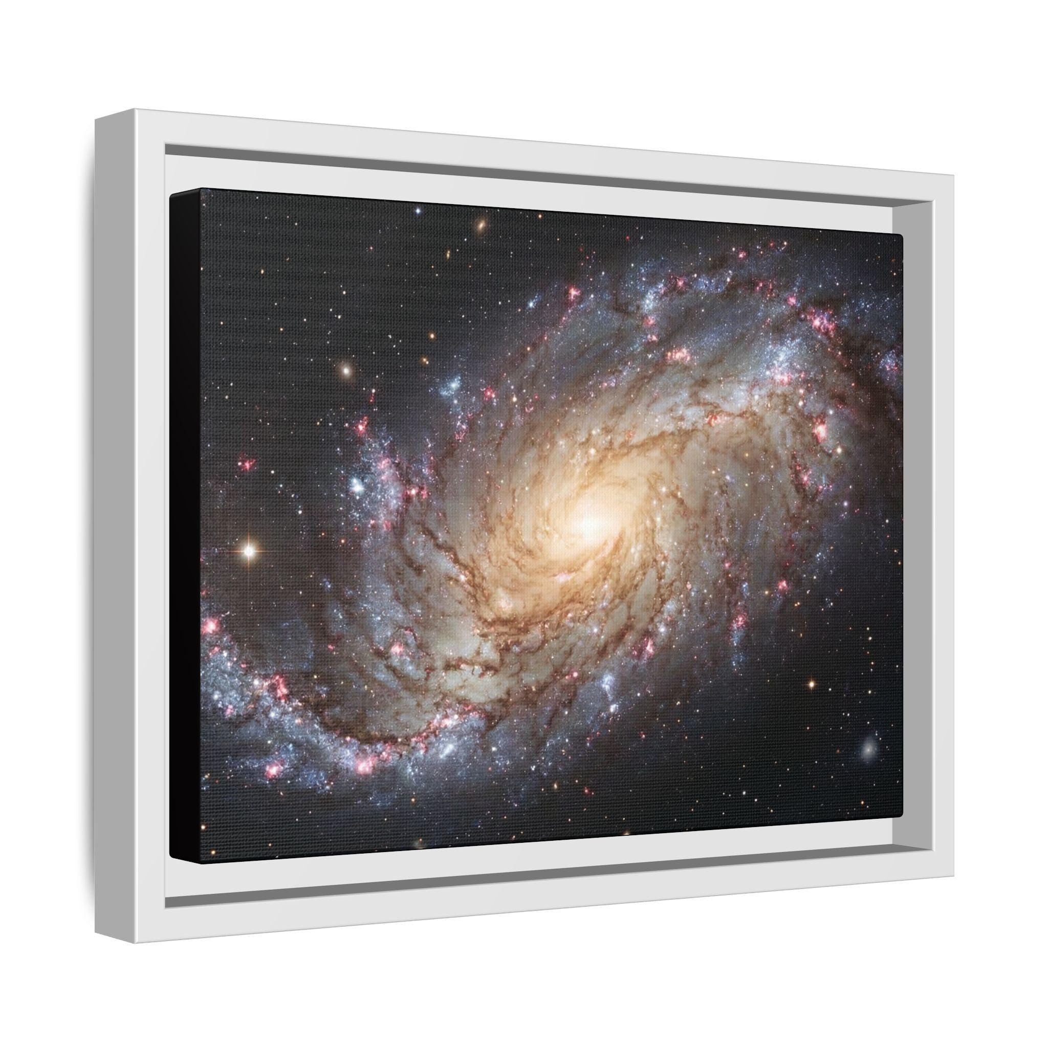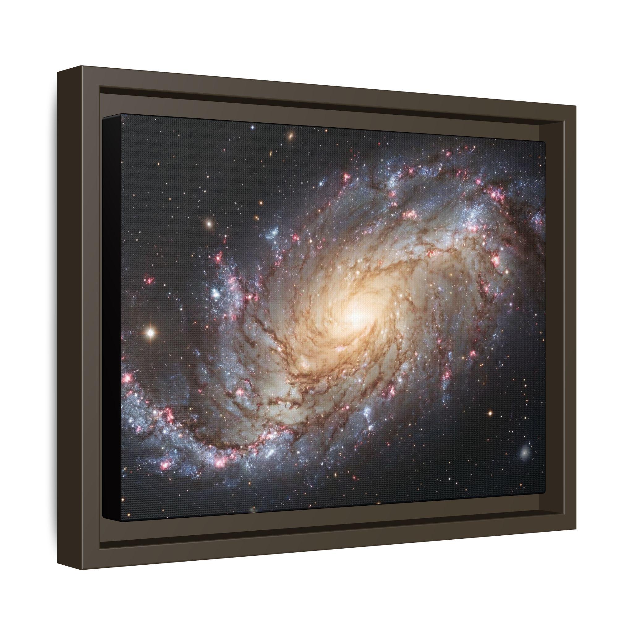 Hang the cosmos on your wall with this matte canvas print, framed in warm pine. The image’s swirling galaxy draws the eye inward—soft golden core, wisps of blue and rose nebulae, and pinpricks of starlight—rendered with vivid, archival inks that keep depth and texture alive. The low-reflective matte finish gives a museum-like presence without glare, while the slender pine frame adds an organic edge that balances the celestial subject. It settles naturally in a living room, studio, or reading nook and invites quiet evenings spent tracing spiral arms and imagining distant storms of light.